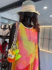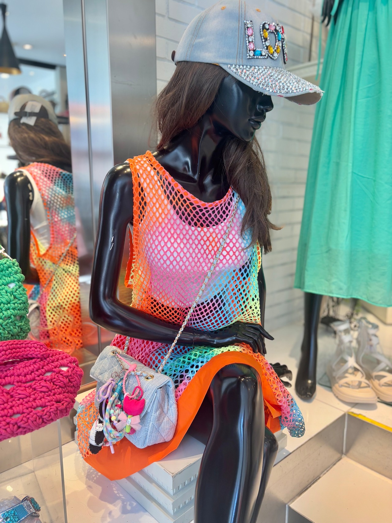 カラフルなネオンカラーのグラデーションが目を引くデザインで、ビーチやプールにもぴったりです!