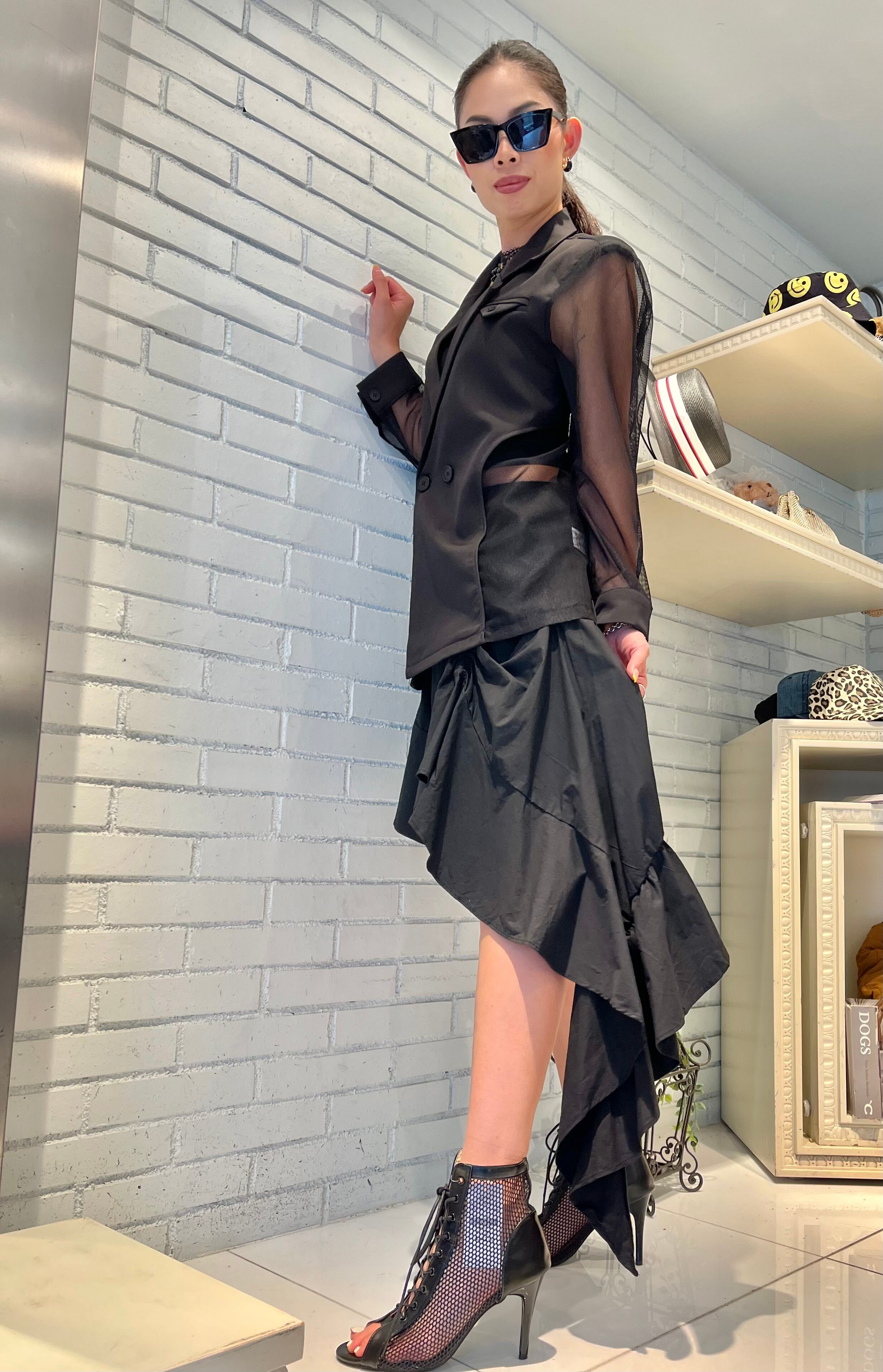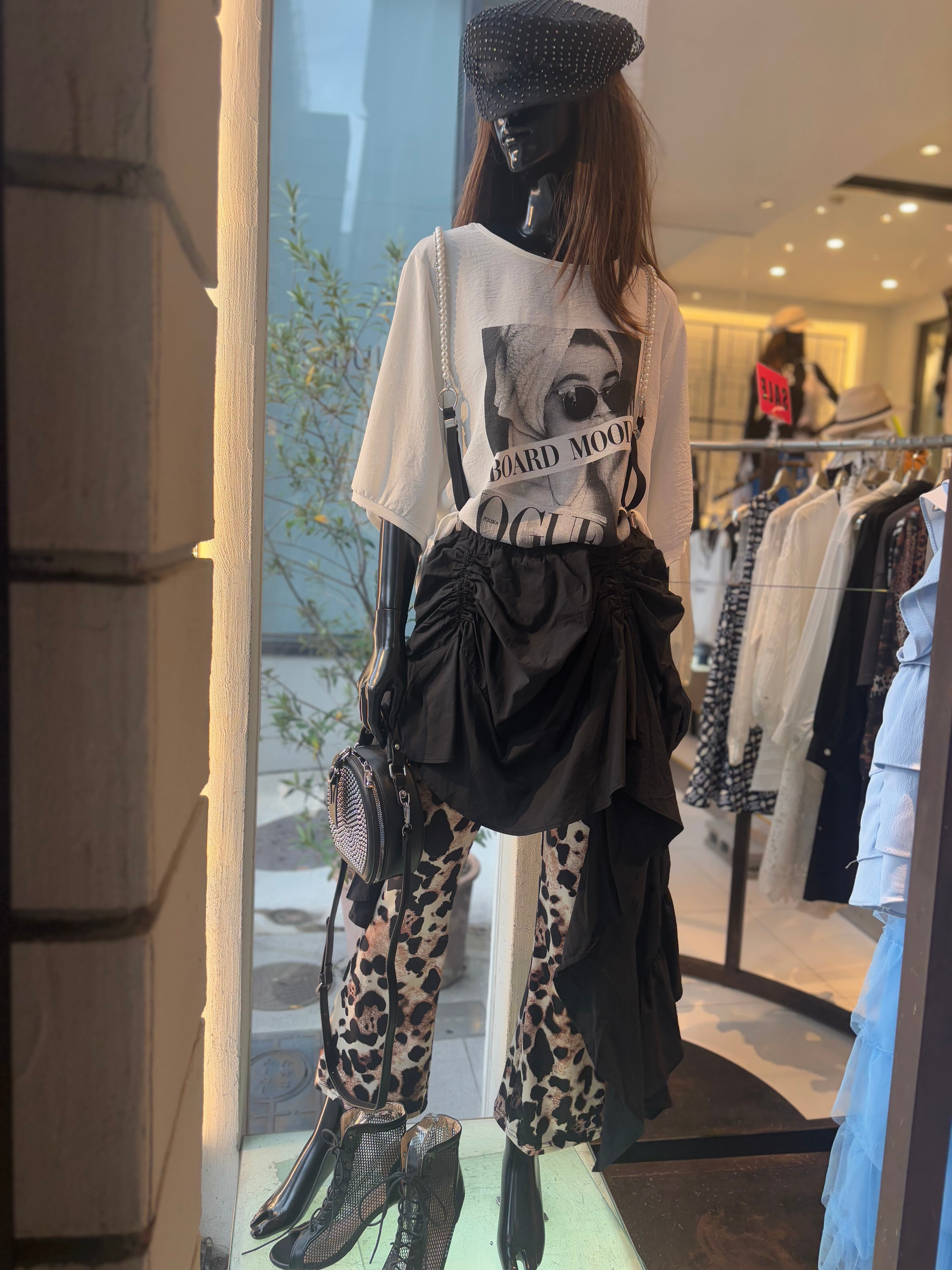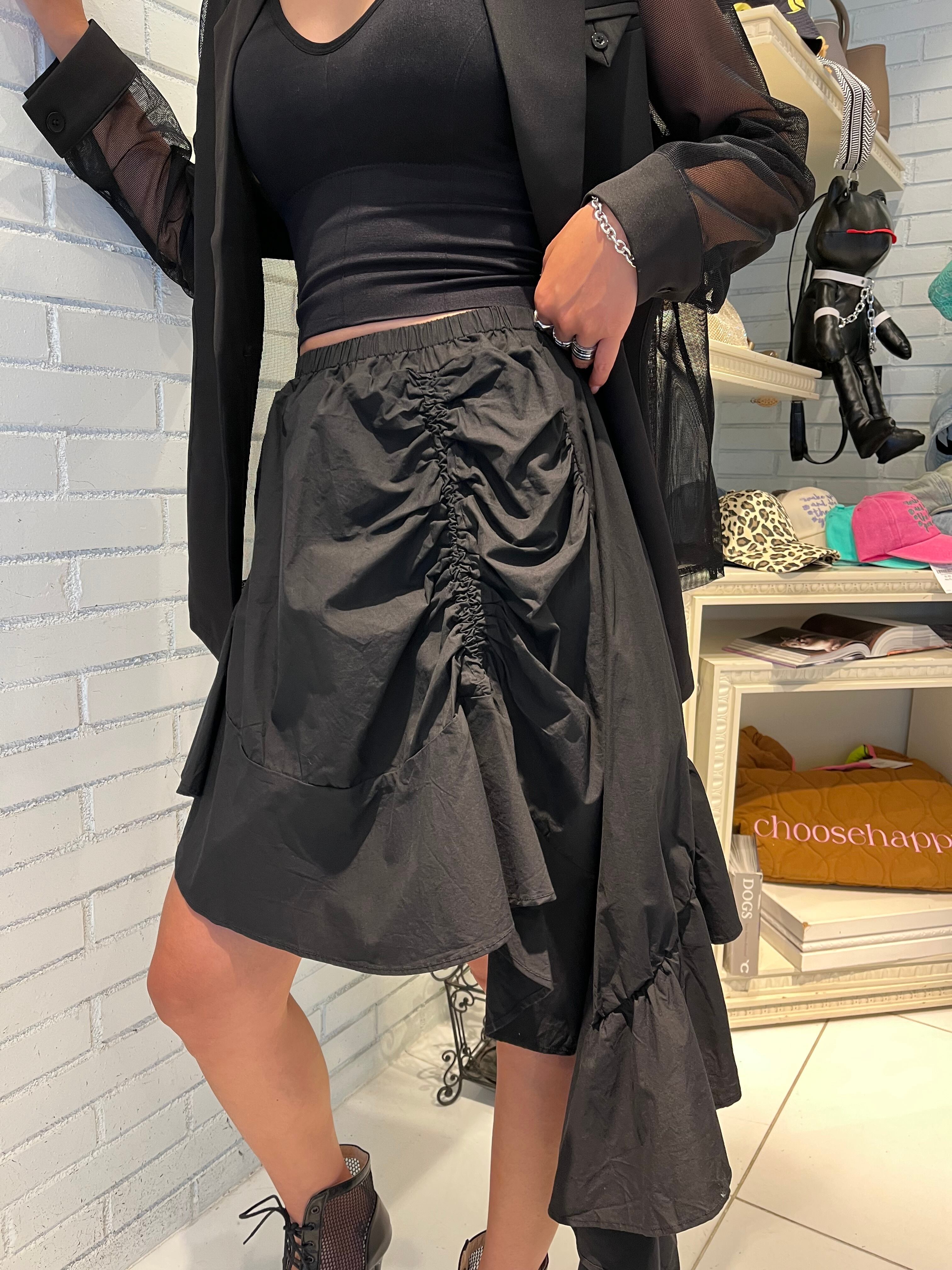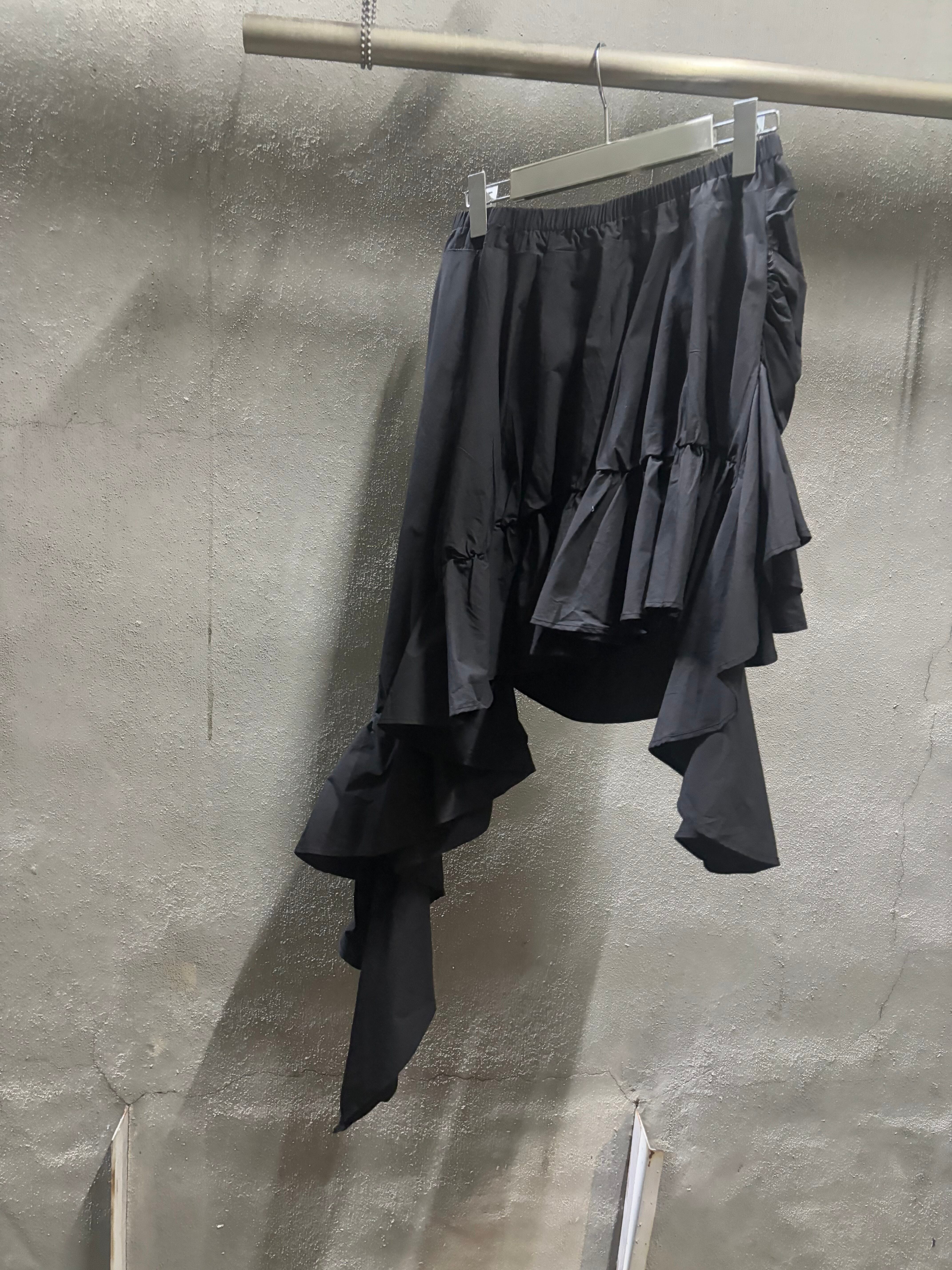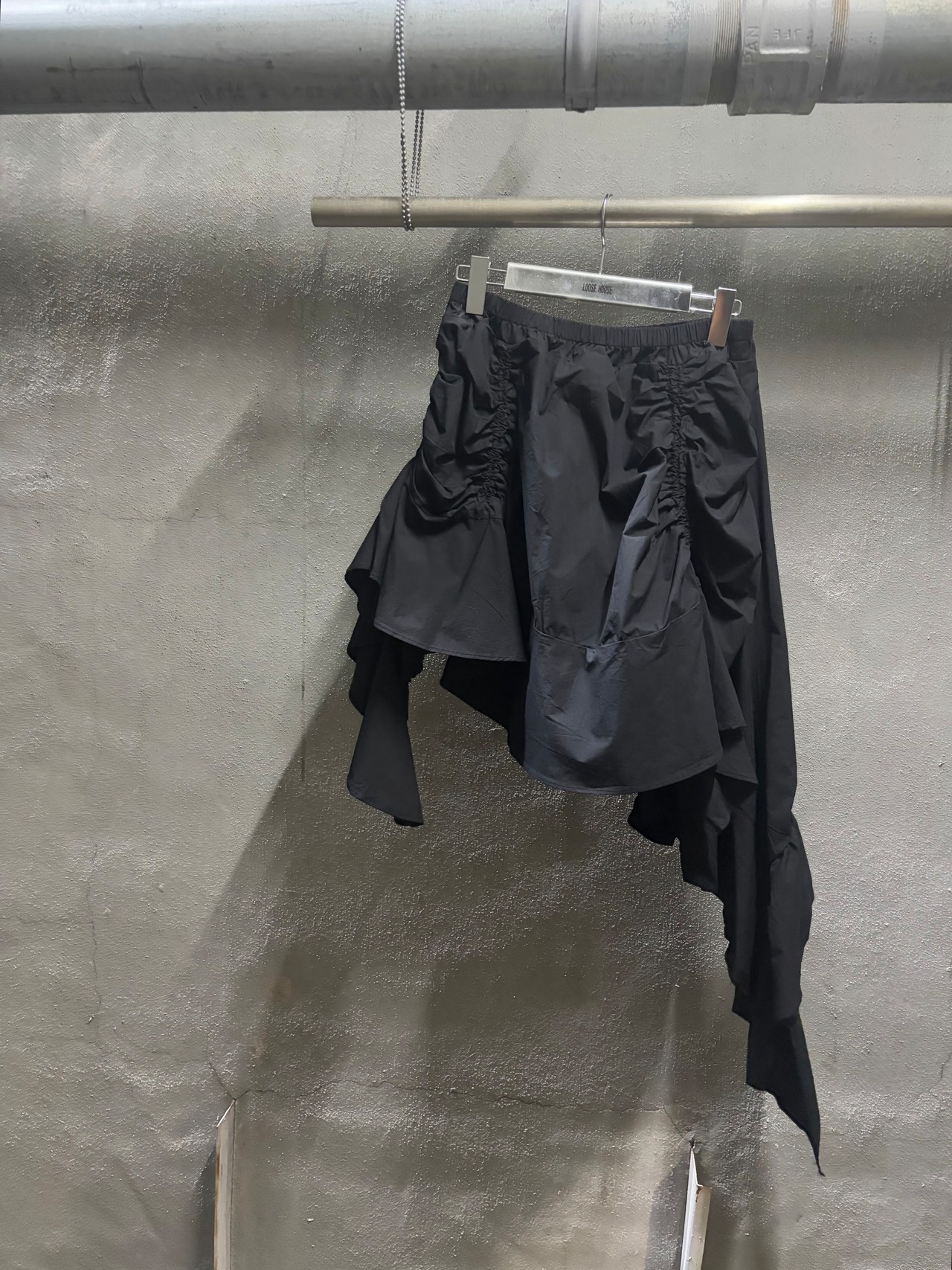 irregular hem shirring design skirt スカート シャーリング アシンメトリー 黒 ブラック ゴムウエスト インナーショーツ