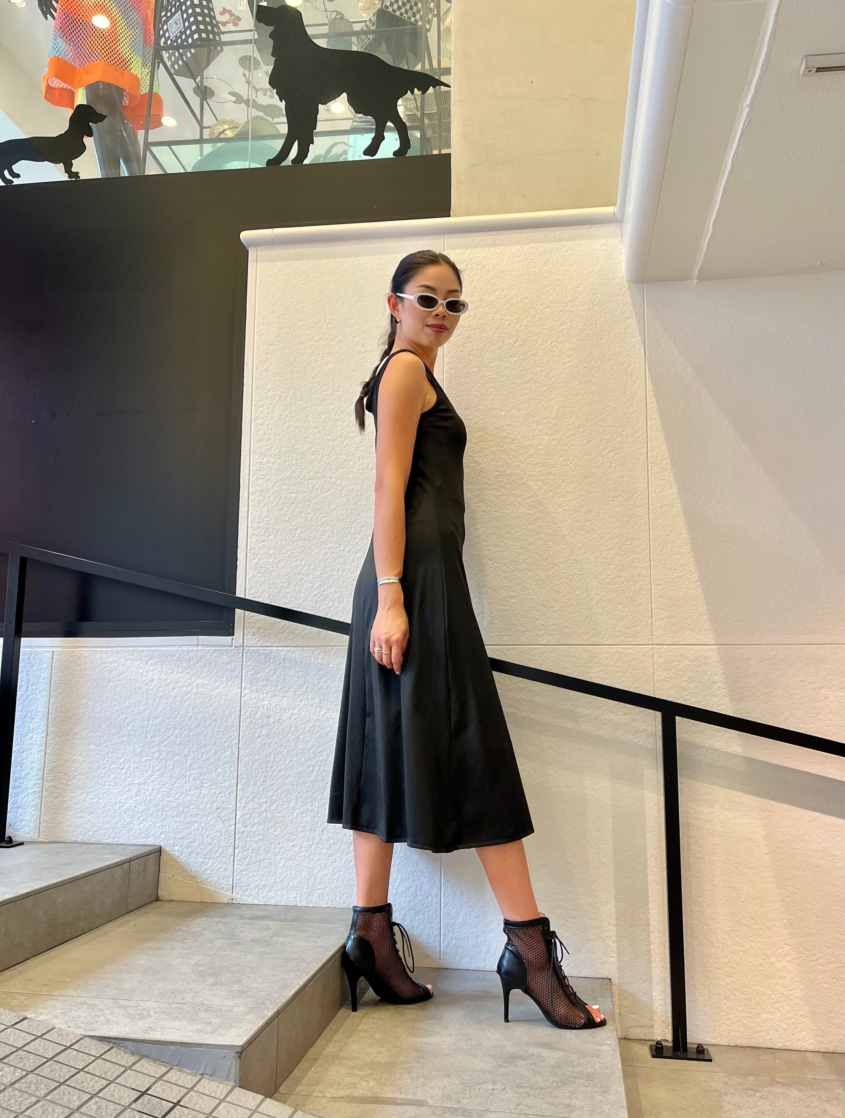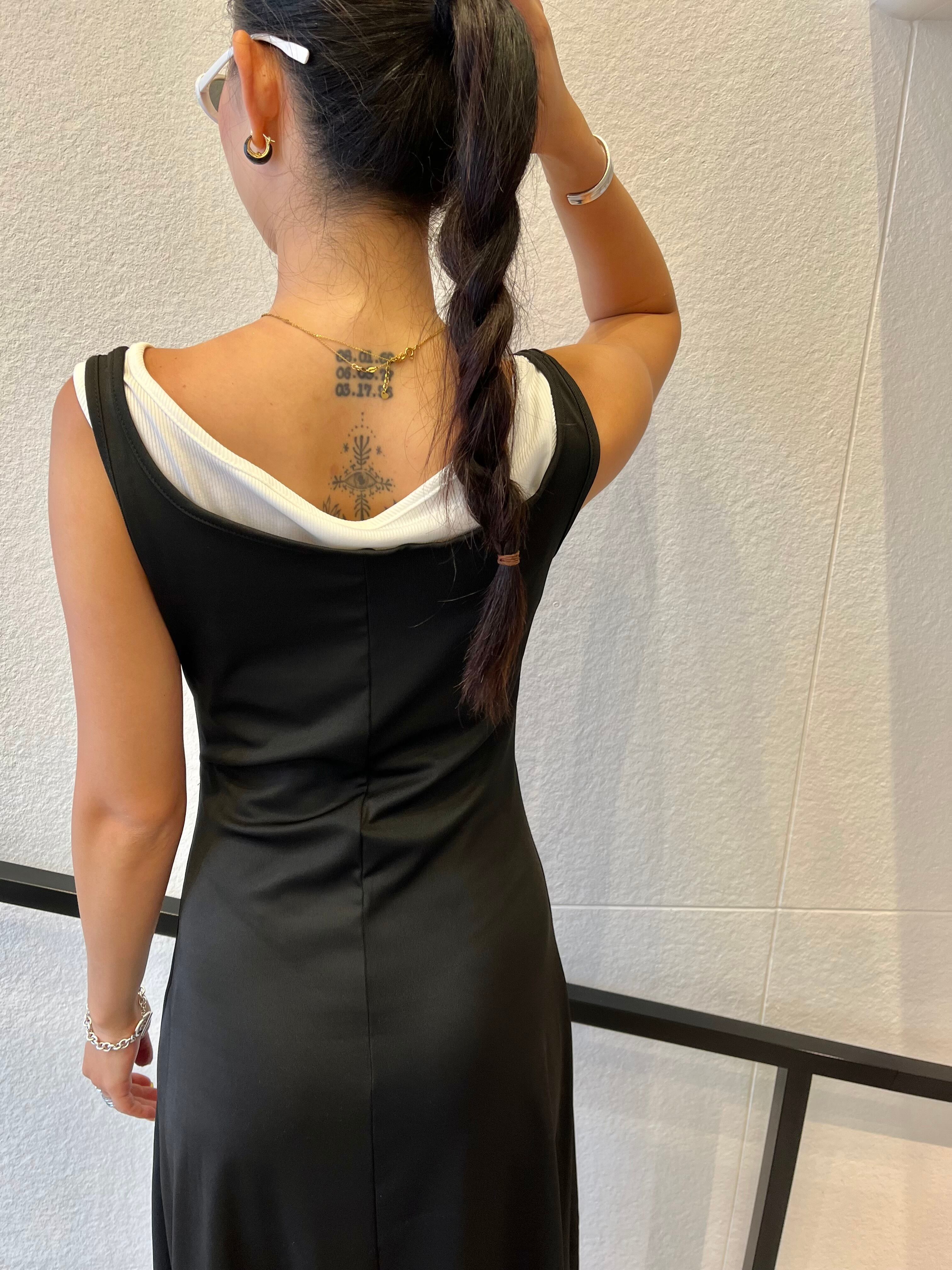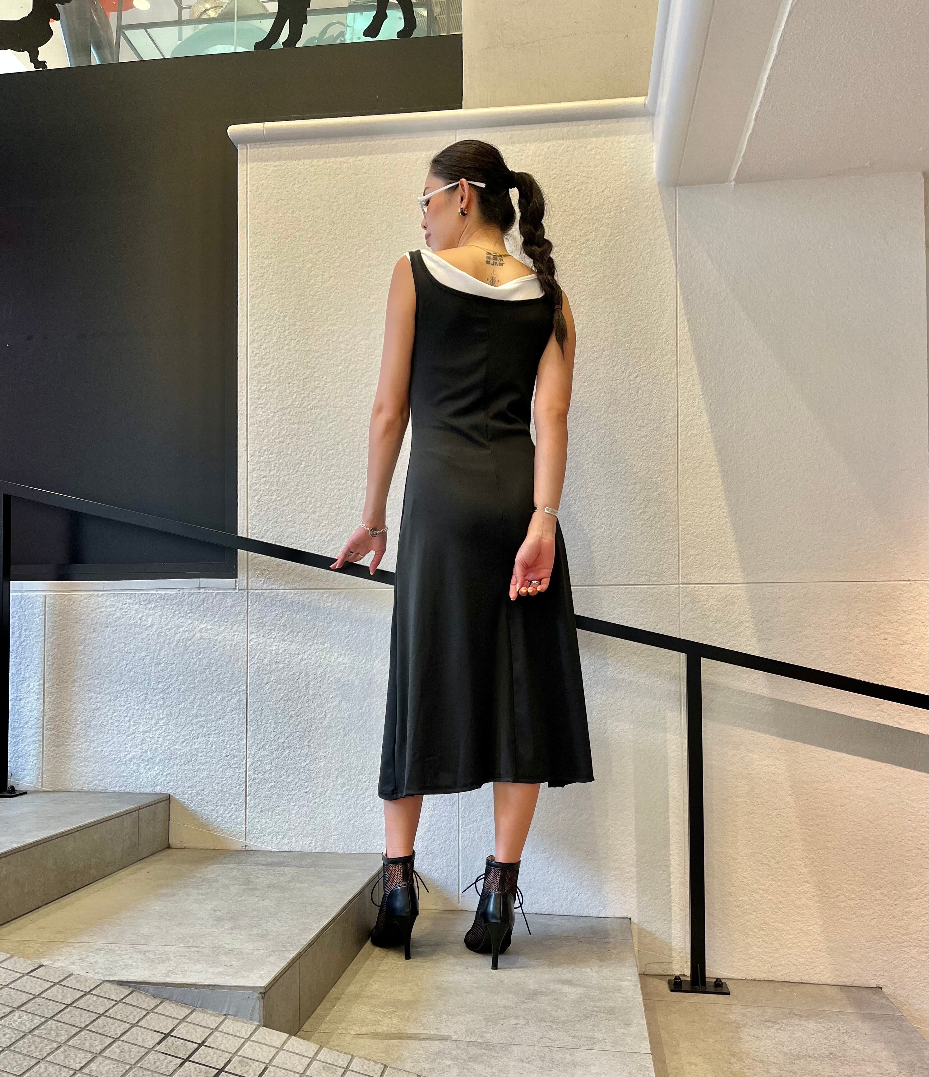 long one-piece ワンピース ワンピ 重ね着風 ブラック 黒 ストレッチ