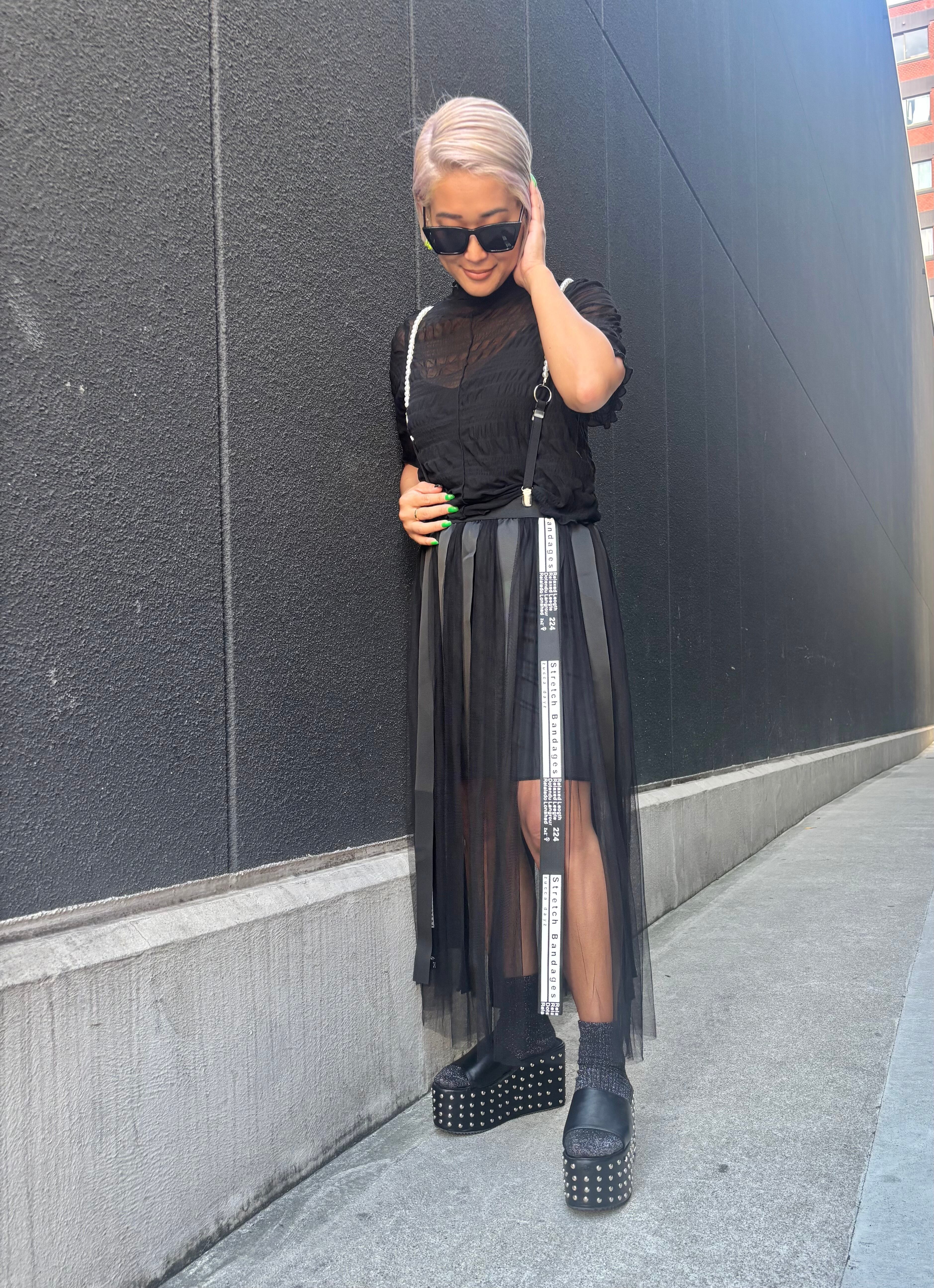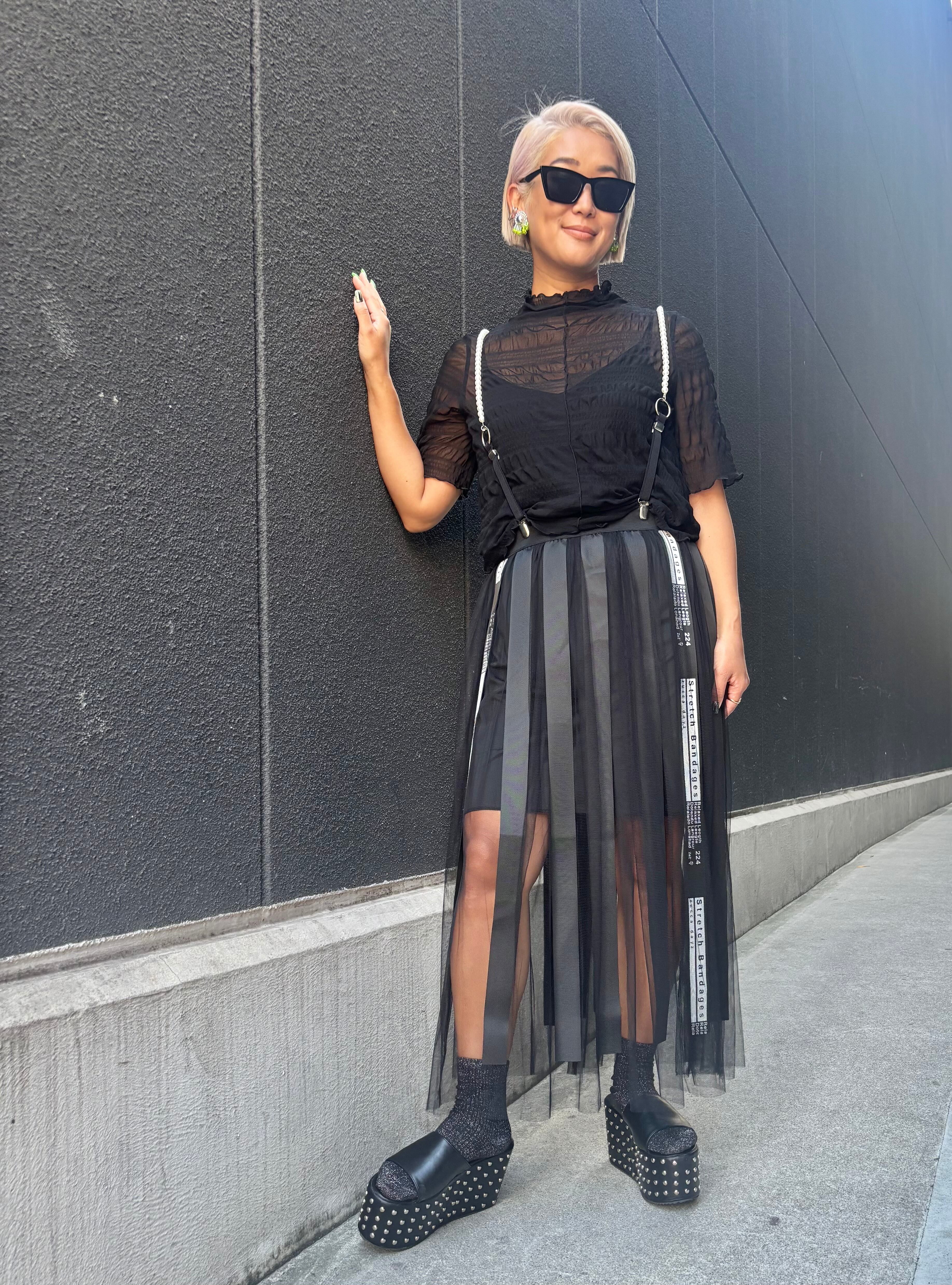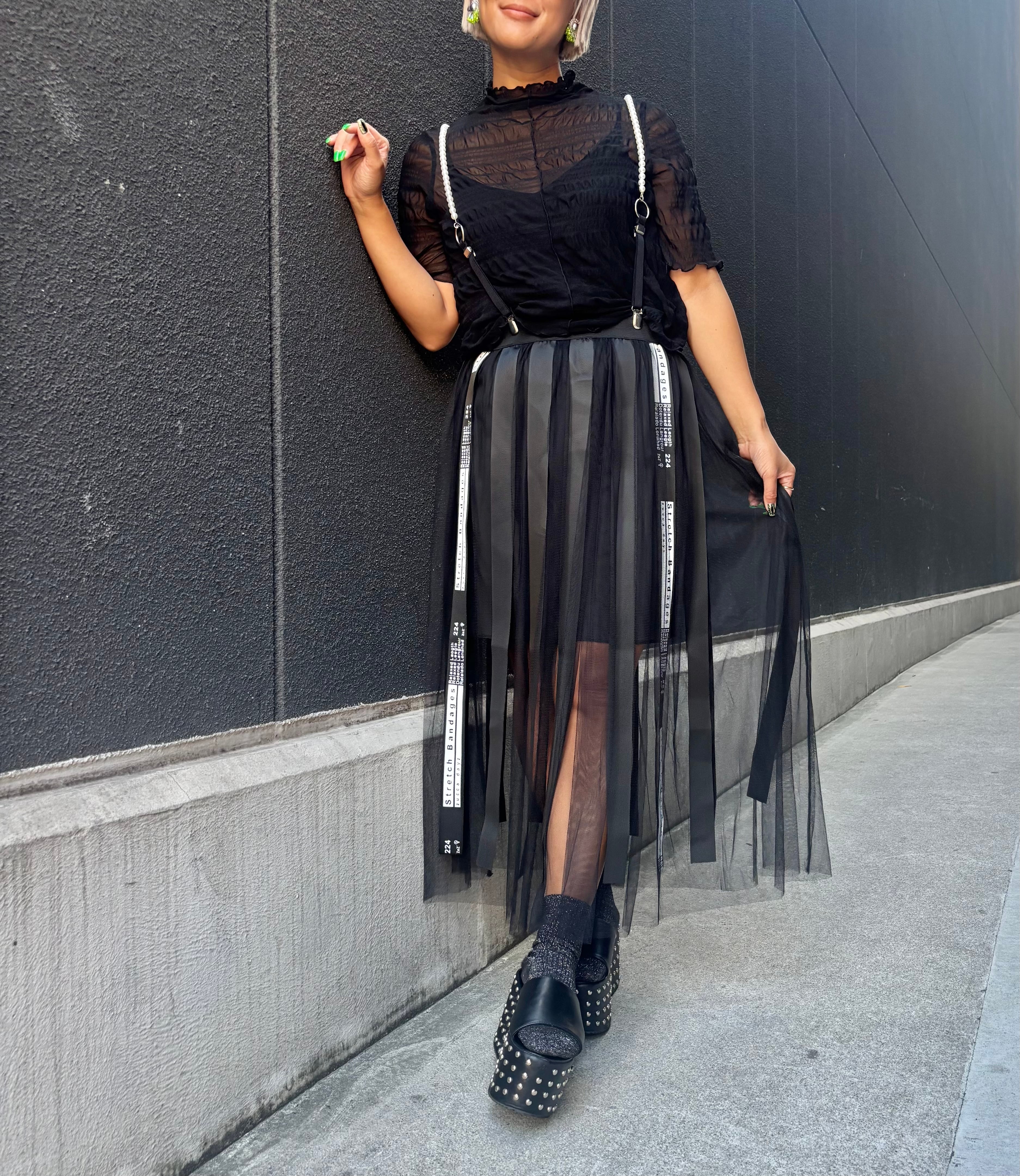 bias change design tulle skirt スカート チュール ゴムウエスト テキスト テープ