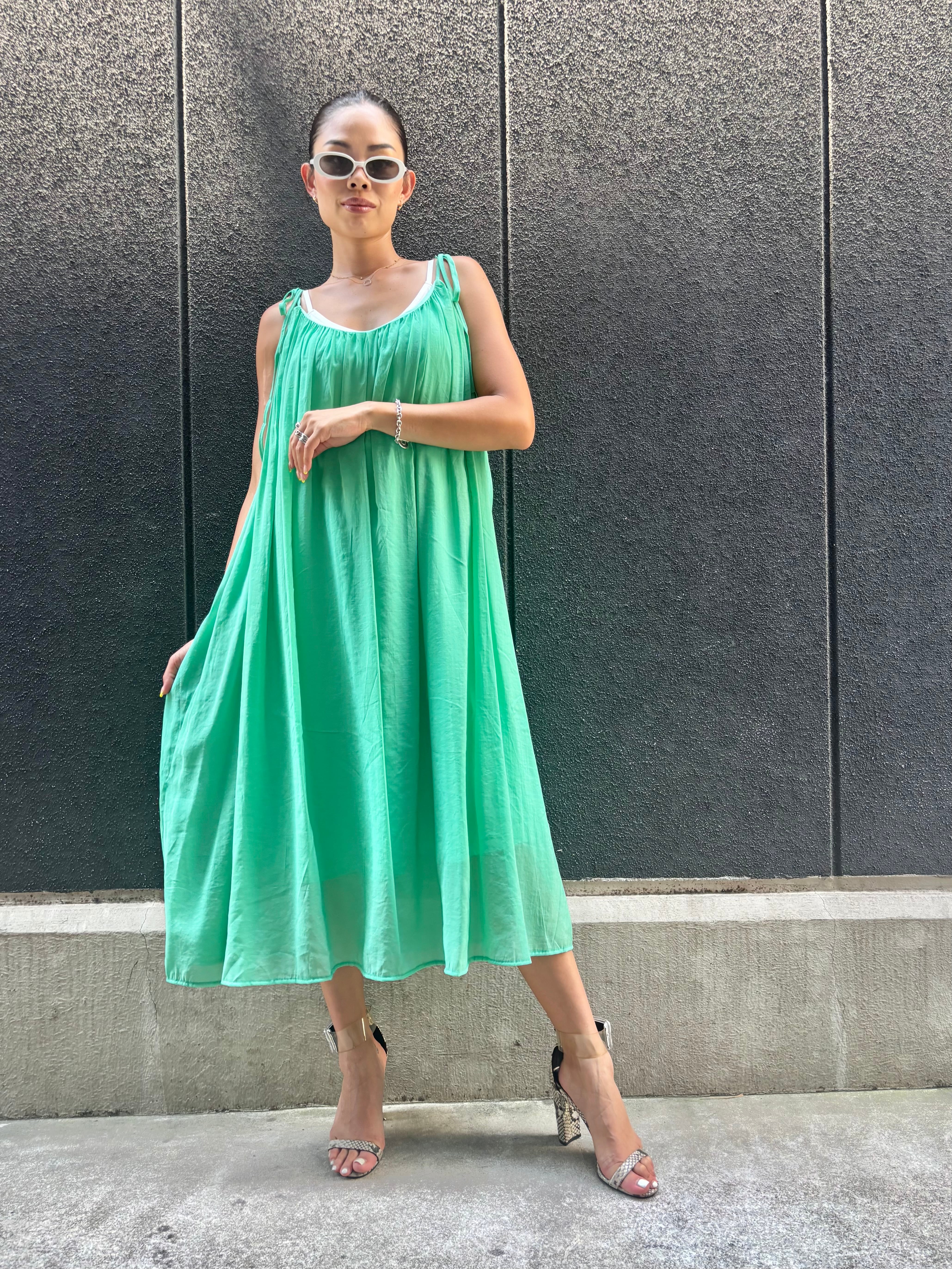 軽やかな着心地で、夏にぴったりなキャミワンピース。