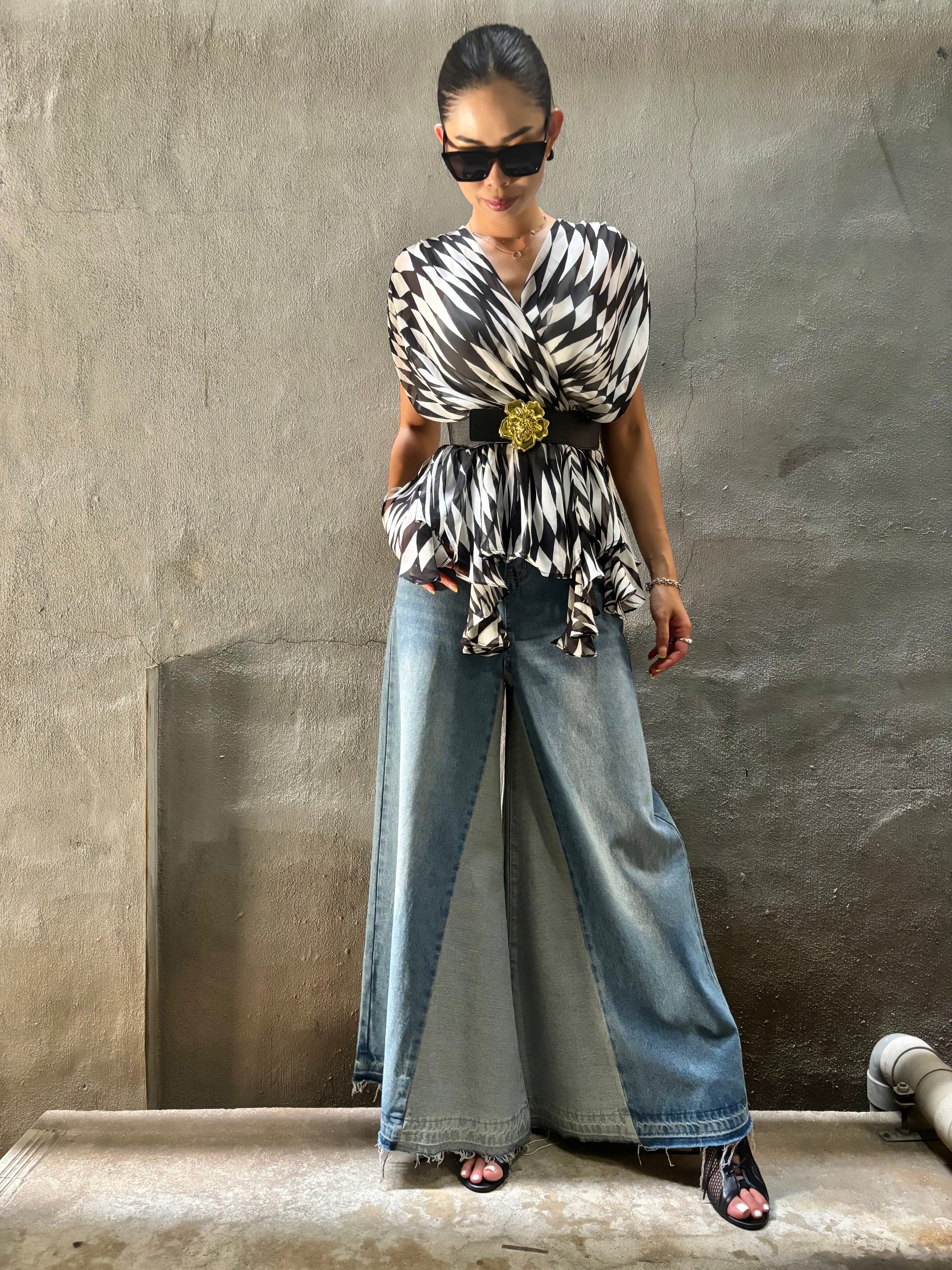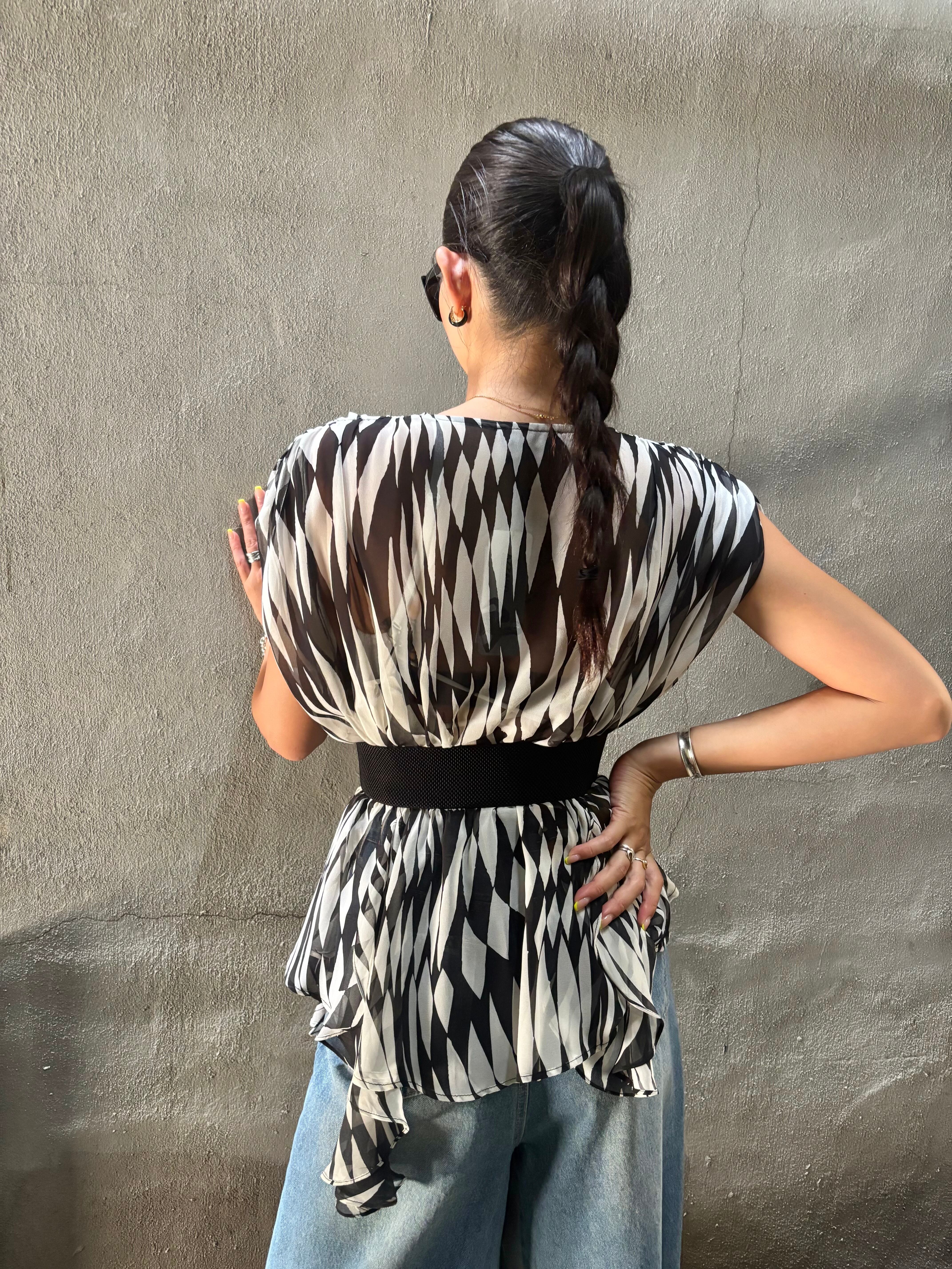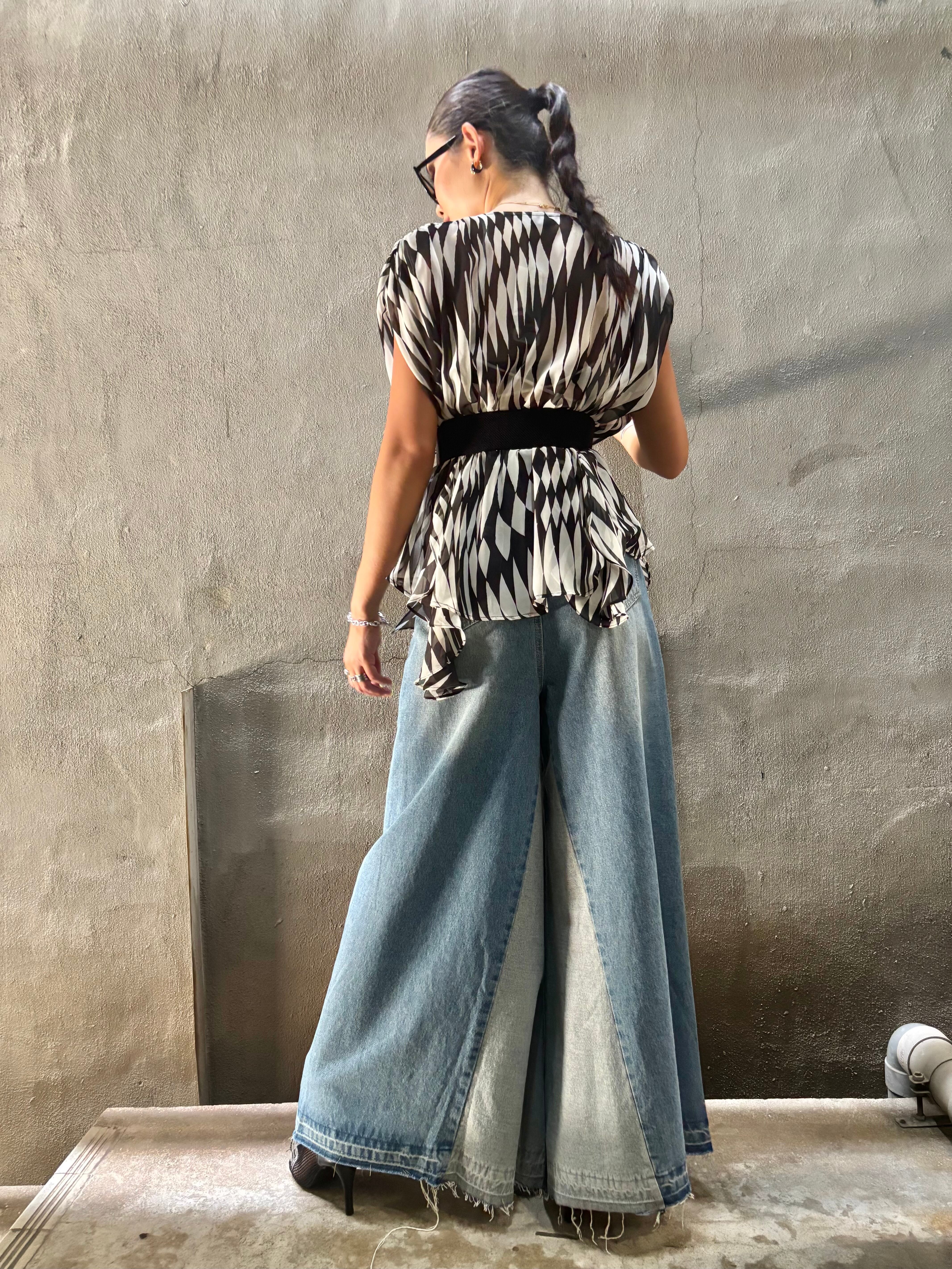 軽やかなシフォン素材で仕立てたデザイントップスです。