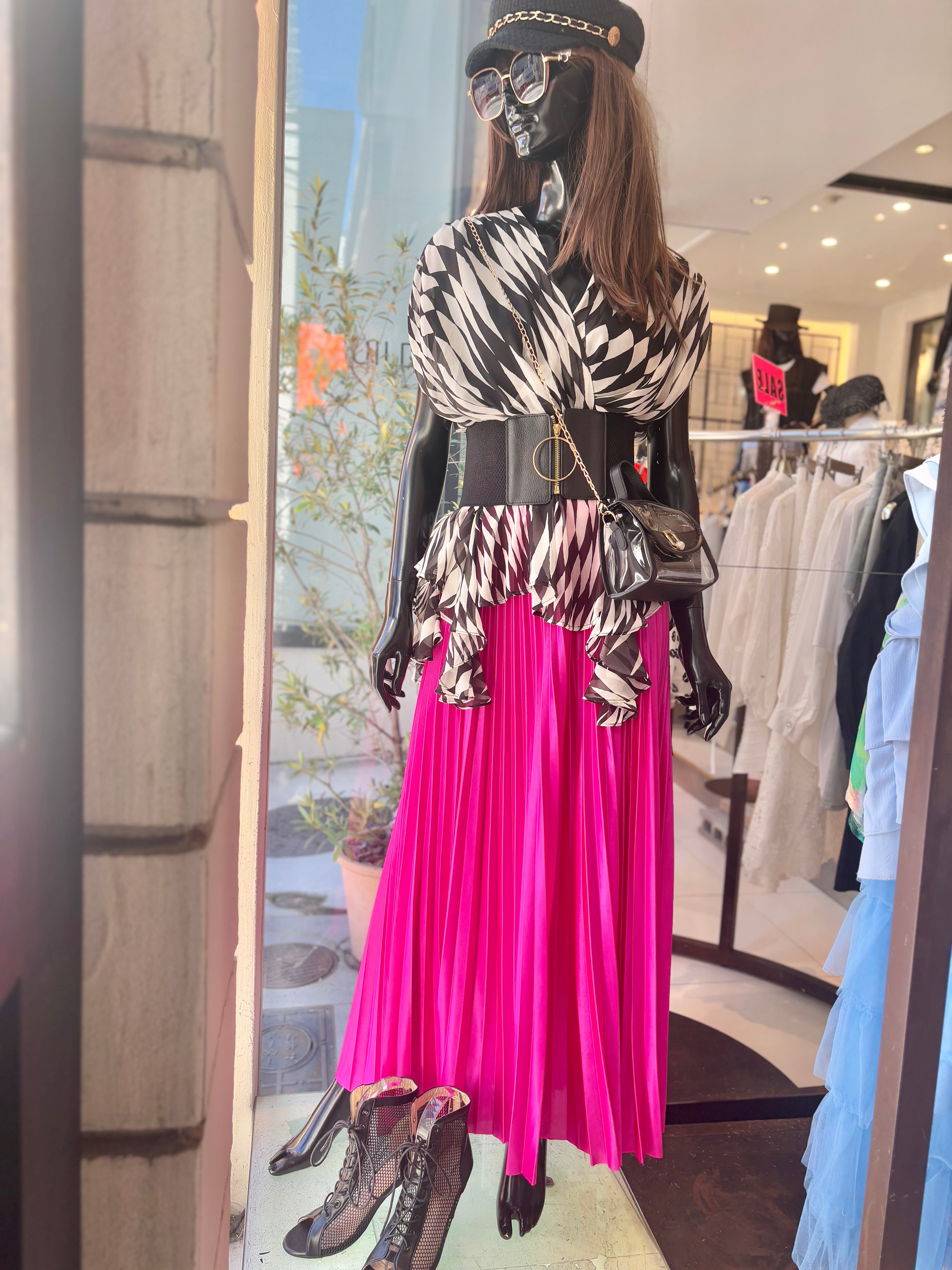 ウエスト部分はギャザーが施され、裾はフリルデザインに仕上げられ、女性らしさを引き立てます♡