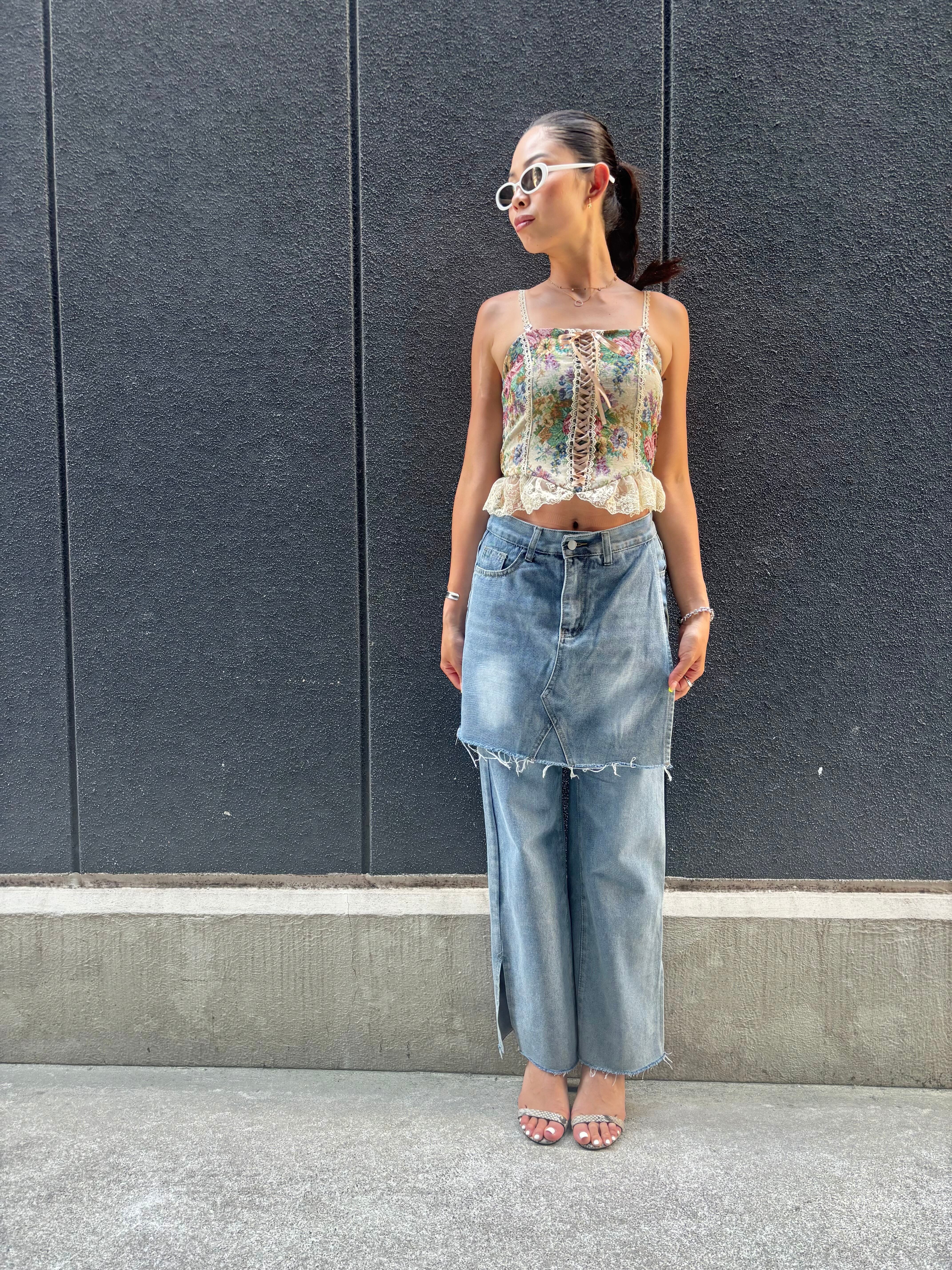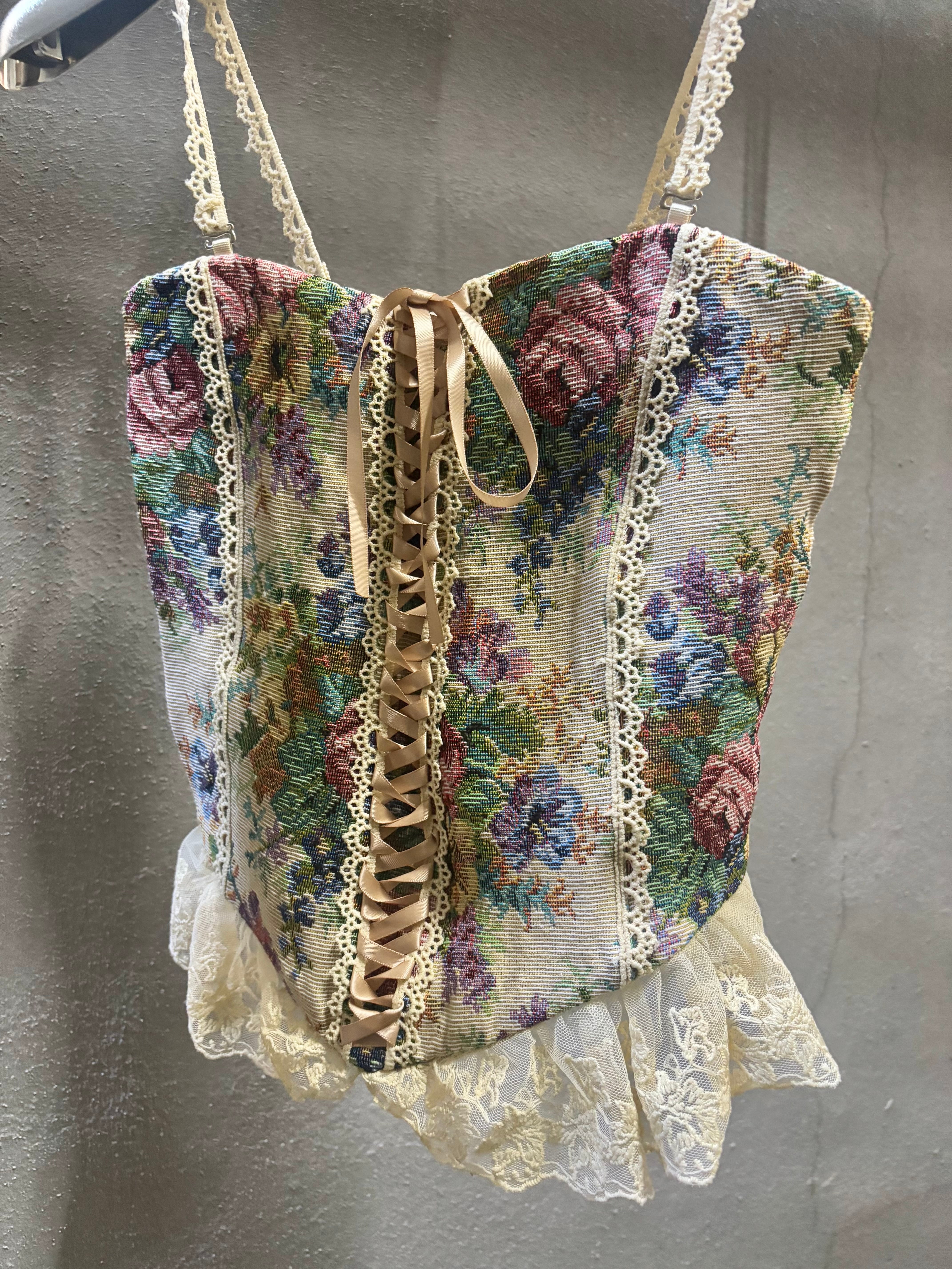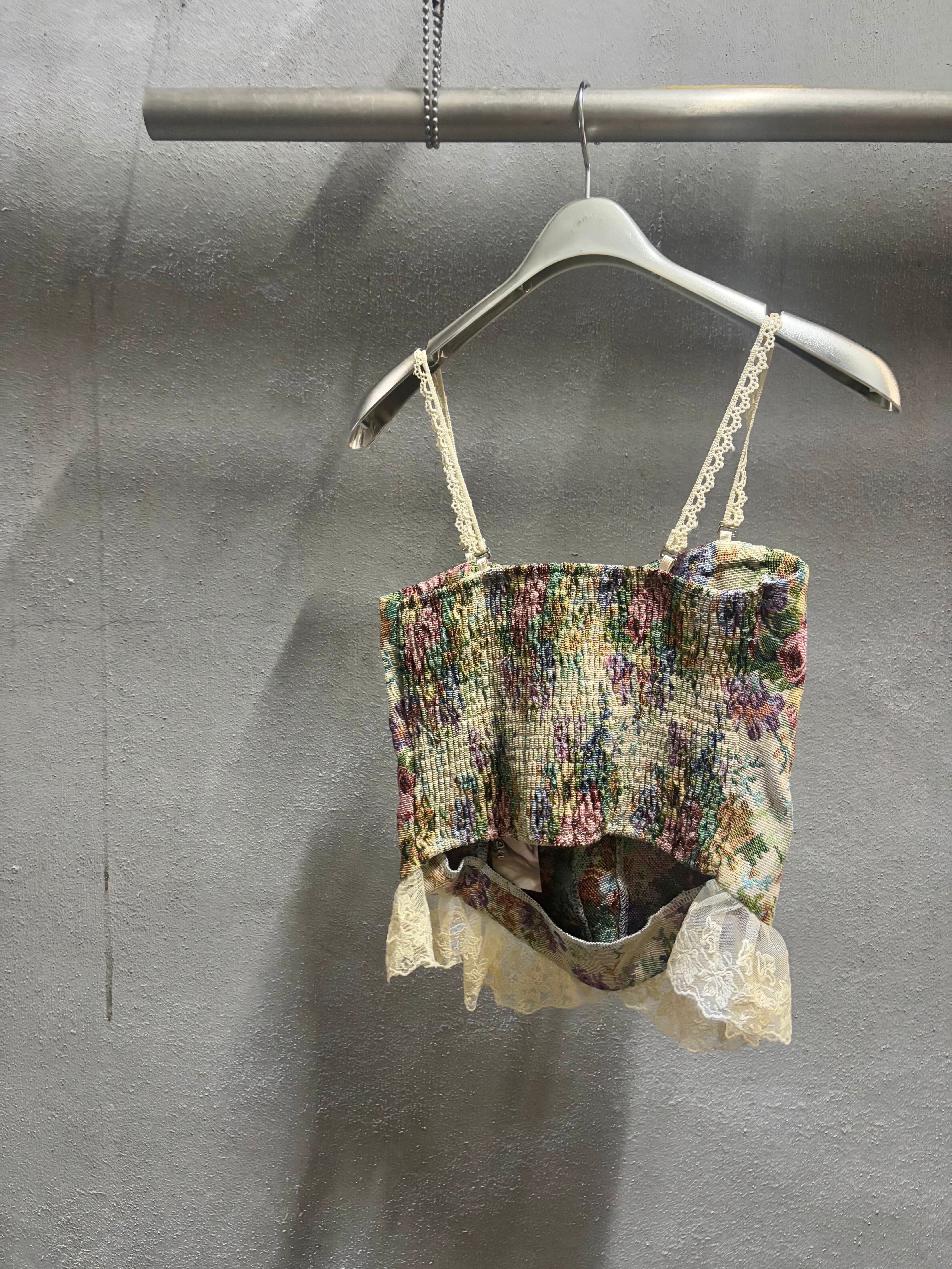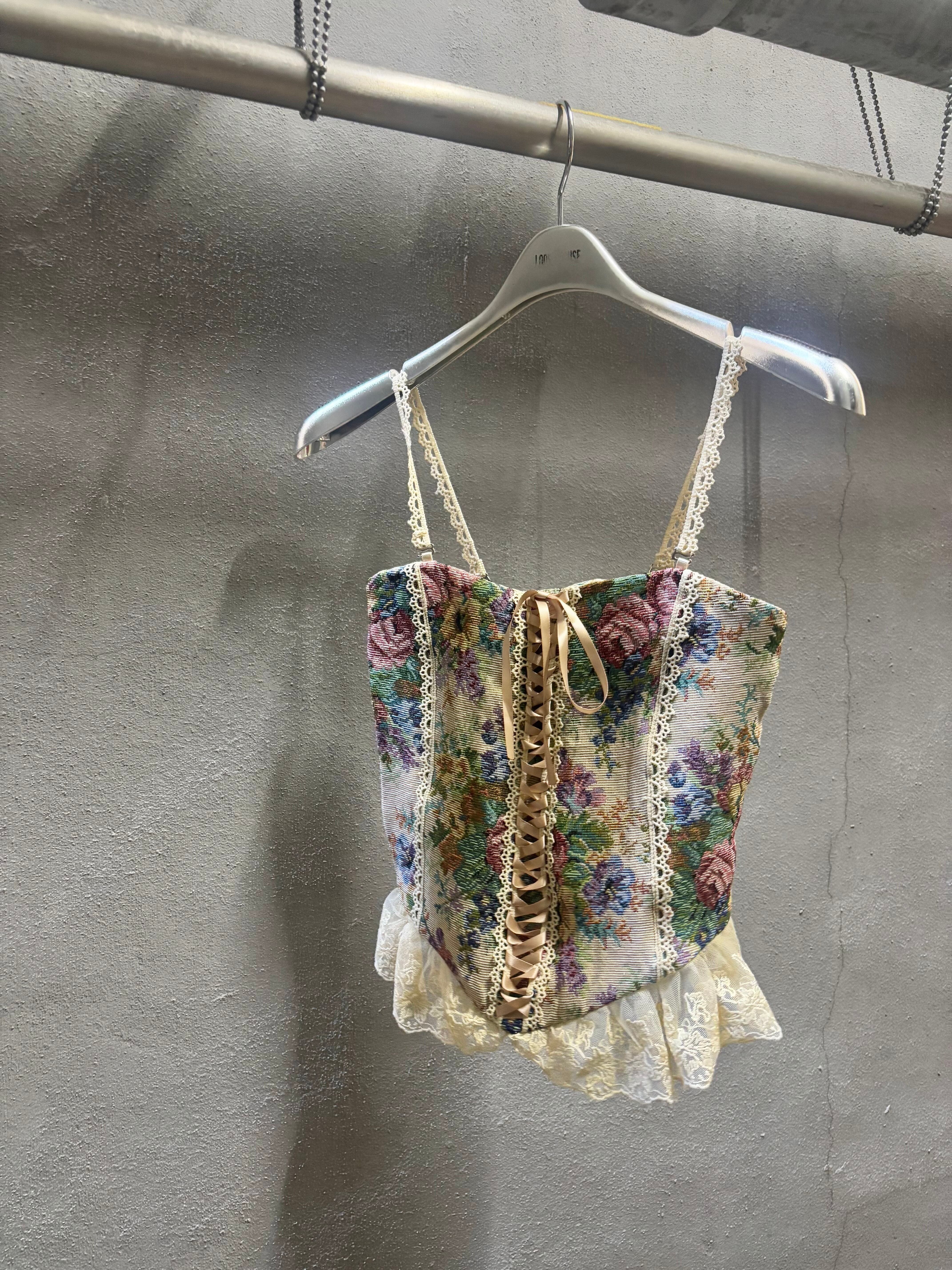 gobelins touch × lace up design bustier camisole キャミソール ビスチェ ゴブランタッチ レース レースアップ
