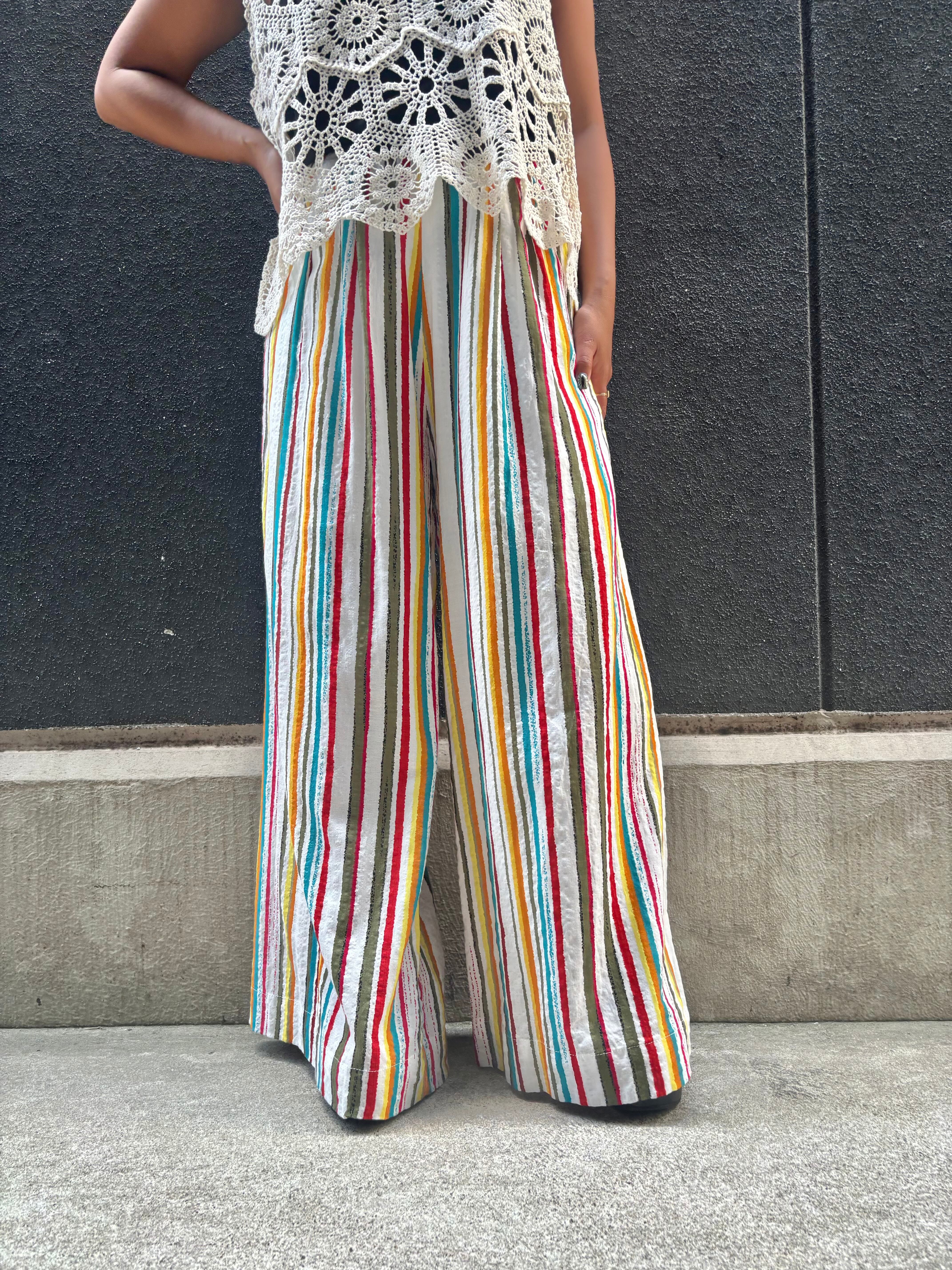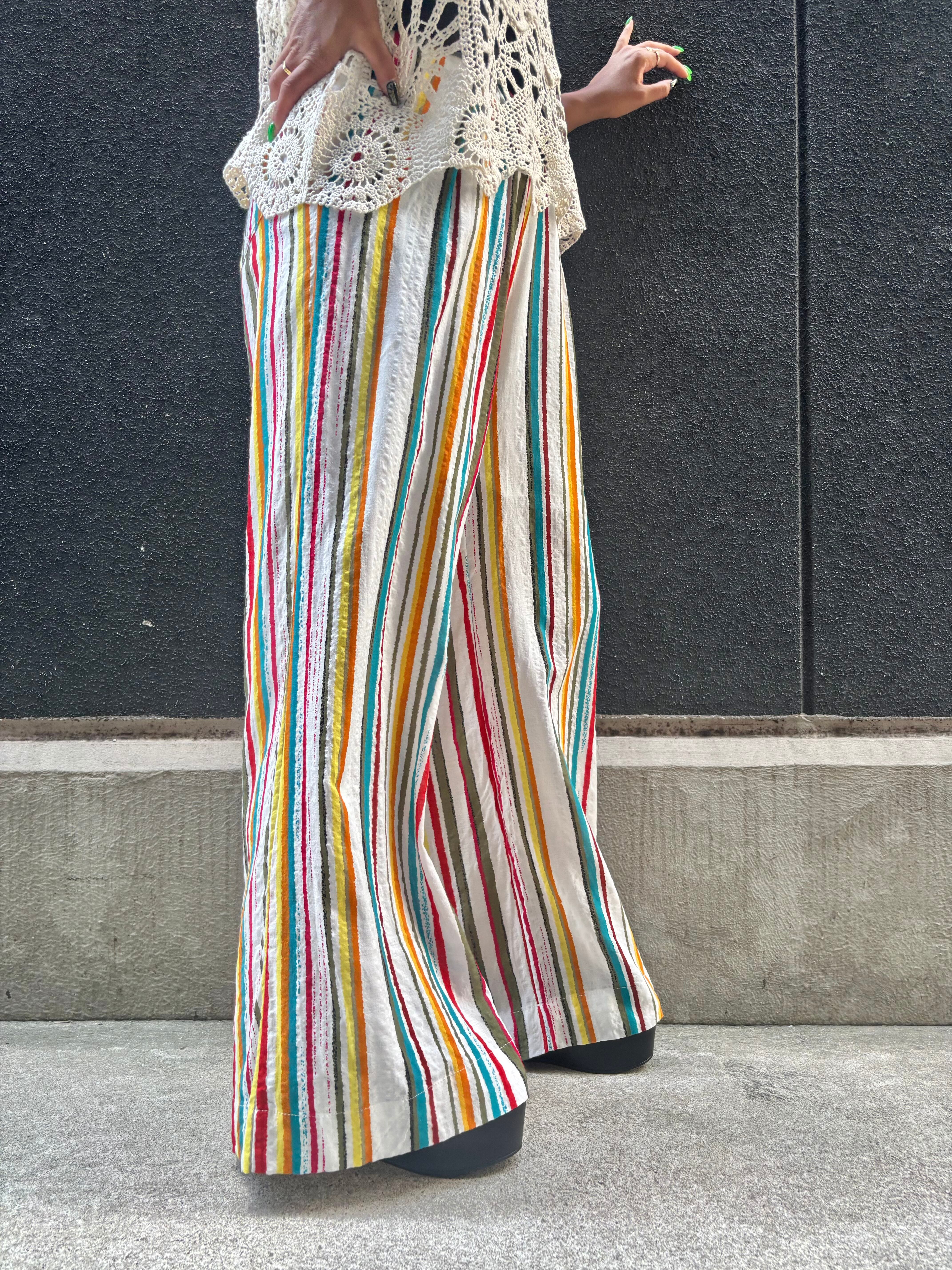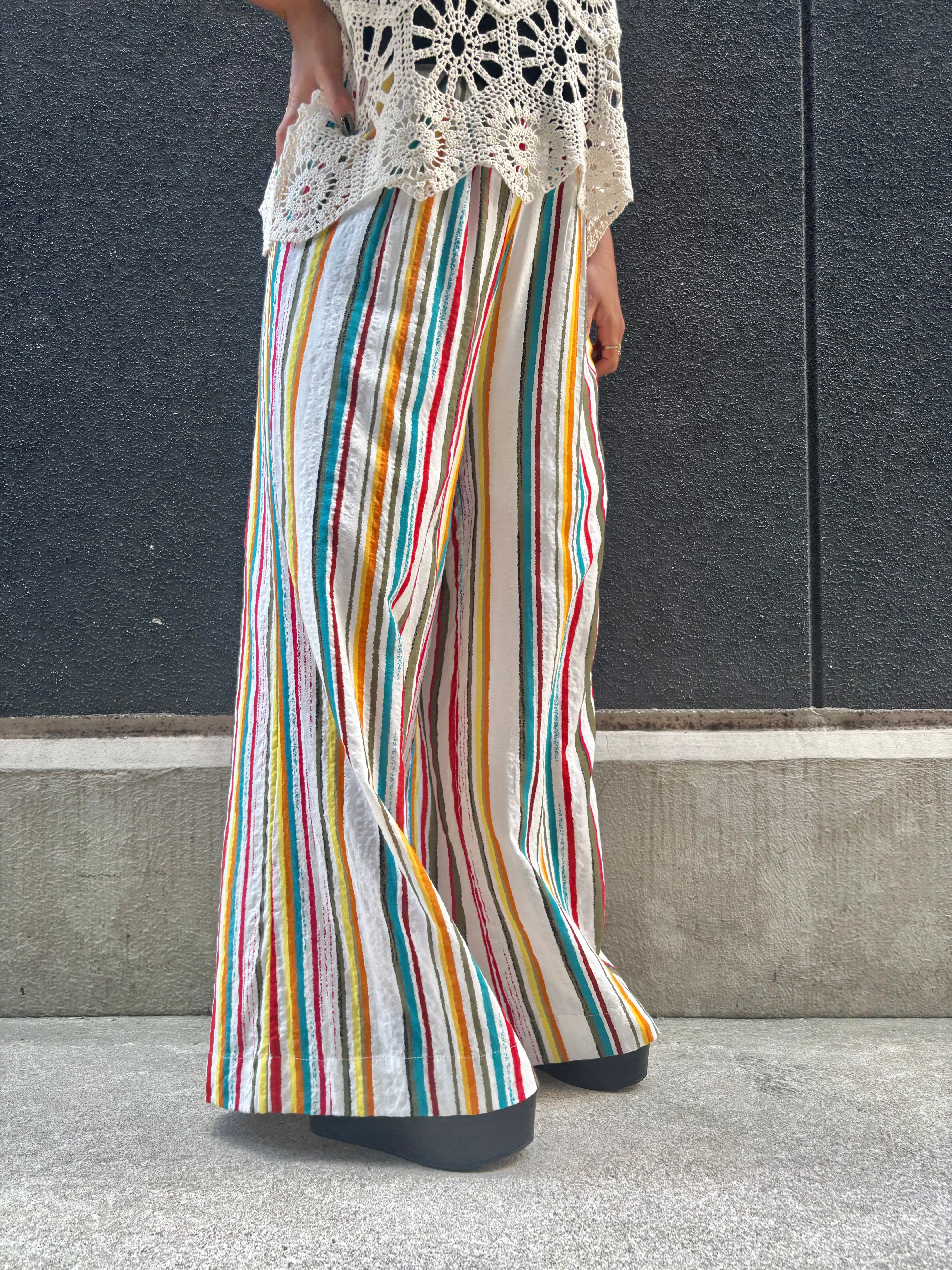 mix color stripe resort wide pants パンツ ワイドパンツ ストライプ レインボー リゾート