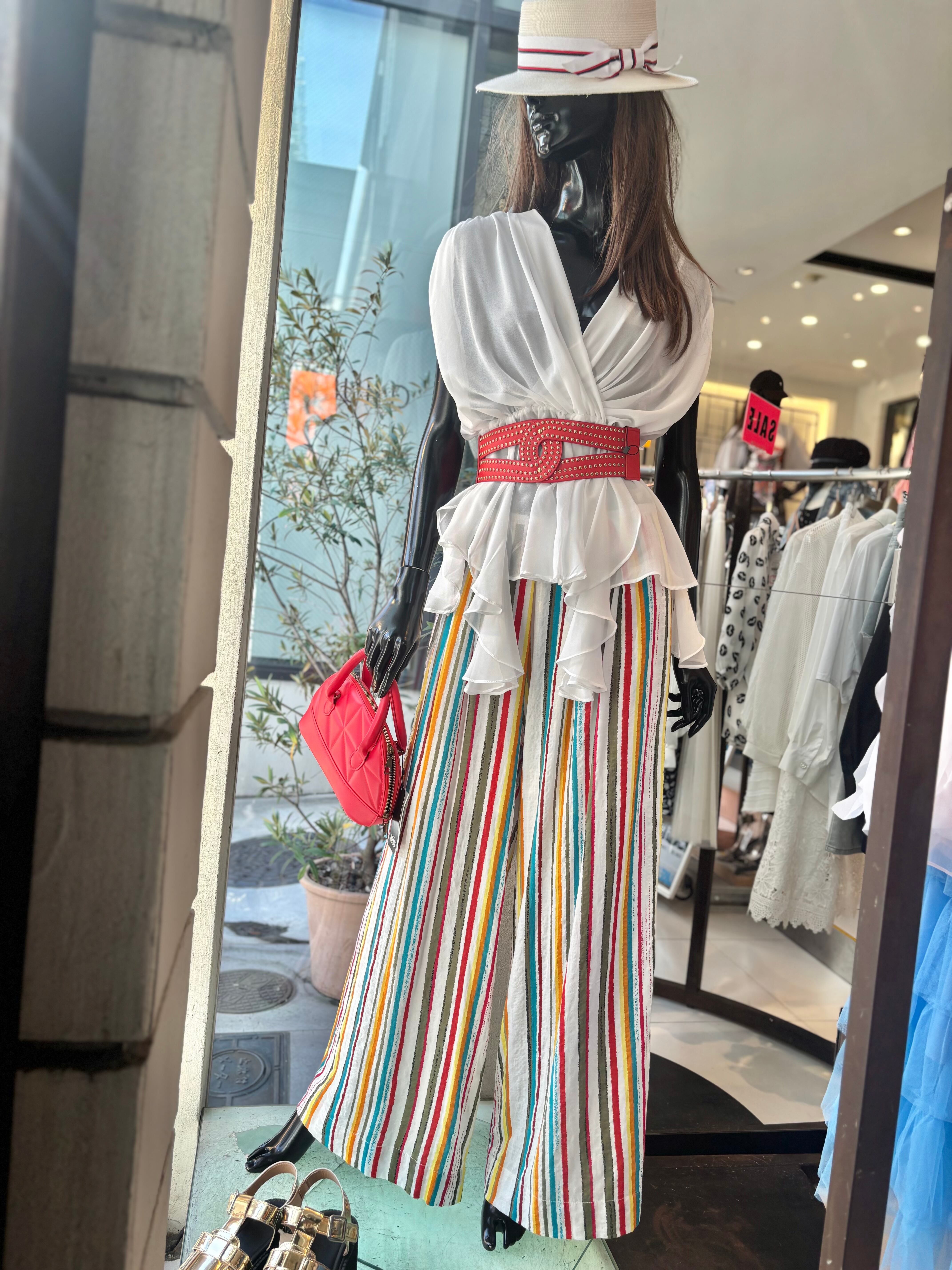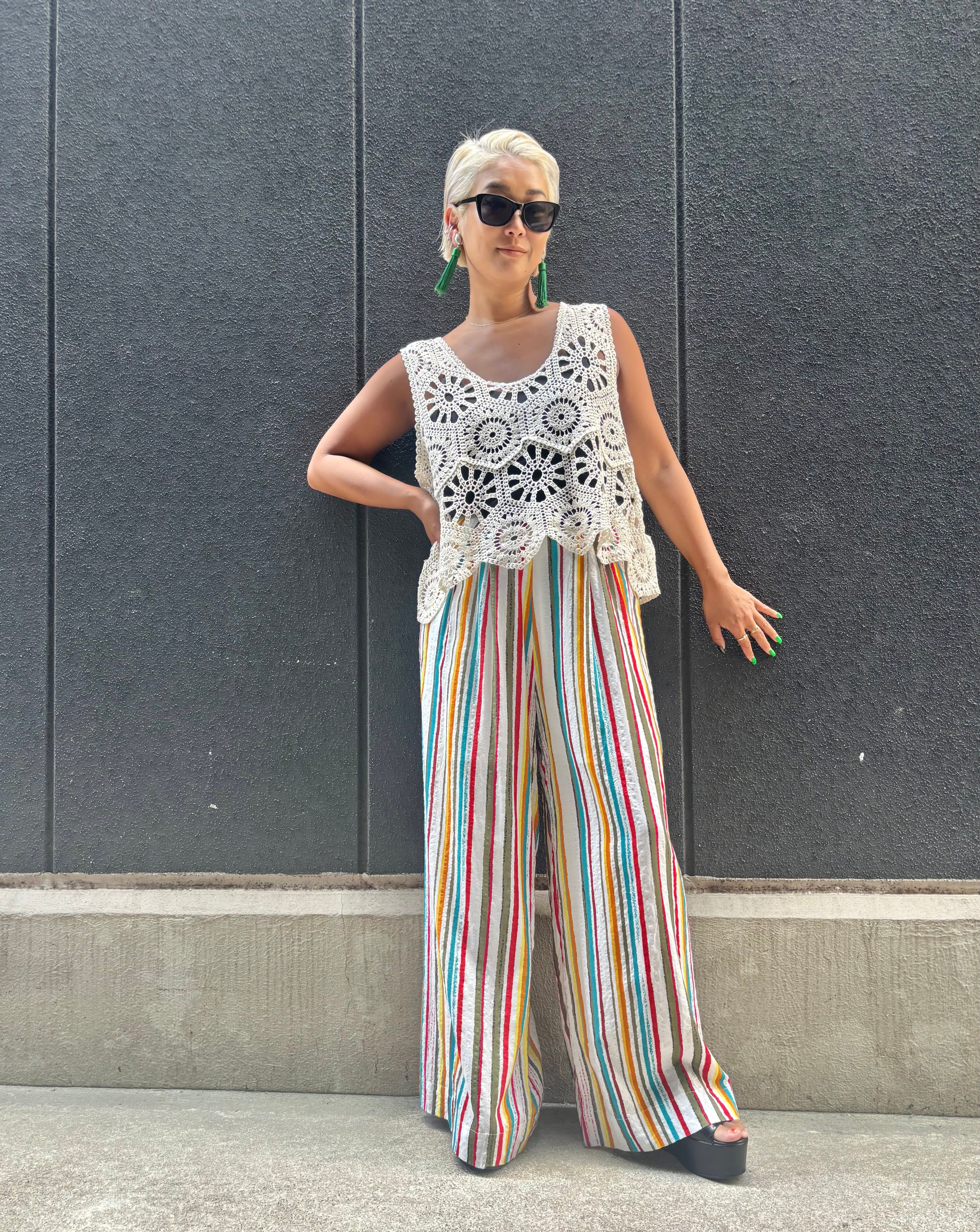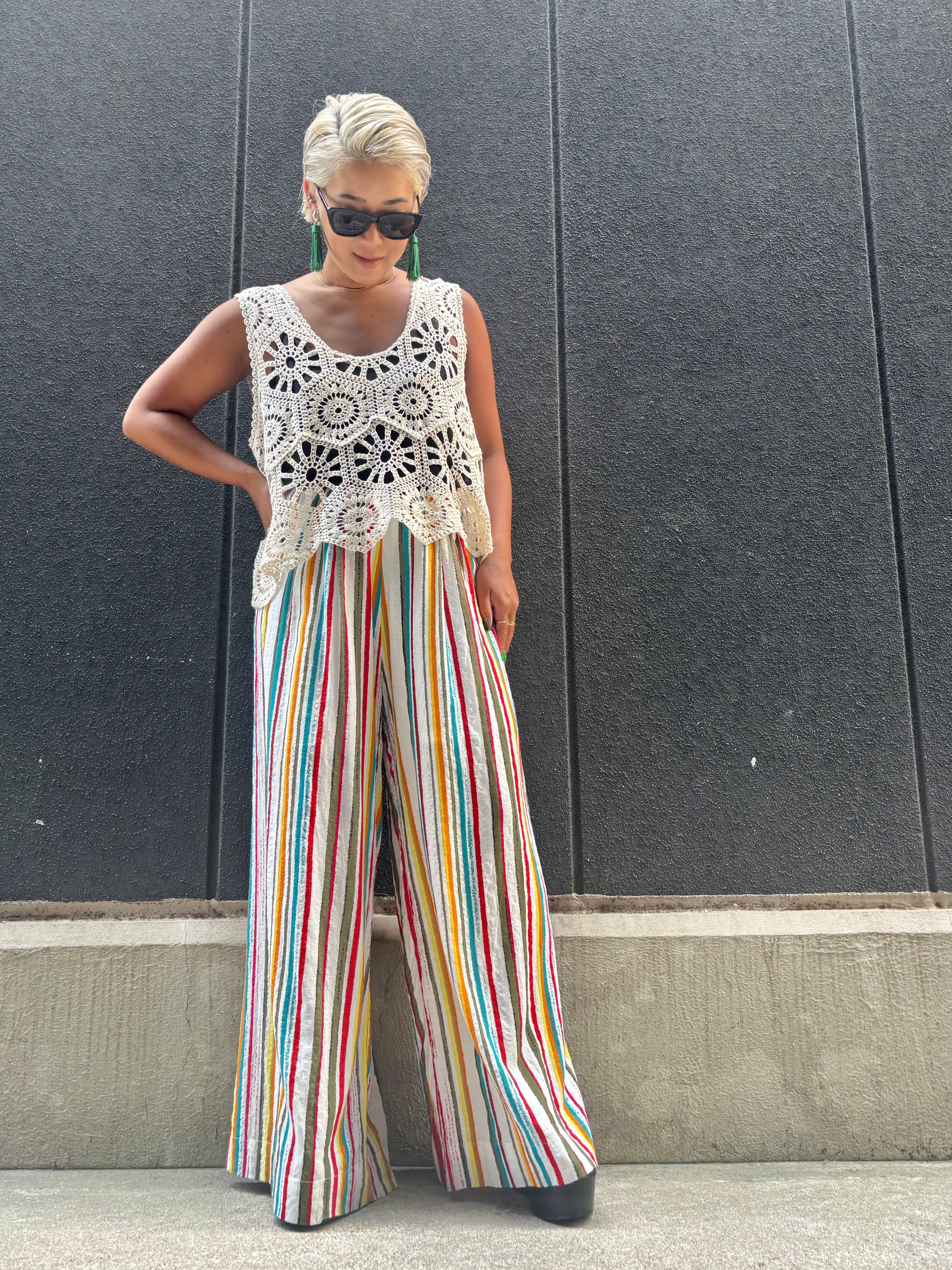 mix color stripe resort wide pants パンツ ワイドパンツ ストライプ レインボー リゾート