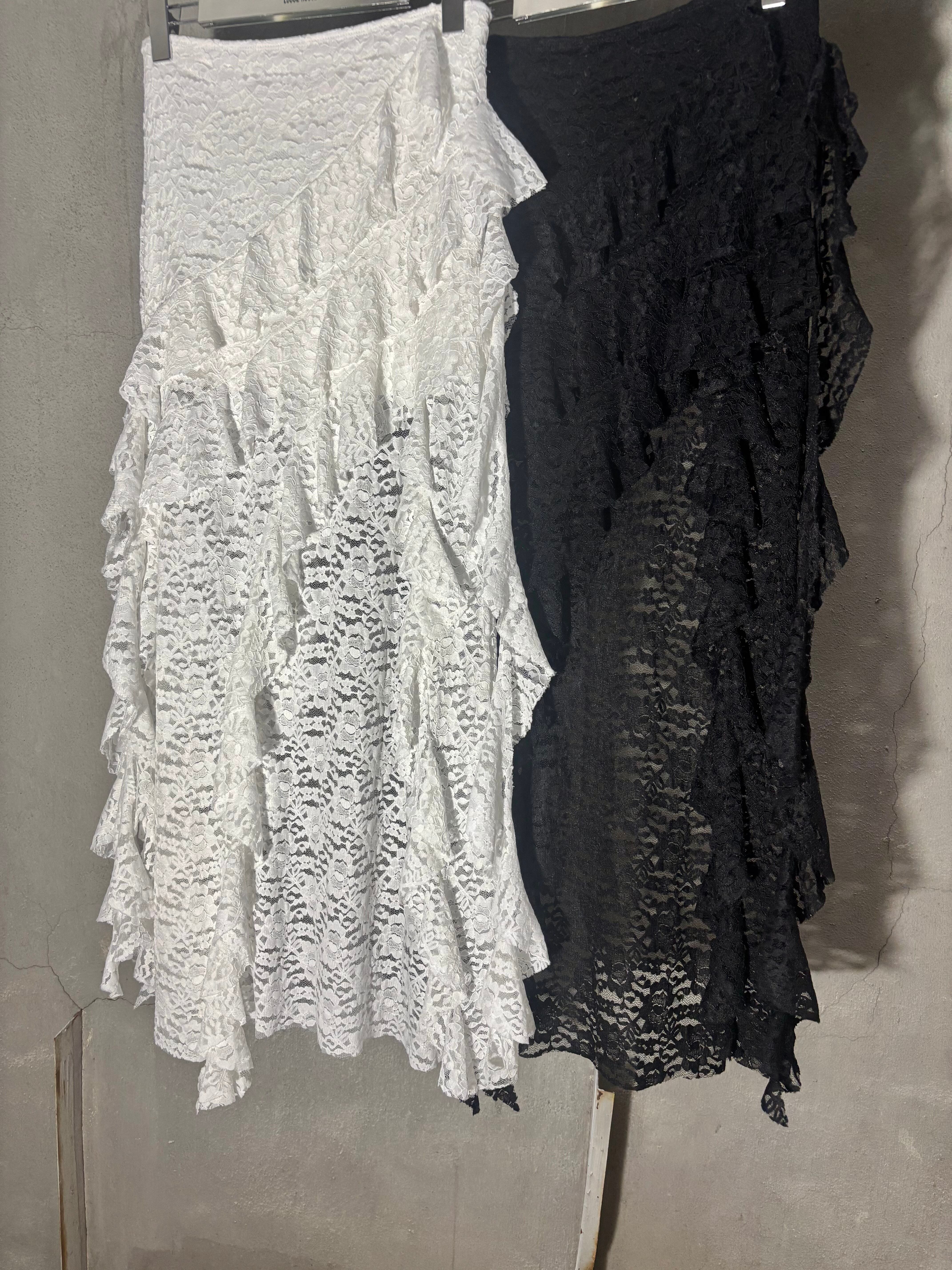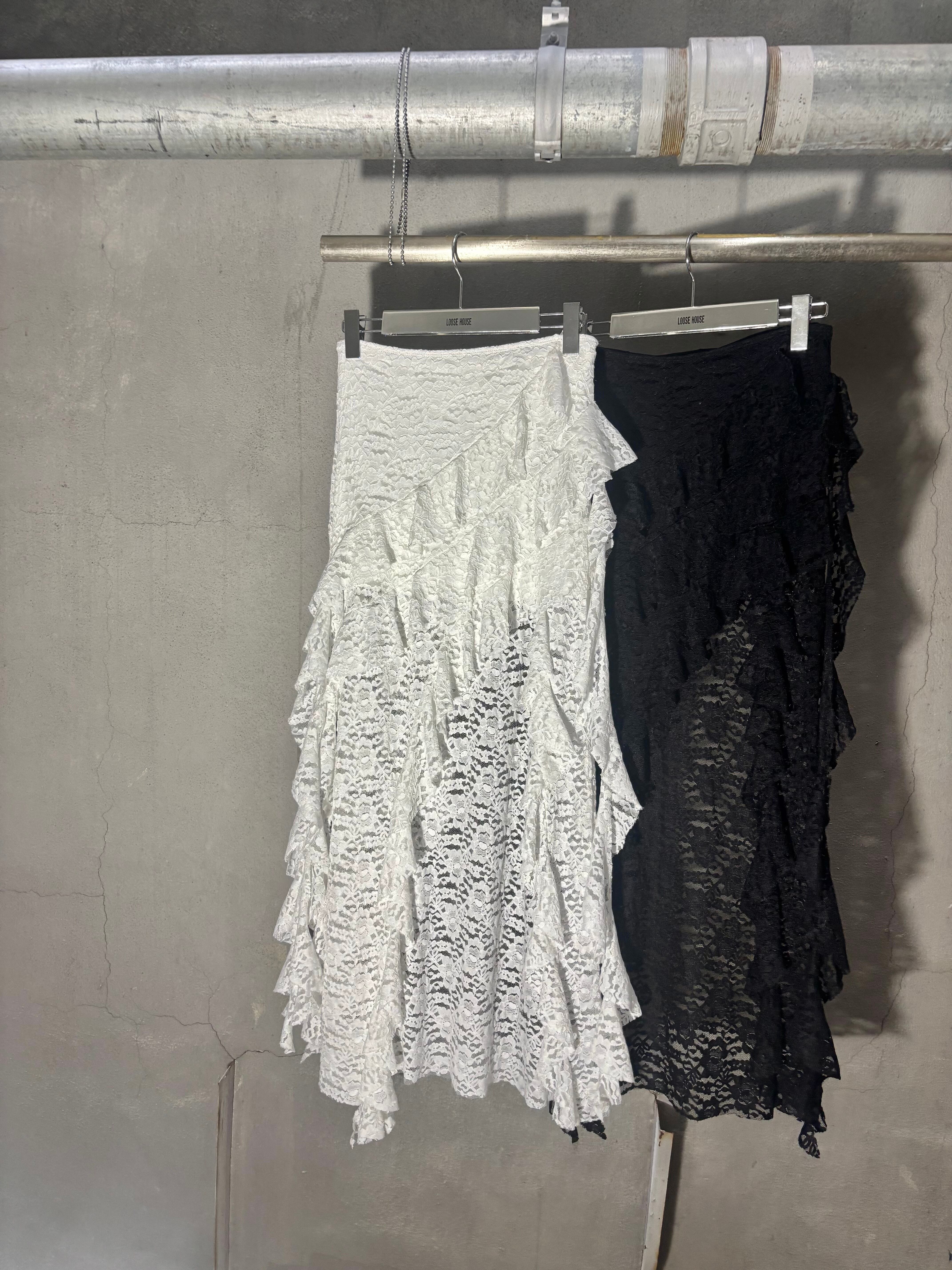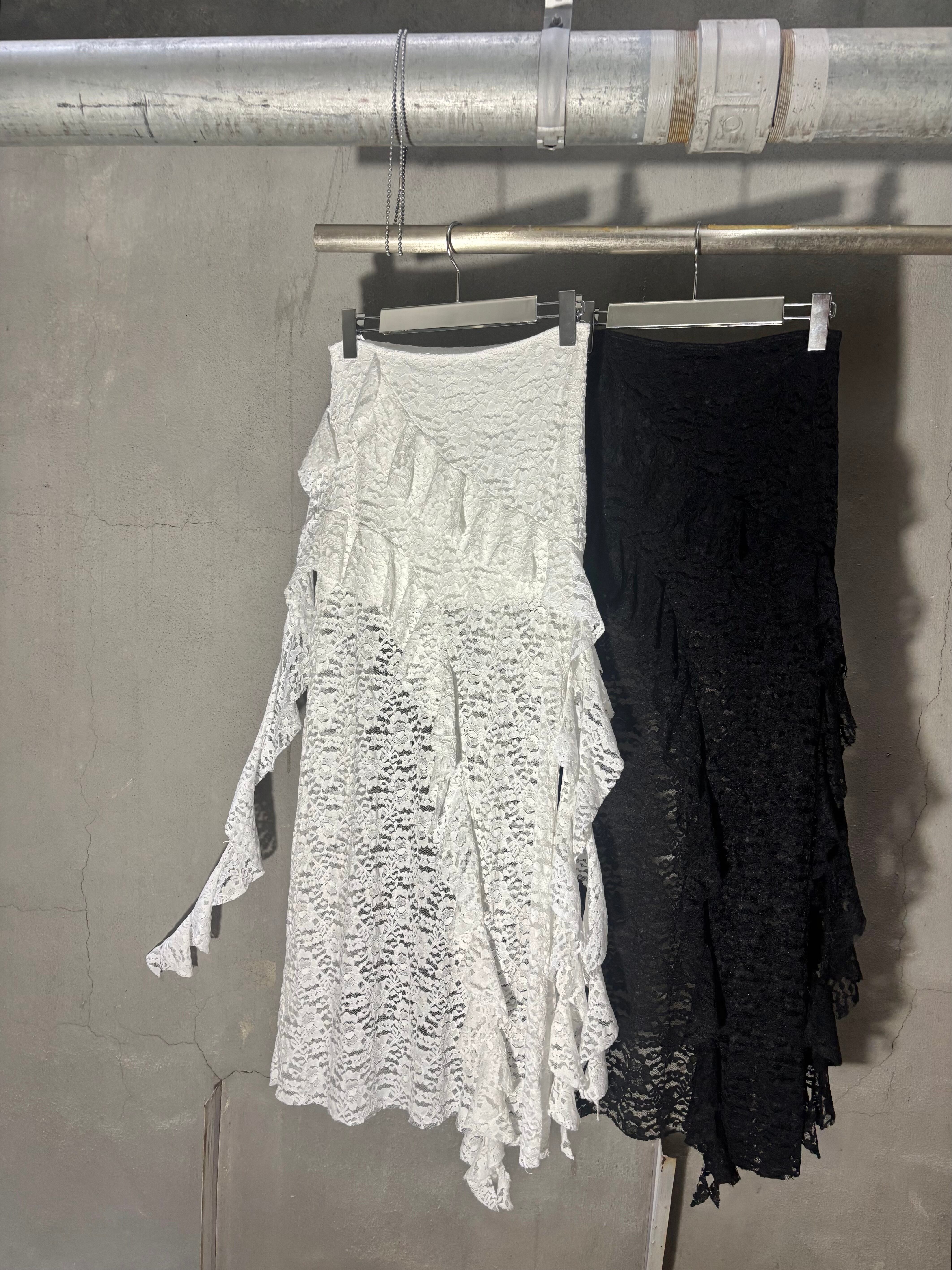 lace × frill fringe design skirt スカート レース フリル フリンジ アシンメトリー