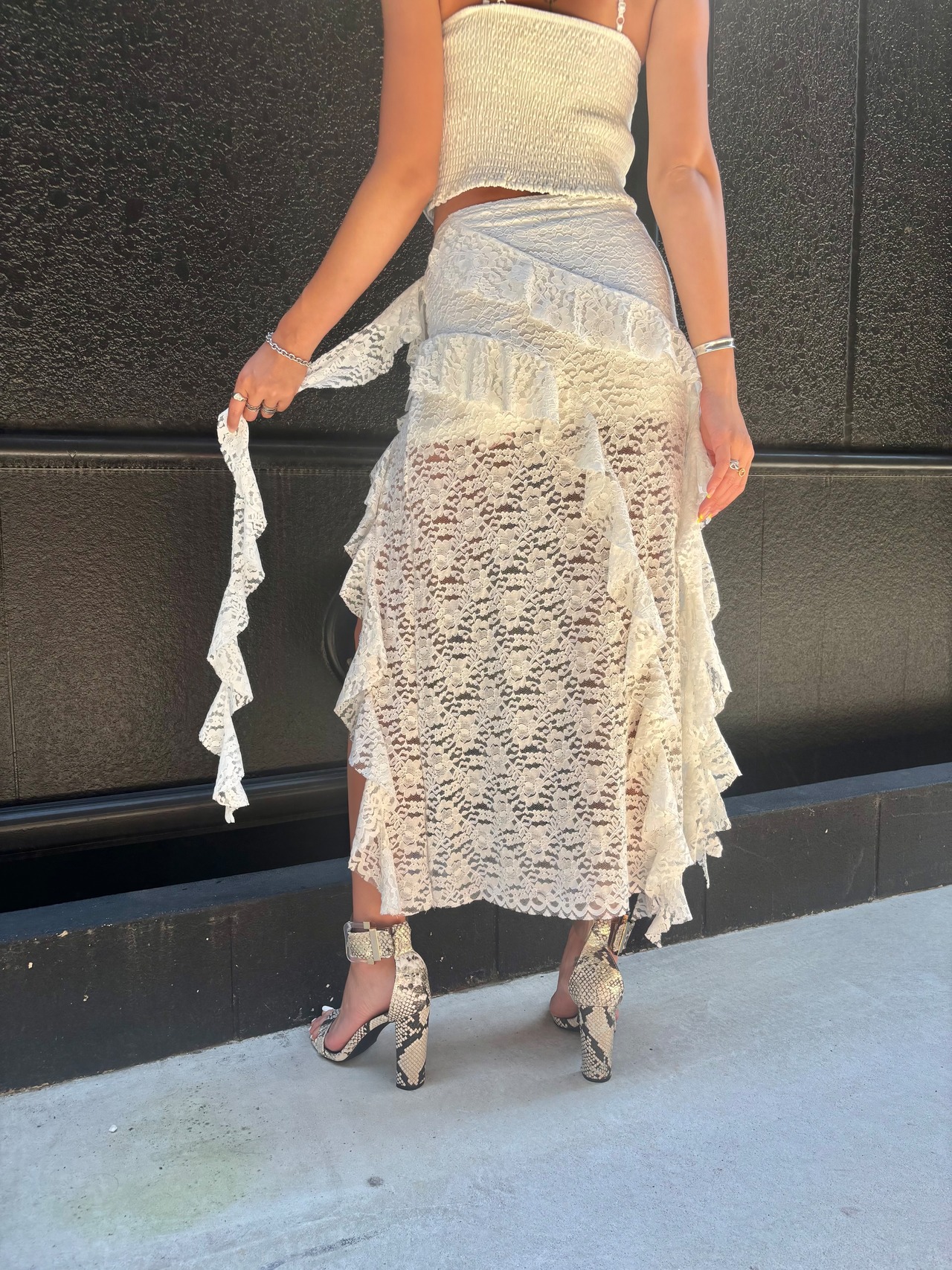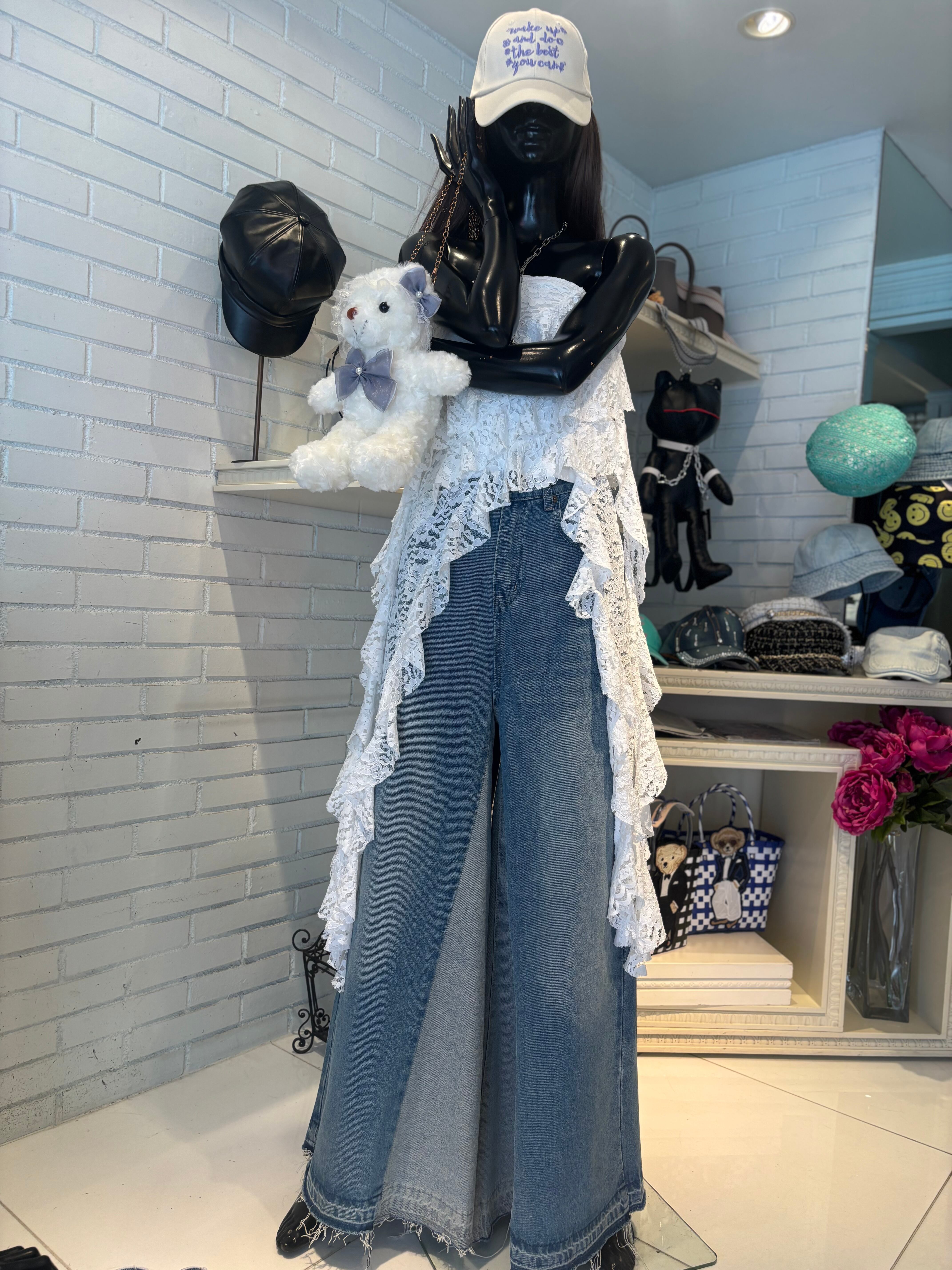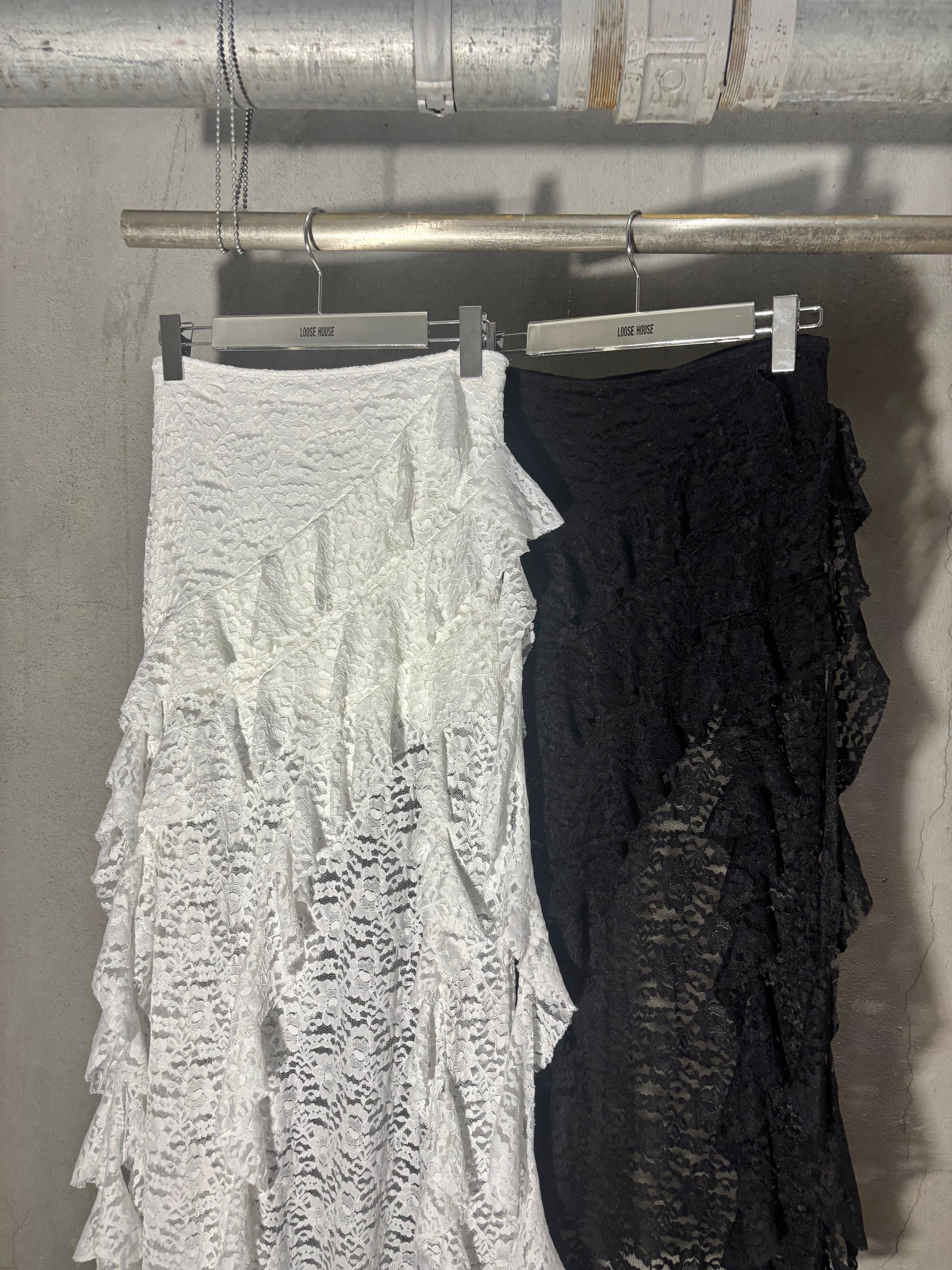 lace × frill fringe design skirt スカート レース フリル フリンジ アシンメトリー