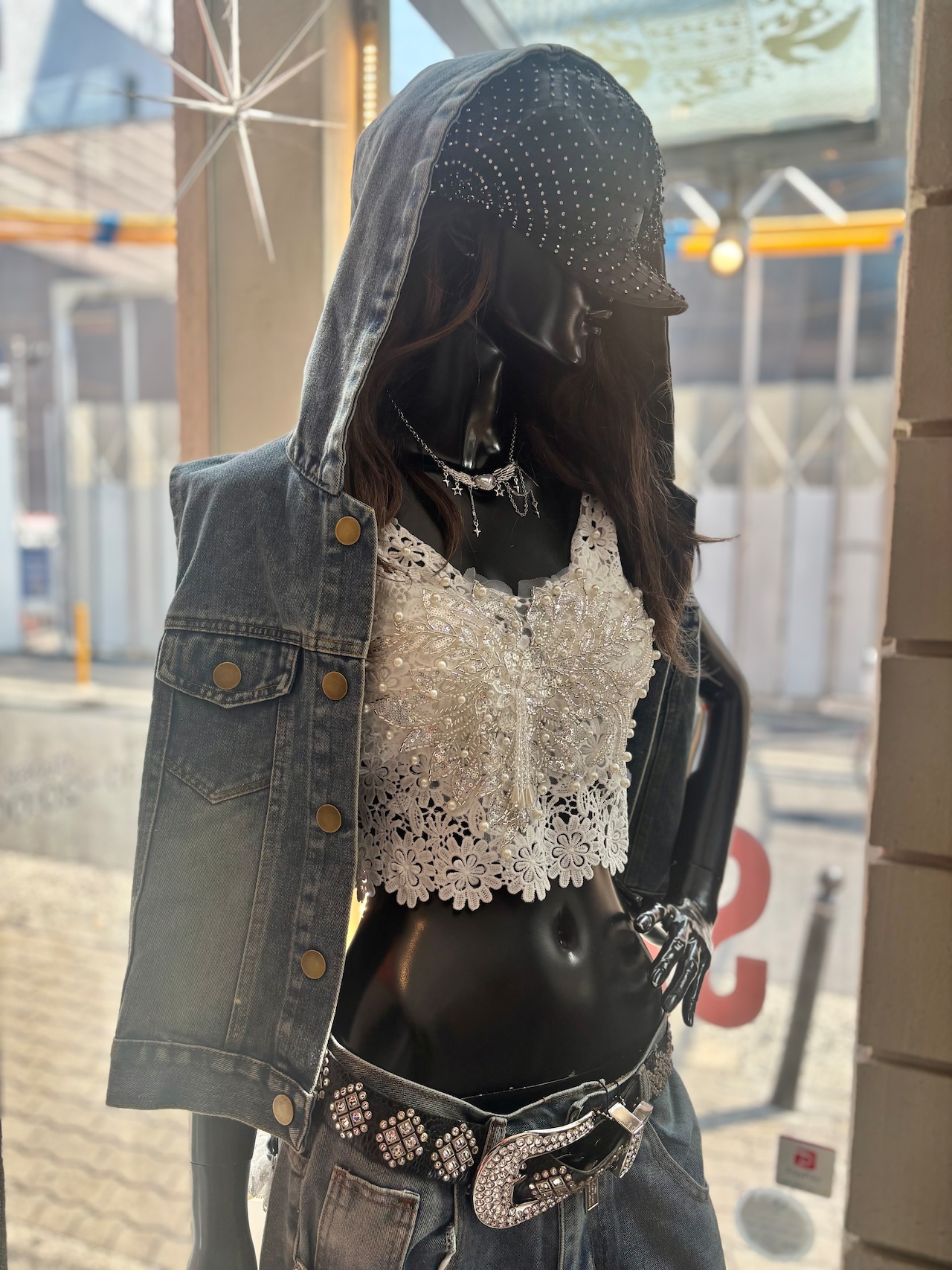 flower lace × bead design camisole キャミソール レース ビーズ パール 刺繍