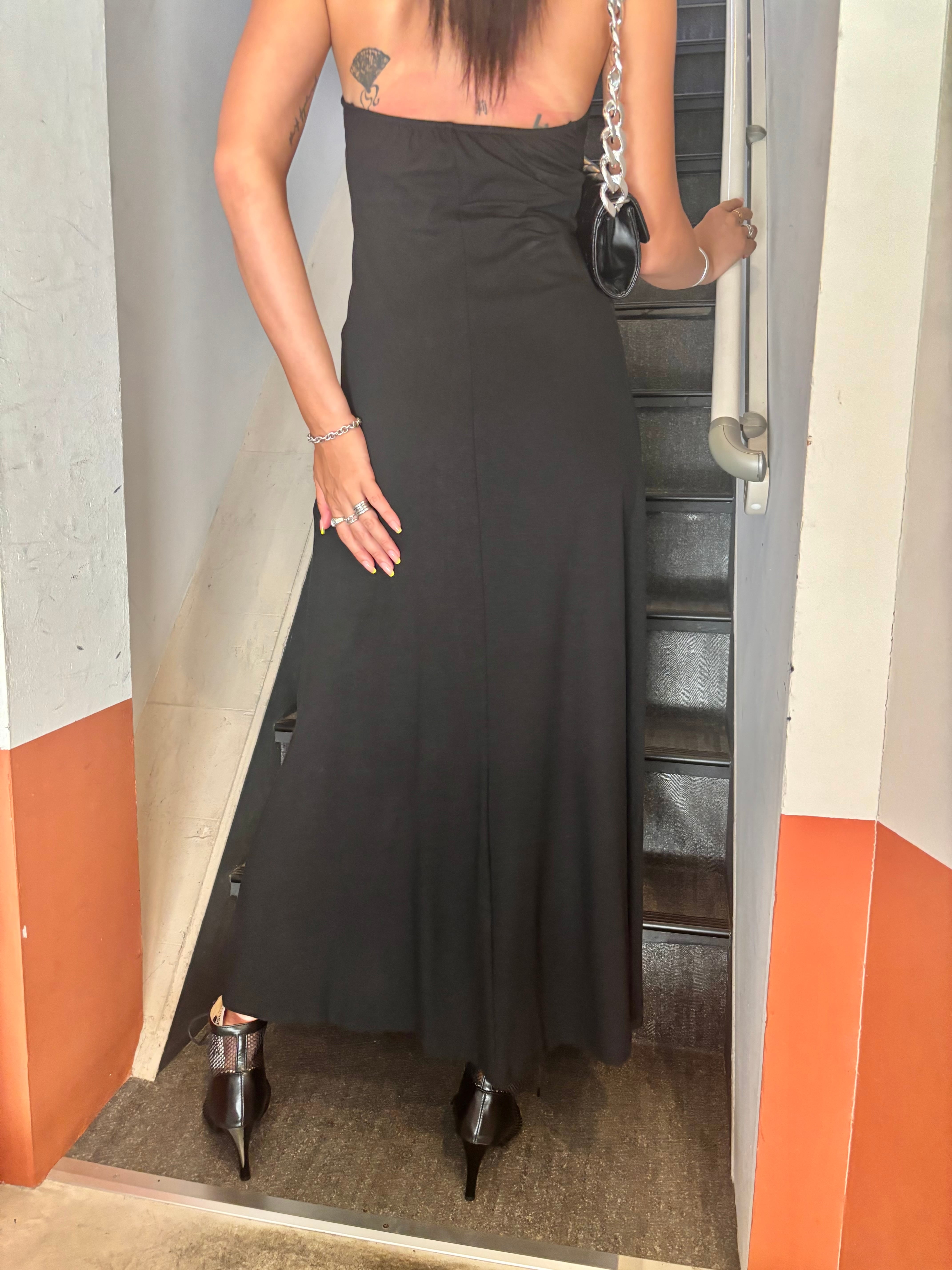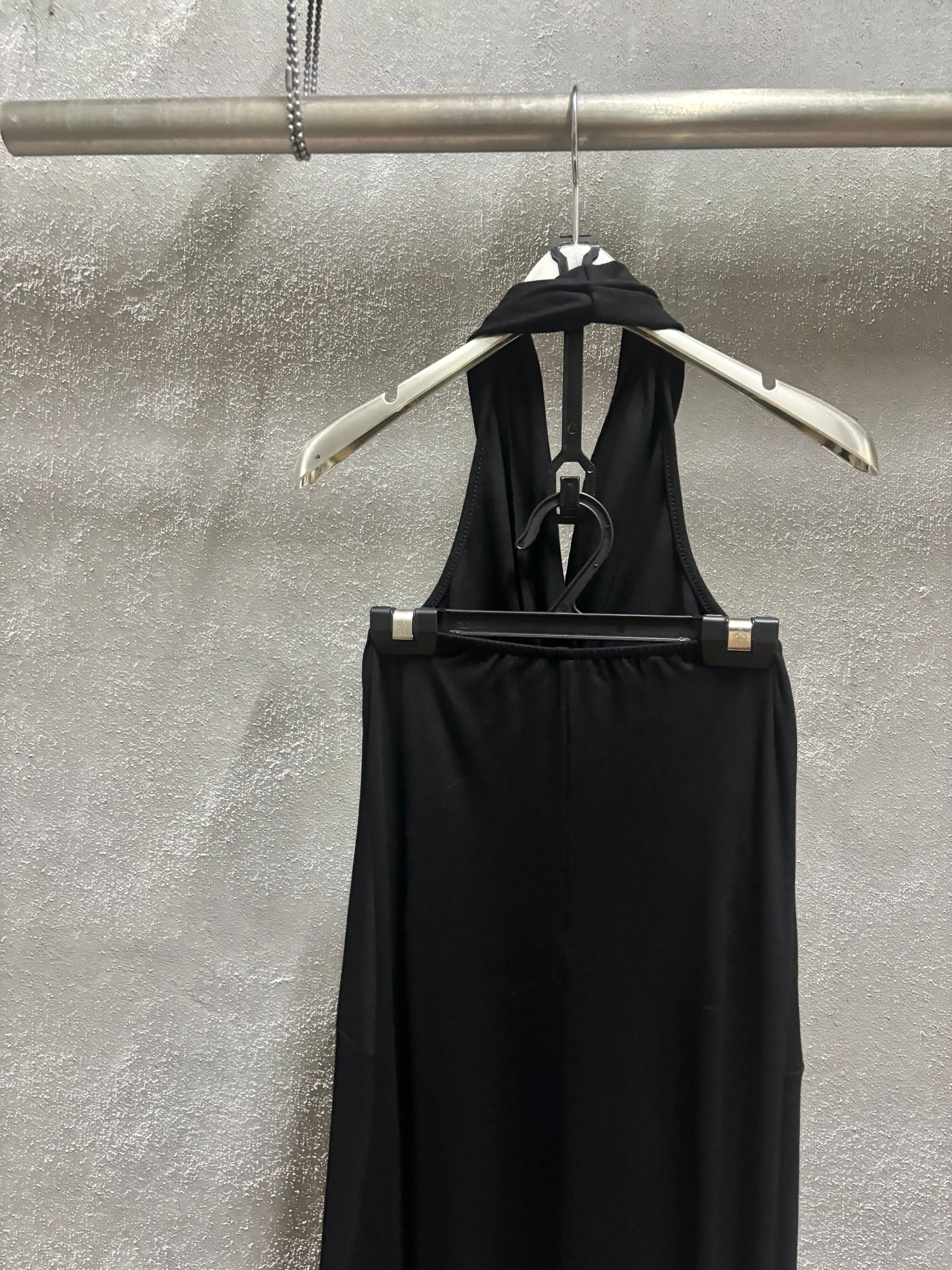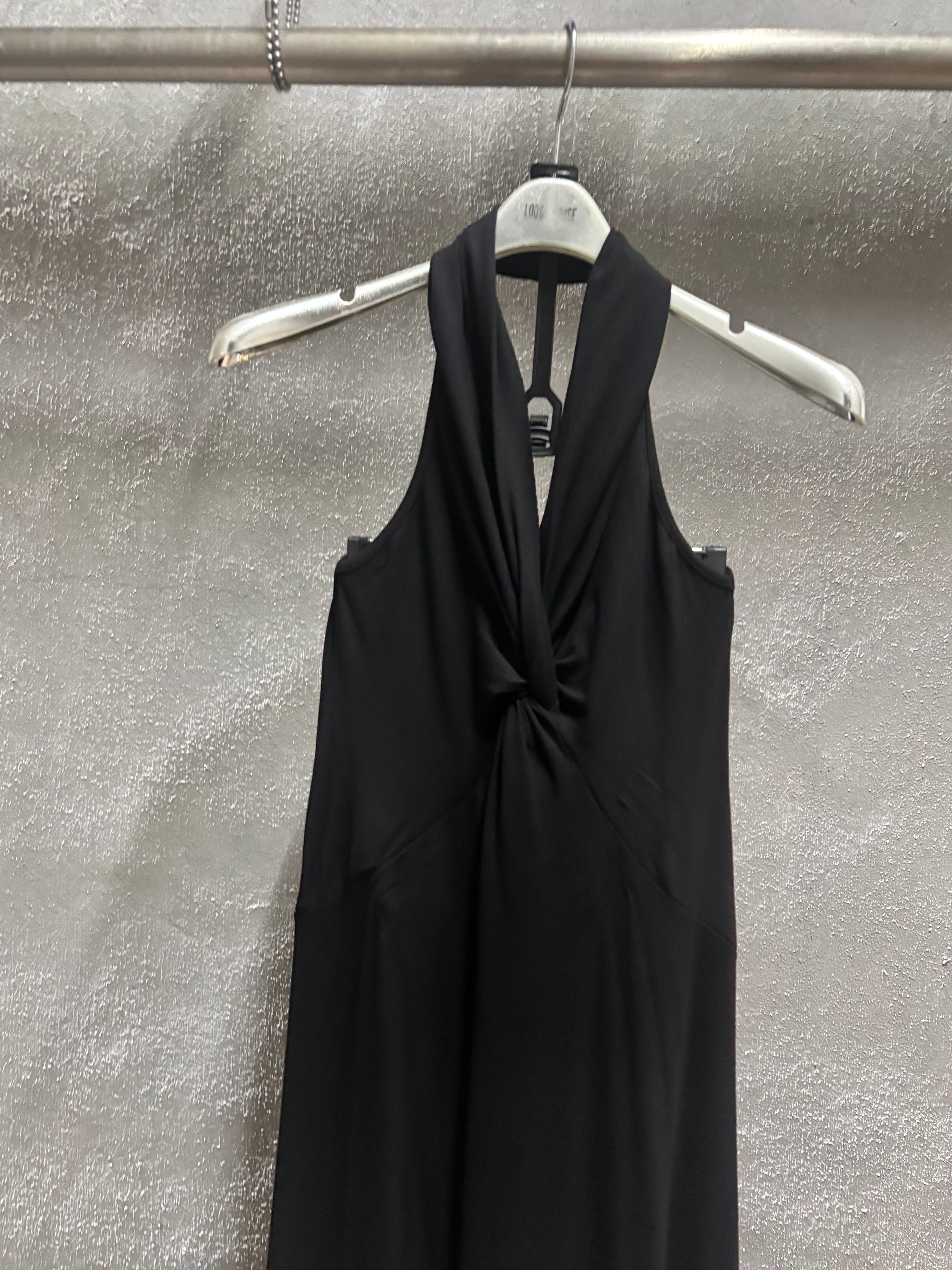 twist front × holder neck design long one-piece ワンピース ロングワンピ ブラック 黒 ドレス ホルターネック ツイスト