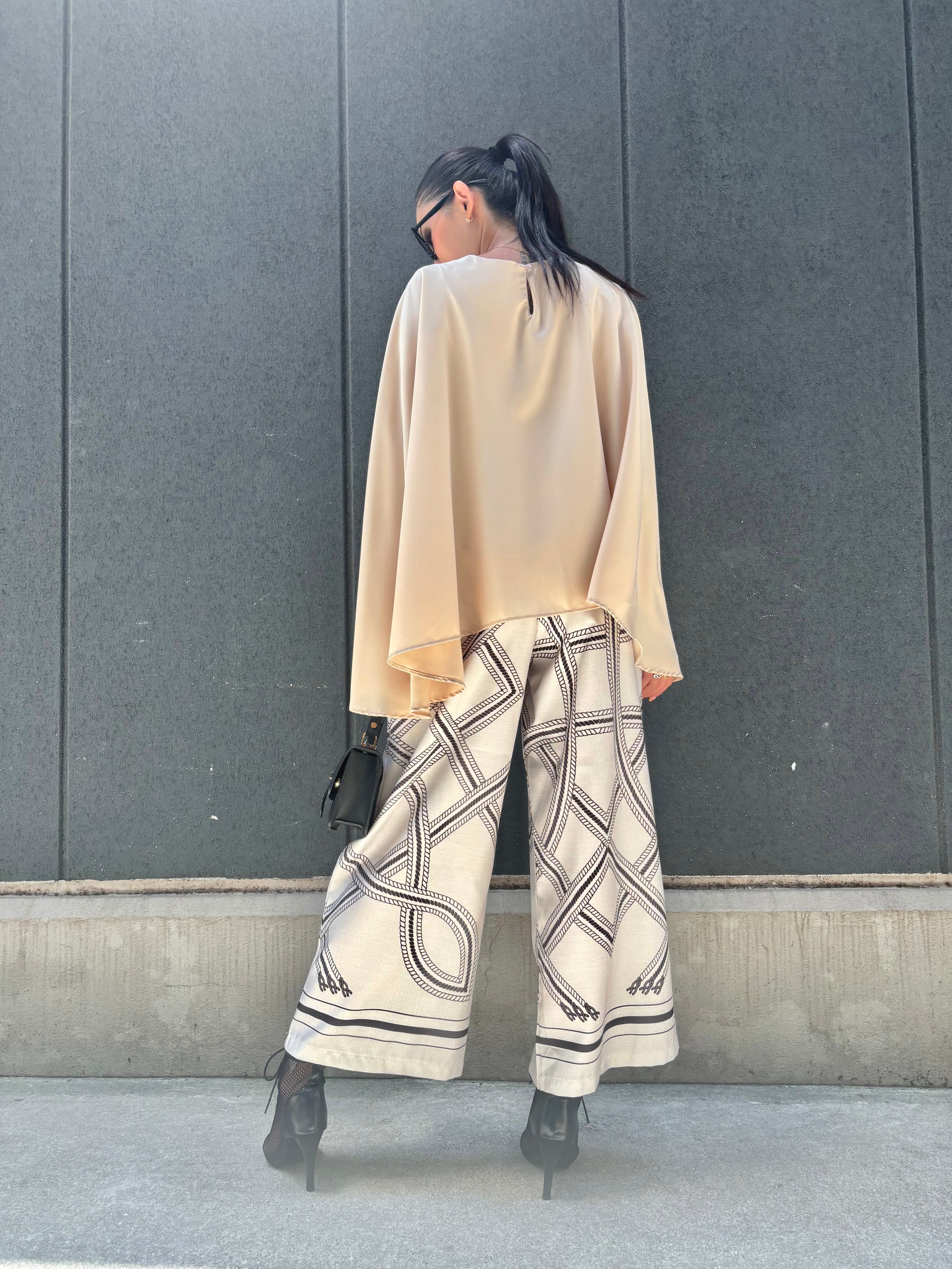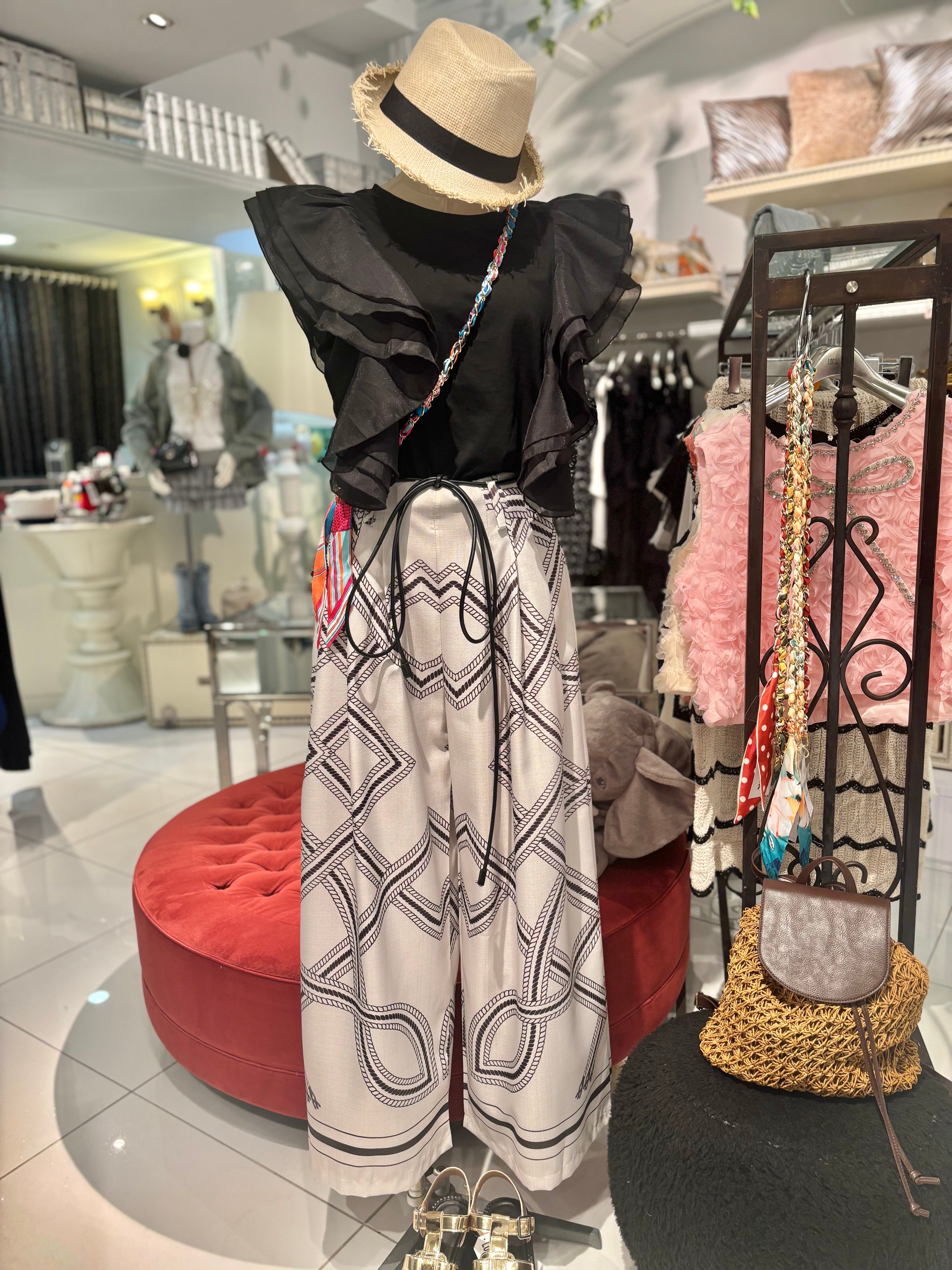 bi-color print wide pants パンツ ワイドパンツ プリント バイカラー 革紐風ベルト