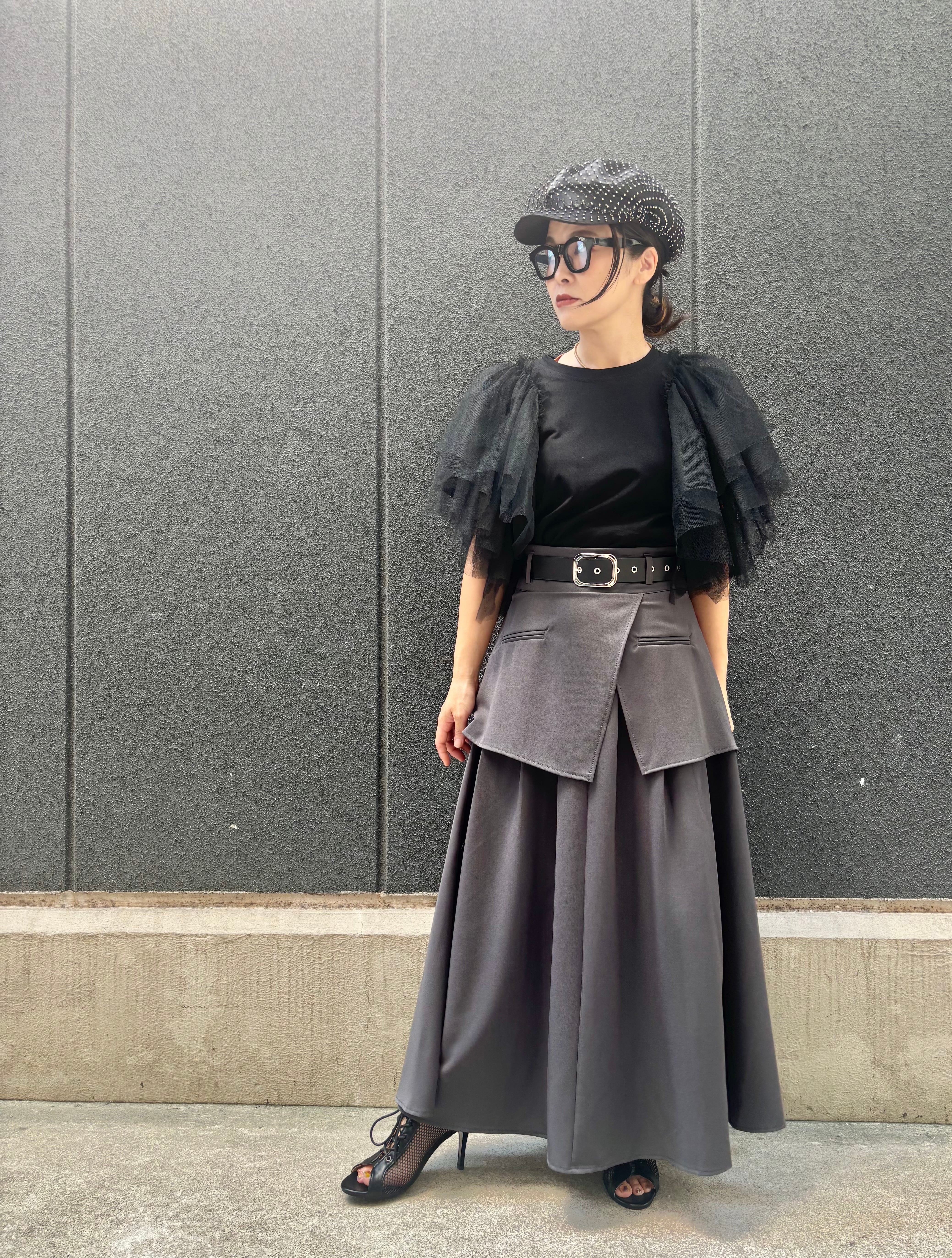 docking design long skirt belt set スカート ロングスカート 重ね着風 ベルト セット