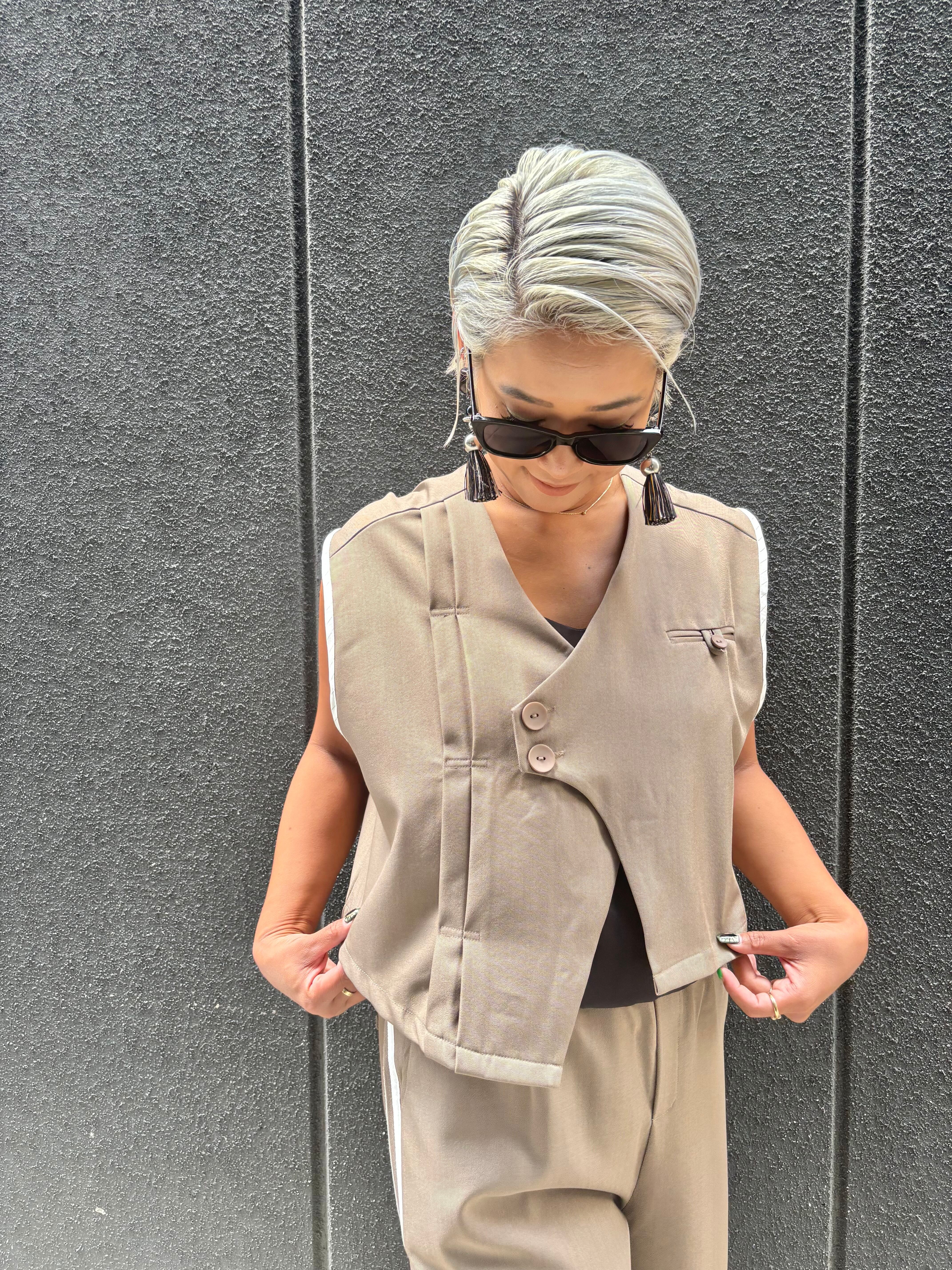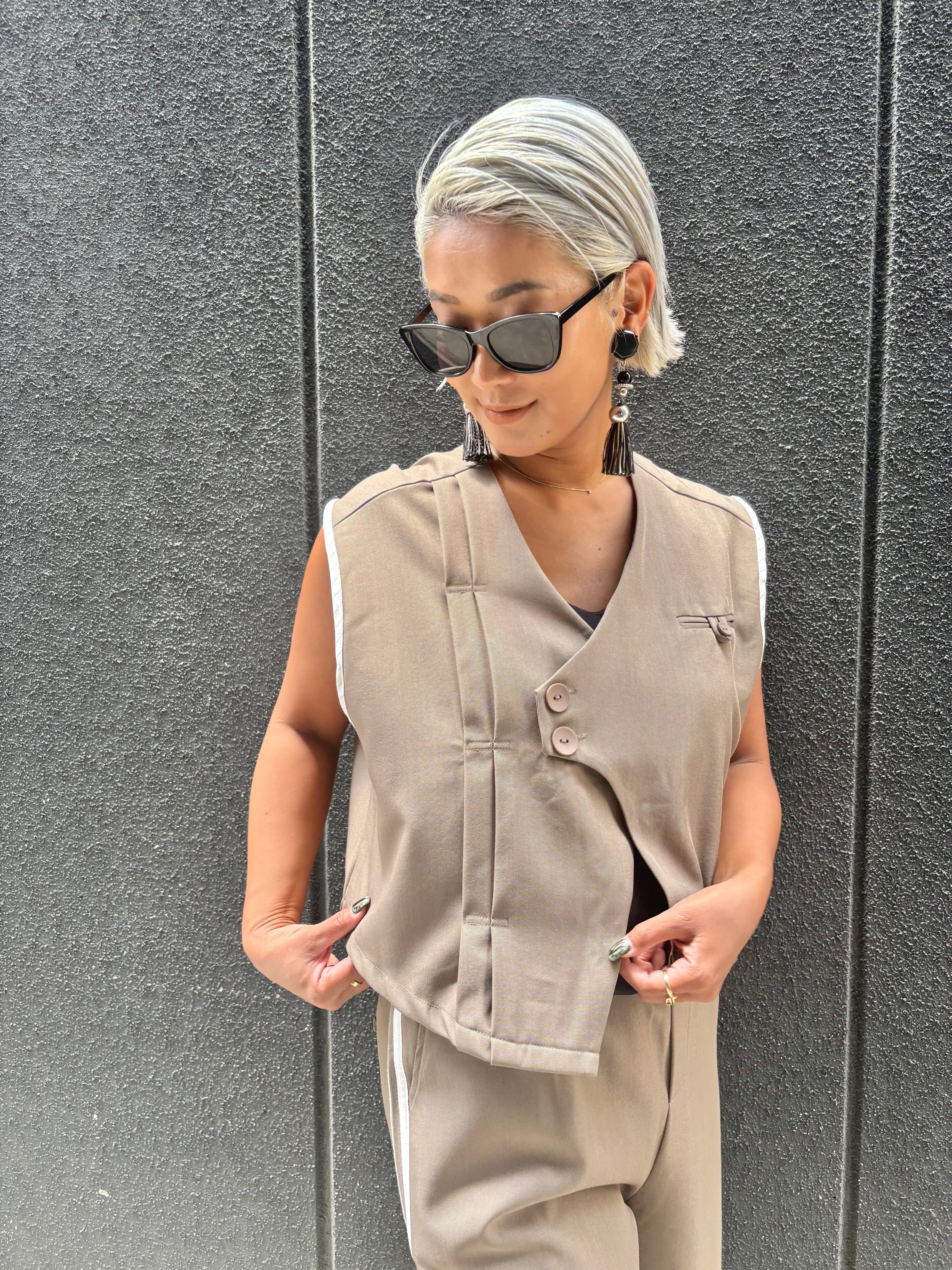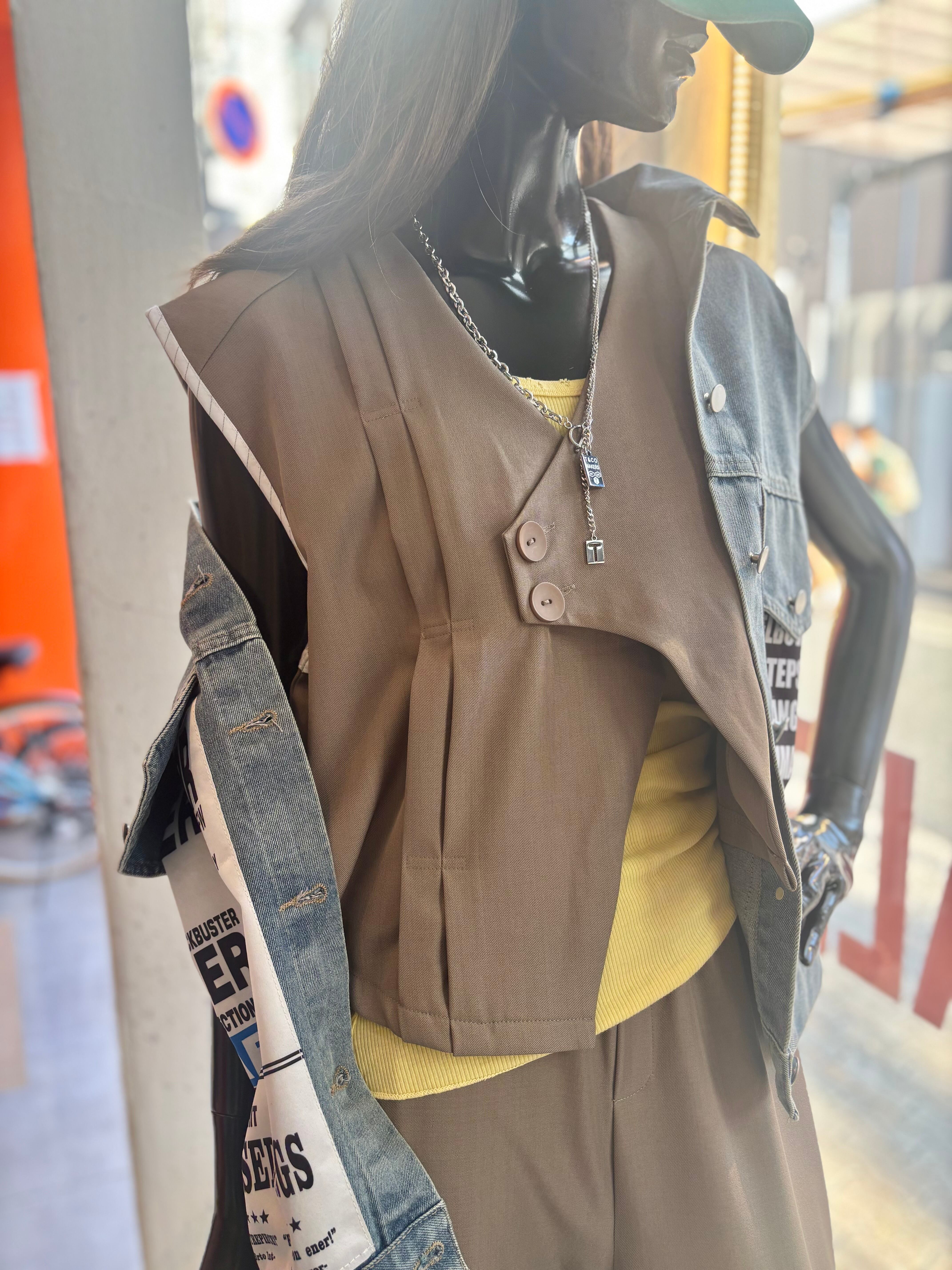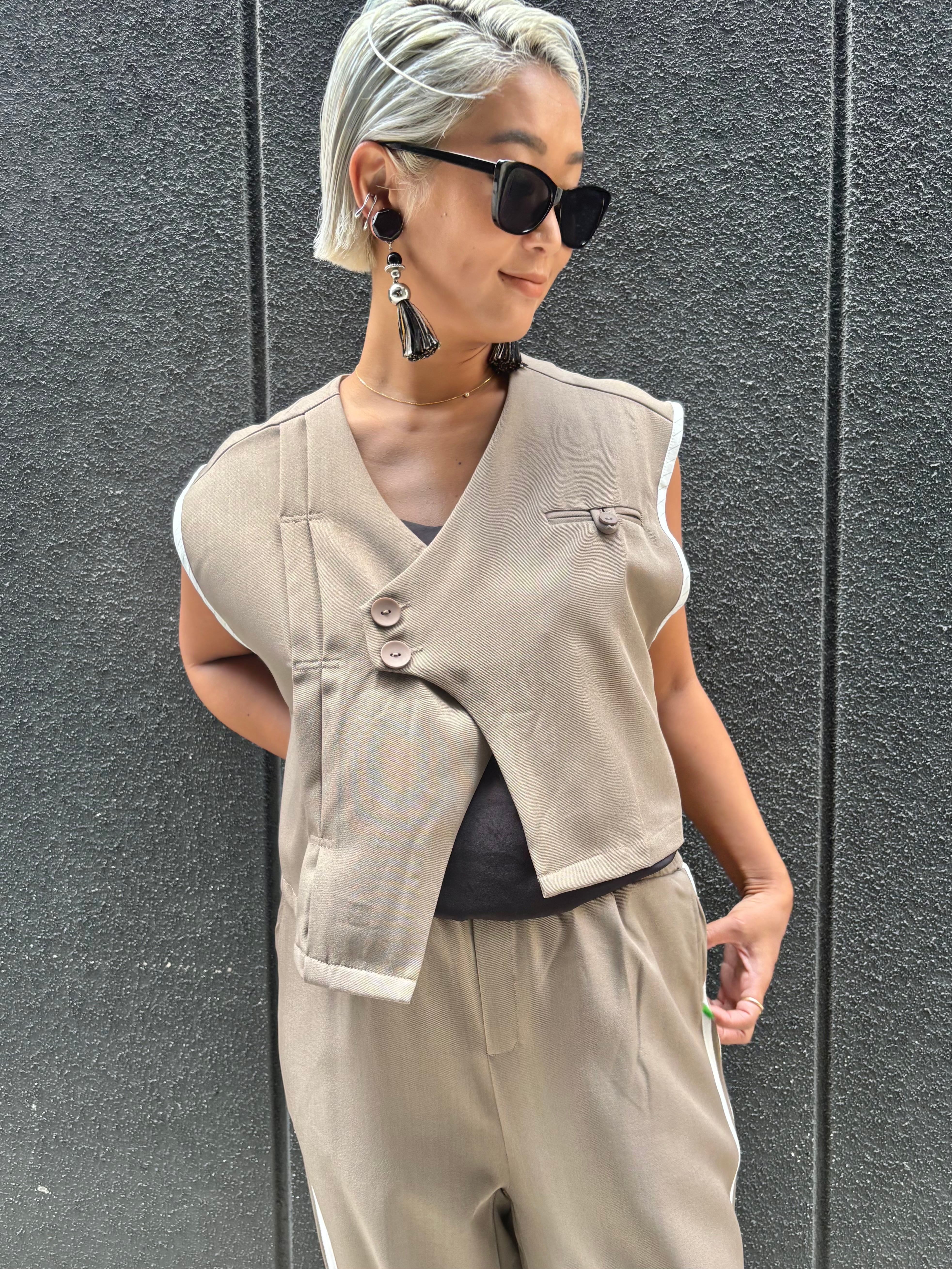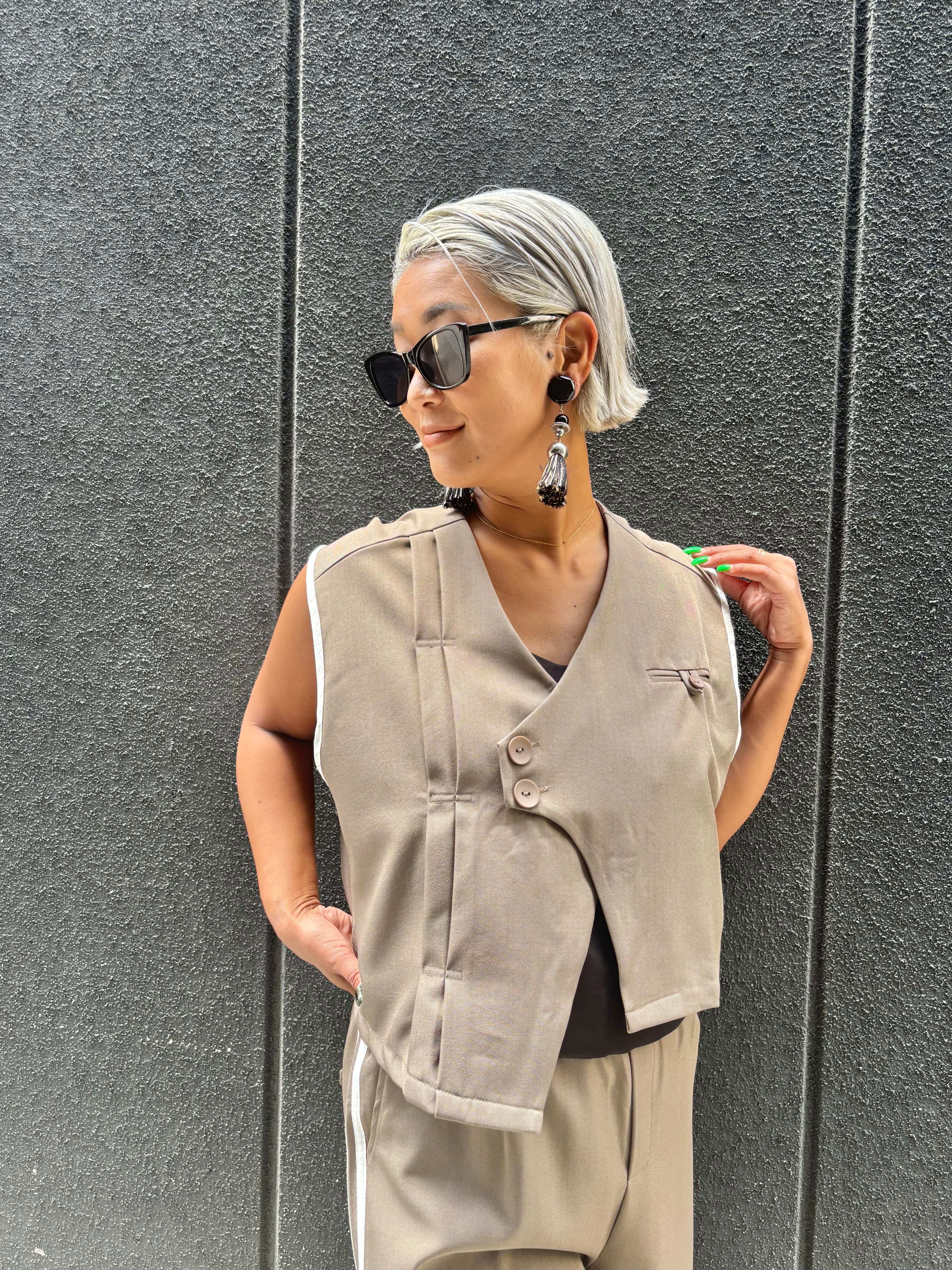 mannish textile piping design vest ベスト マニッシュ パイピング ボタン 重ね着 レイヤード