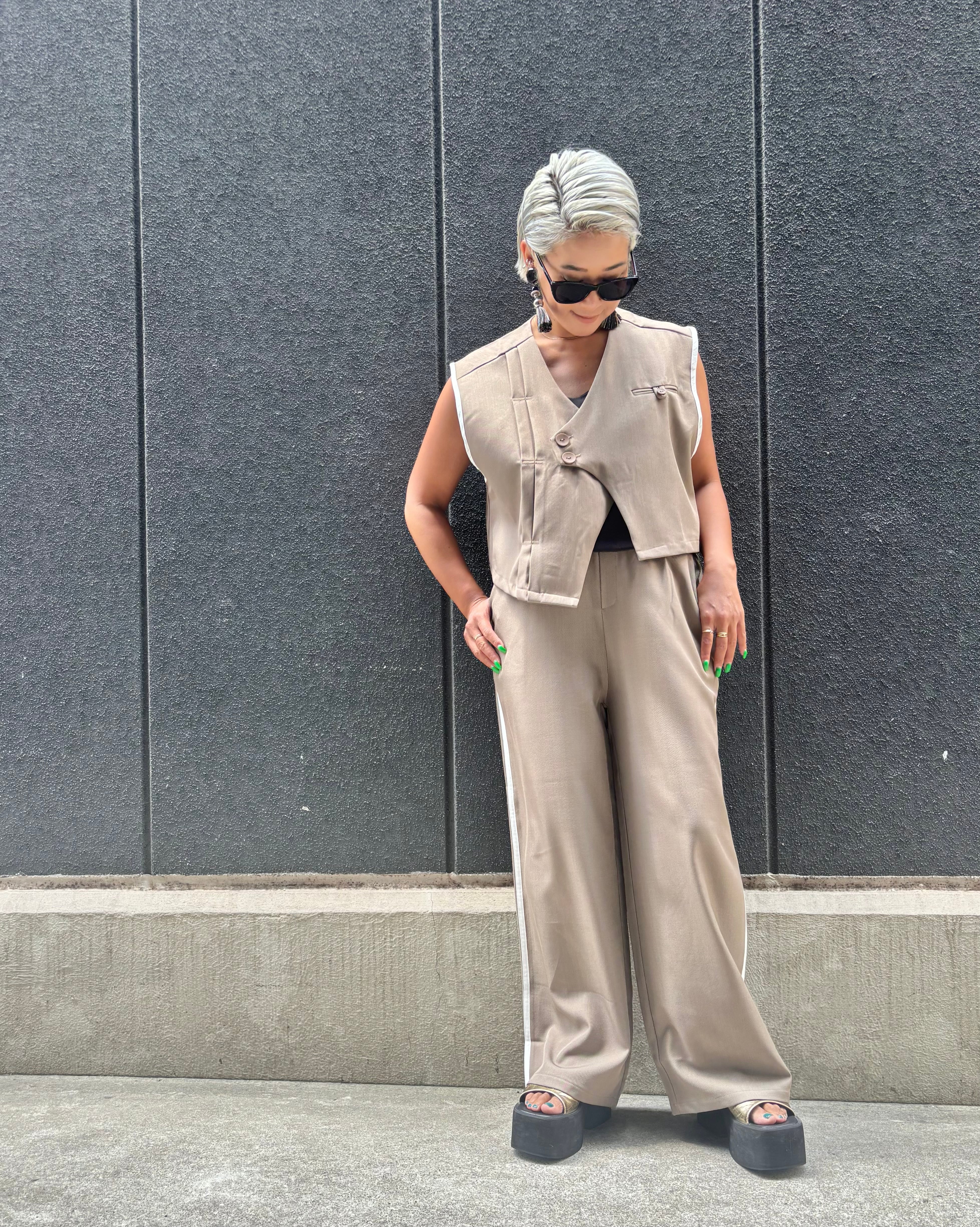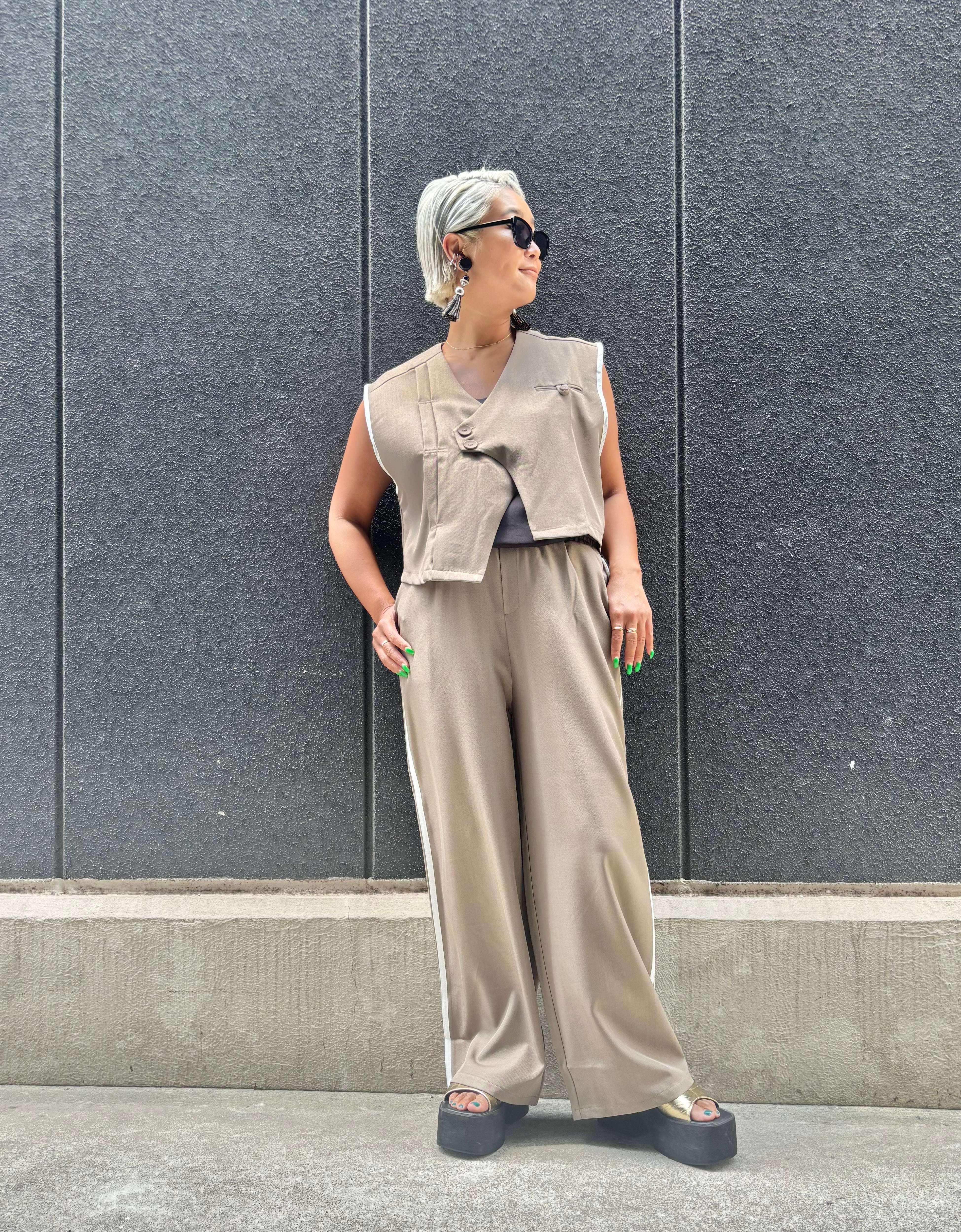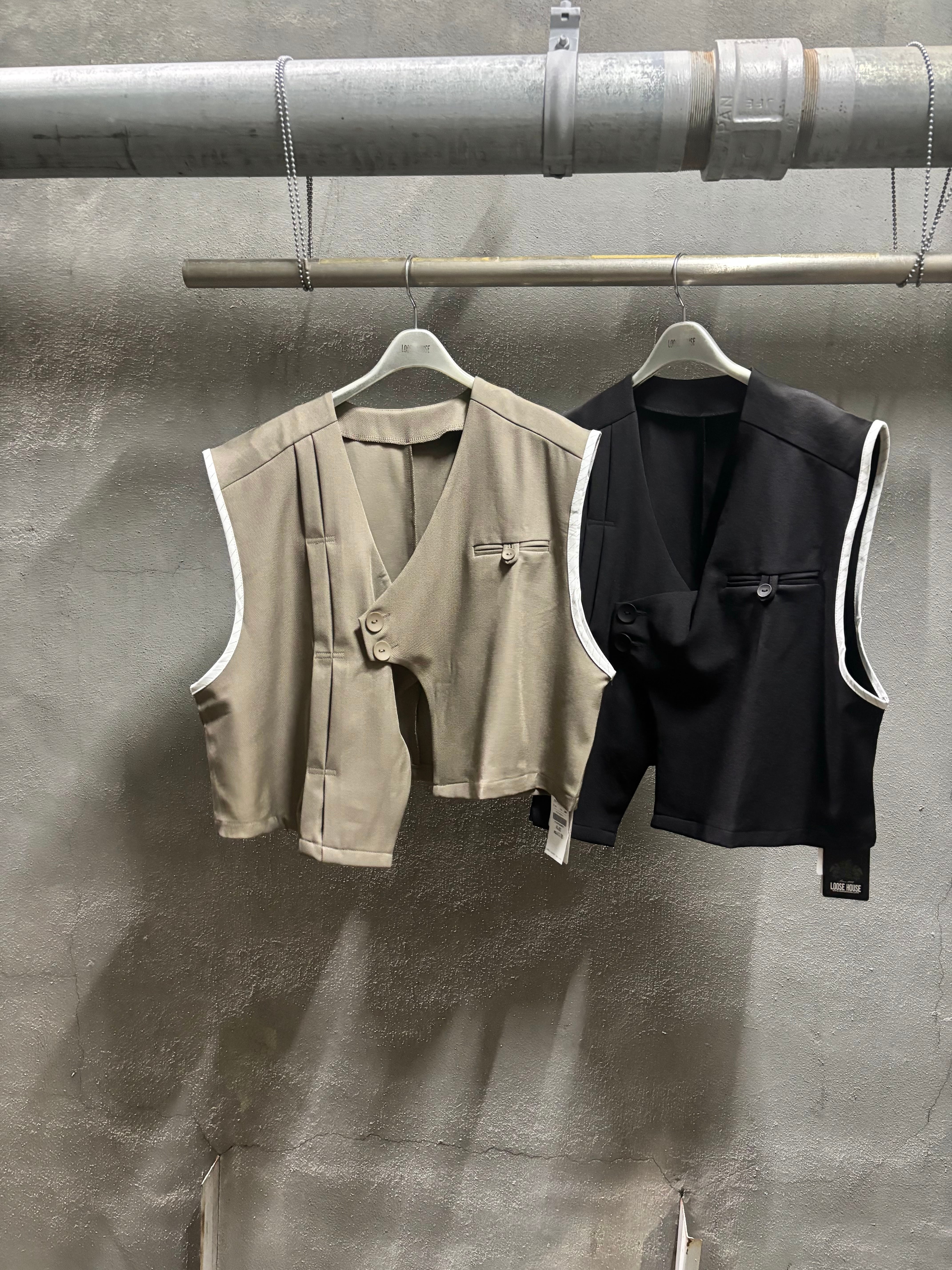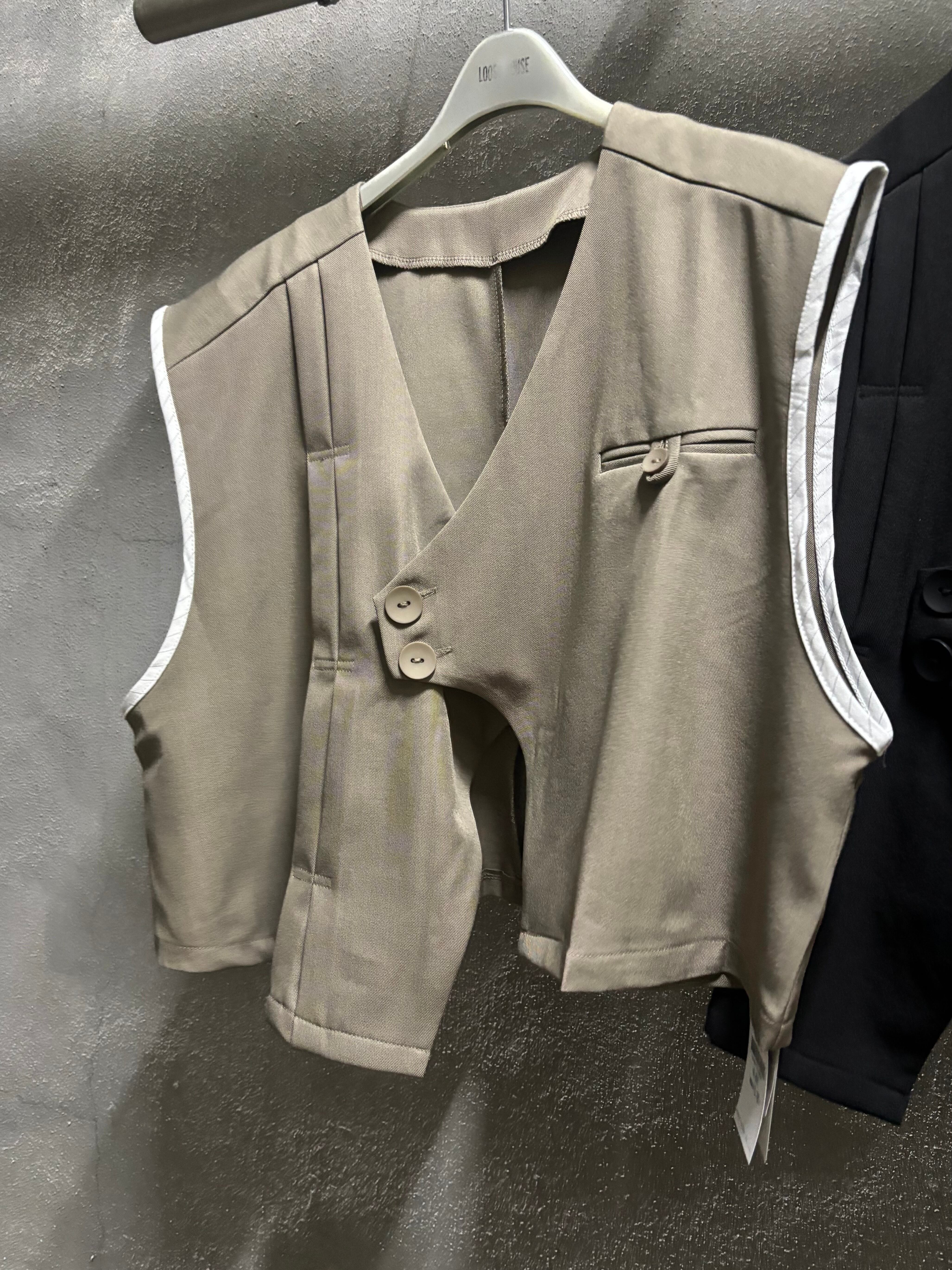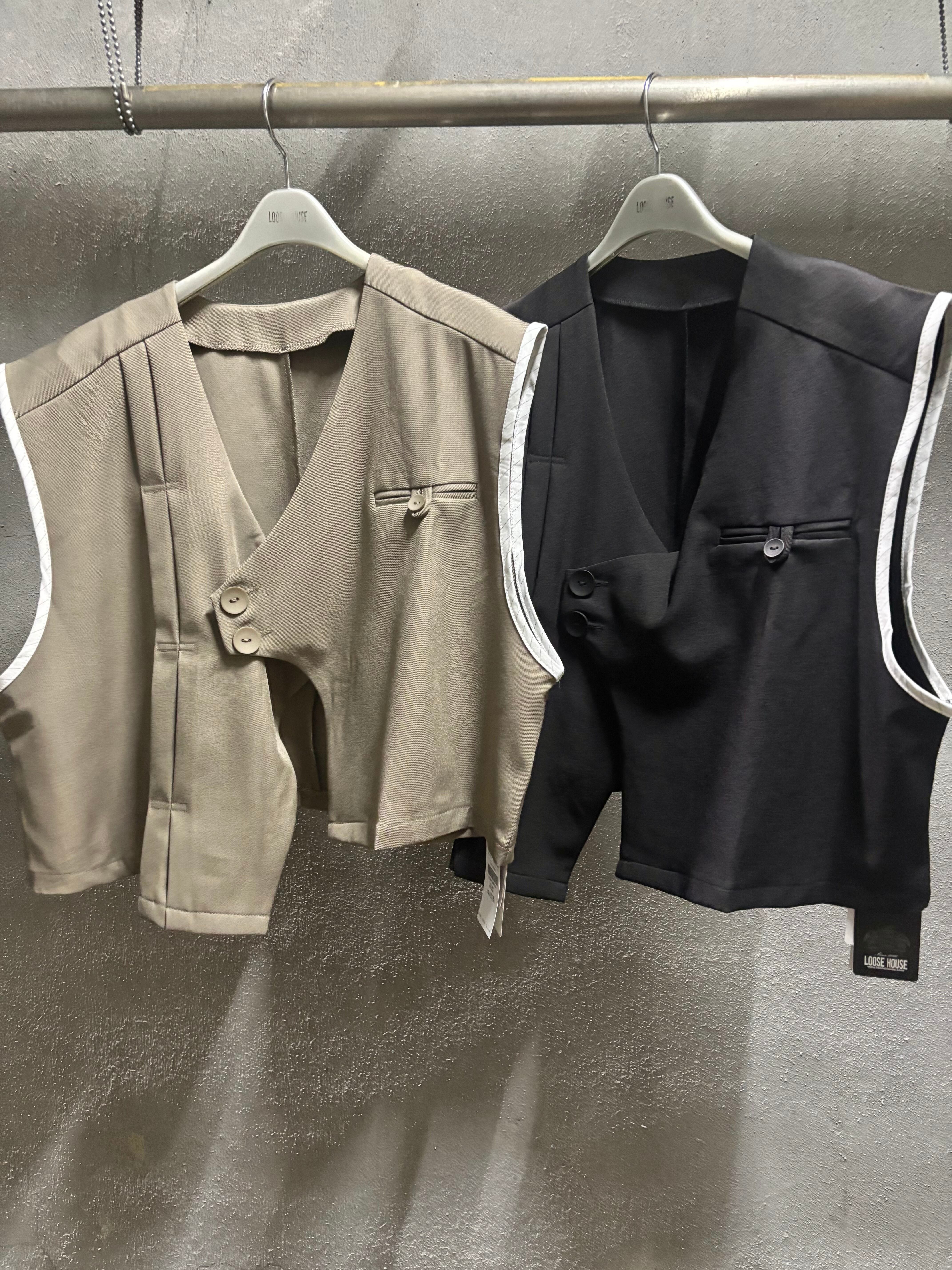 mannish textile piping design vest ベスト マニッシュ パイピング ボタン 重ね着 レイヤード