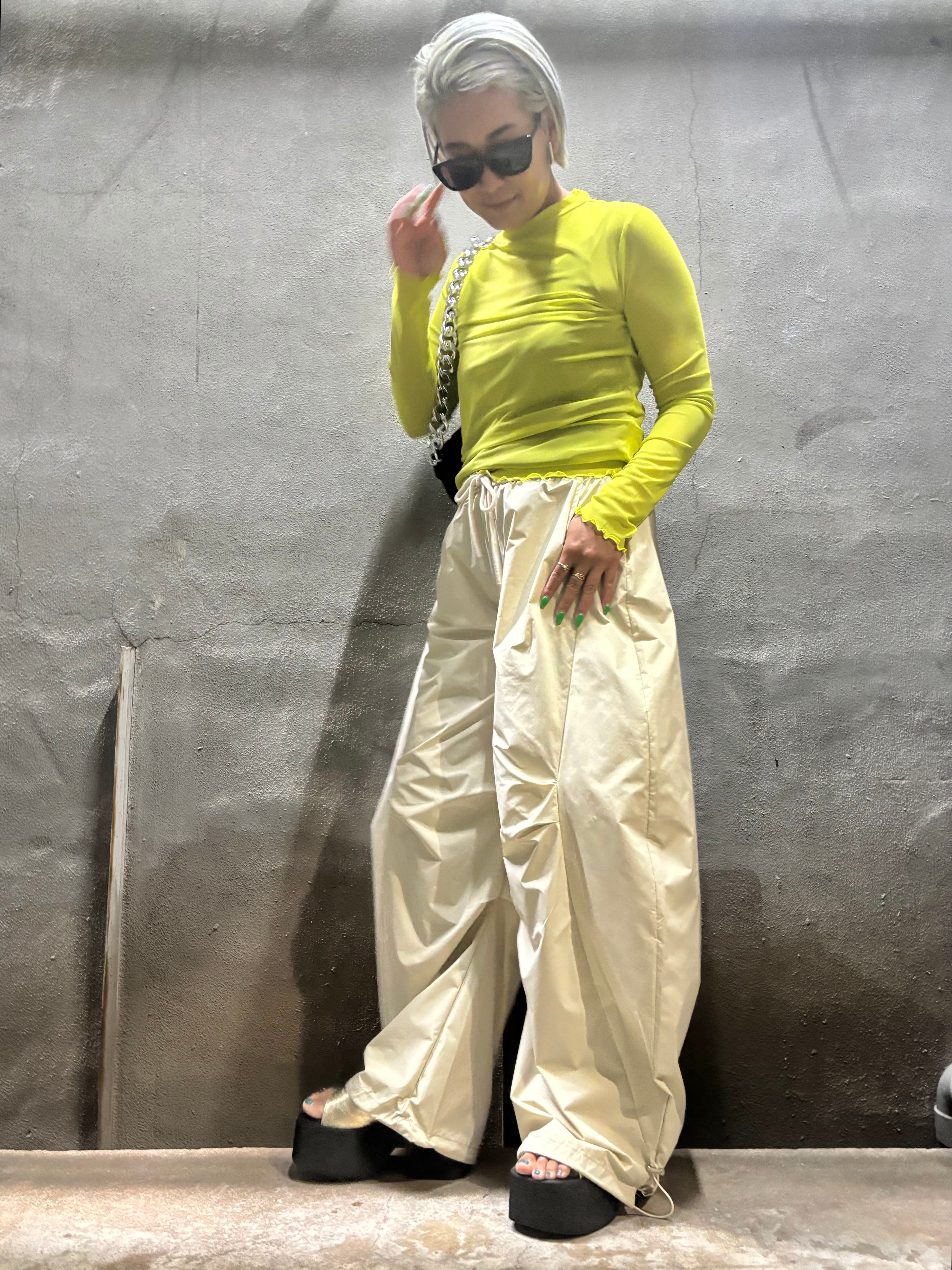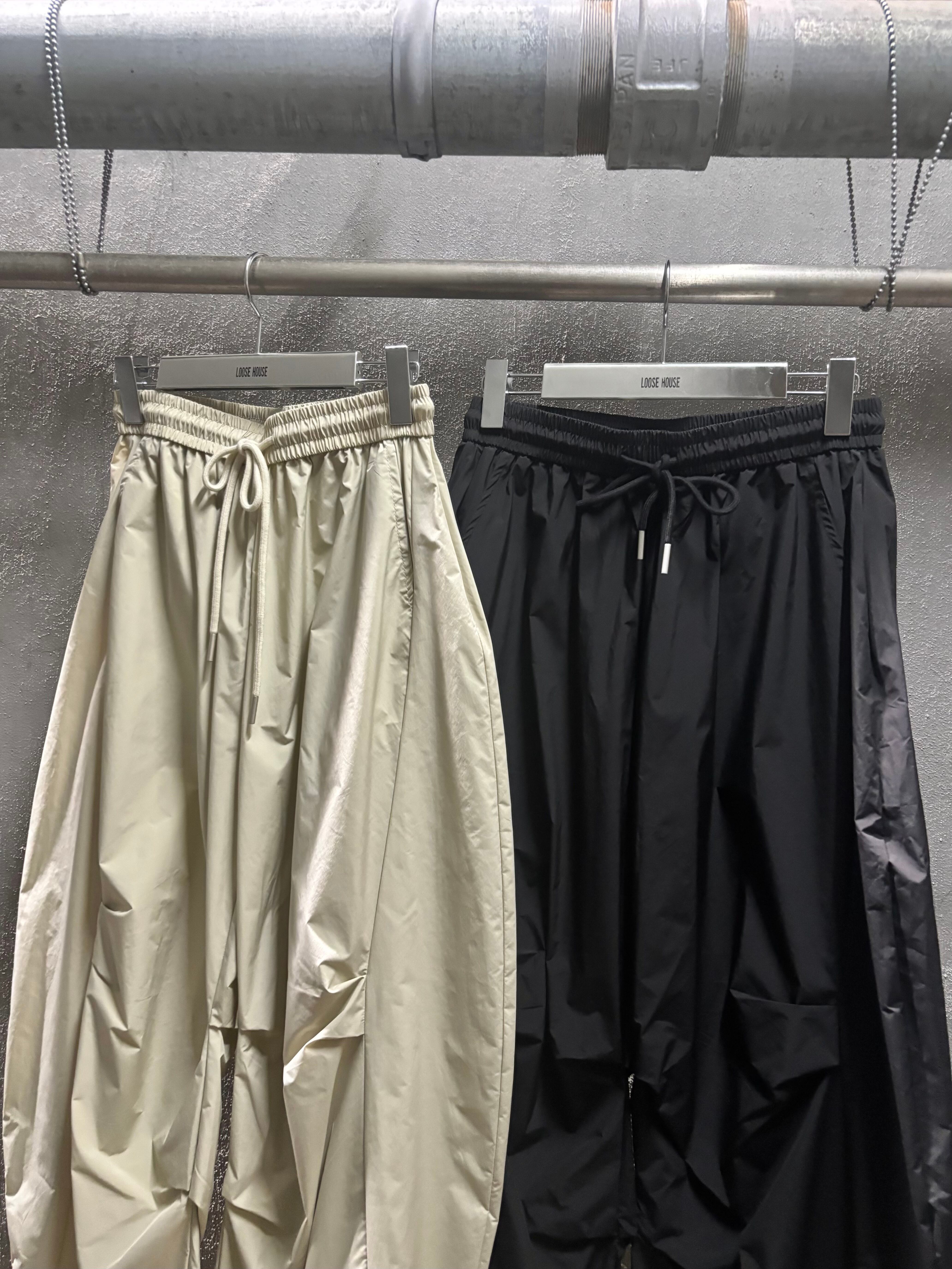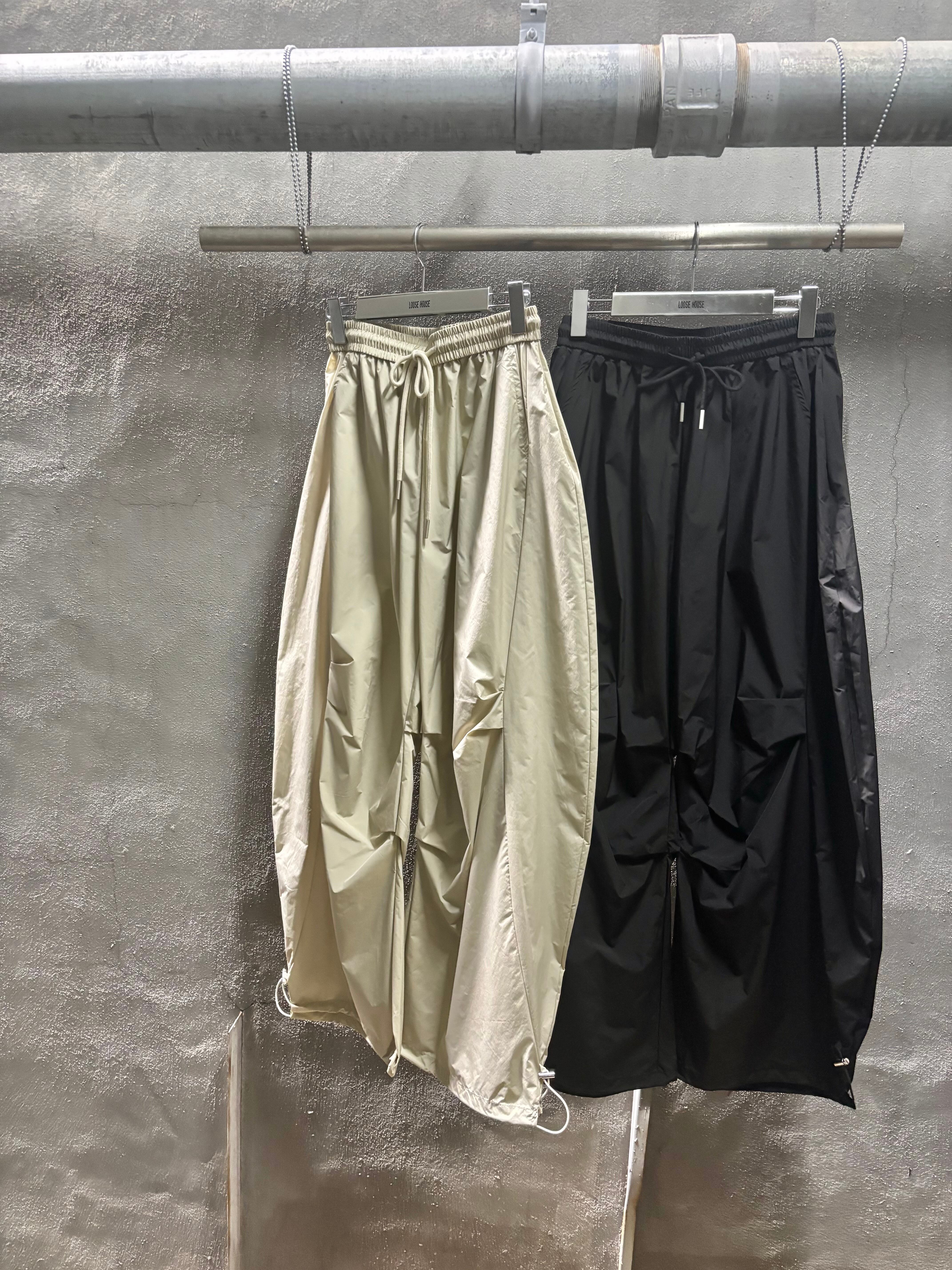 volume wide parachute design pants パンツ ワイドパンツ ドローコード ゴムウエスト タック パラシュート