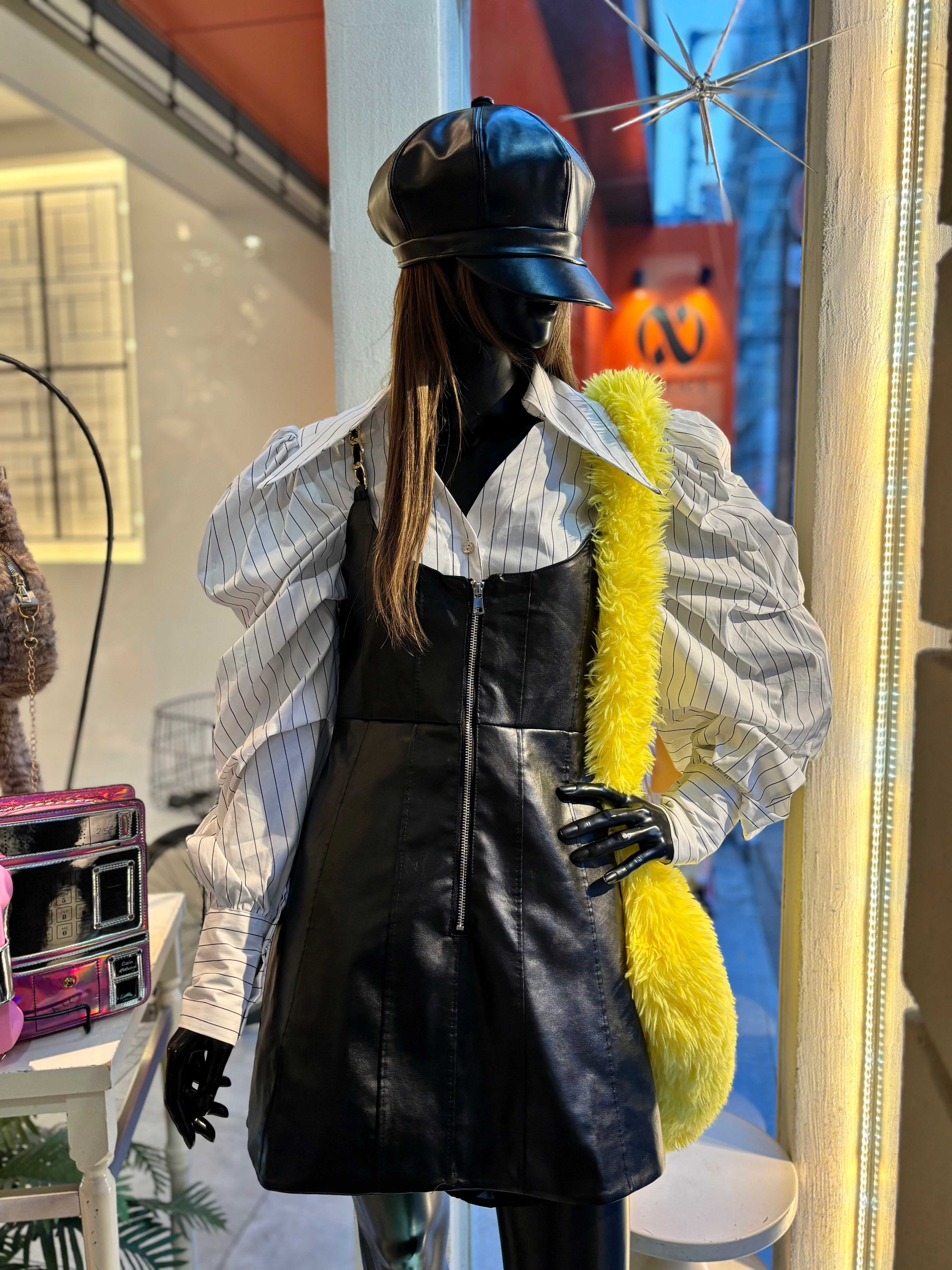 eco leather × gold chain strap tunic チュニック エコレザー 合皮 ゴールド チェーン ミニ ブラック 黒 重ね着