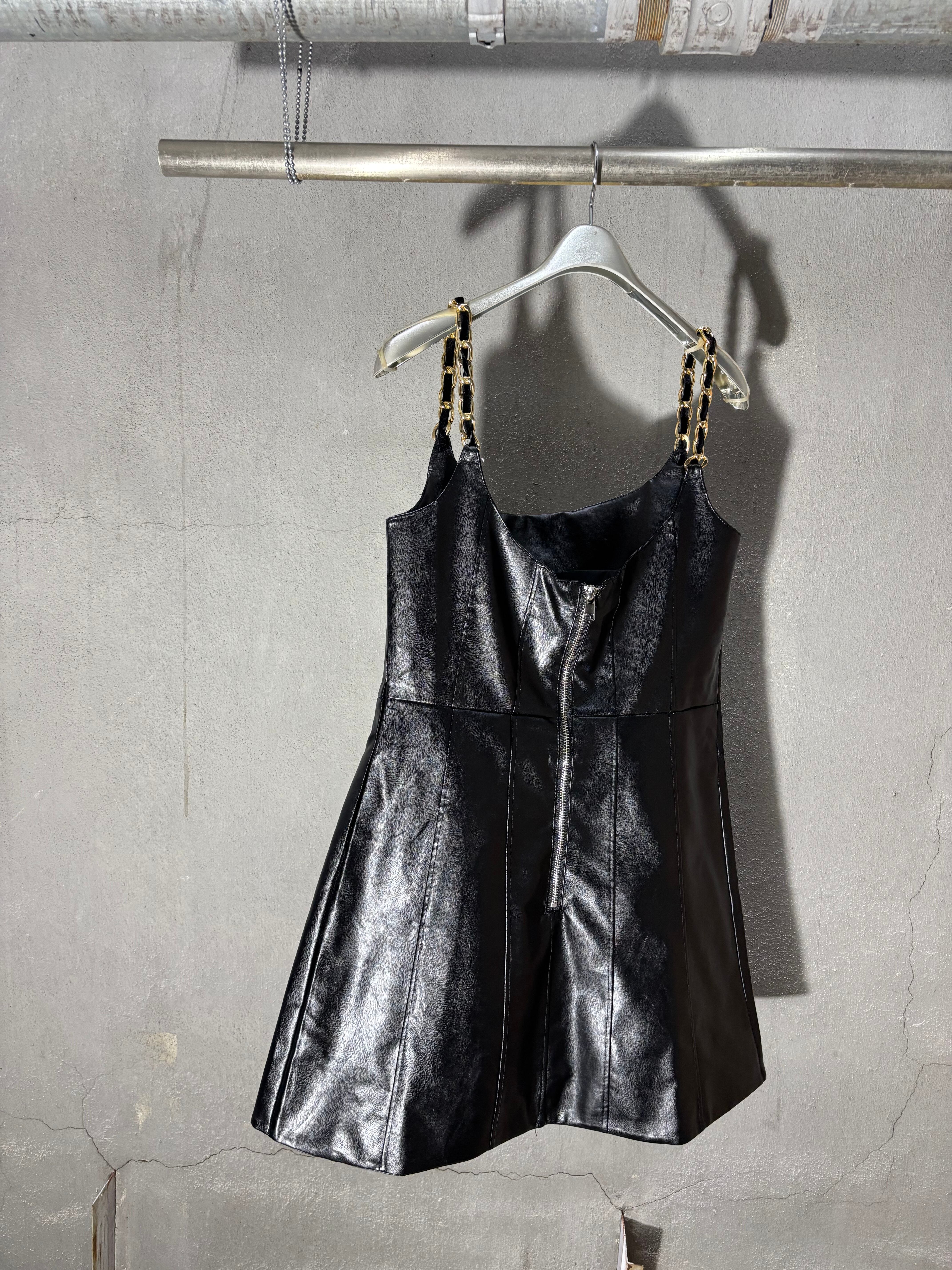エコレザーとゴールドチェーンがポイントのミニワンピース♡