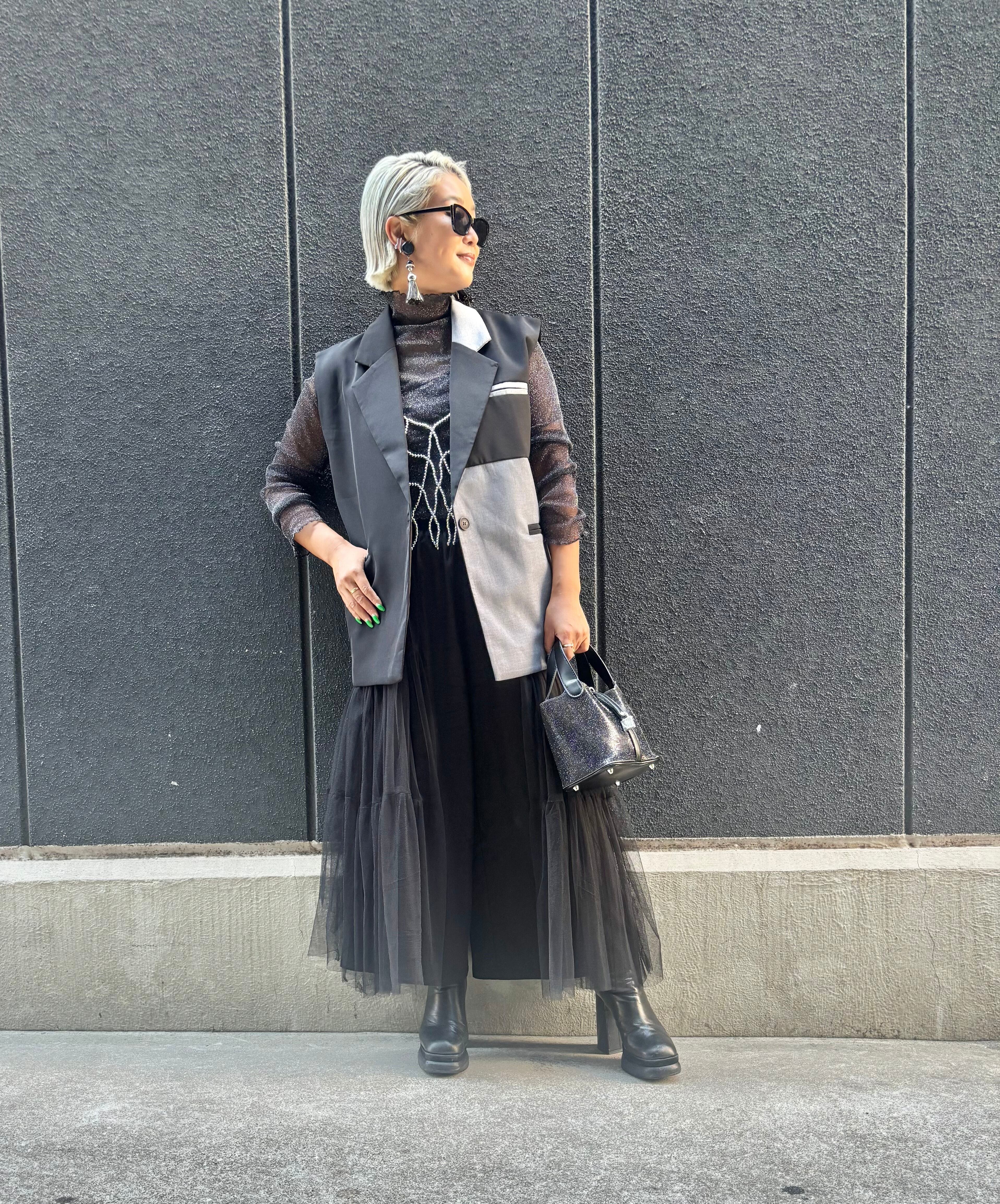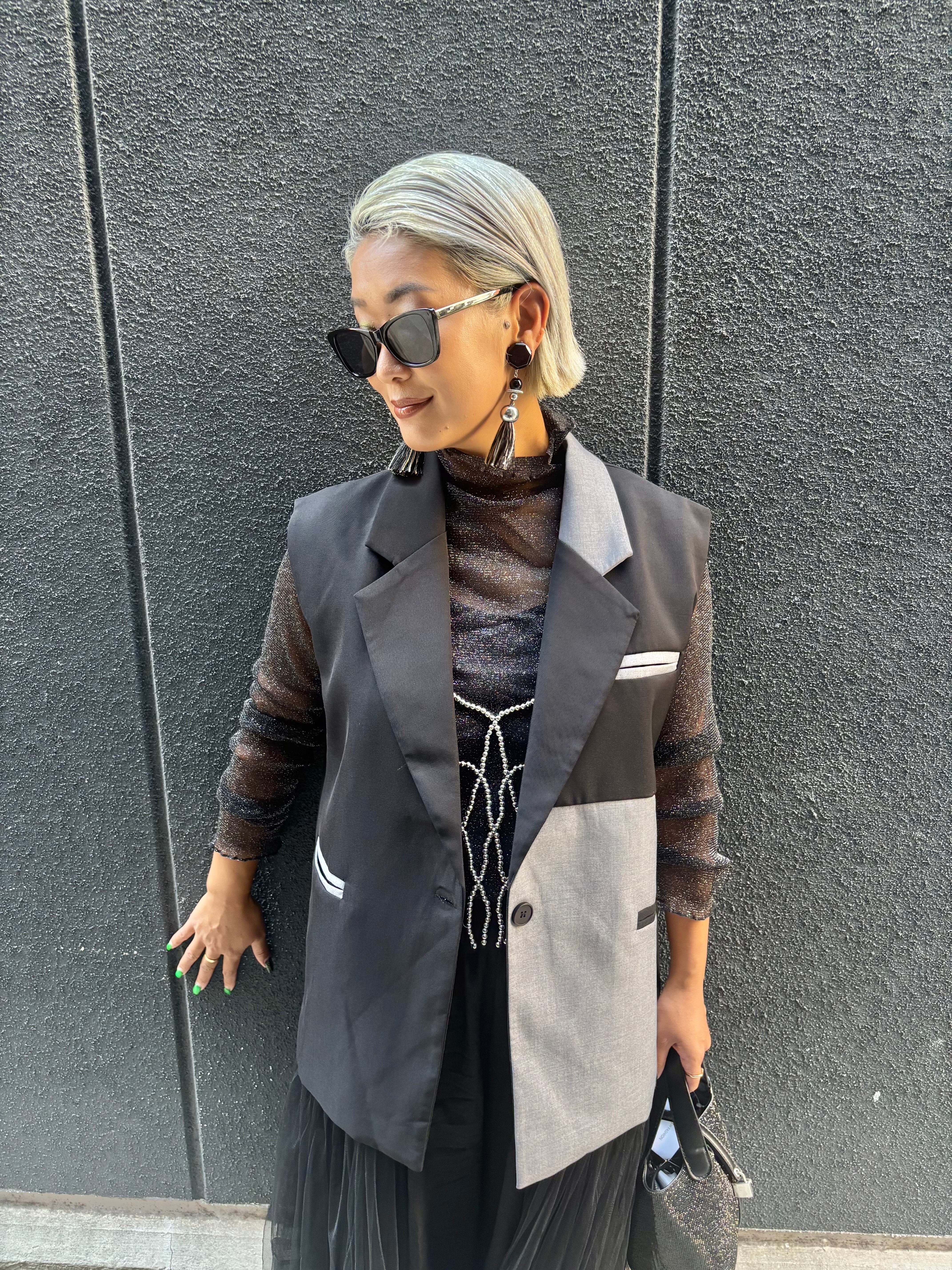 bi-color design over size vest ベスト バイカラー オーバーサイズ 重ね着 マニッシュ