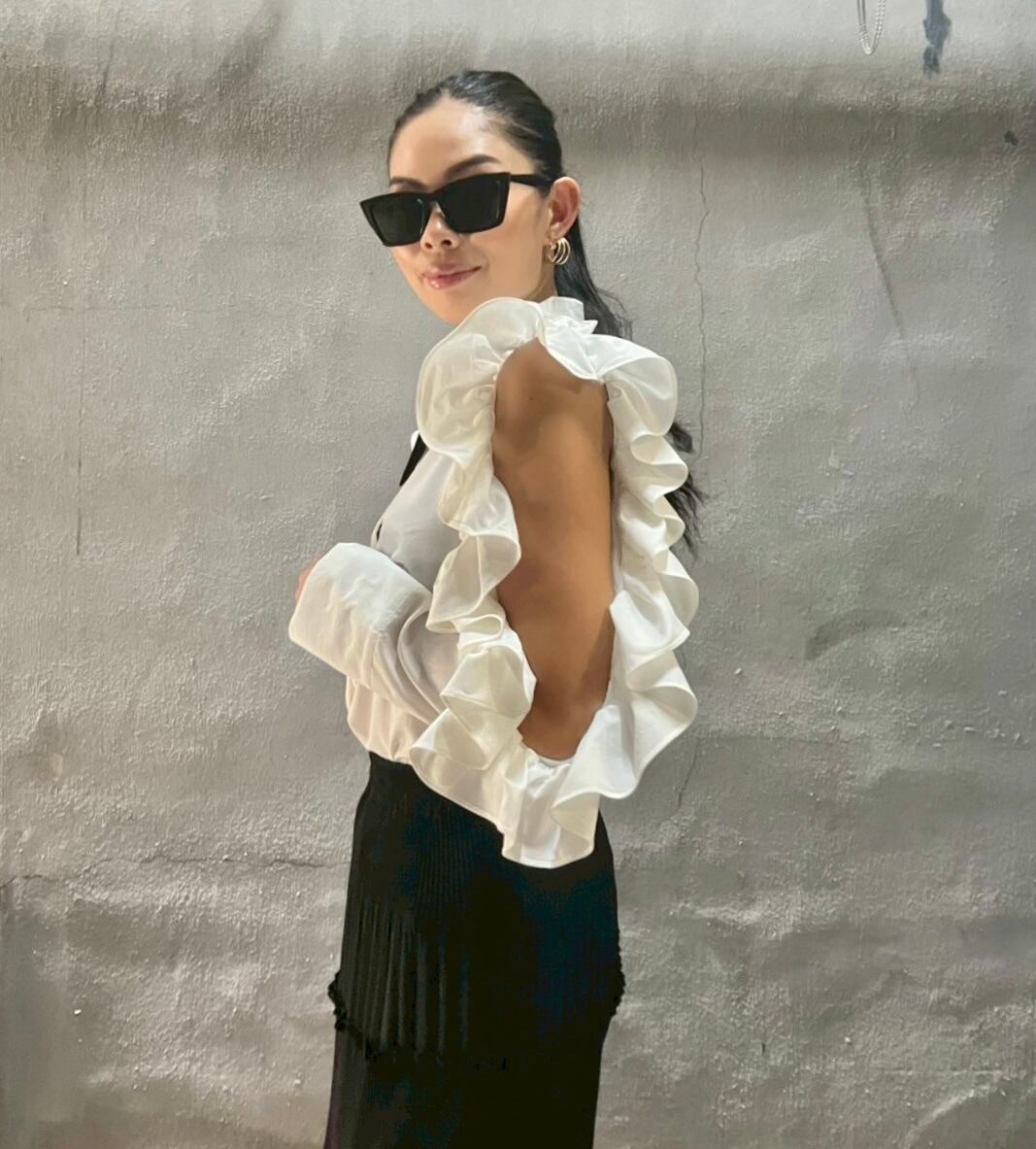 可愛らしいフリルと、肩開きのセクシーさとと兼ねそろえたデザインシャツです♡