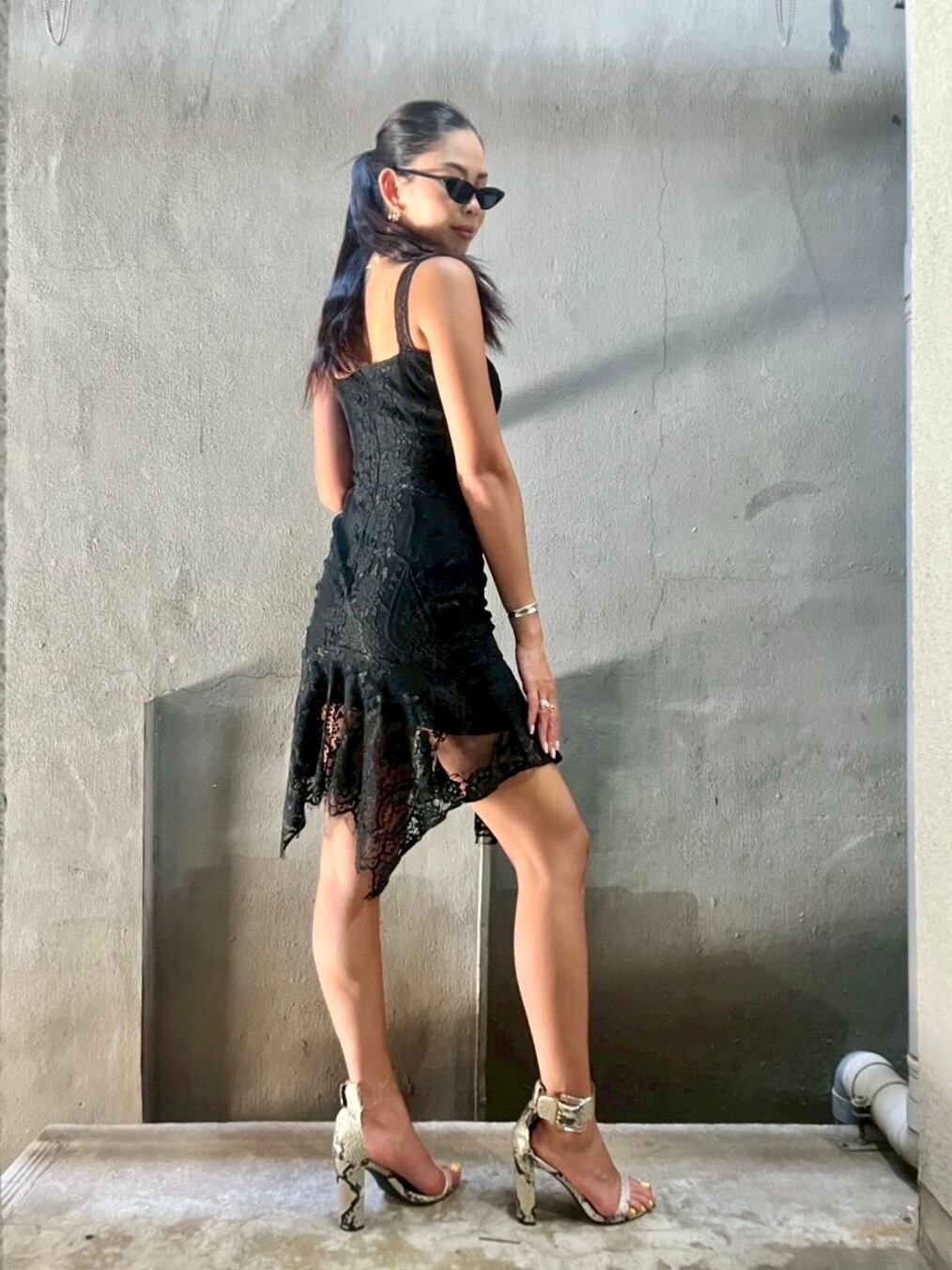 black lace × cup design one-piece dress ワンピース ドレス レース ブラック 黒 カップ付き