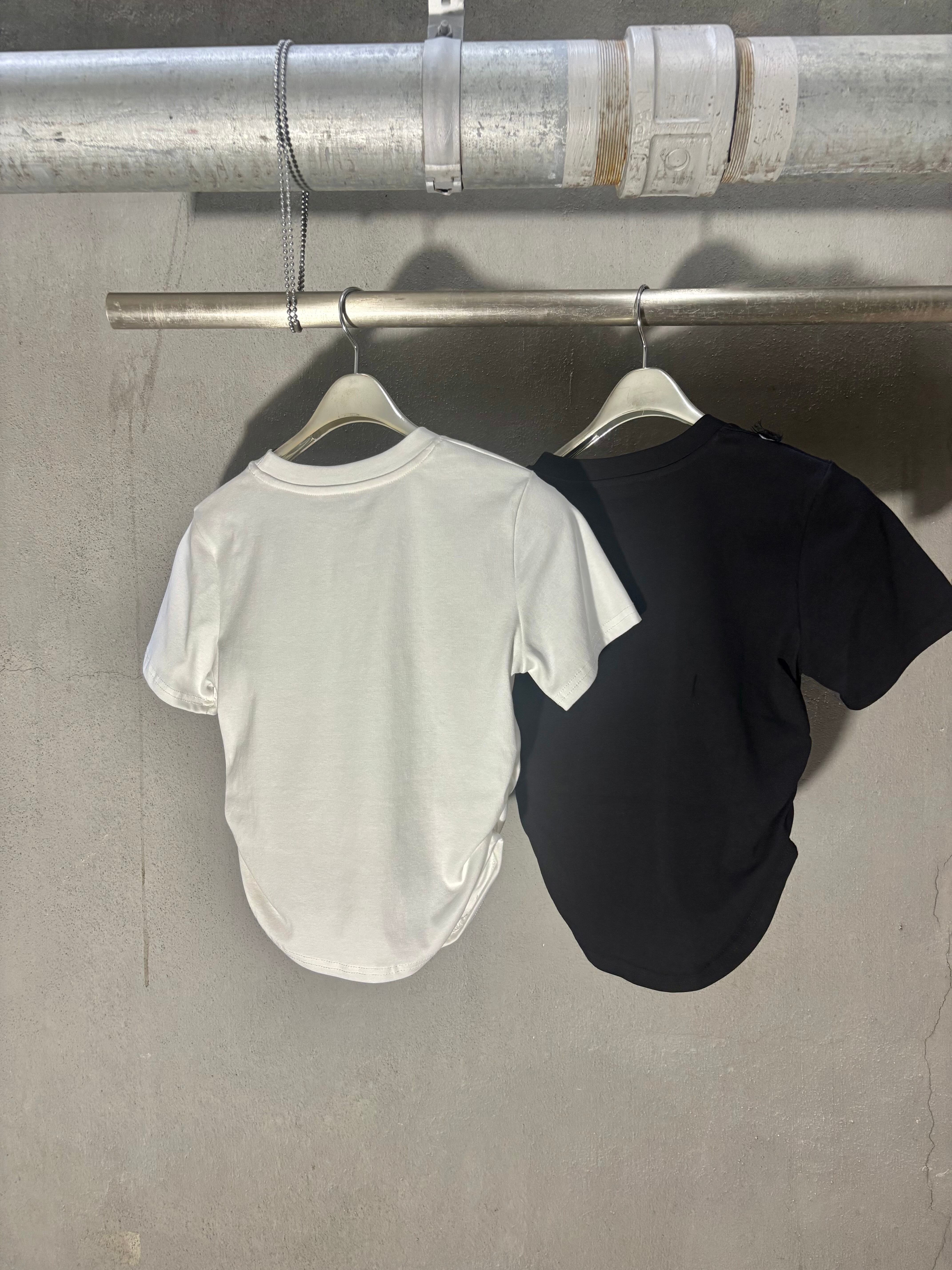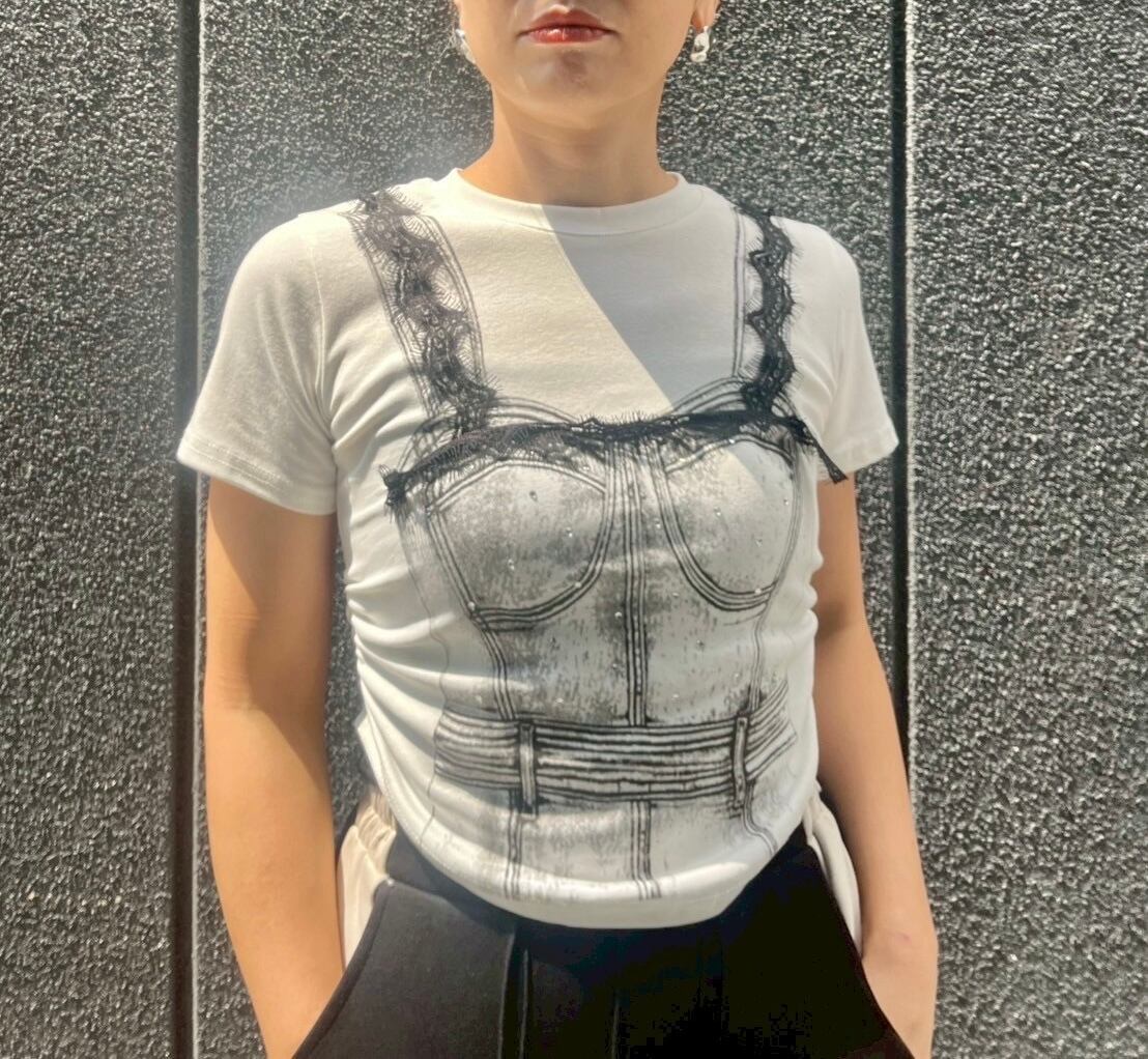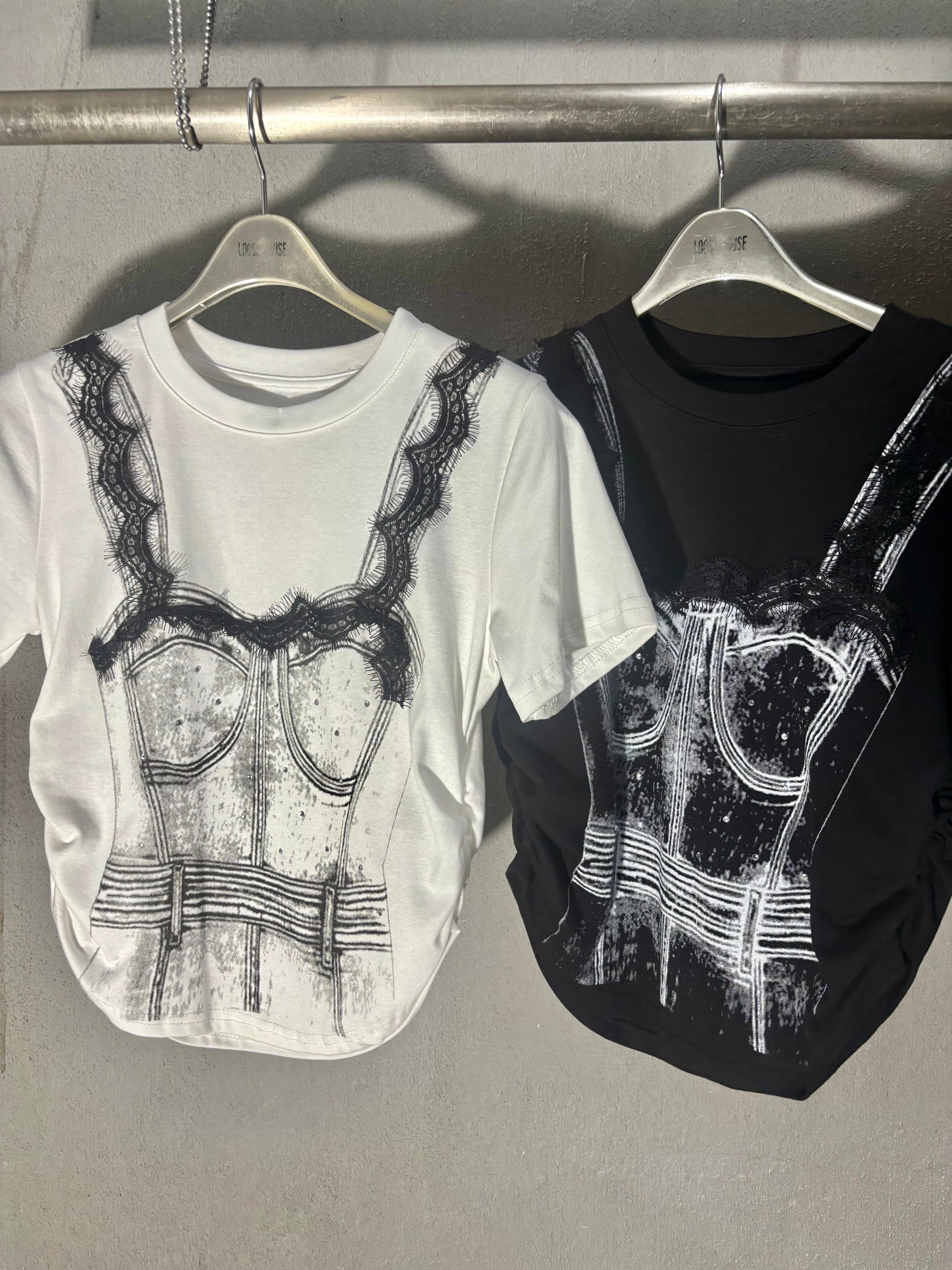 camisole print × side gather design mini T-shirt Tシャツ ちびT キャミソール プリント 白黒 サイド ギャザー