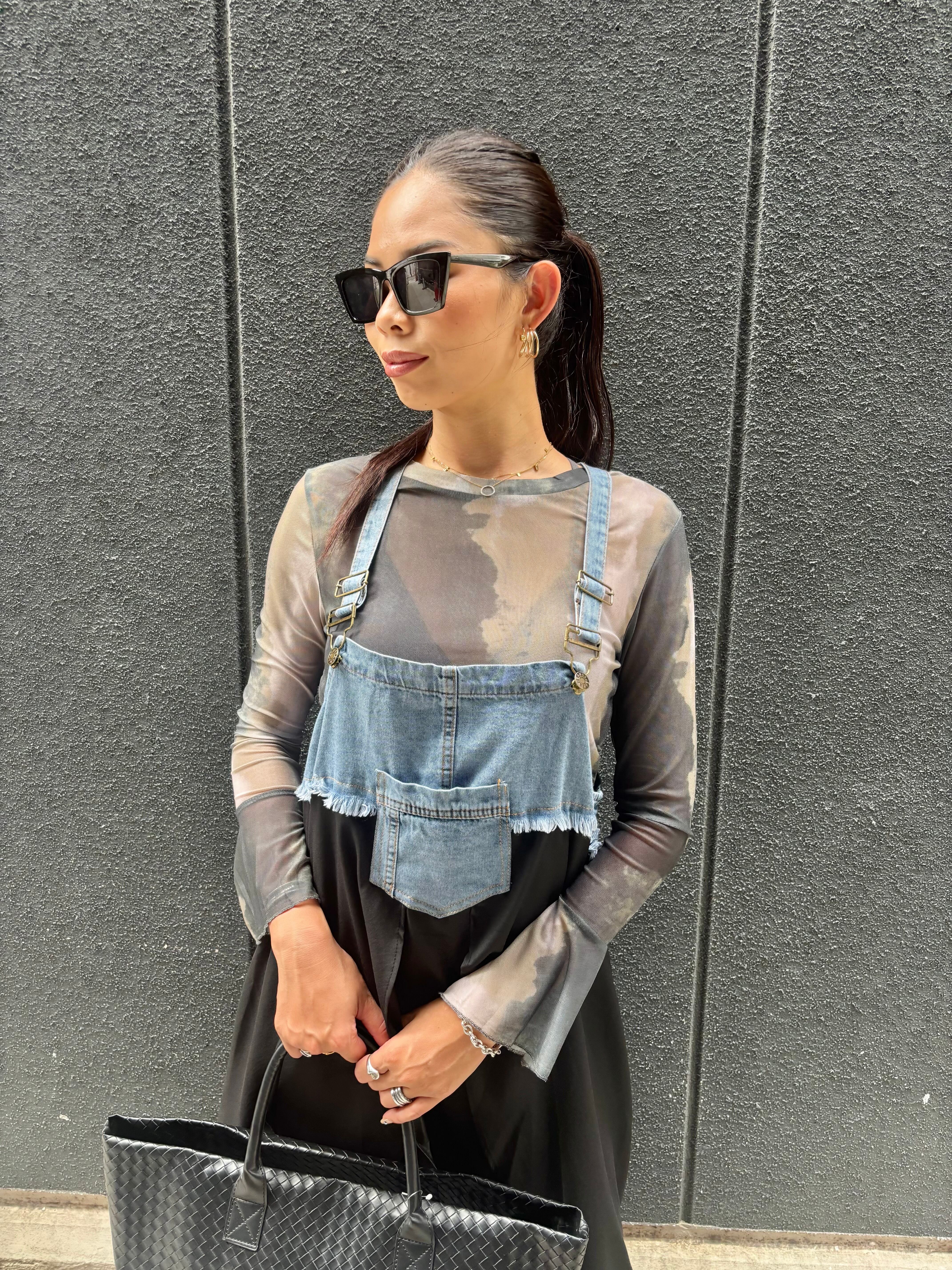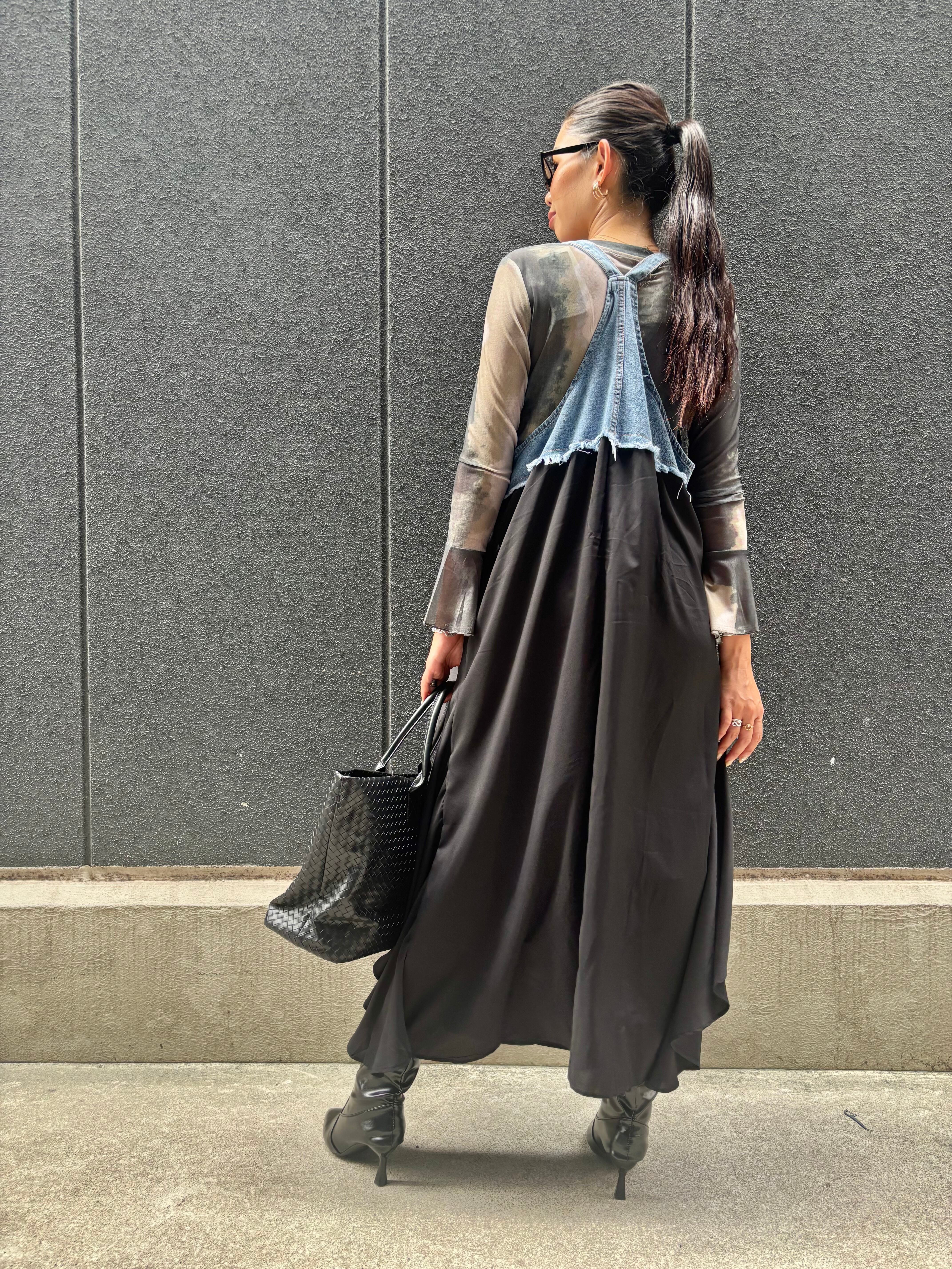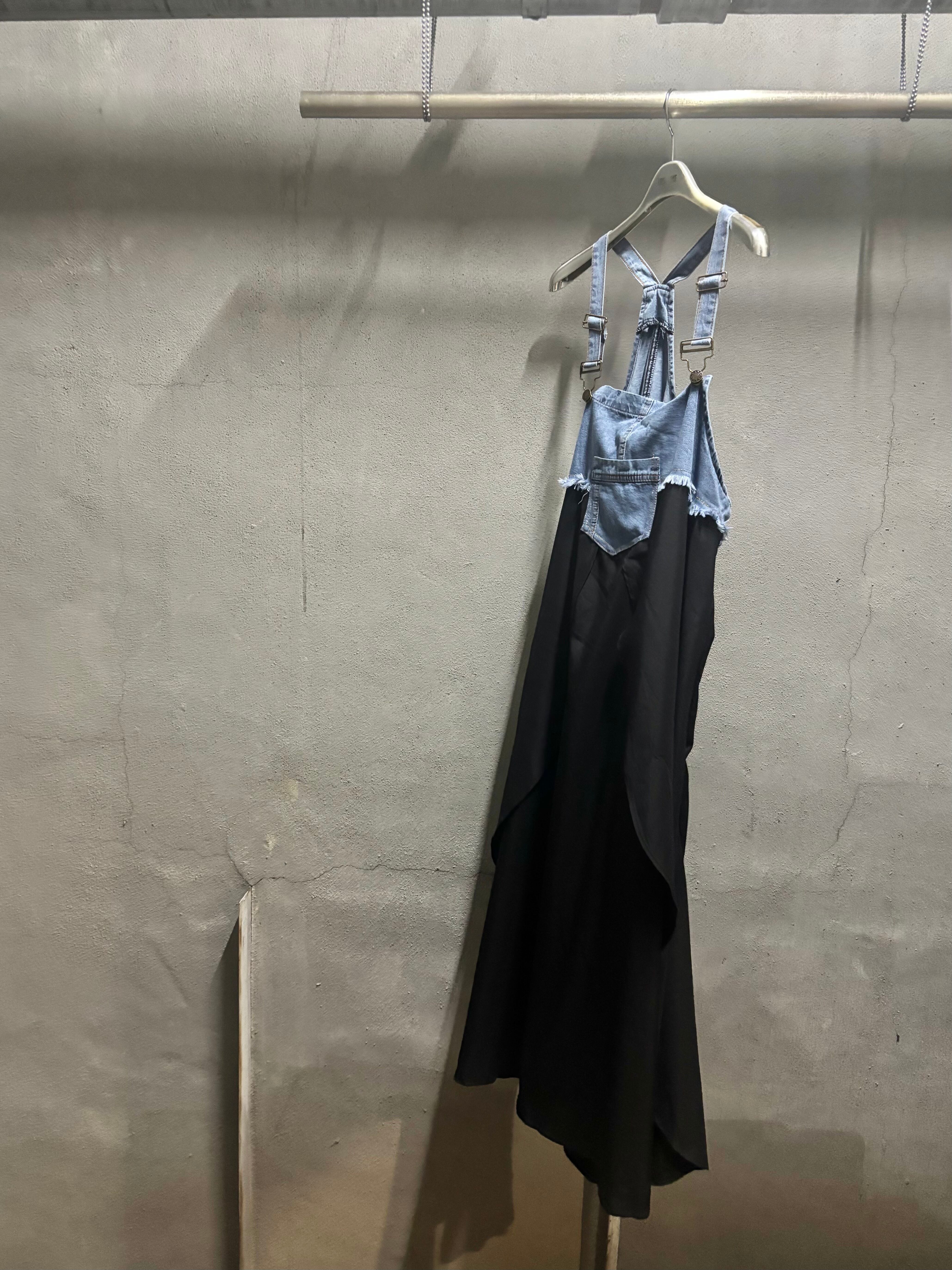 denim × ester docking design jumper skirt ジャンパースカート ワンピース デニム 切替デザイン 重ね着 サロペット風