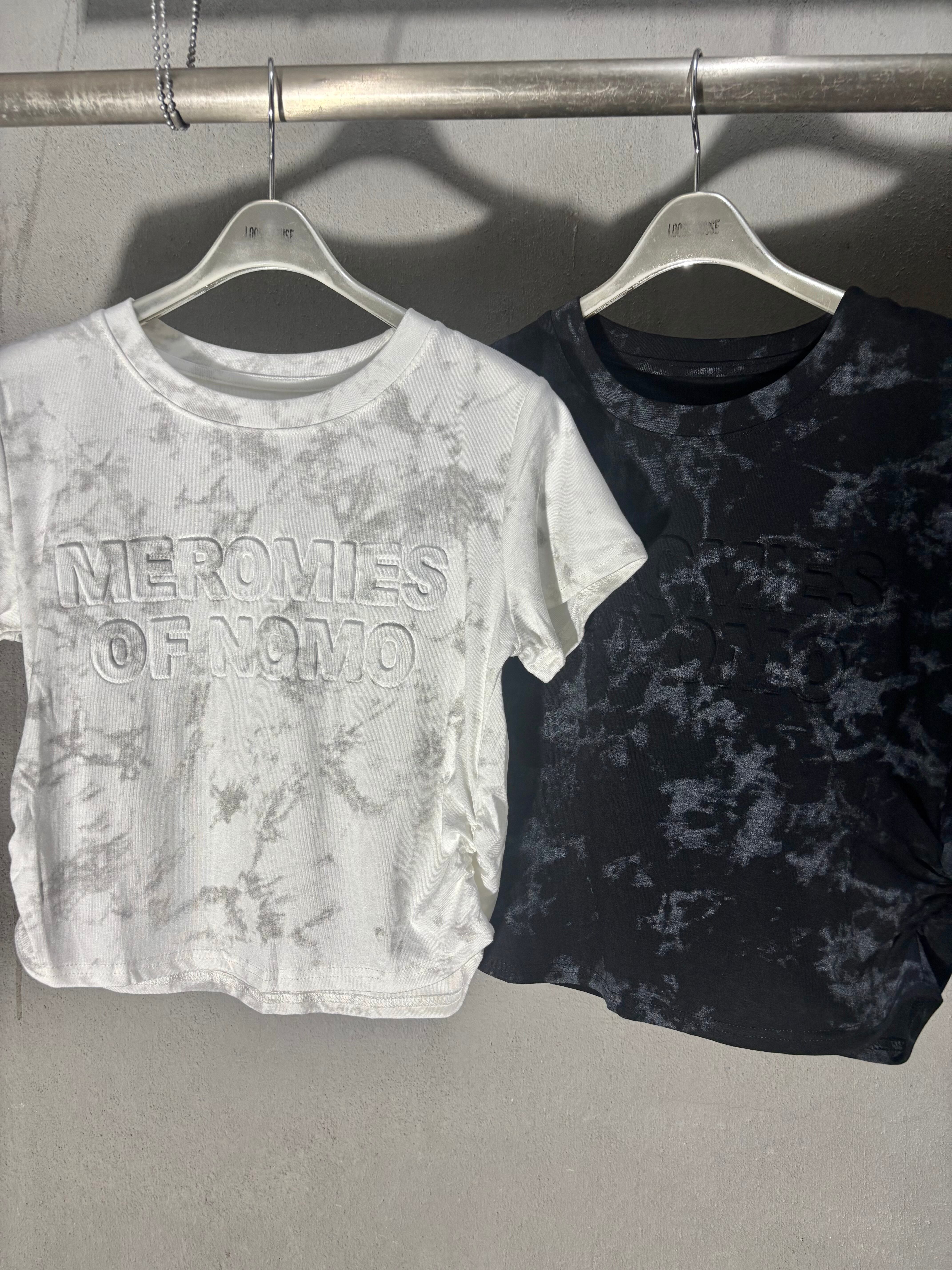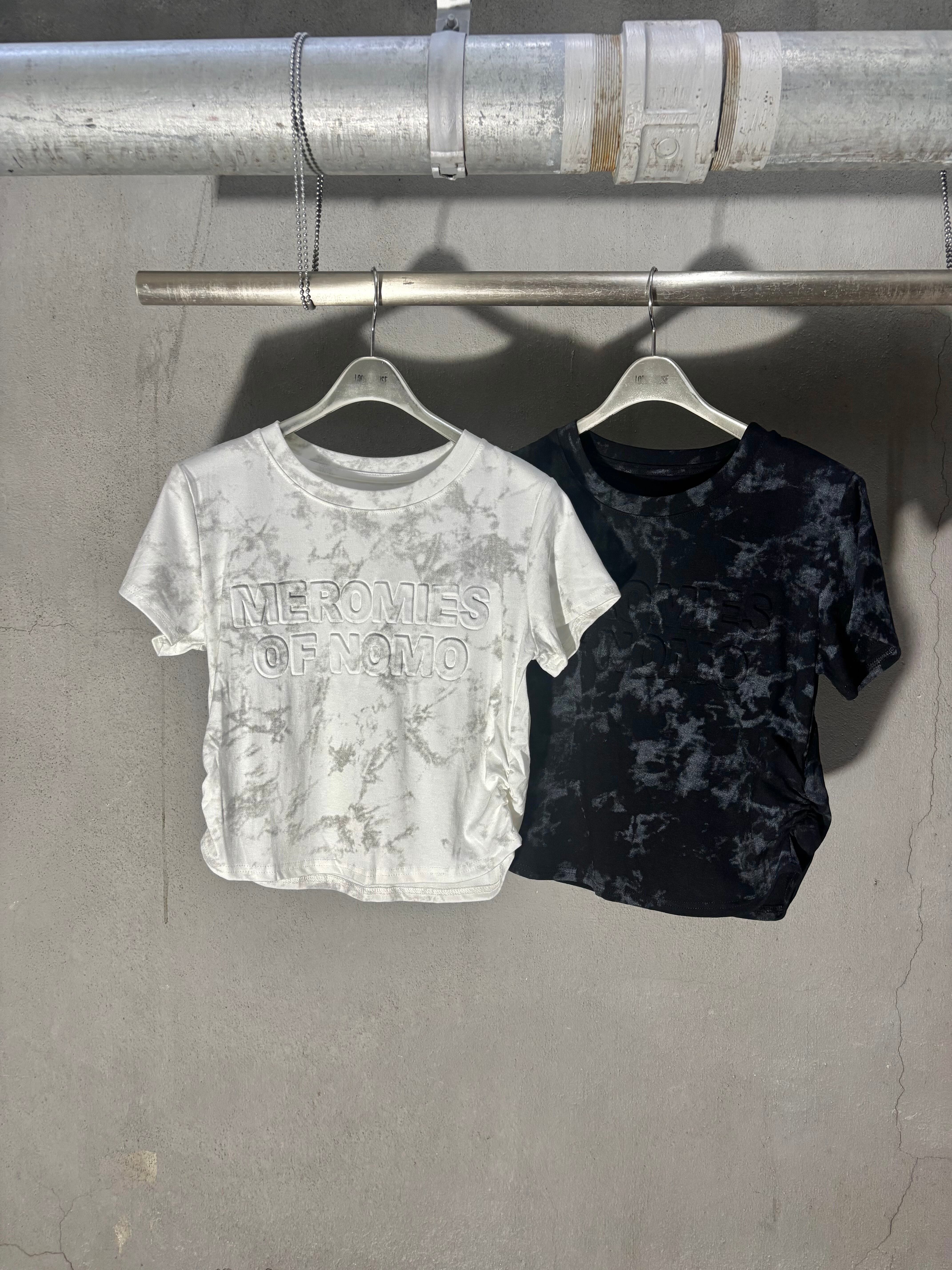 tie-dye print × emboss logo side shirring design T-shirt Tシャツ チビT タイダイ ロゴ エンボス 型押し シャーリング
