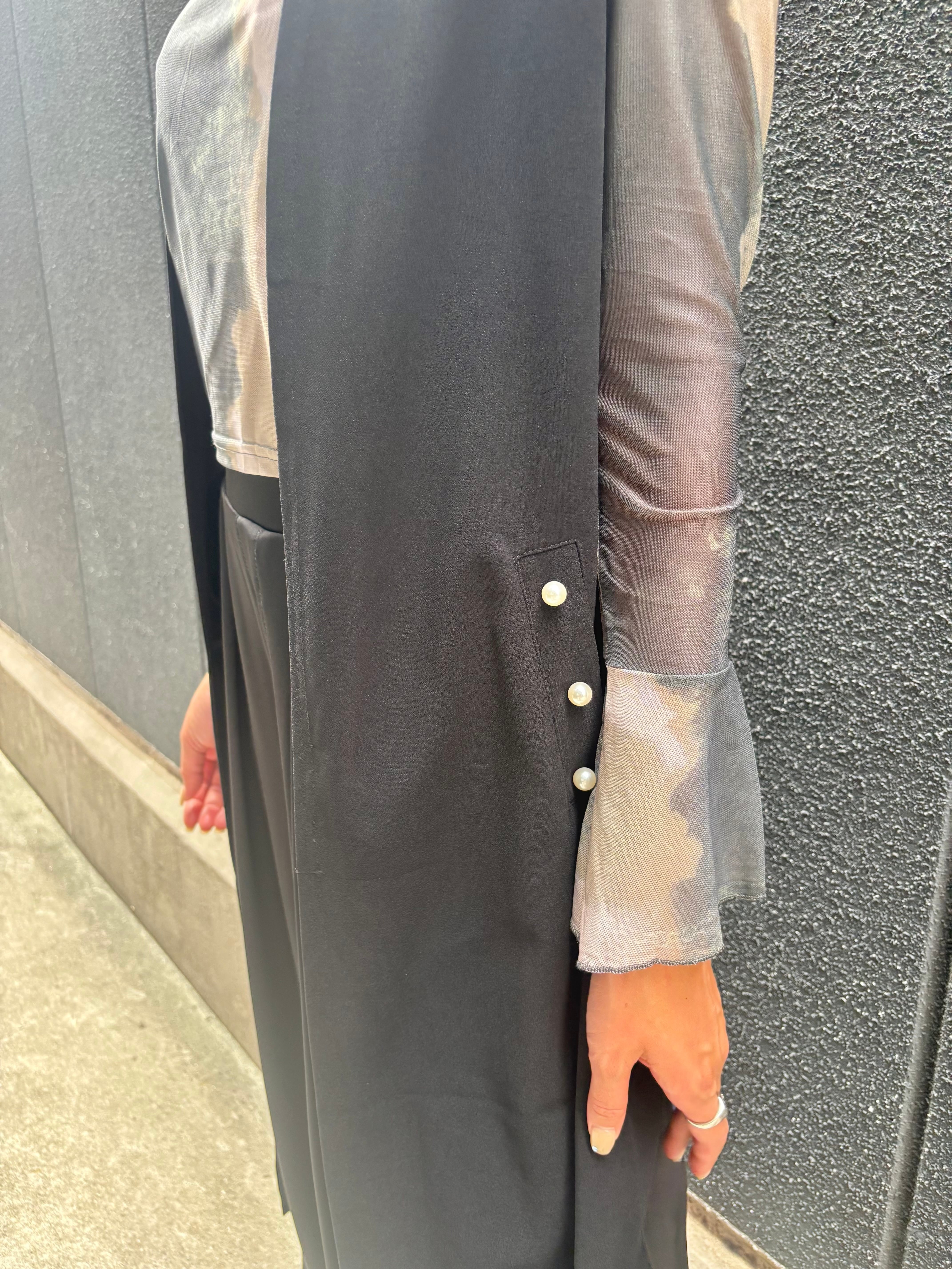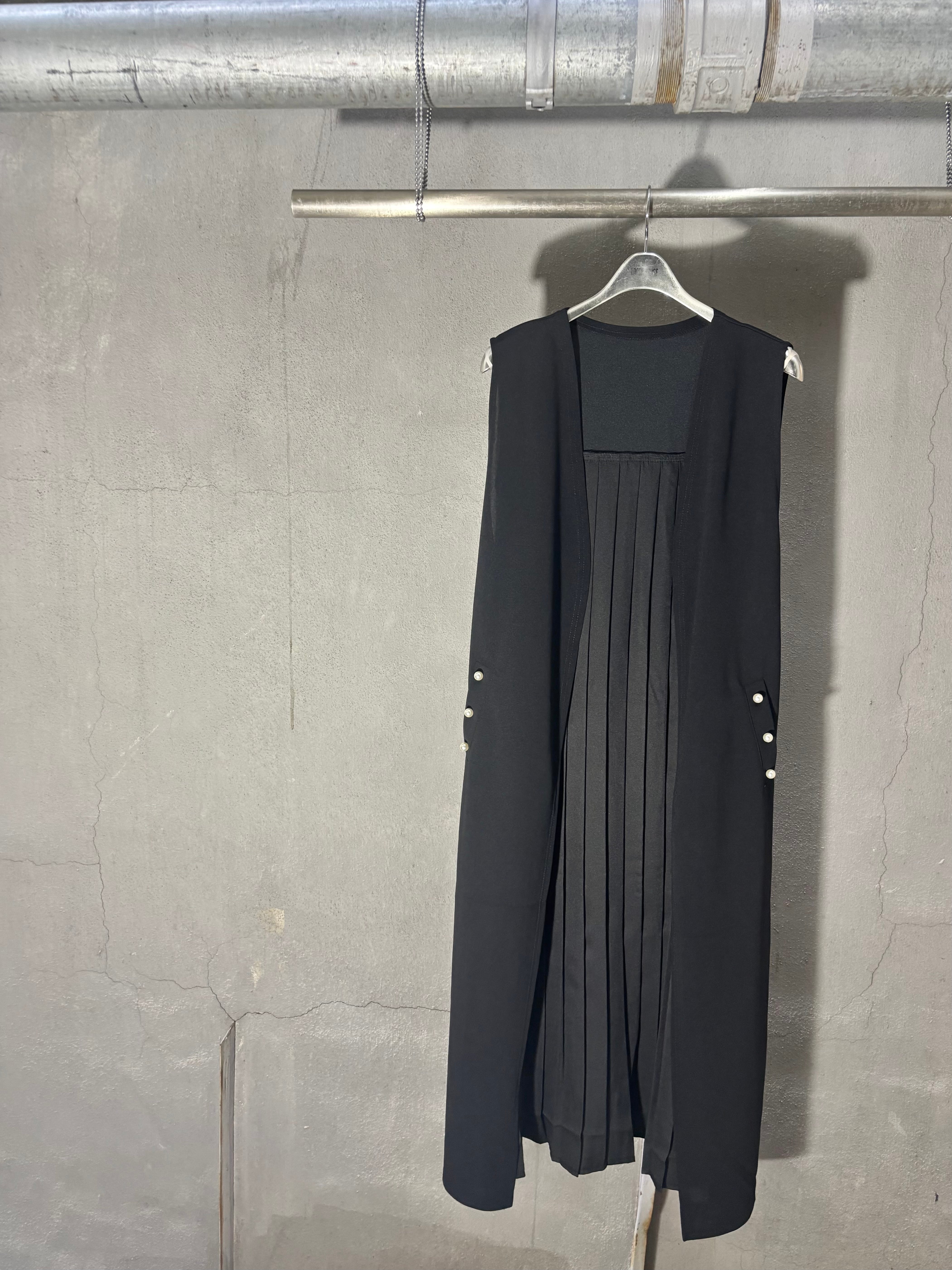 back chiffon pleats × pearl design long vest ベスト ジレ プリーツ シフォン ブラック 黒 パール