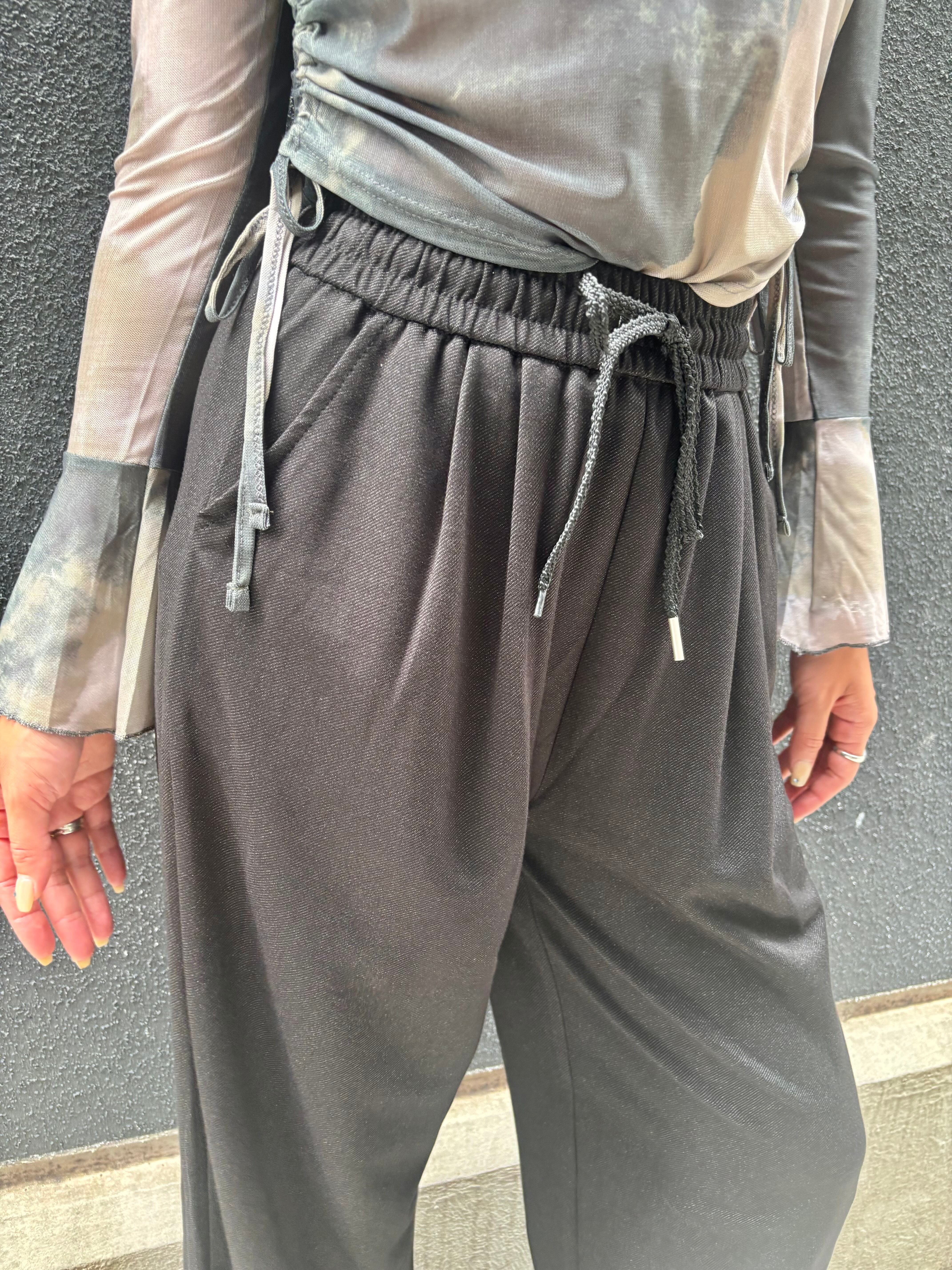 ester ponch black wide pants パンツ ワイドパンツ ゴムウエス ブラック 黒