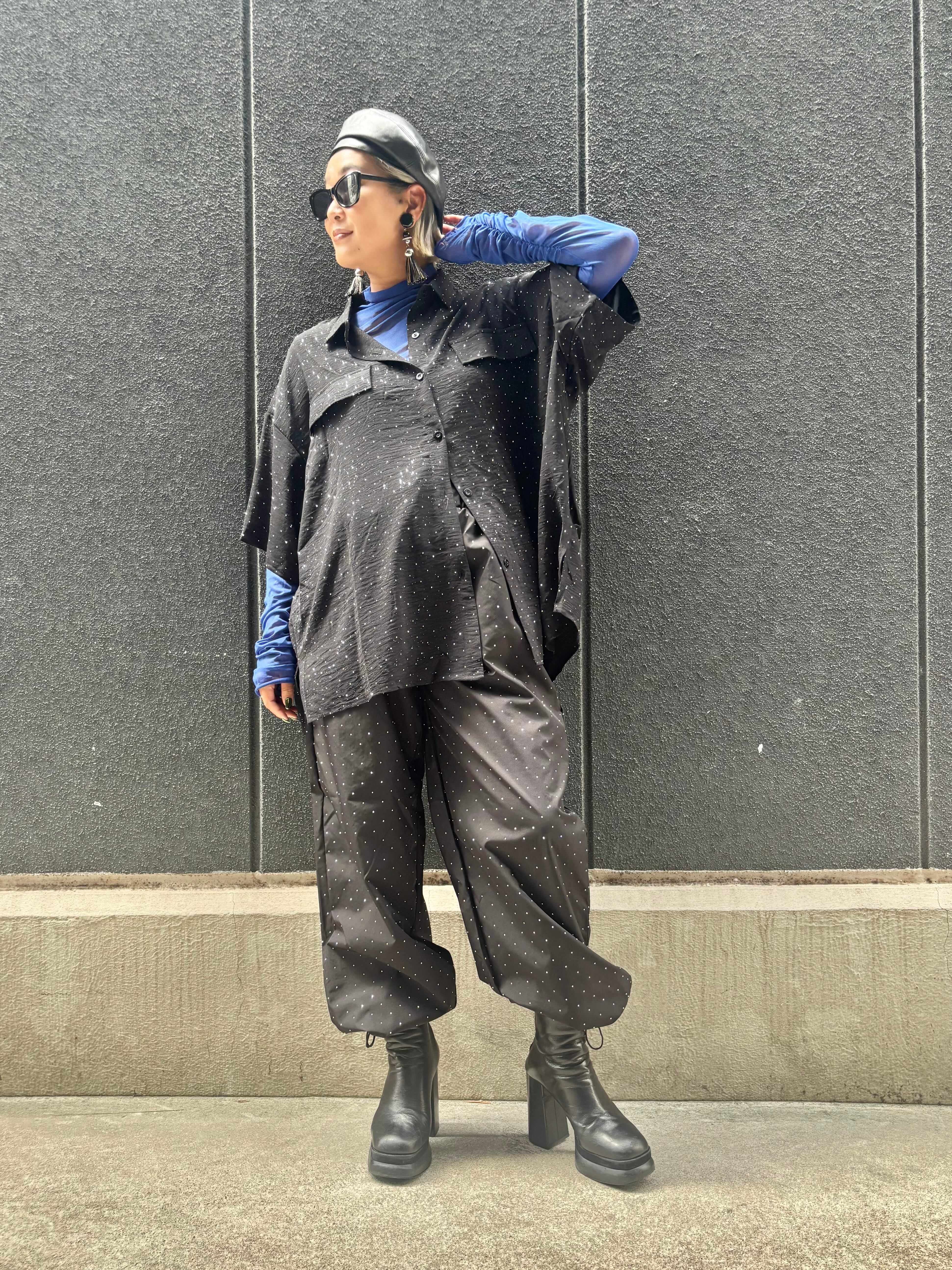 mini stone over size shirt シャツ オーバーサイズ ハピス キラキラ ブラック 黒