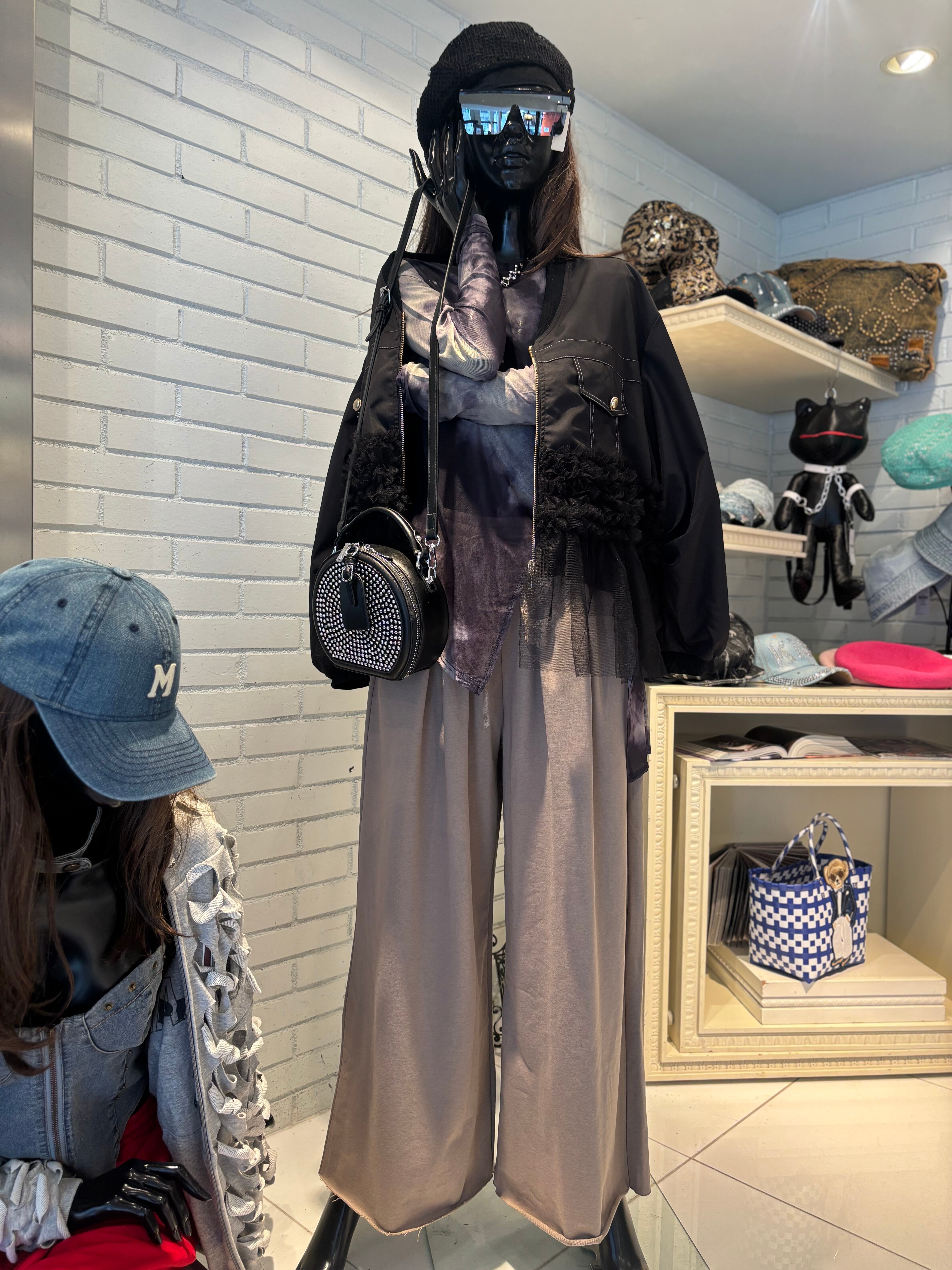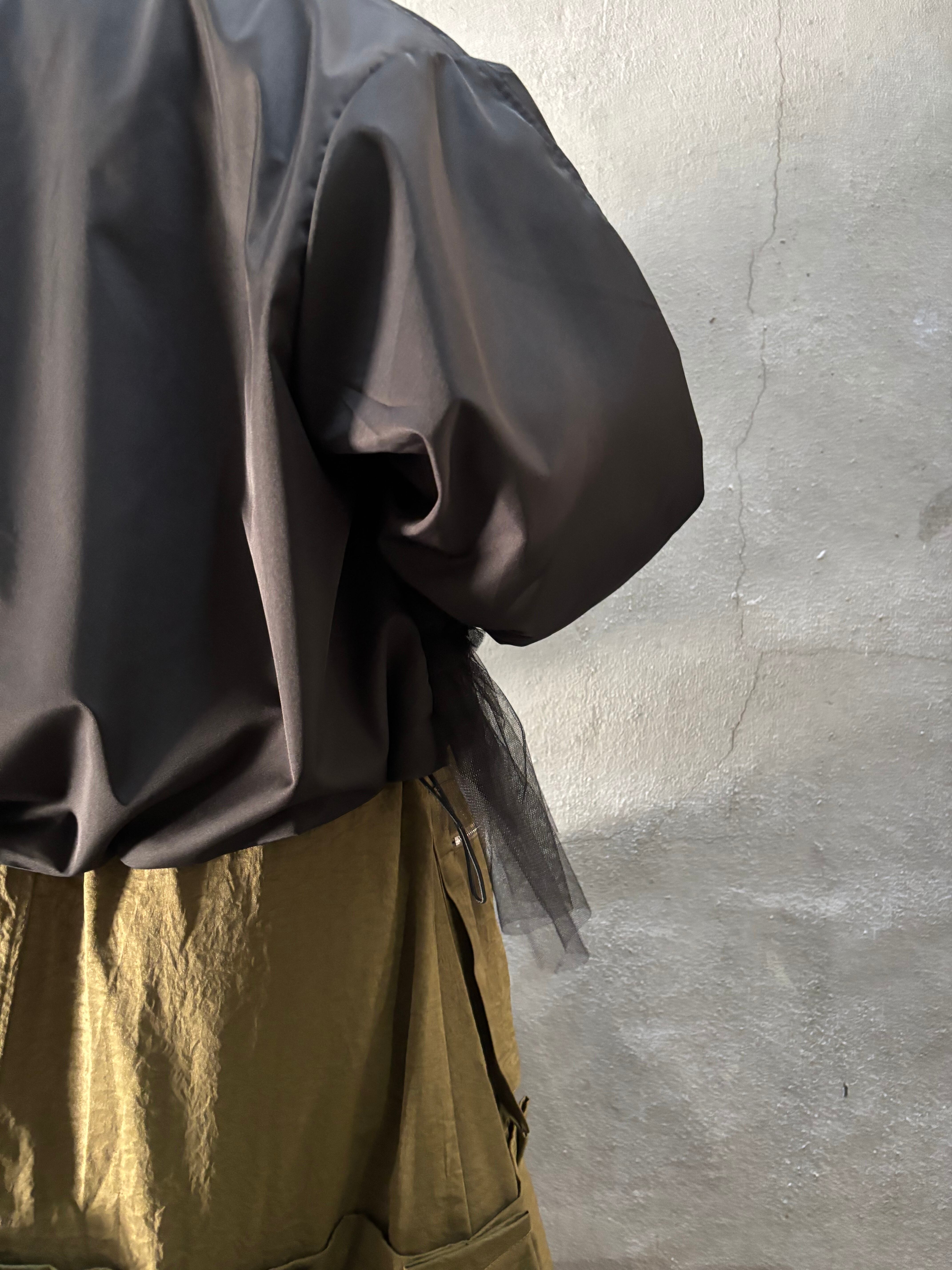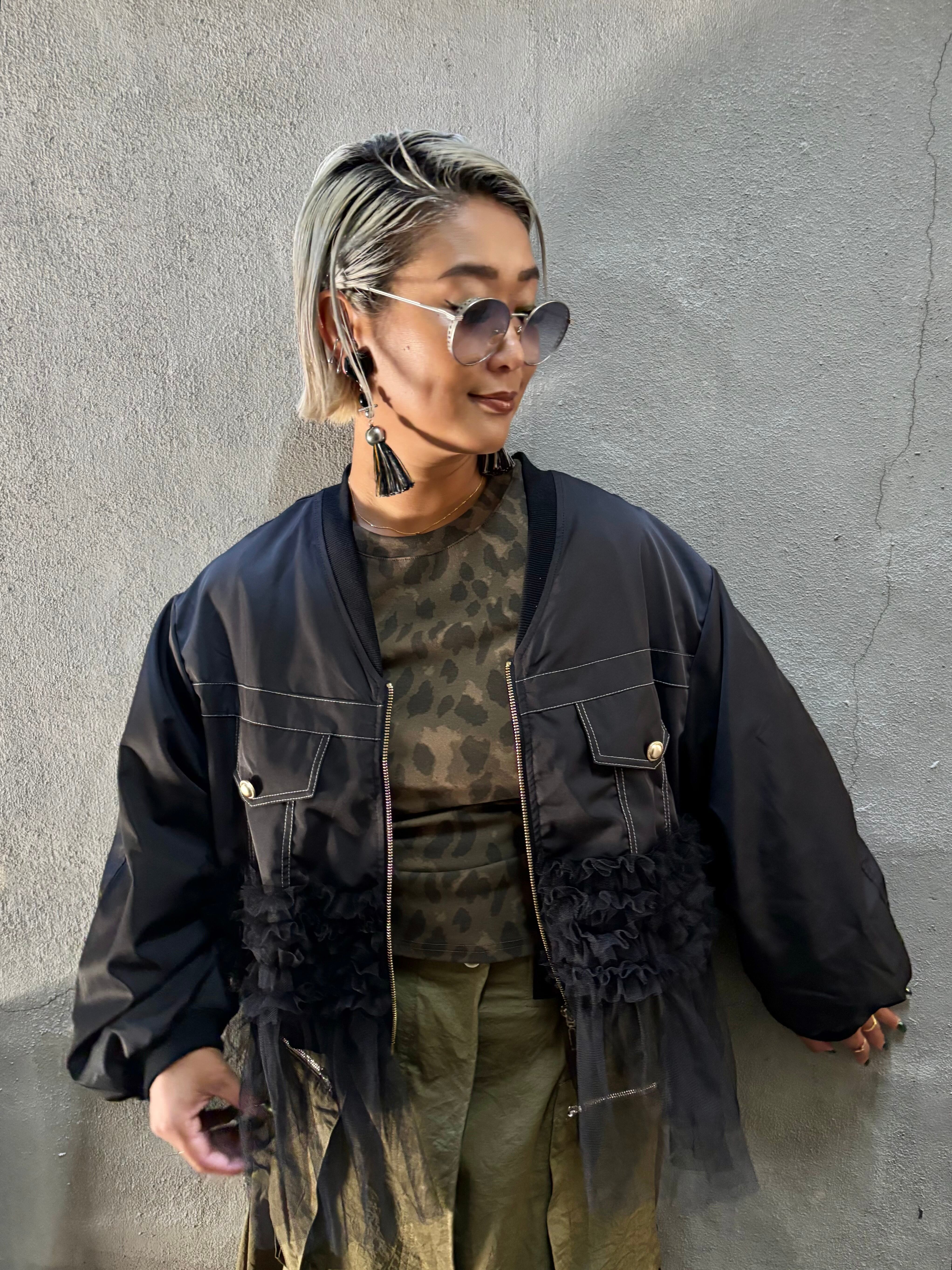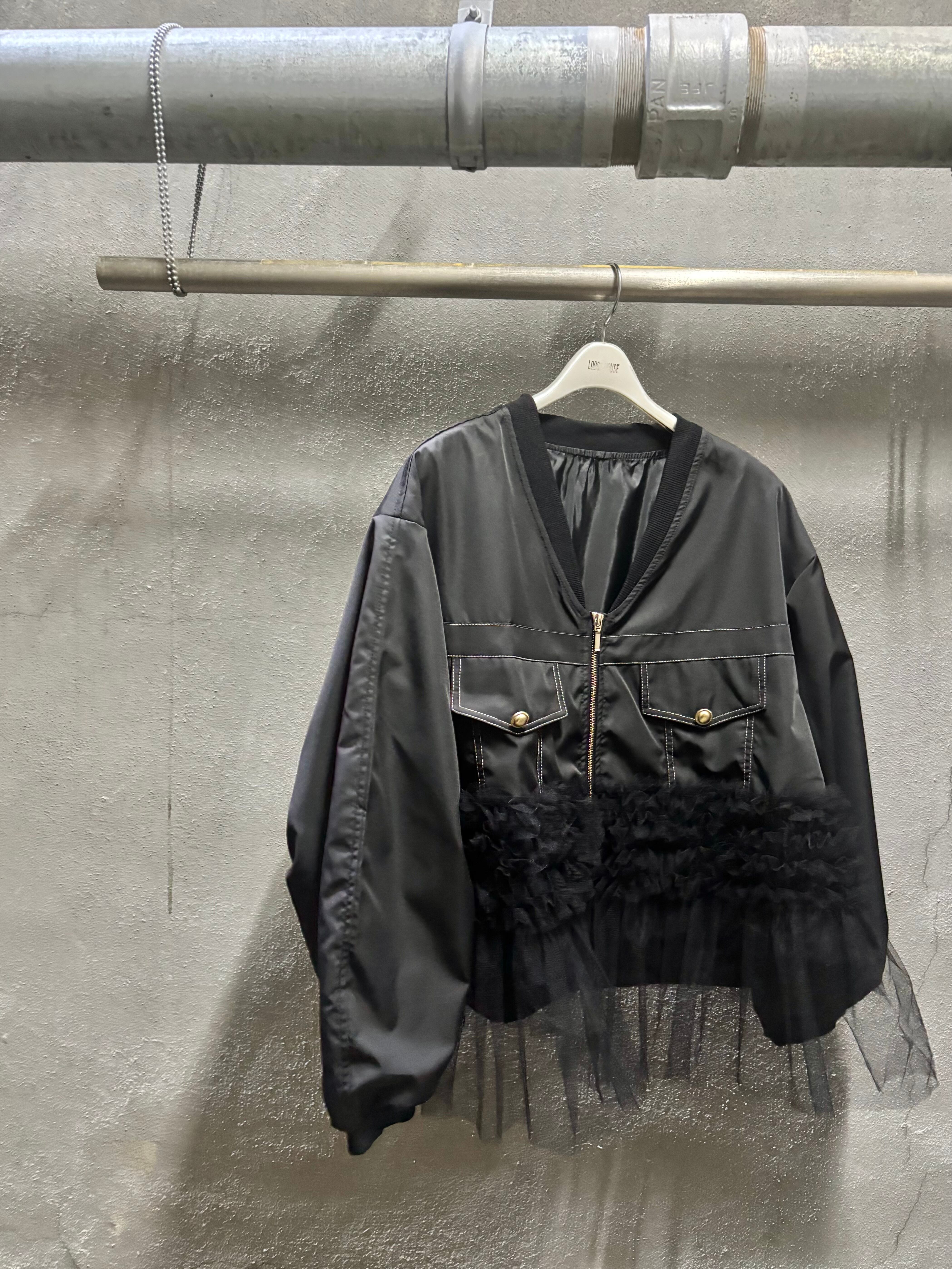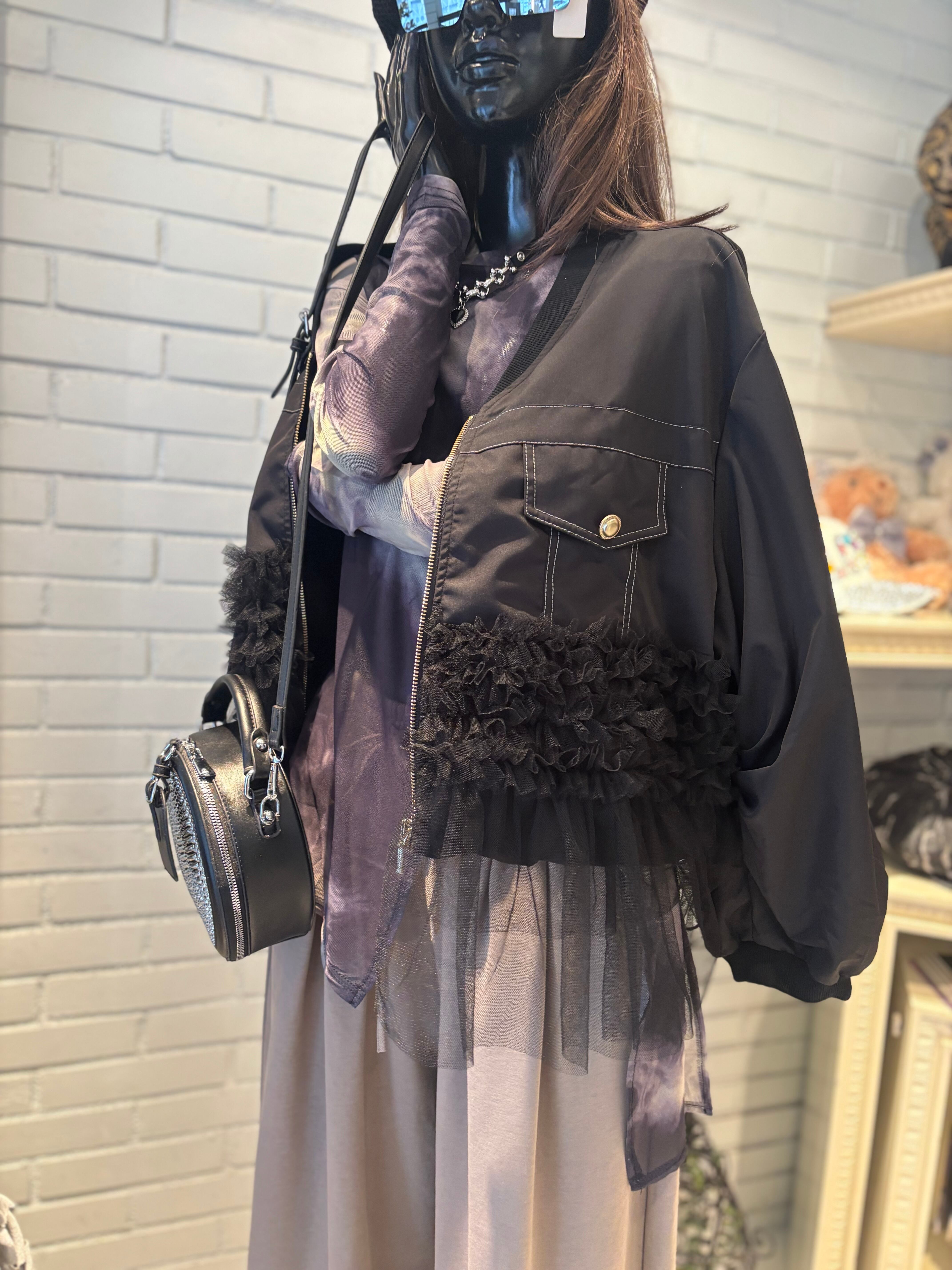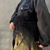 tulle frill × tuck sleeve design blouson jacket ブルゾン ジャケット チュール フリル タック スリーブ Vネック アウター ドローコード