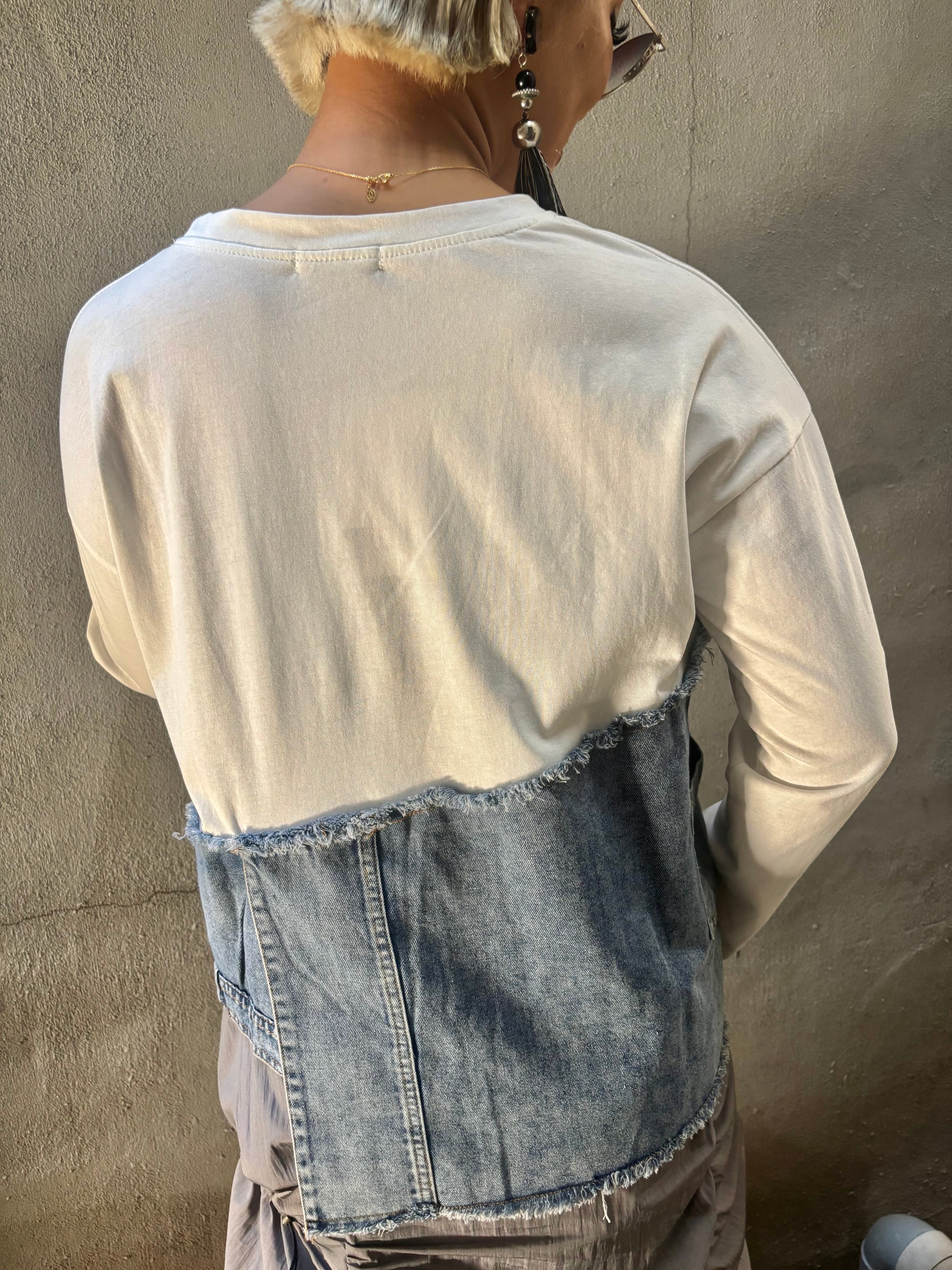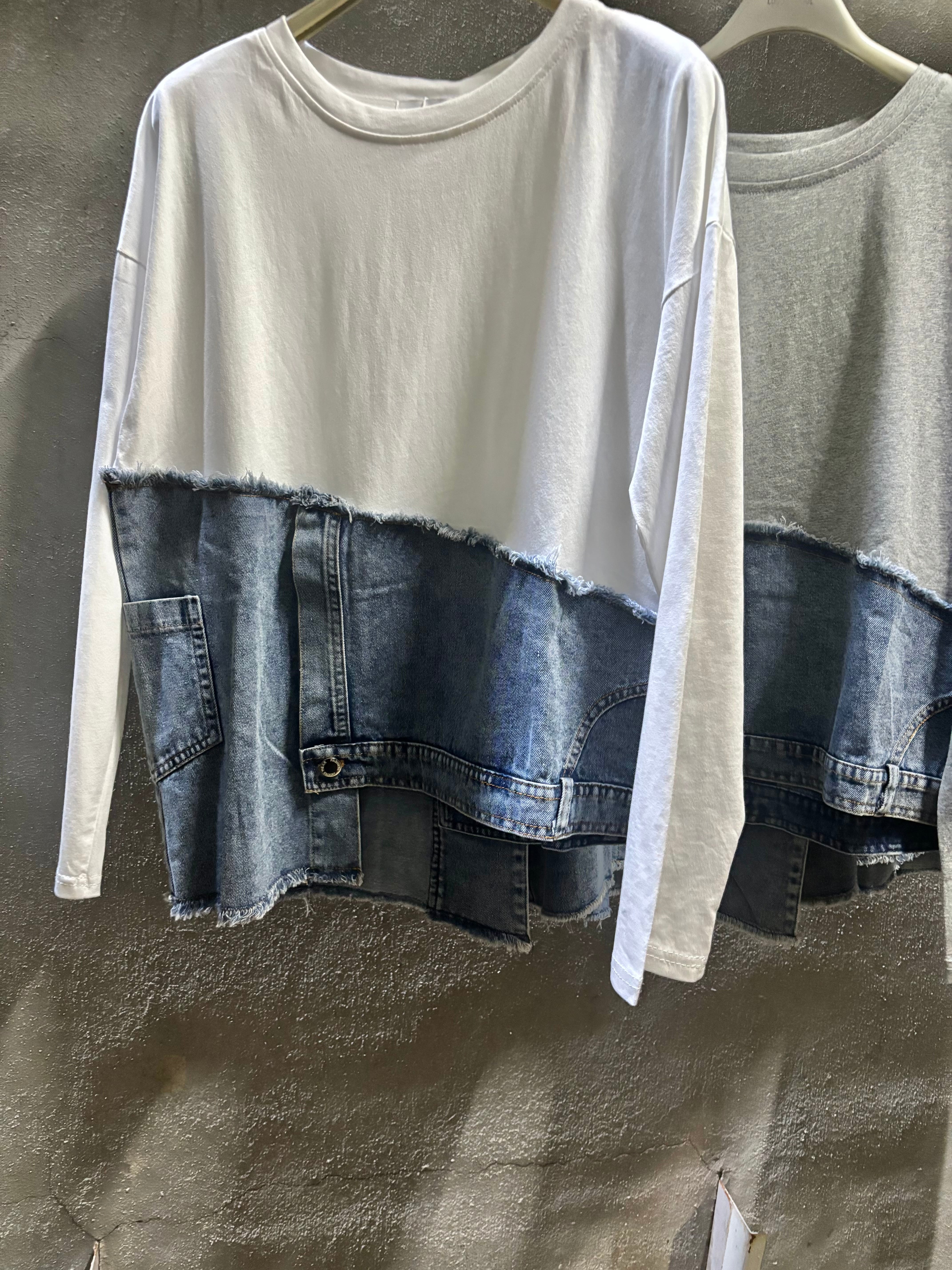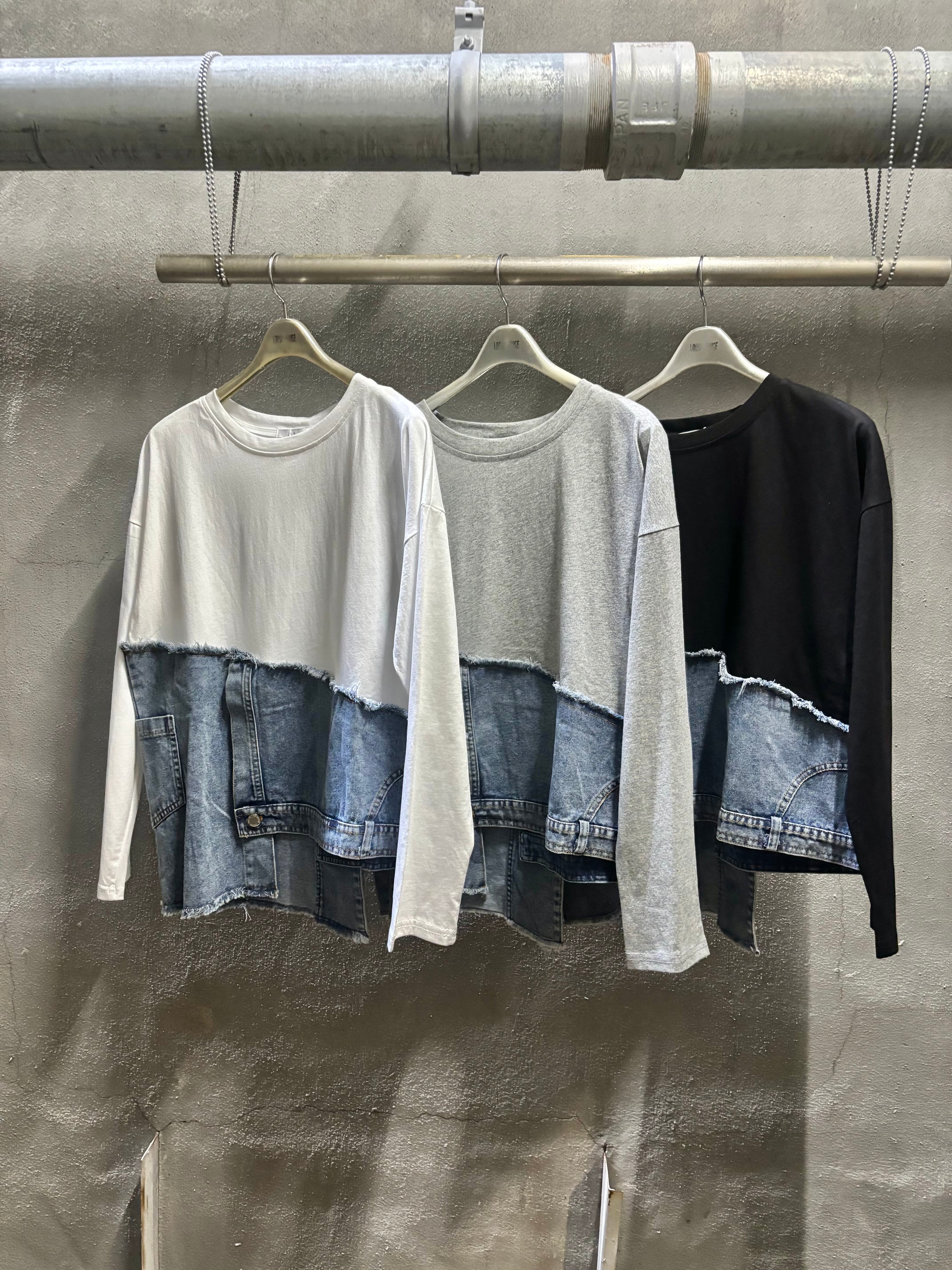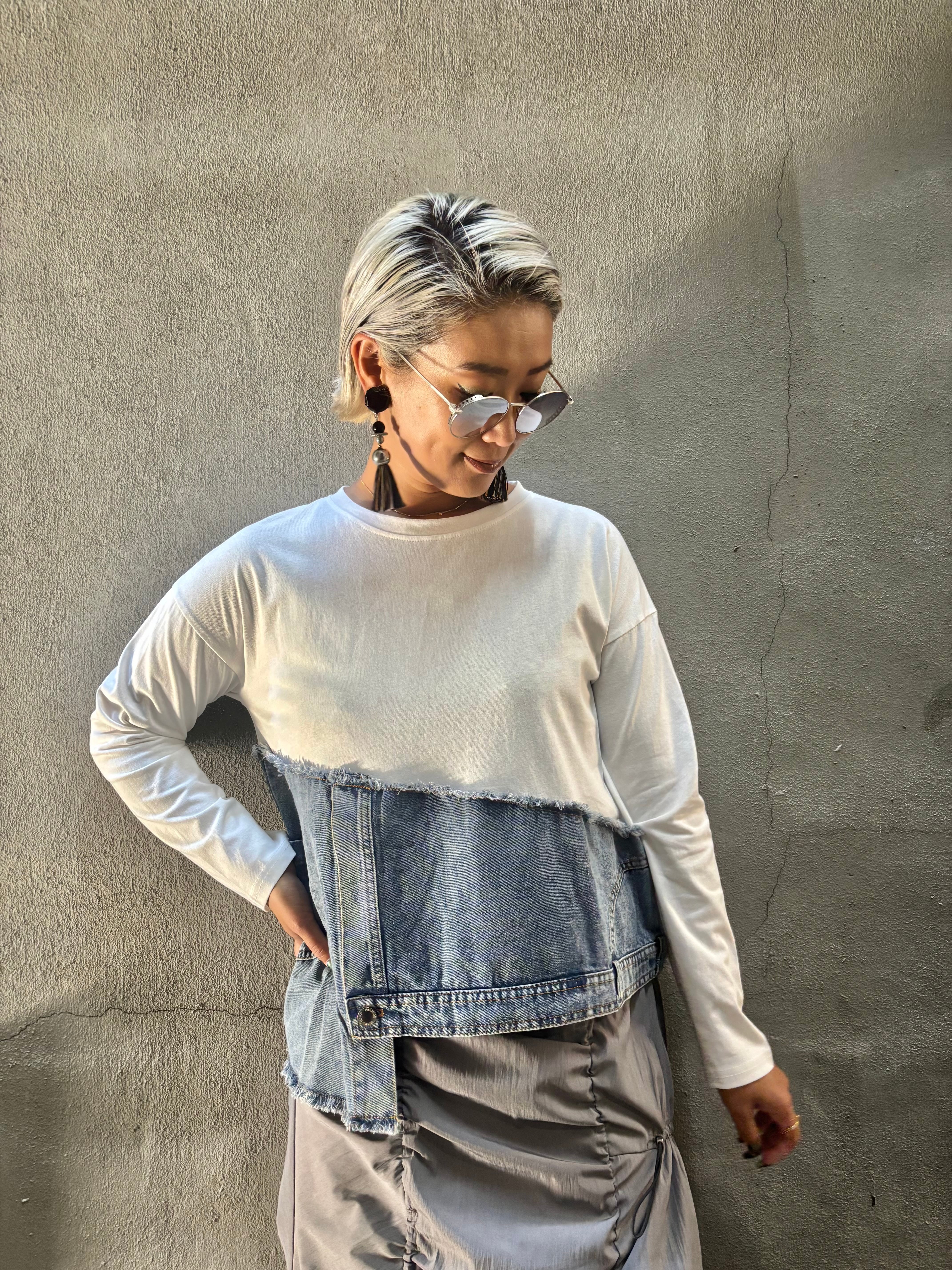 denim docking design tops トップス カットソー デニム ドッキング アシンメトリー 長袖
