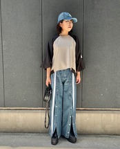 スラックスパンツと合わせればキレイめなスタイルにも♪