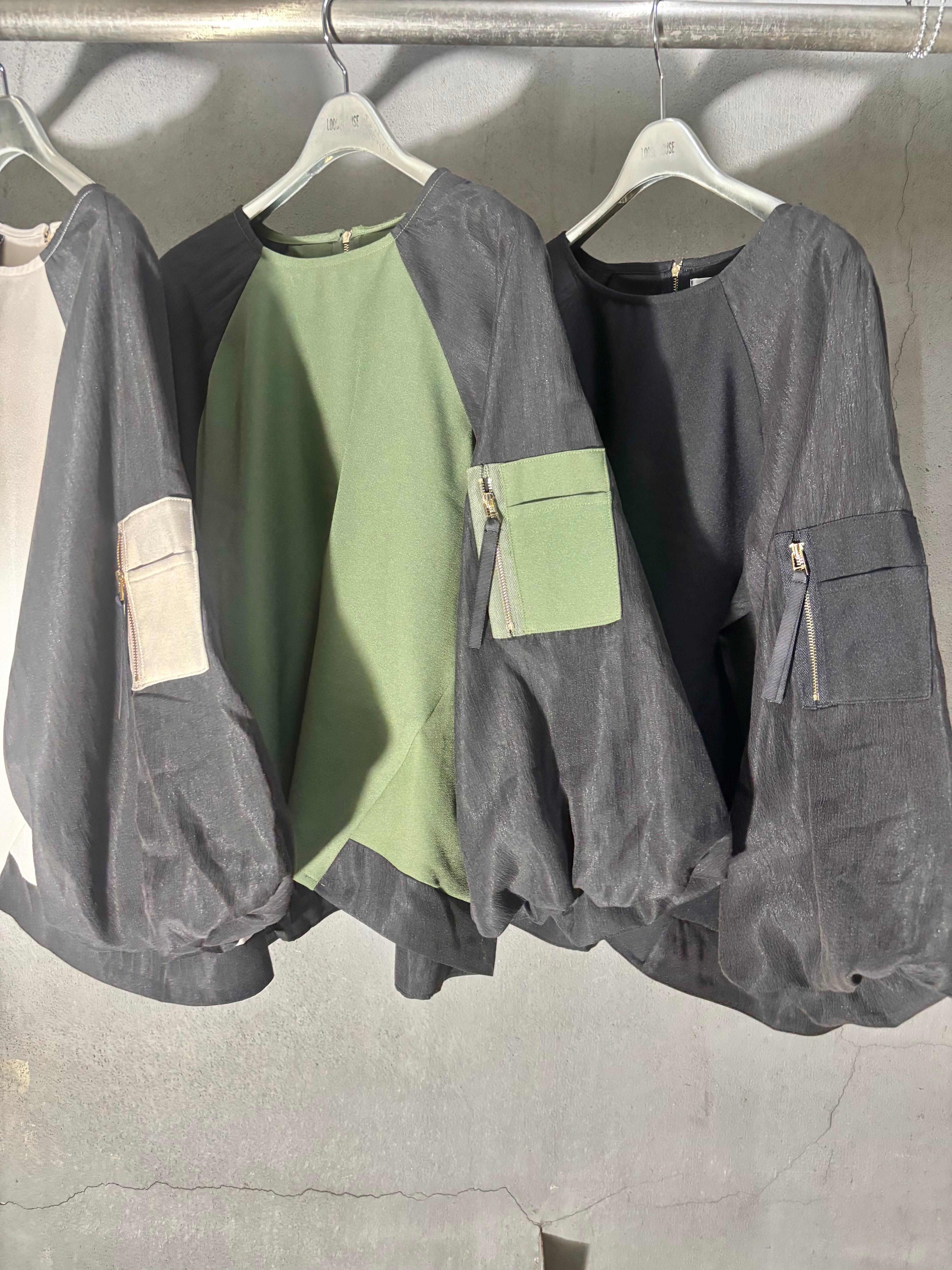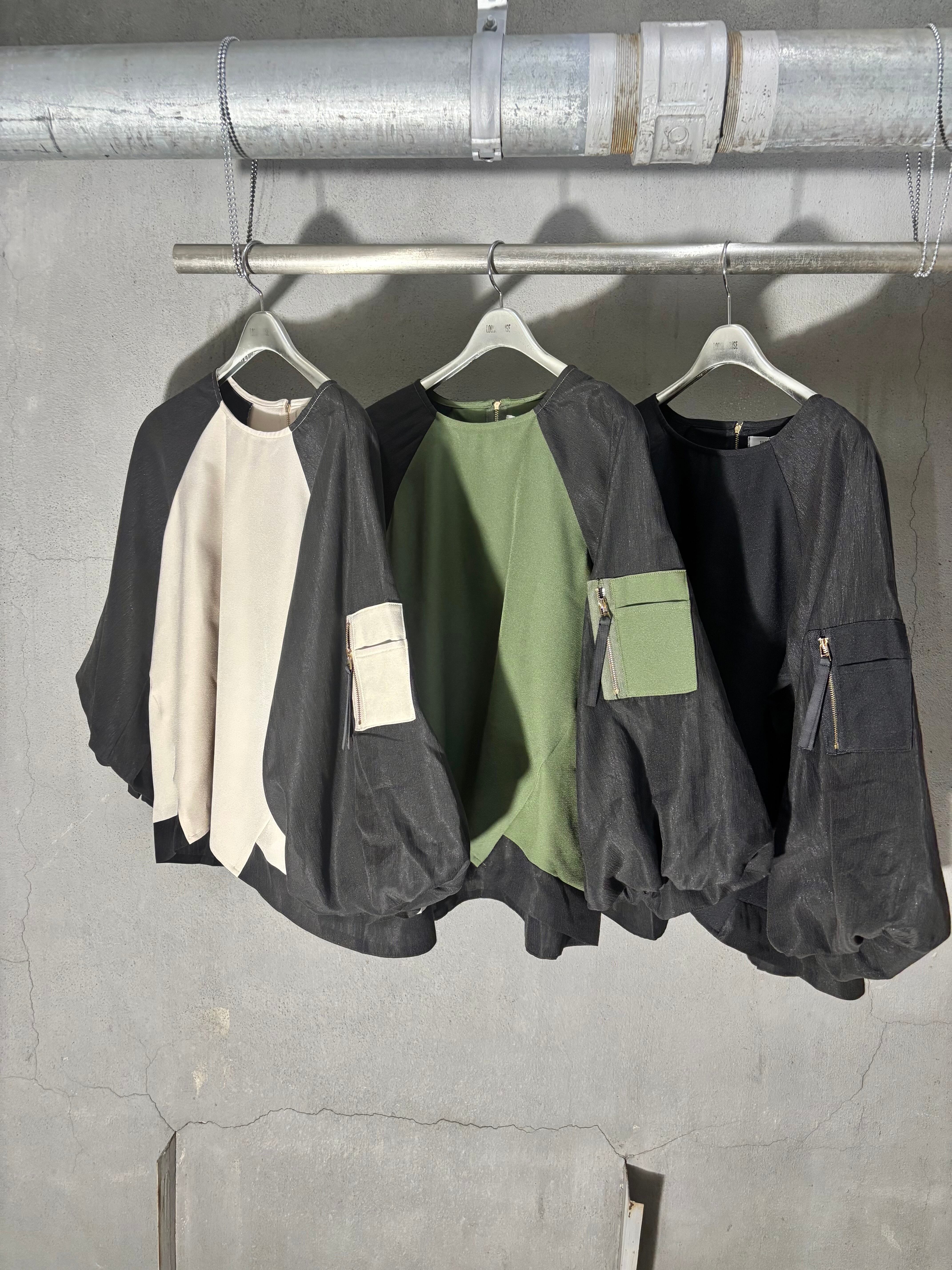 bi-color change design × balloon sleeve tops トップス 切替デザイン バルーン ポケット バイカラー