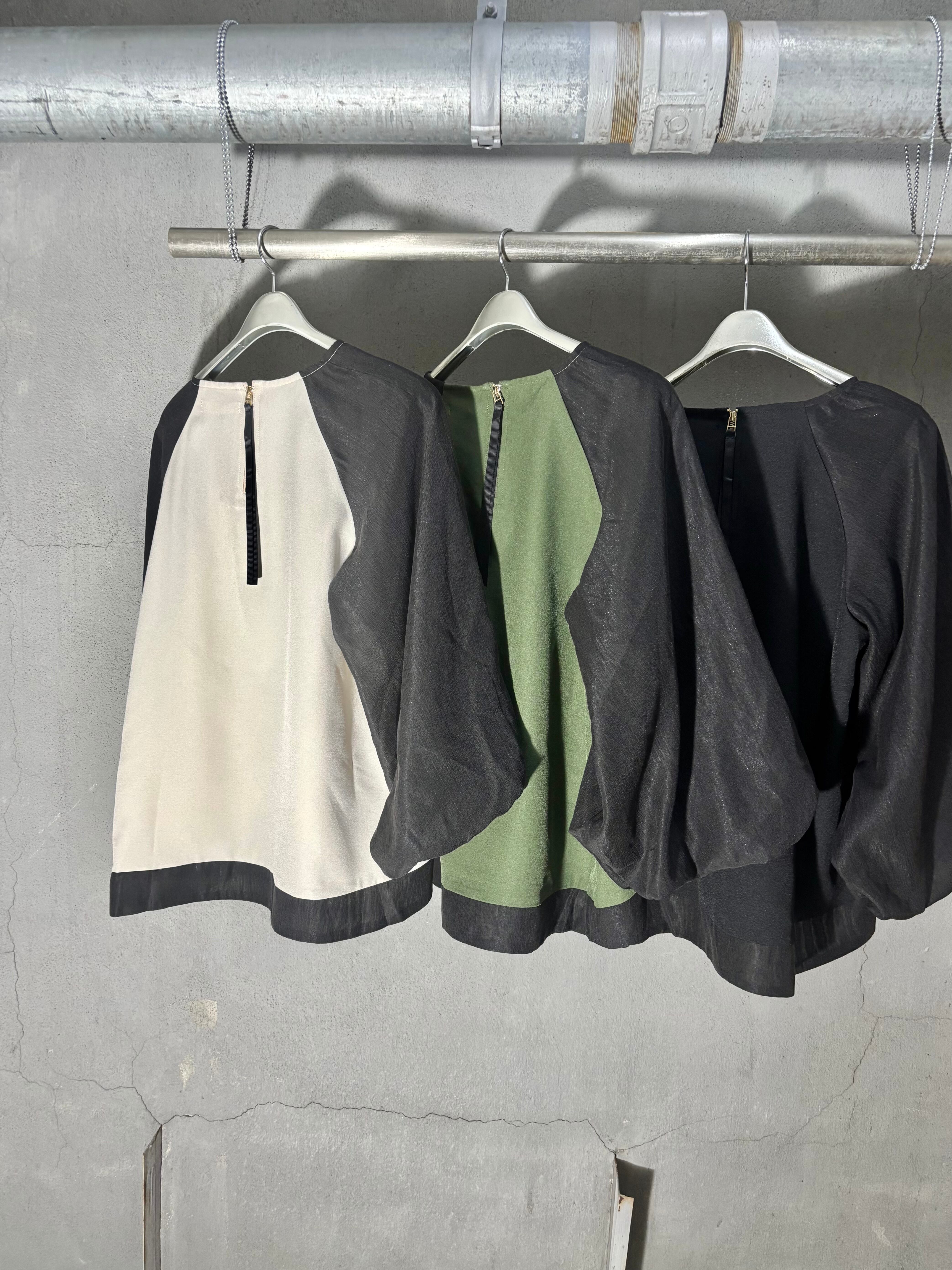切り替えデザインとバルーンスリーブが特徴のスタイリッシュな個性的なトップスです♪