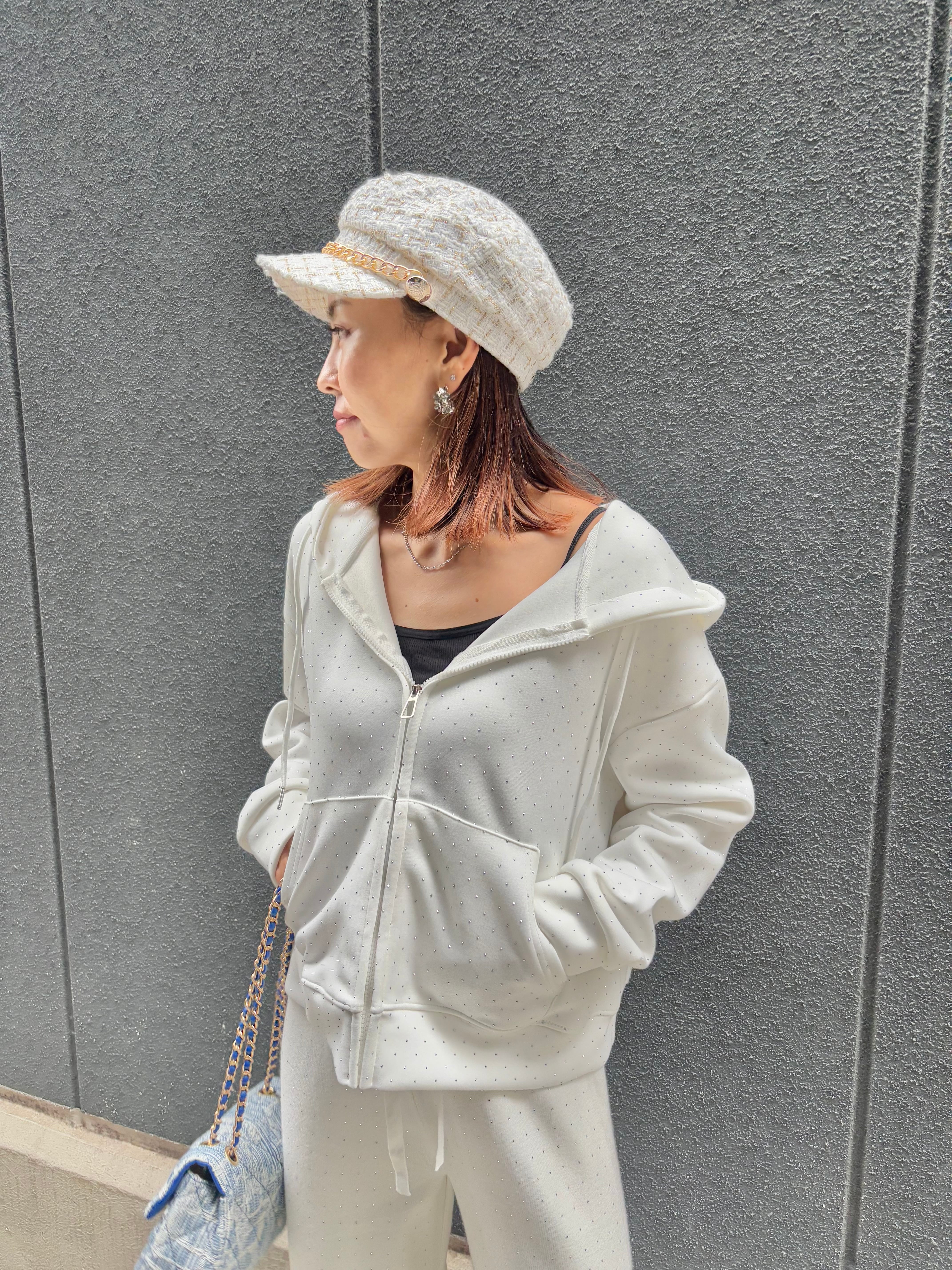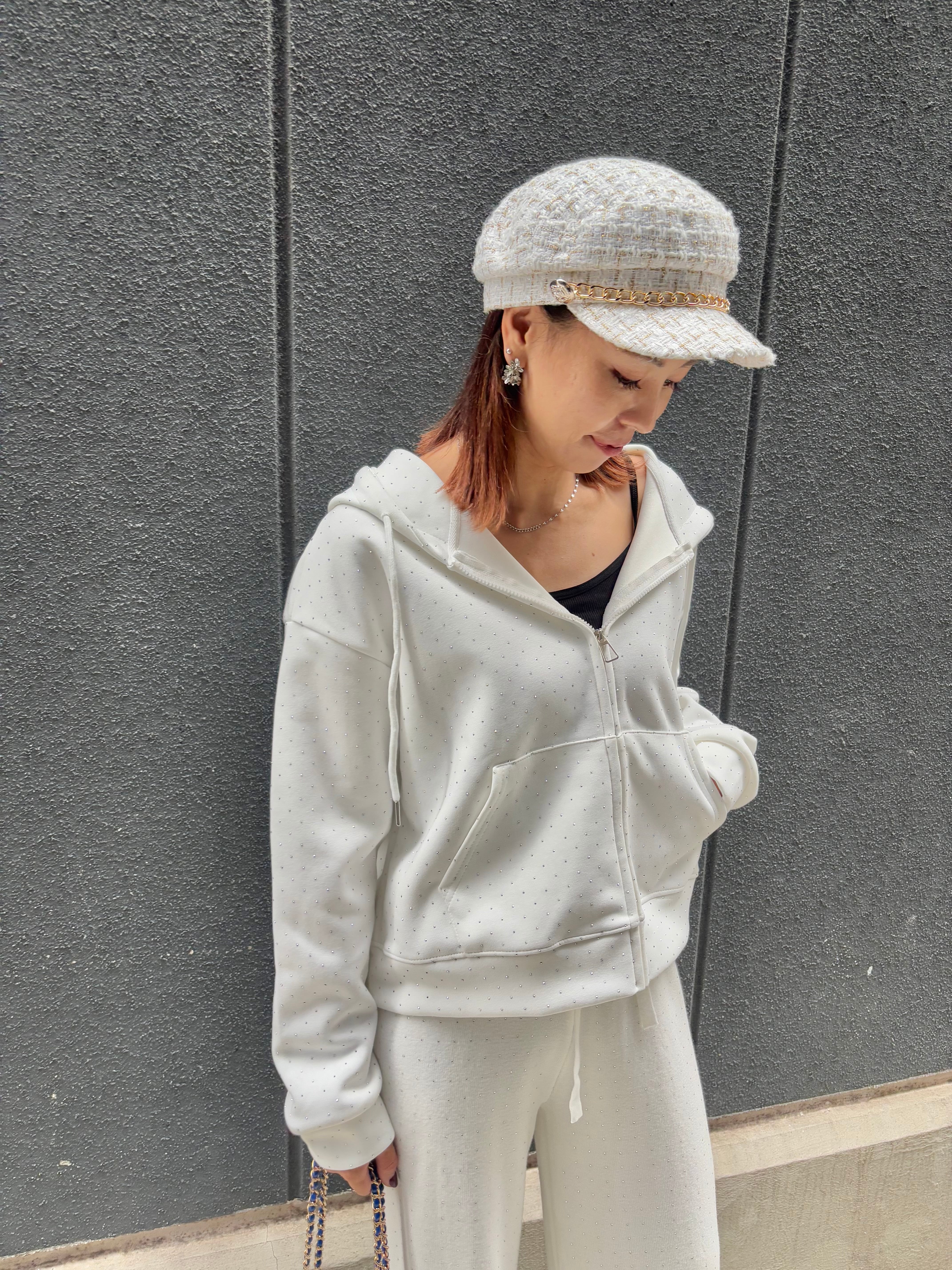 mini stone zip up hoodie jacket ジャケット スウェット フーディー フード キラキラ ハピス シルバー