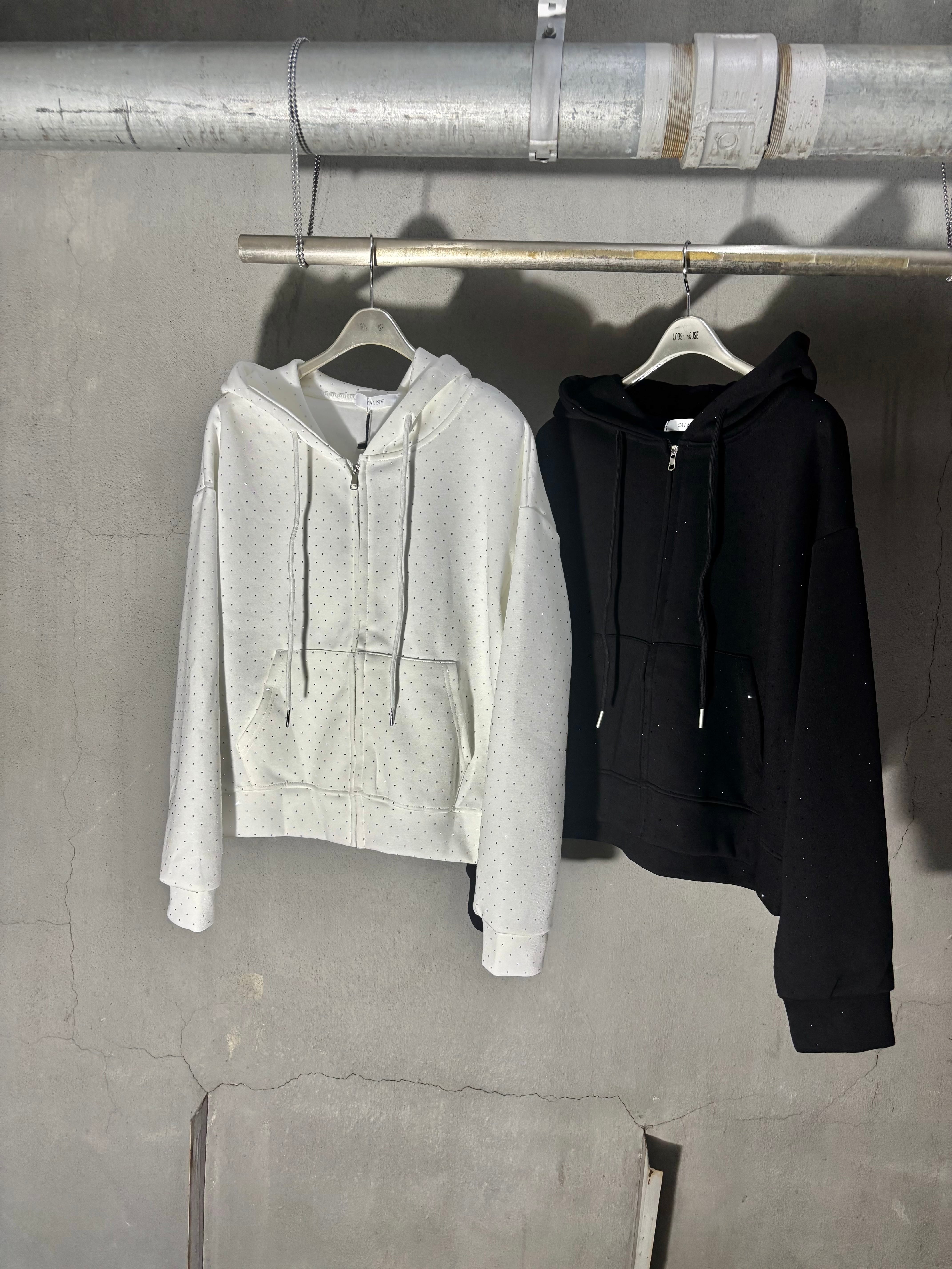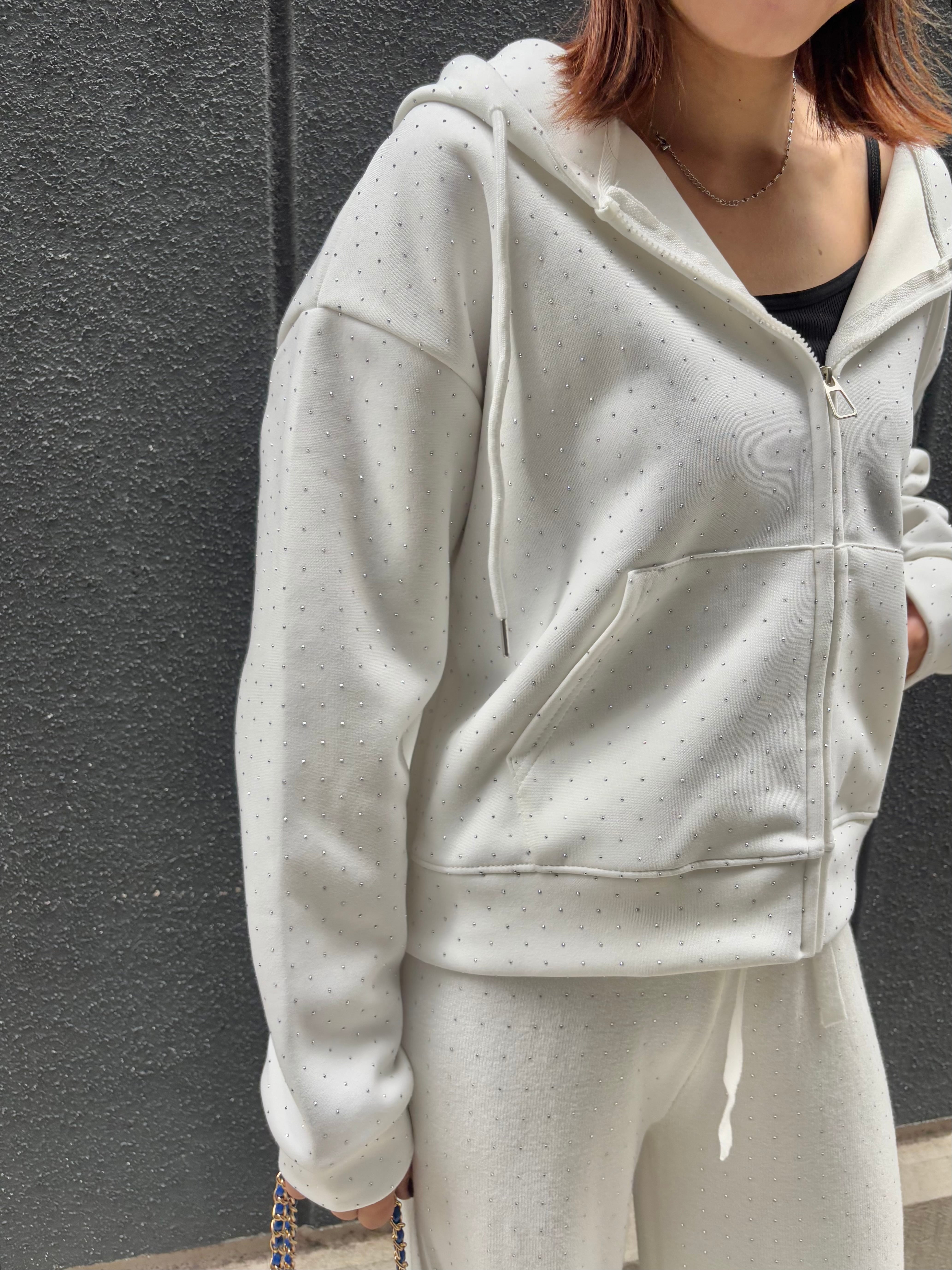 キラキラとした極小サイズのストーンが散りばめられたデザインのフーディージャケット!