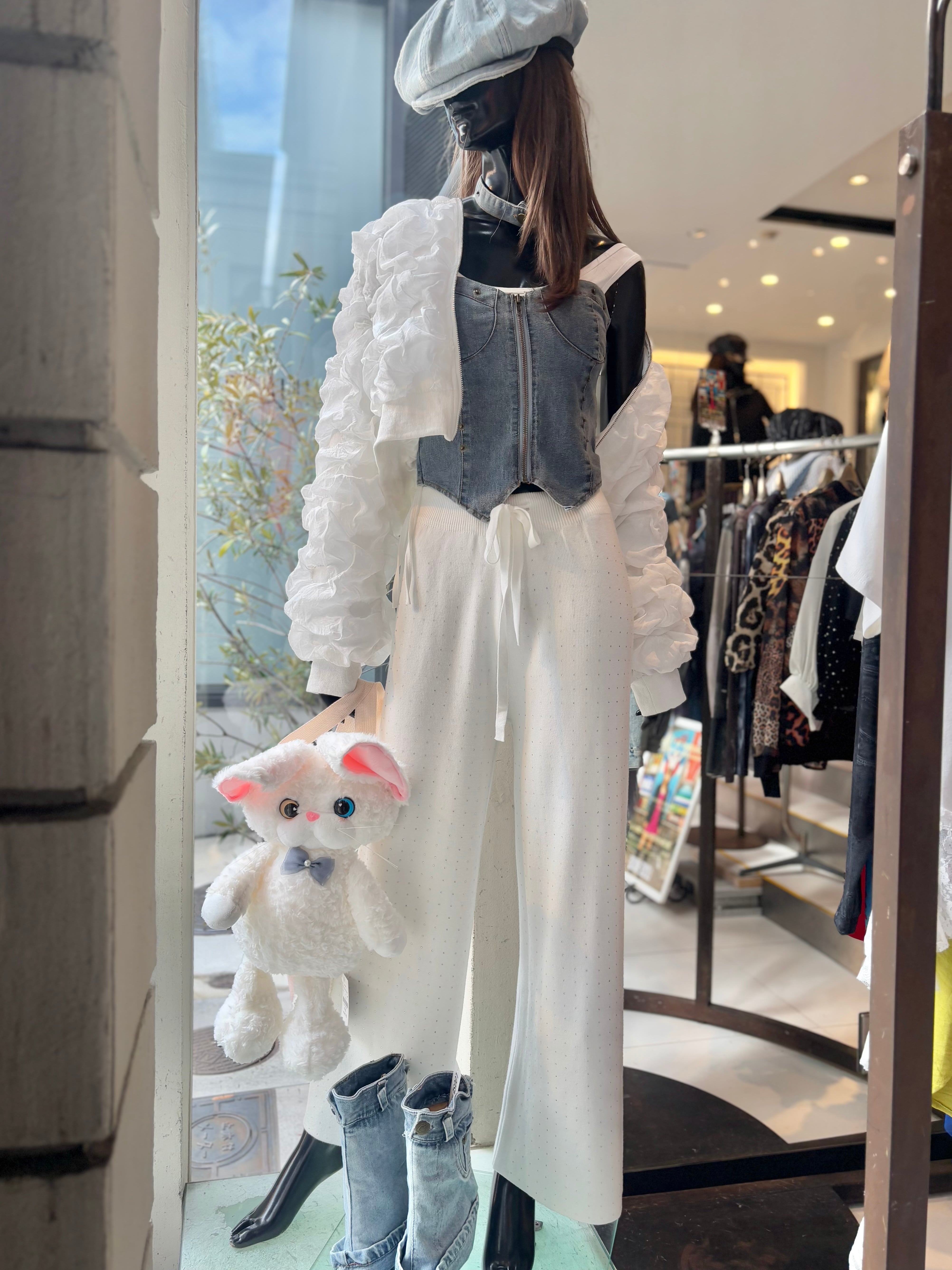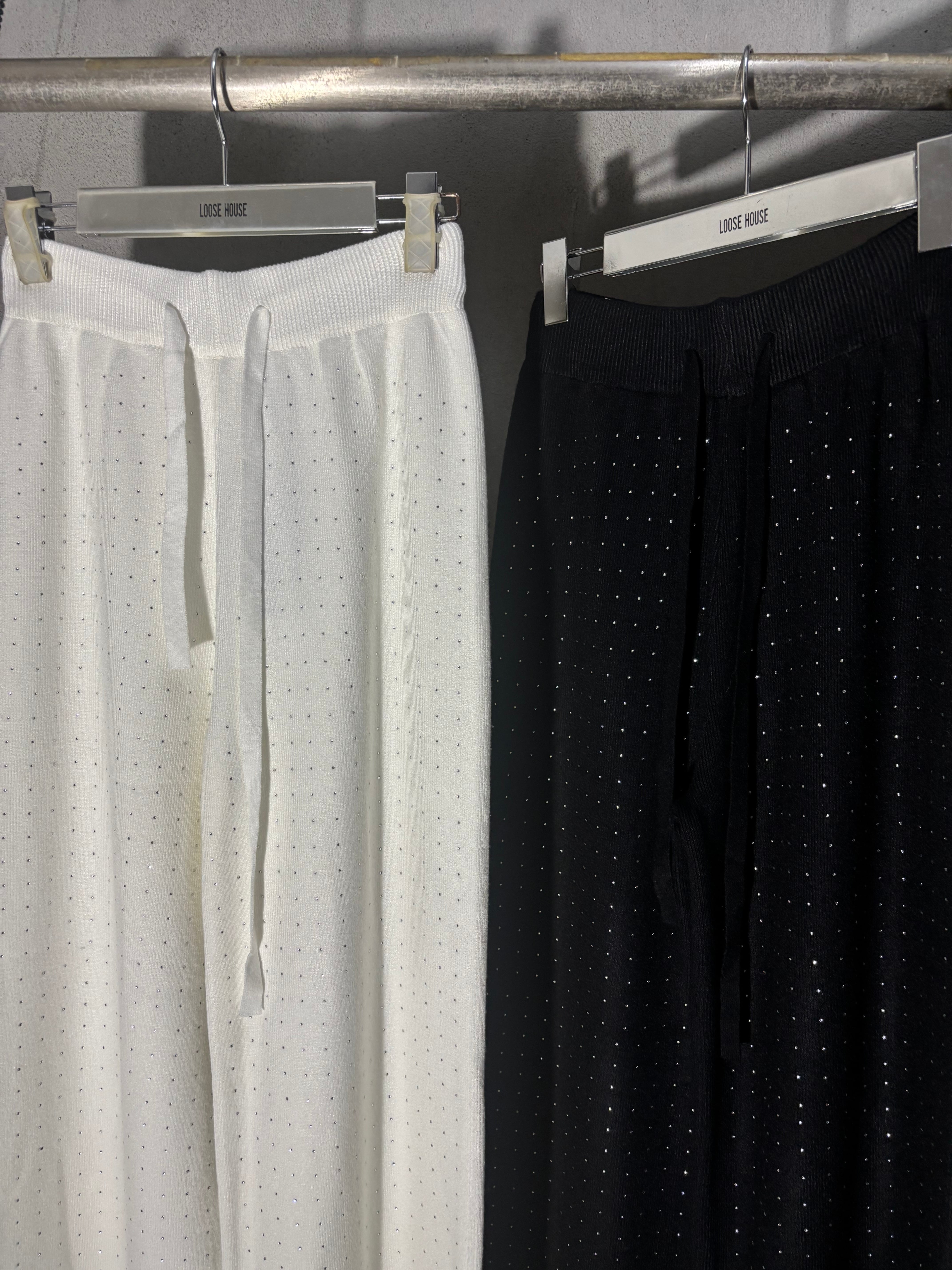 mini stone front design knit pants パンツ ワイドパンツ ニット ストーン キラキラ ゴムウエスト