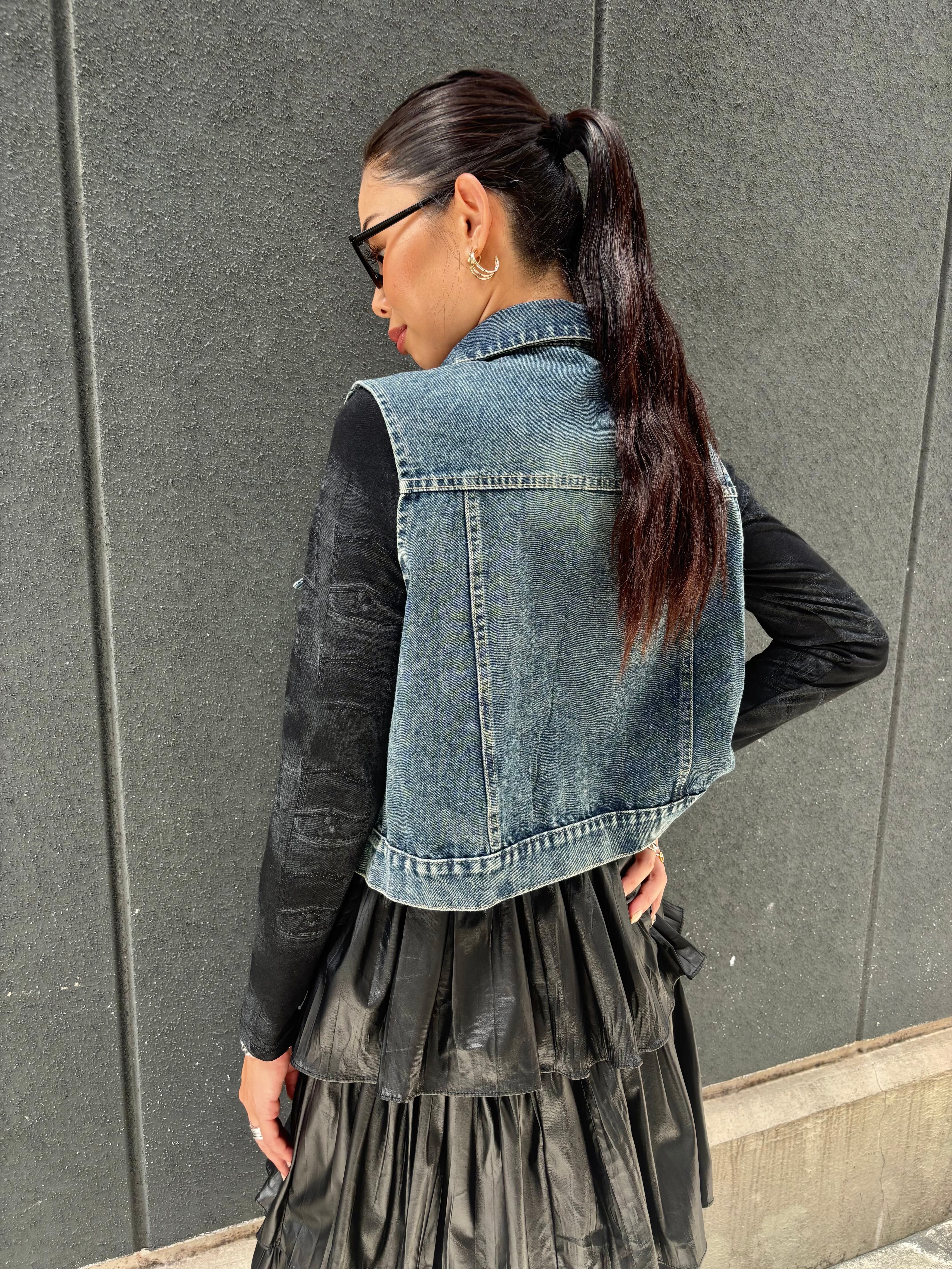 mini stone design denim vest ベスト デニム ハピス ストーン キラキラ 重ね着