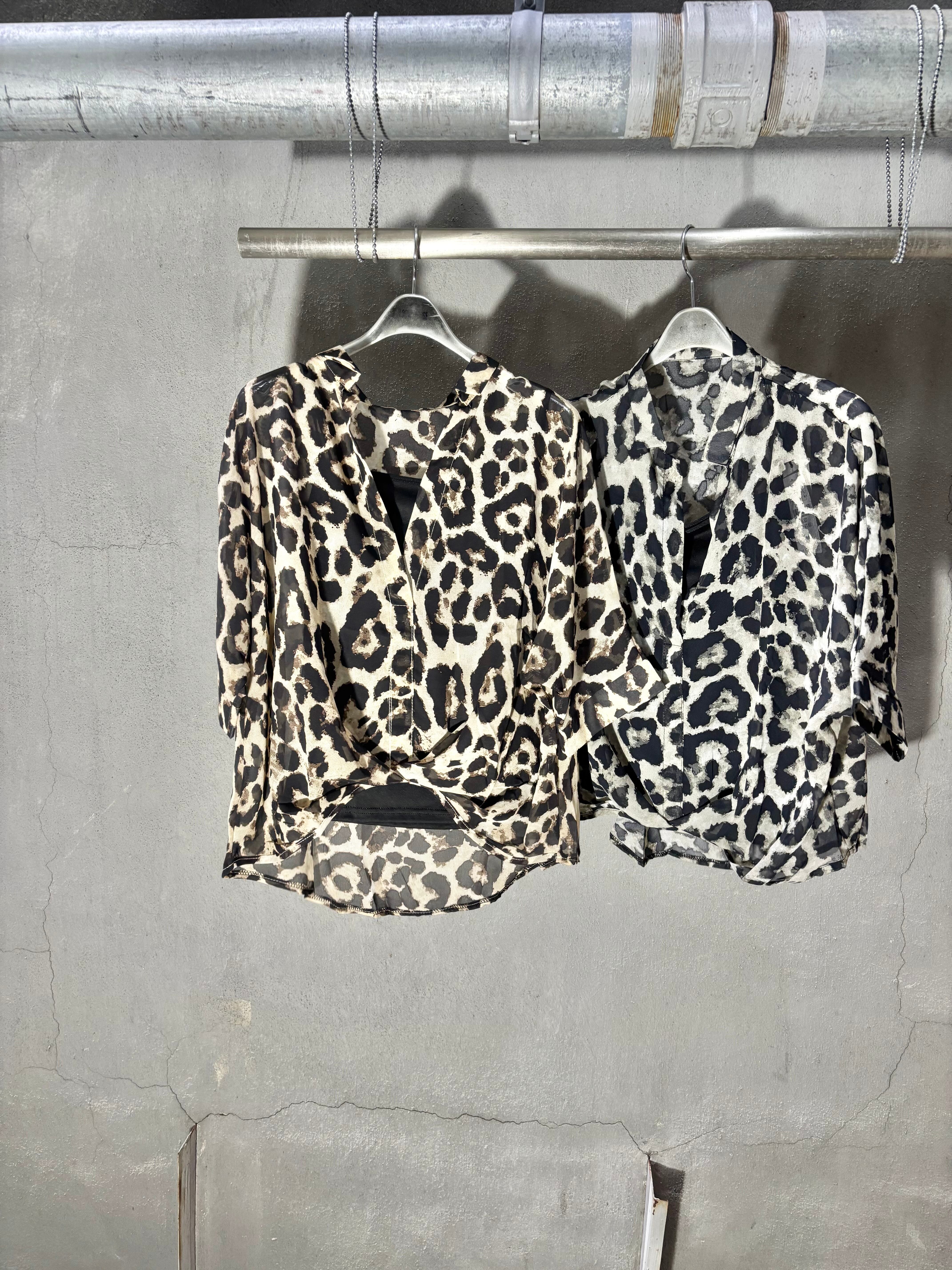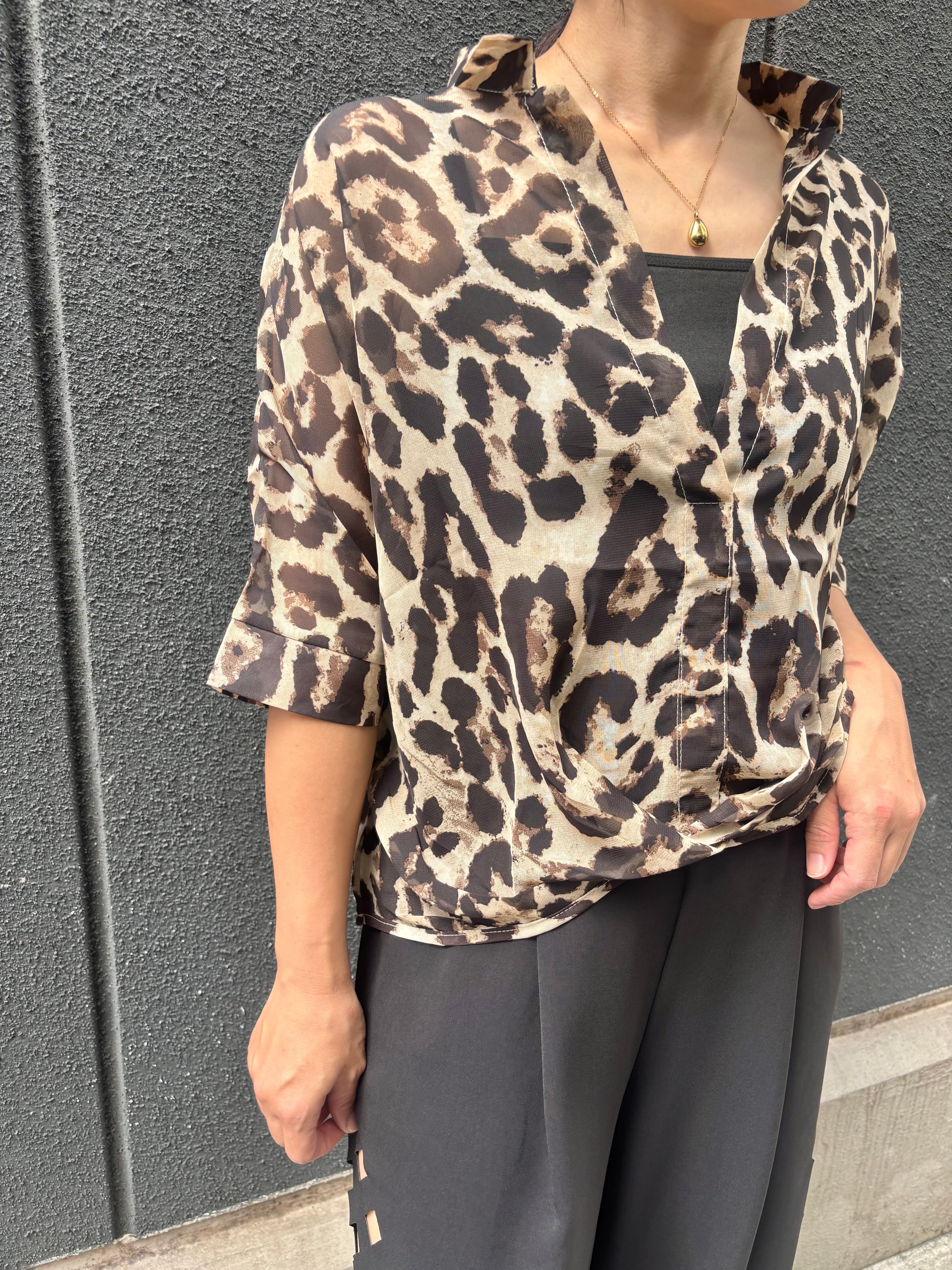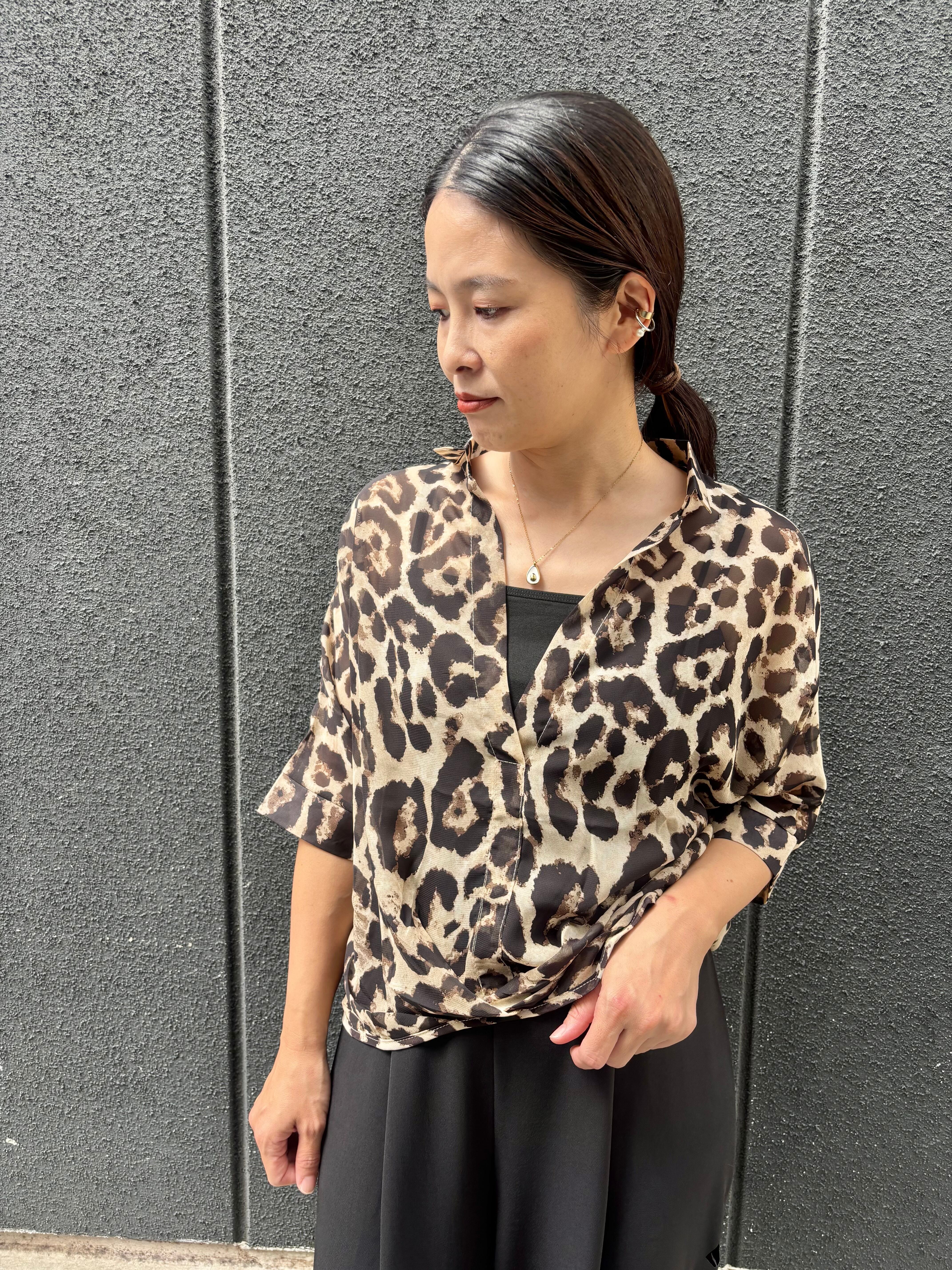 leopard chiffon tuck balloon design tops トップス シフォン レオパード 豹柄 ヒョウ柄 キャミソール セット バルーン