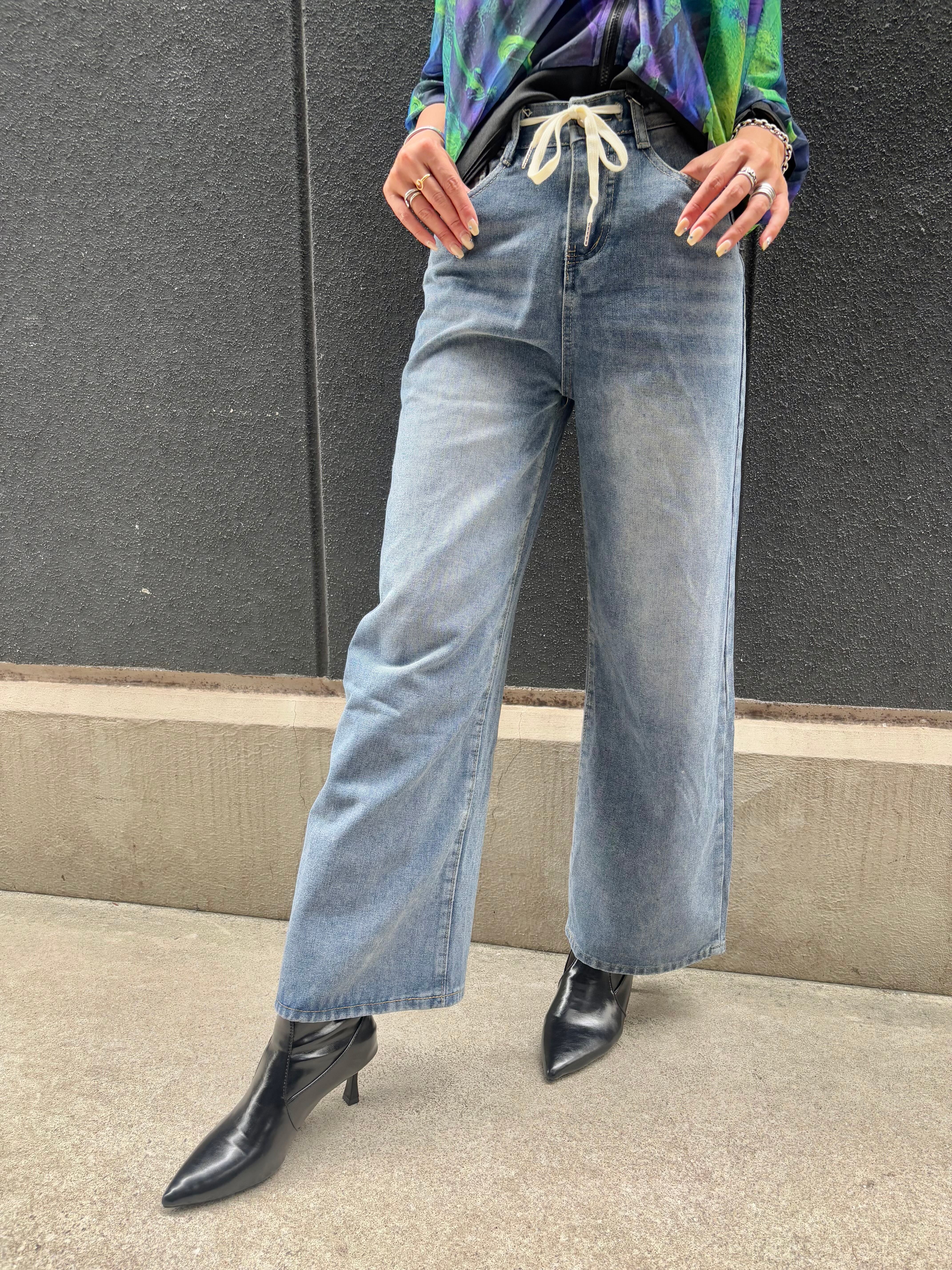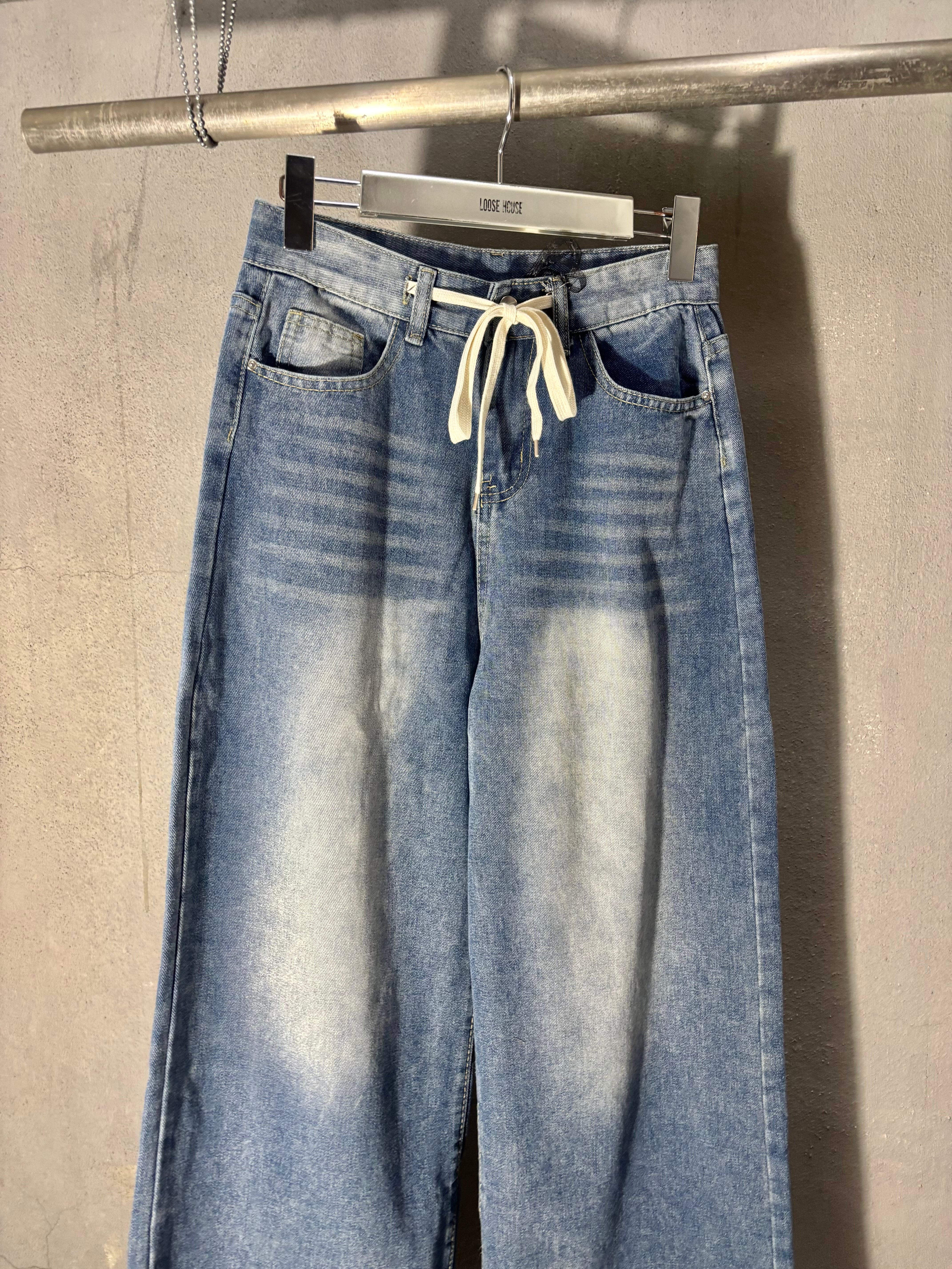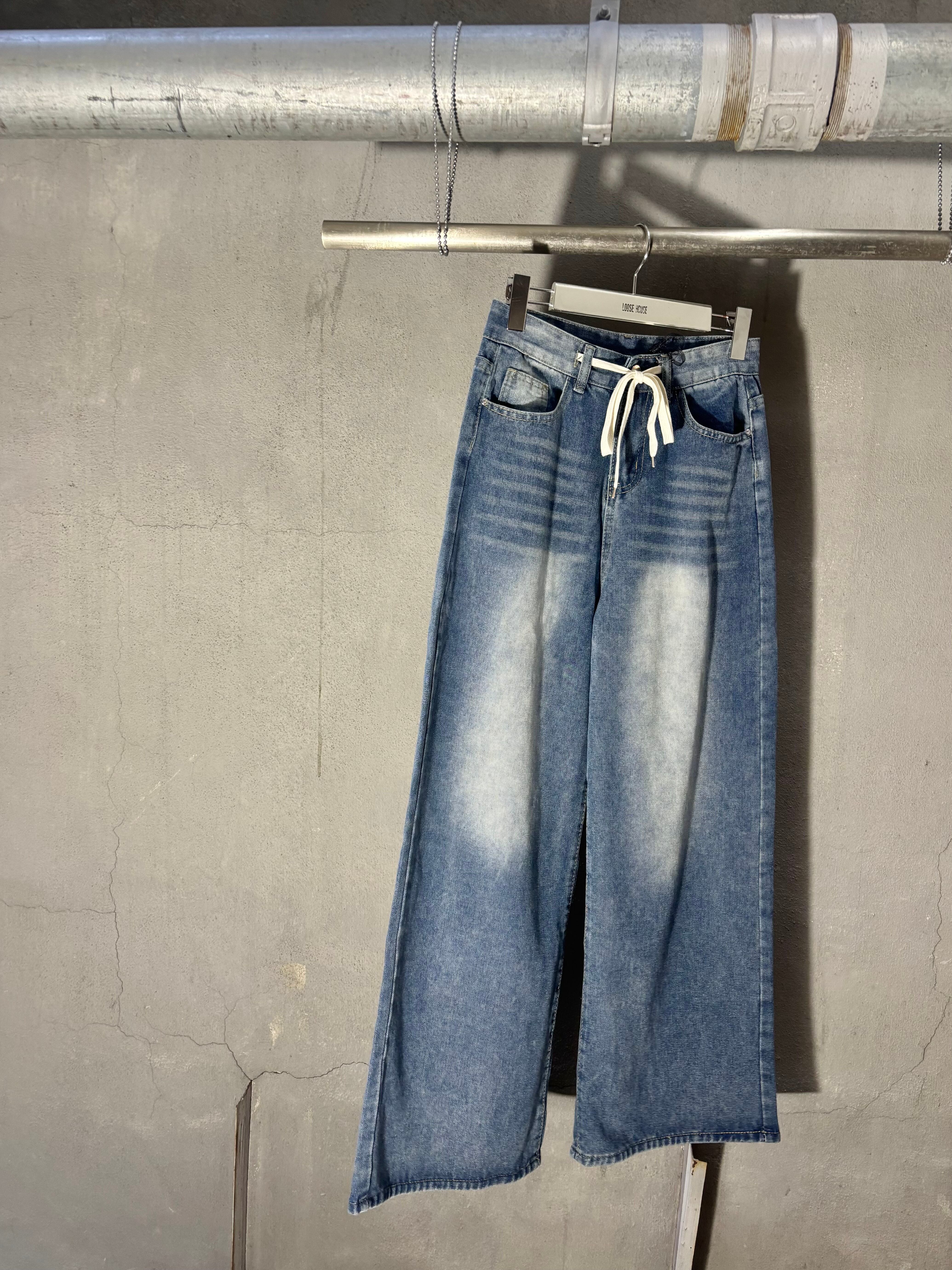 denim wide pants パンツ デニム ワイドパンツ 色落ち ロープウエスト