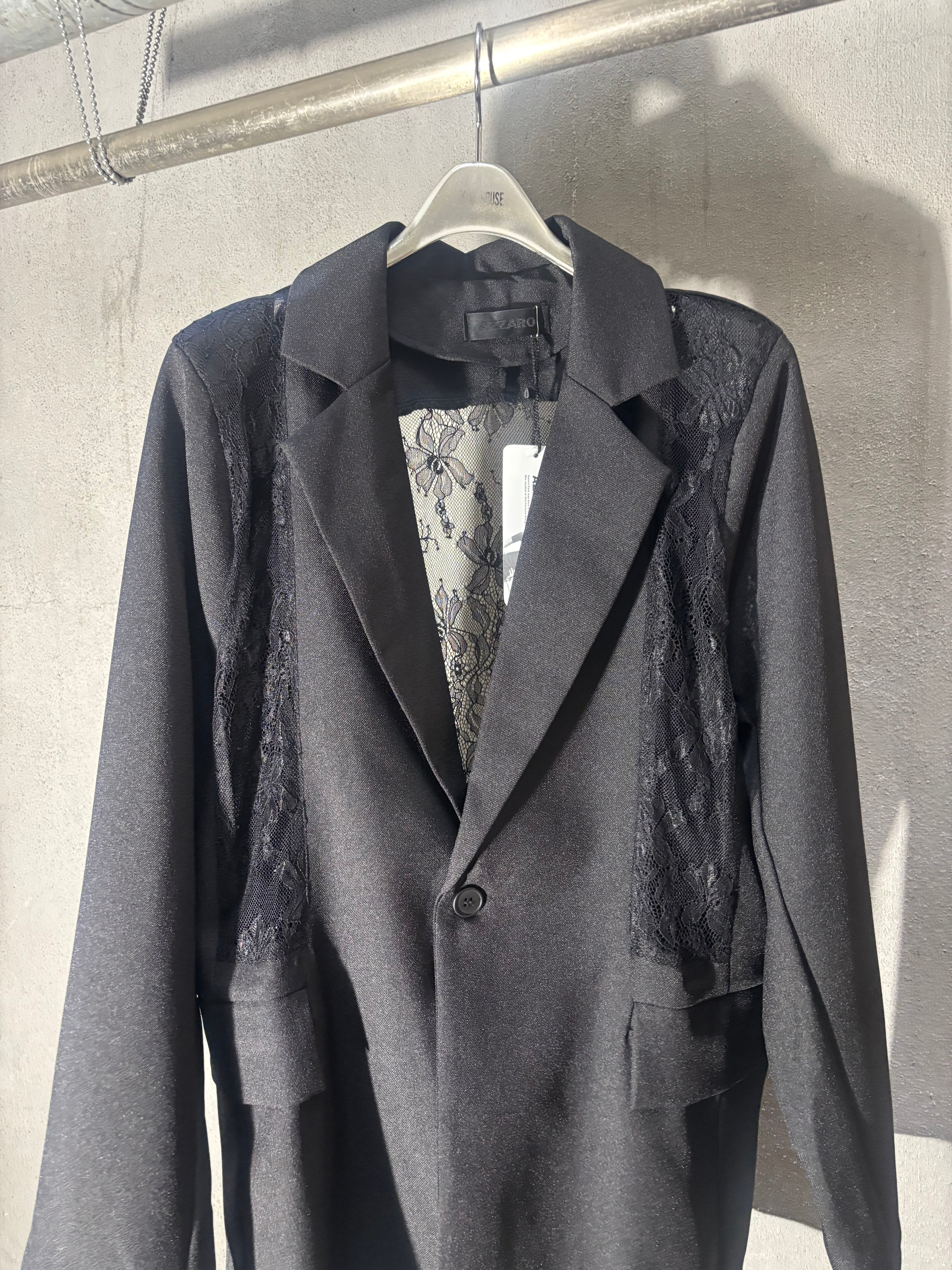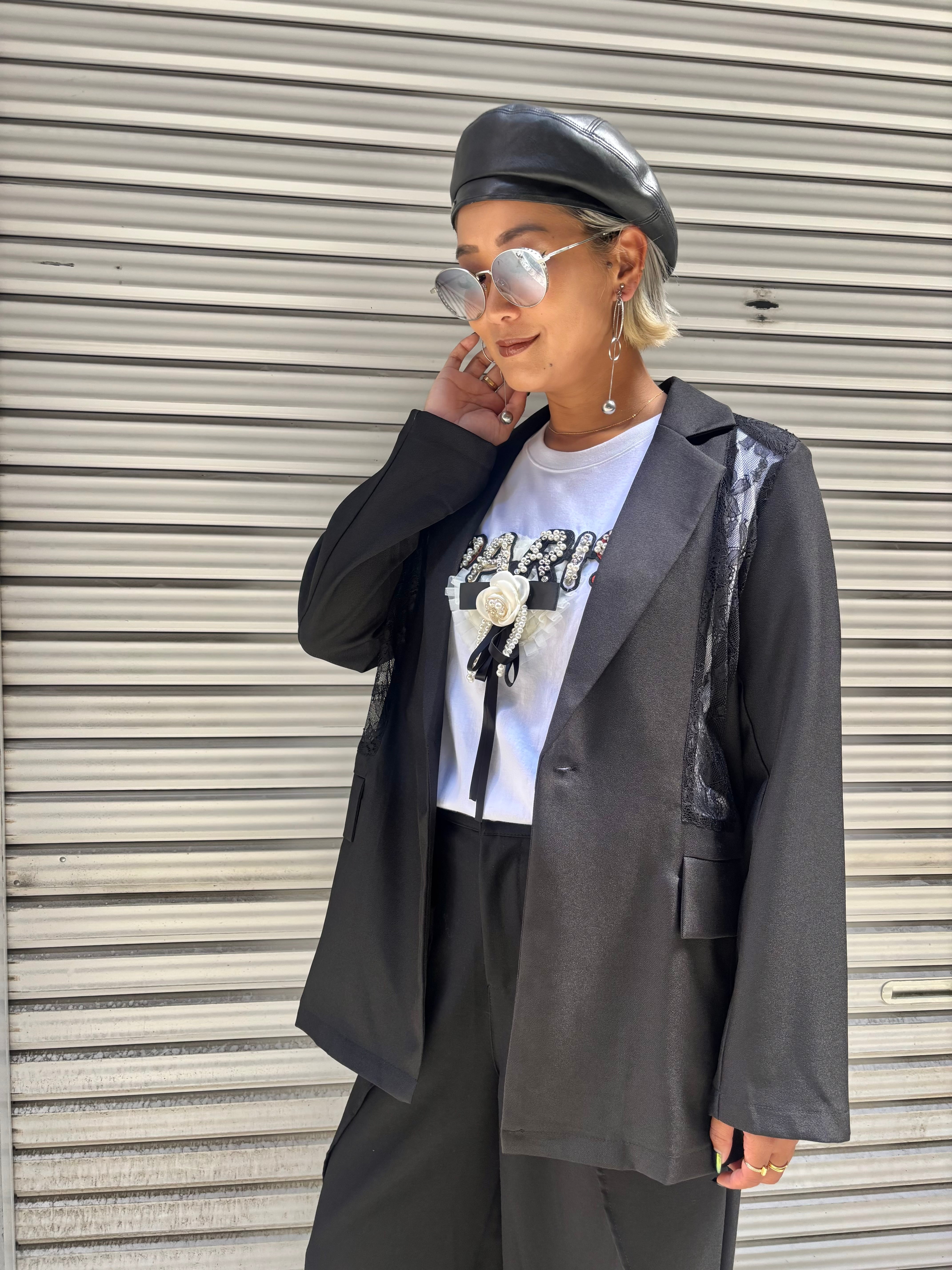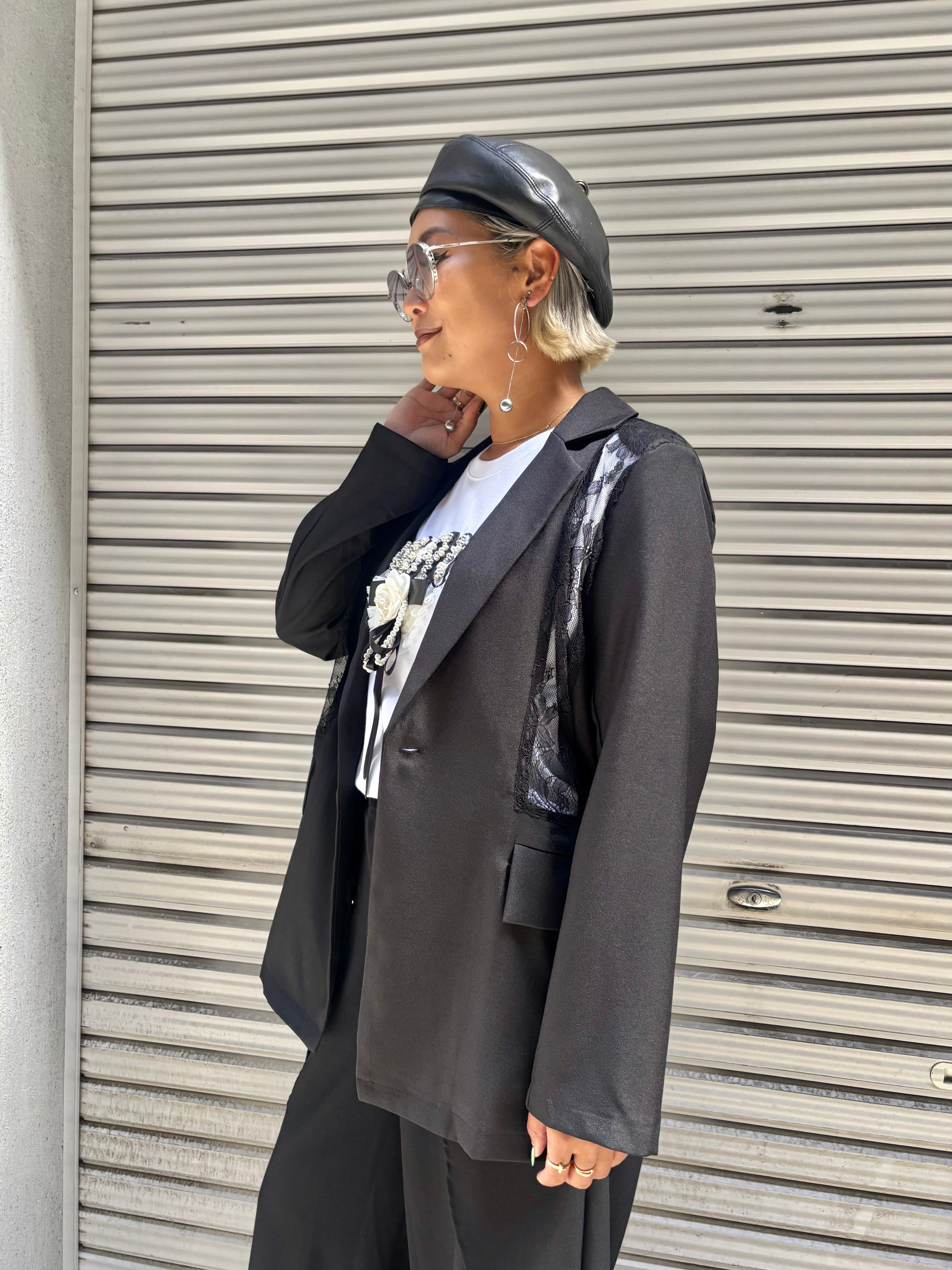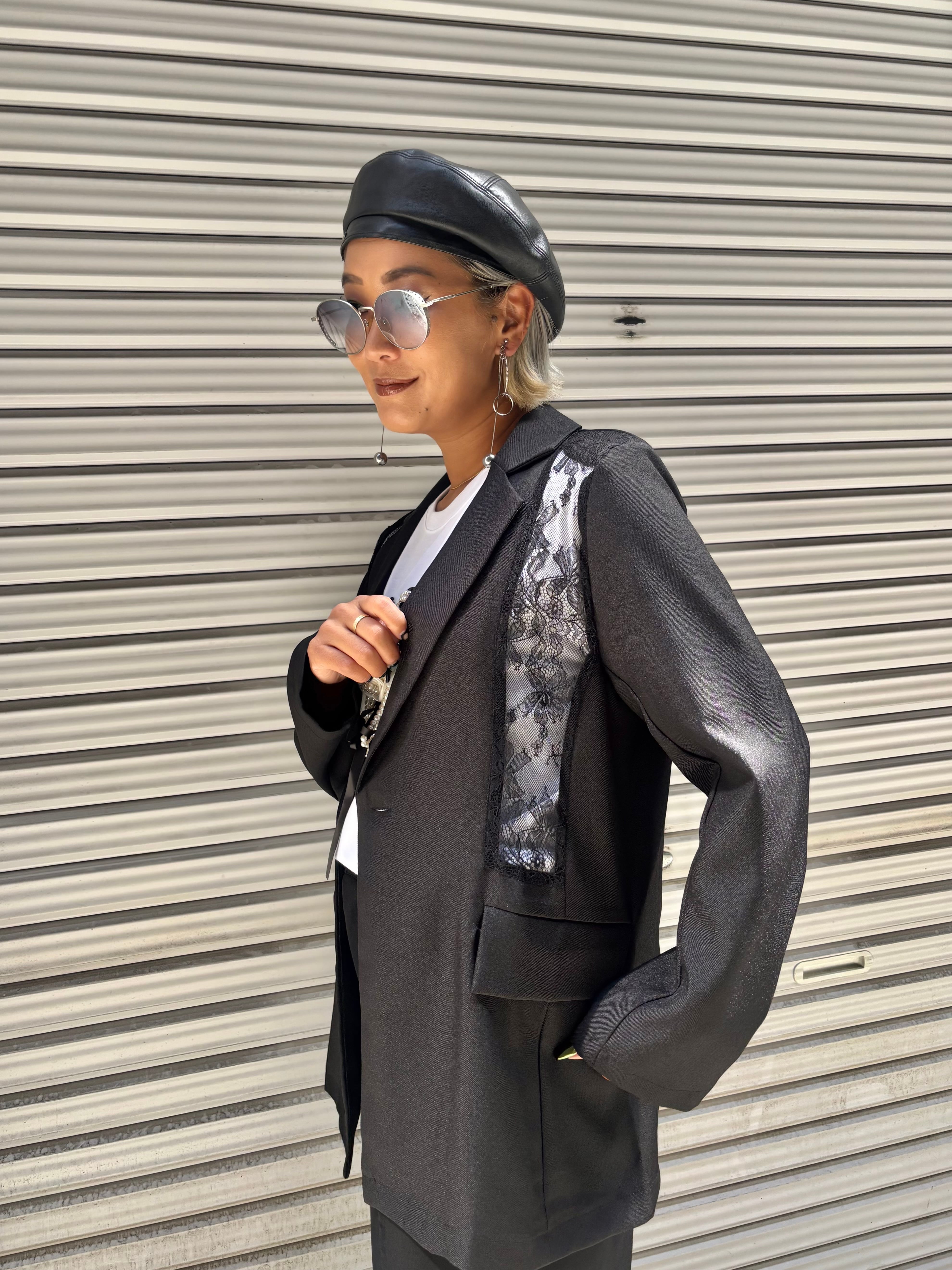 lace change design tailored jacket ジャケット テーラード レース 切替デザイン ブラック 黒