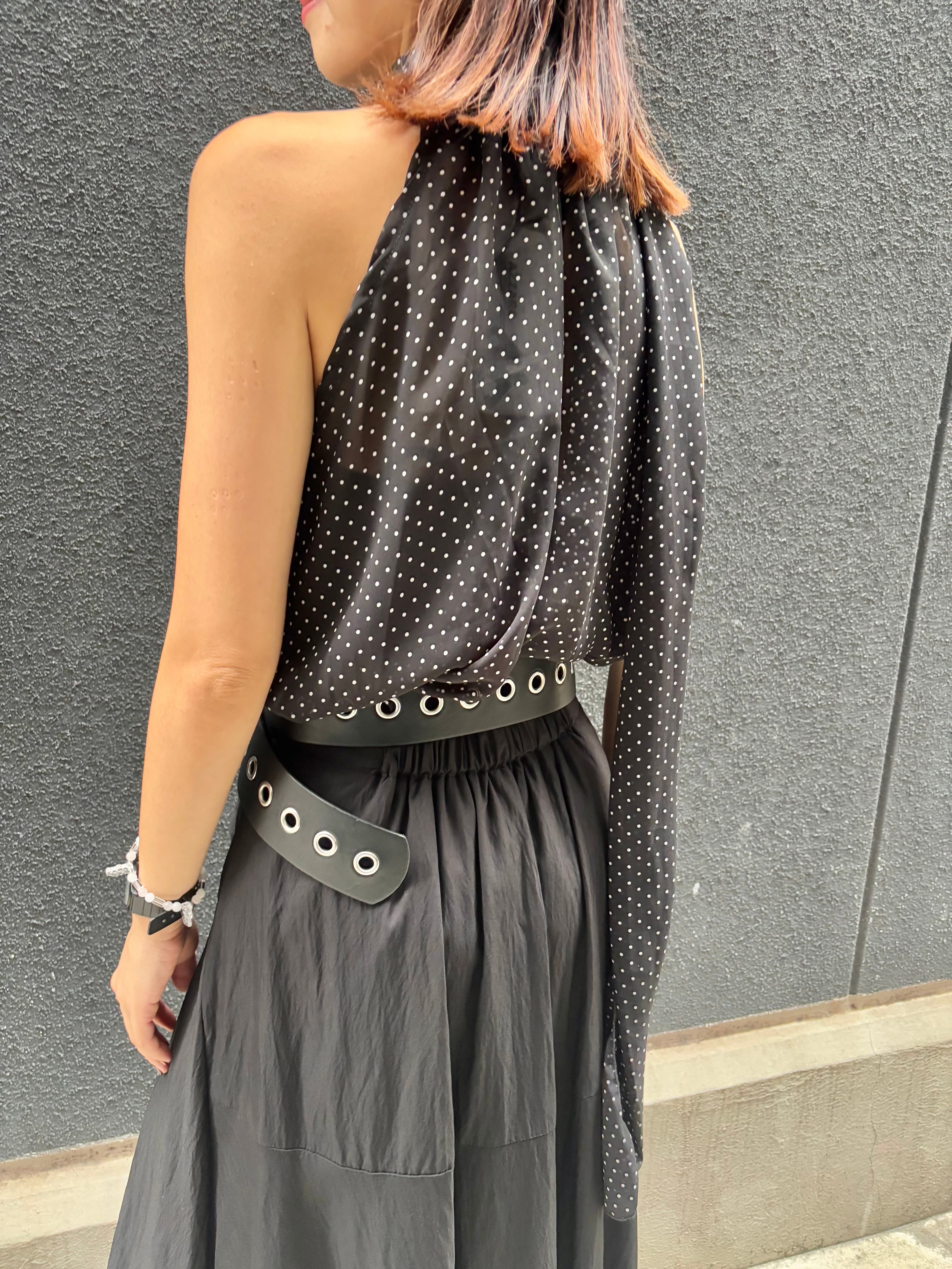 シフォン素材を使ったデザインのトップスは、肌触りが良く、さらりと着れて着まわせます♪