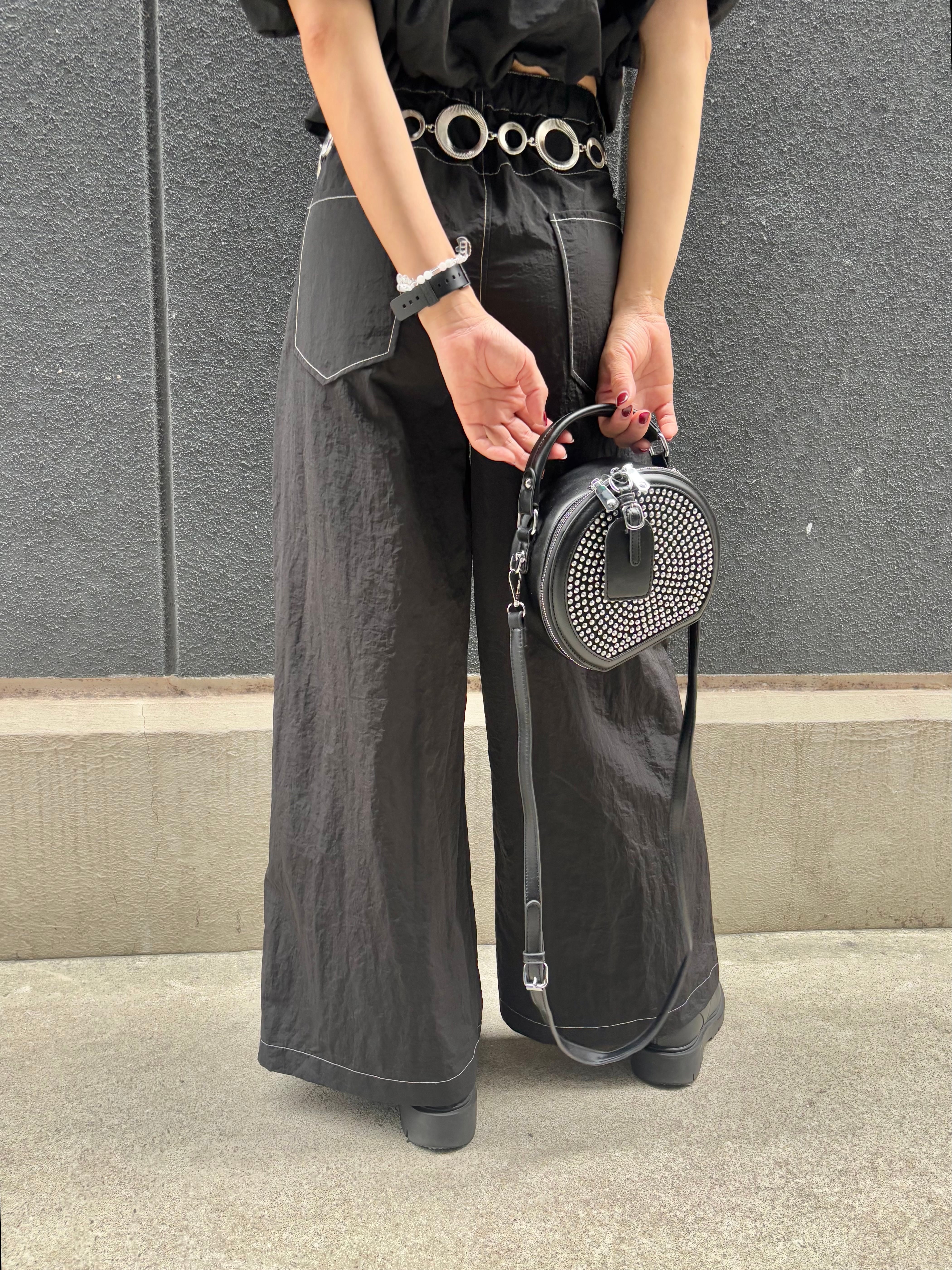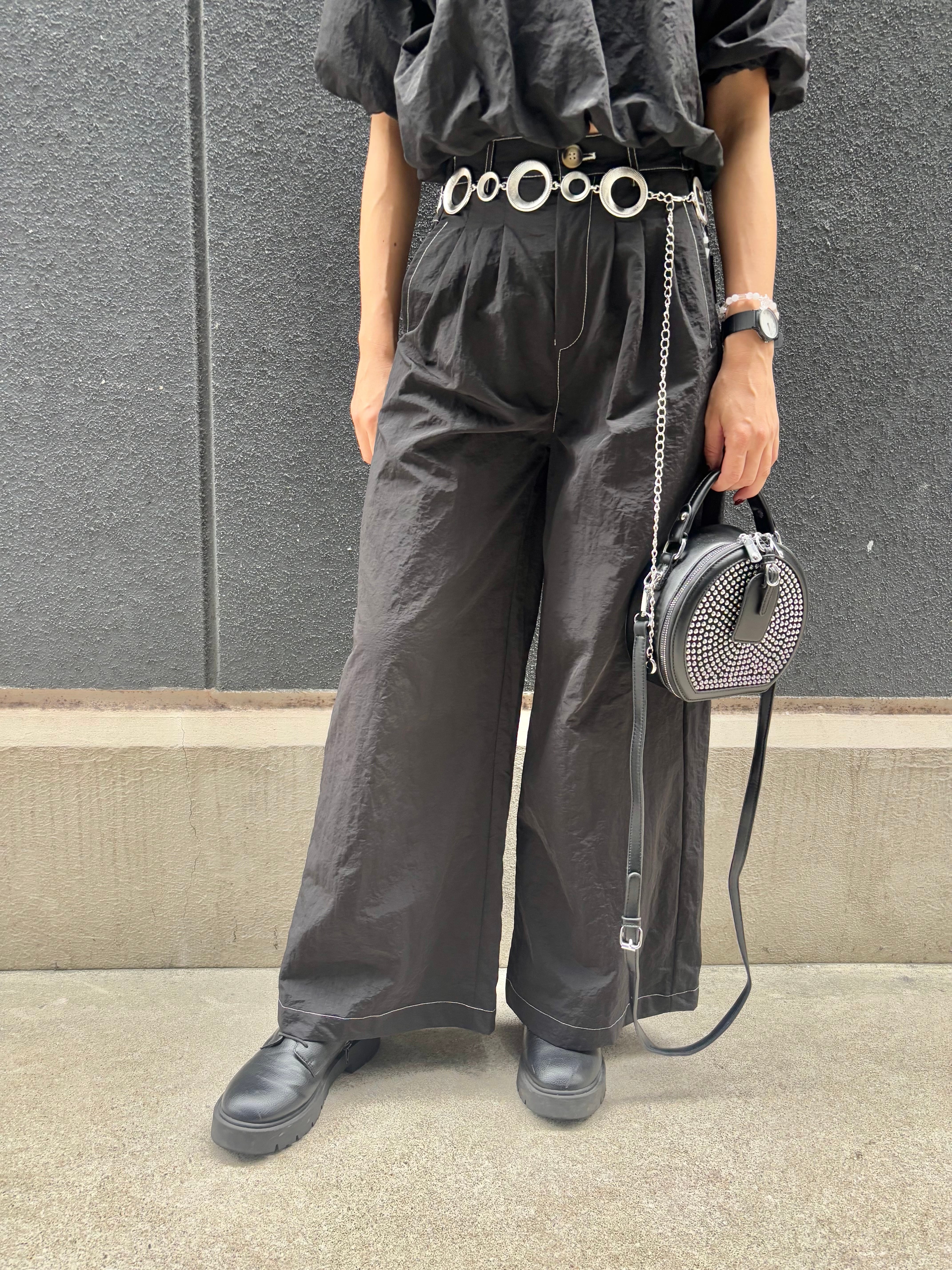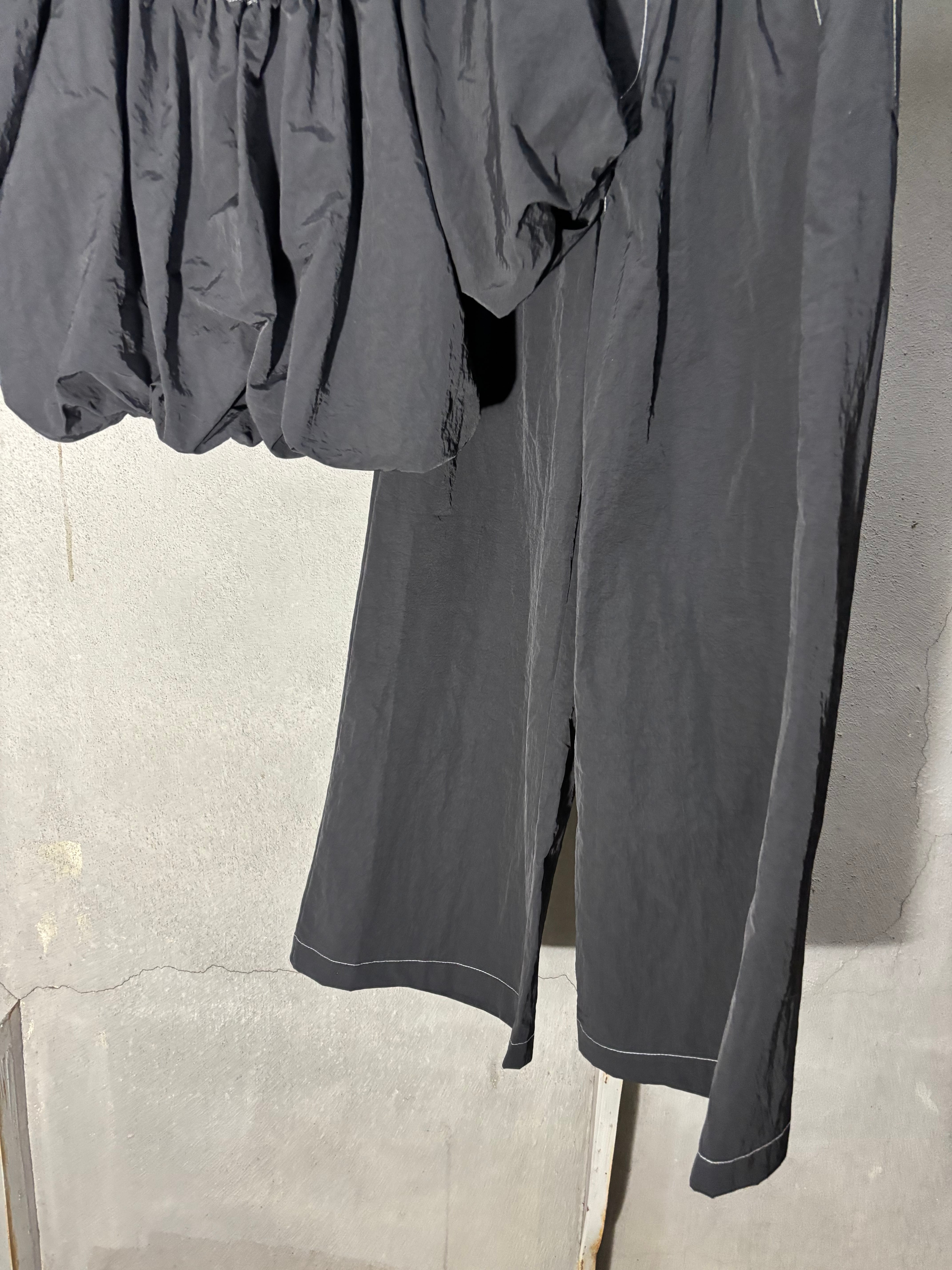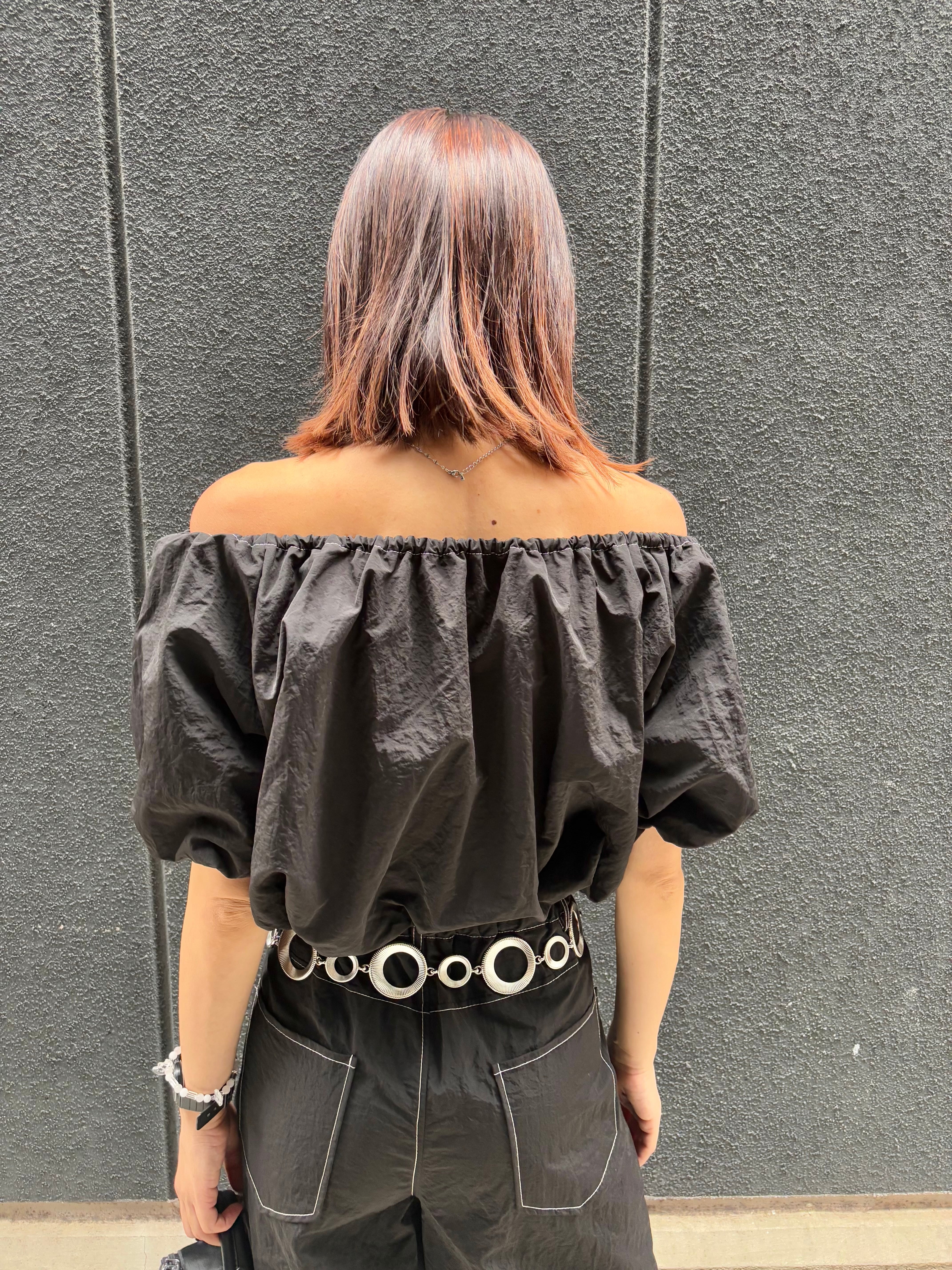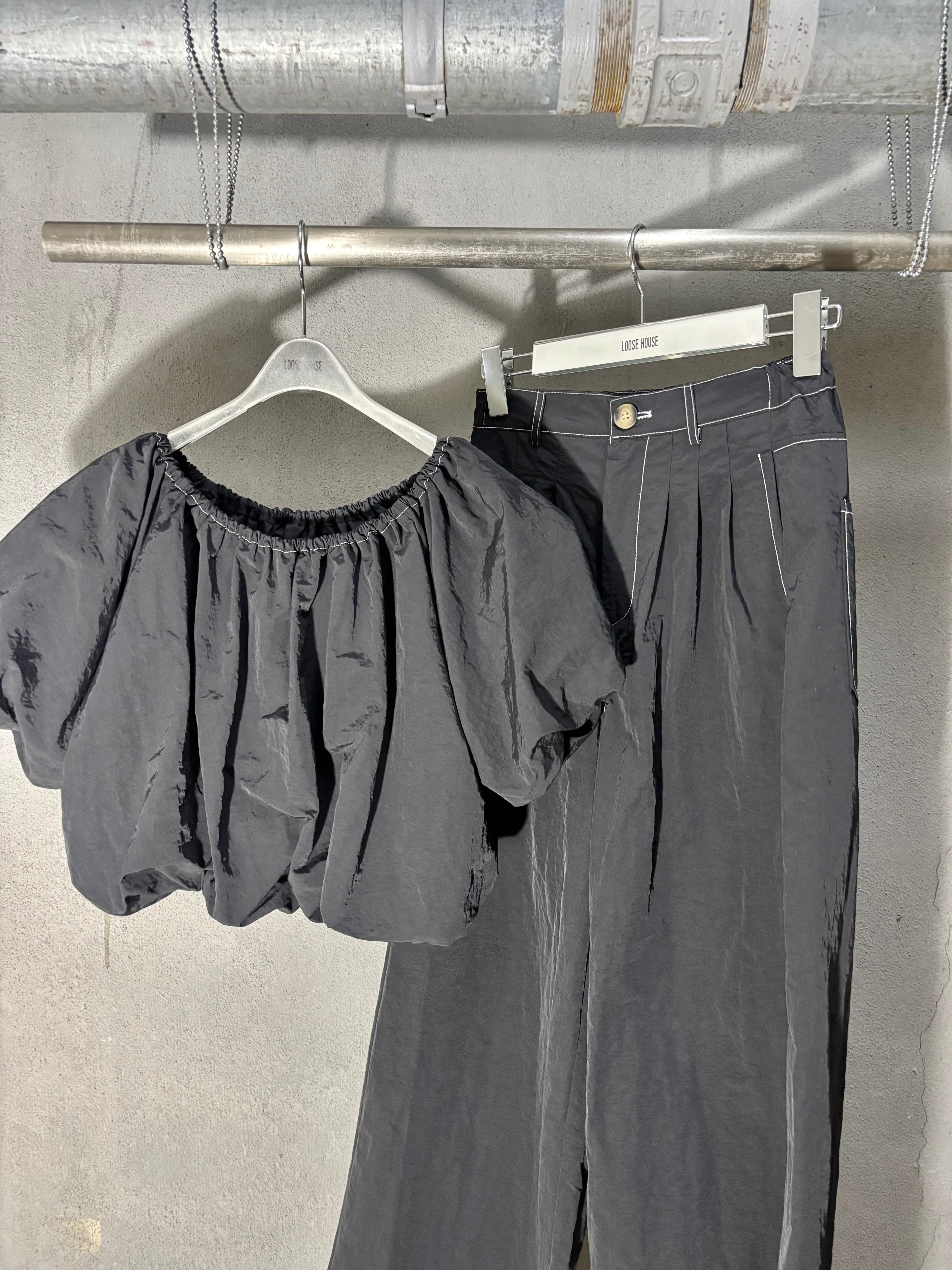 off shoulder balloon tops × wide pants 2P set up セットアップ 2点セット トップス オフショルダー バルーン パンツ ワイドパンツ ブラック 黒 着回し