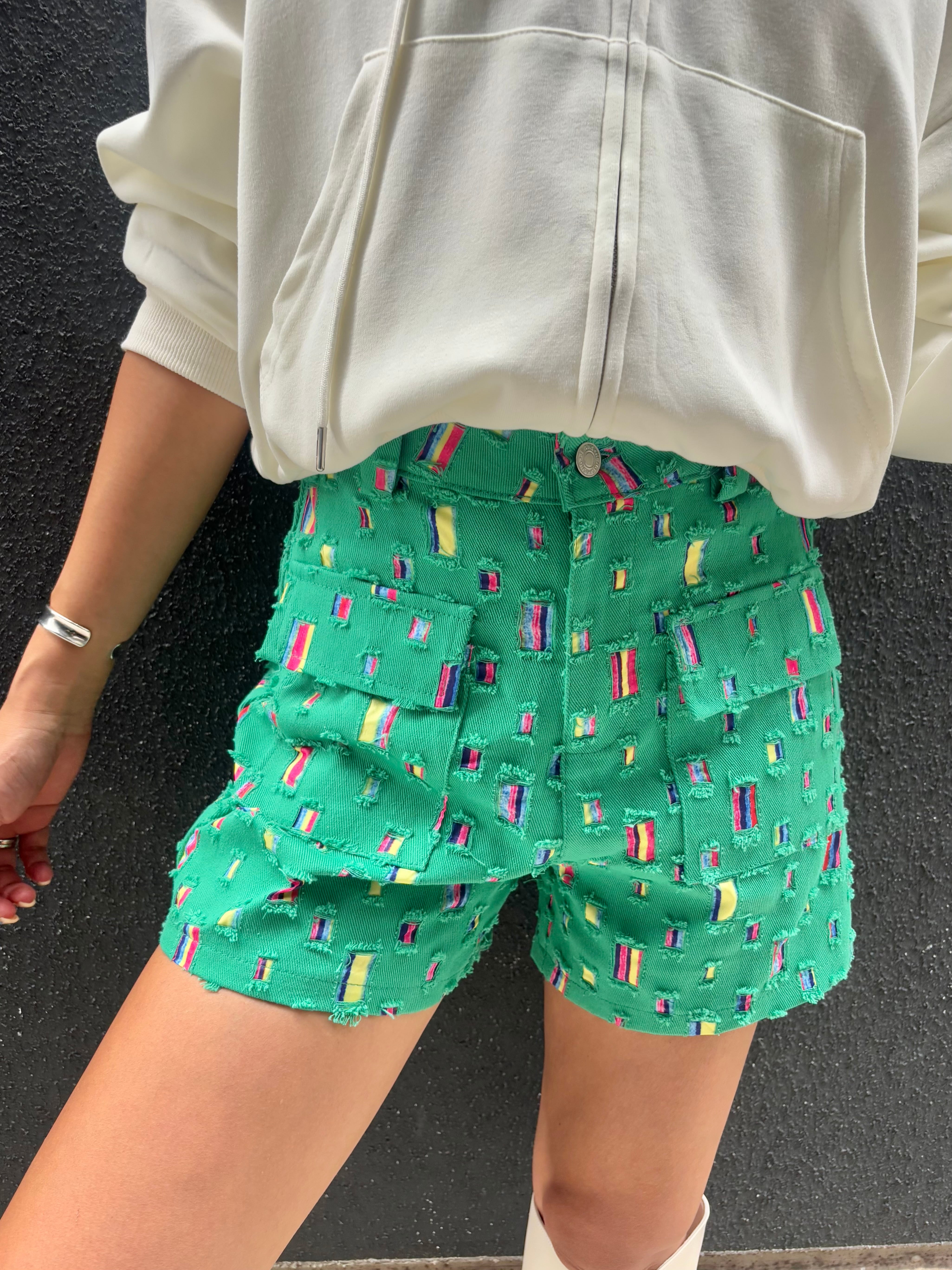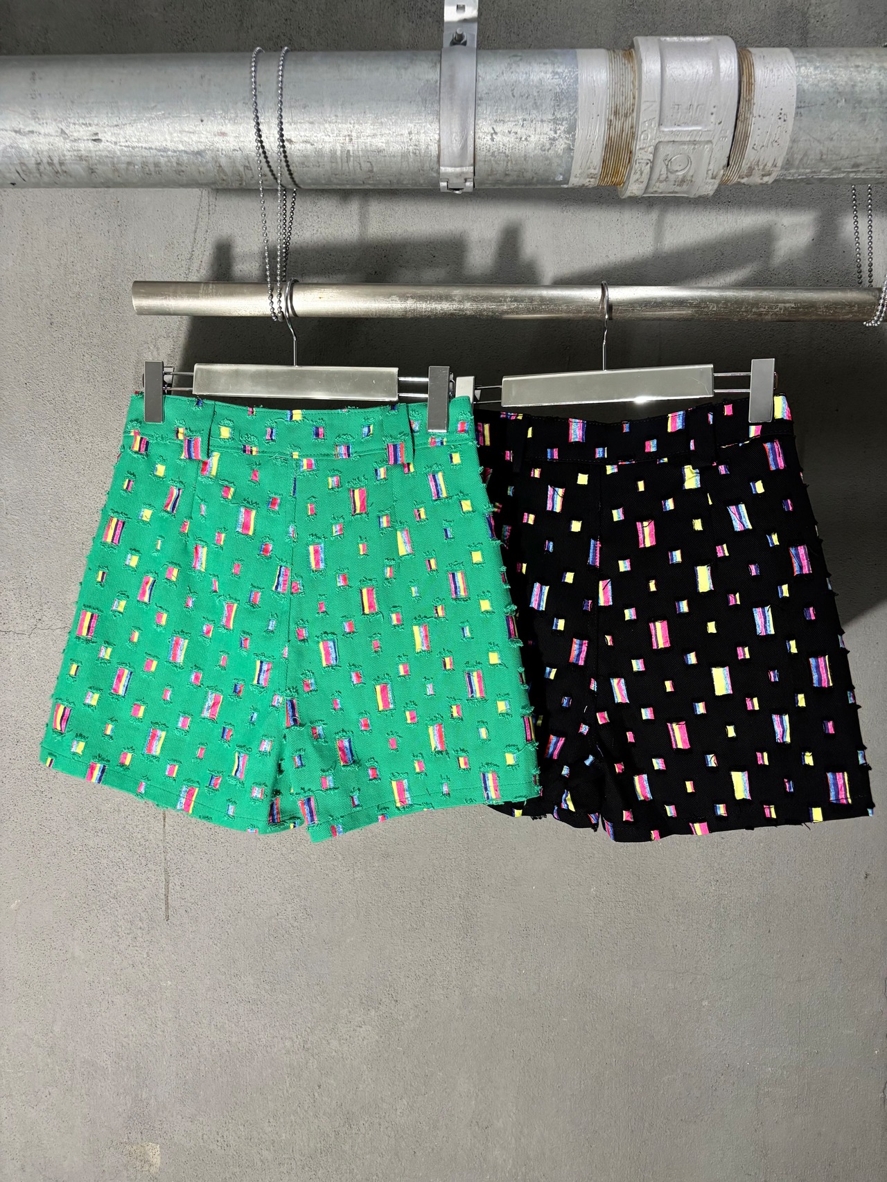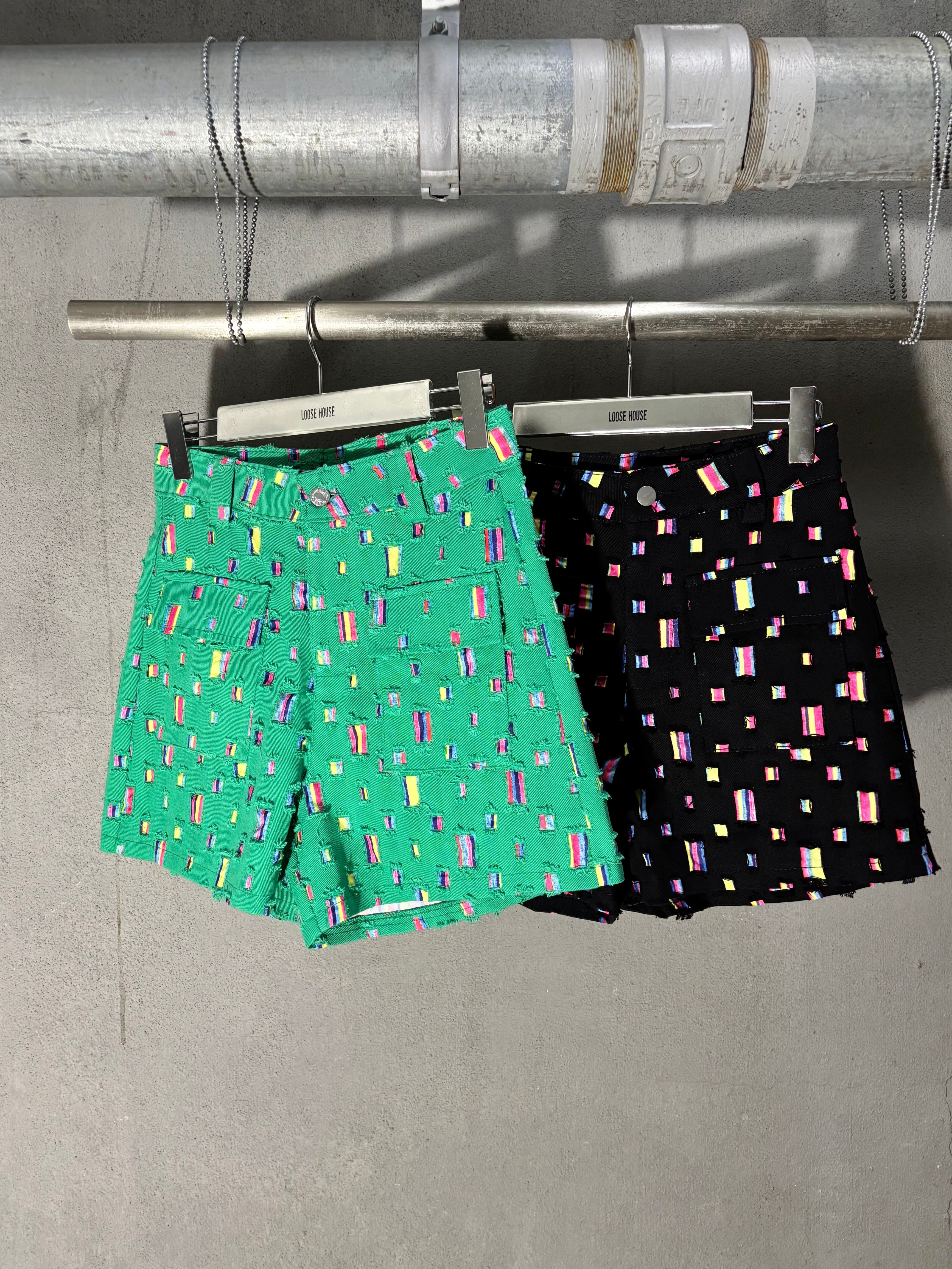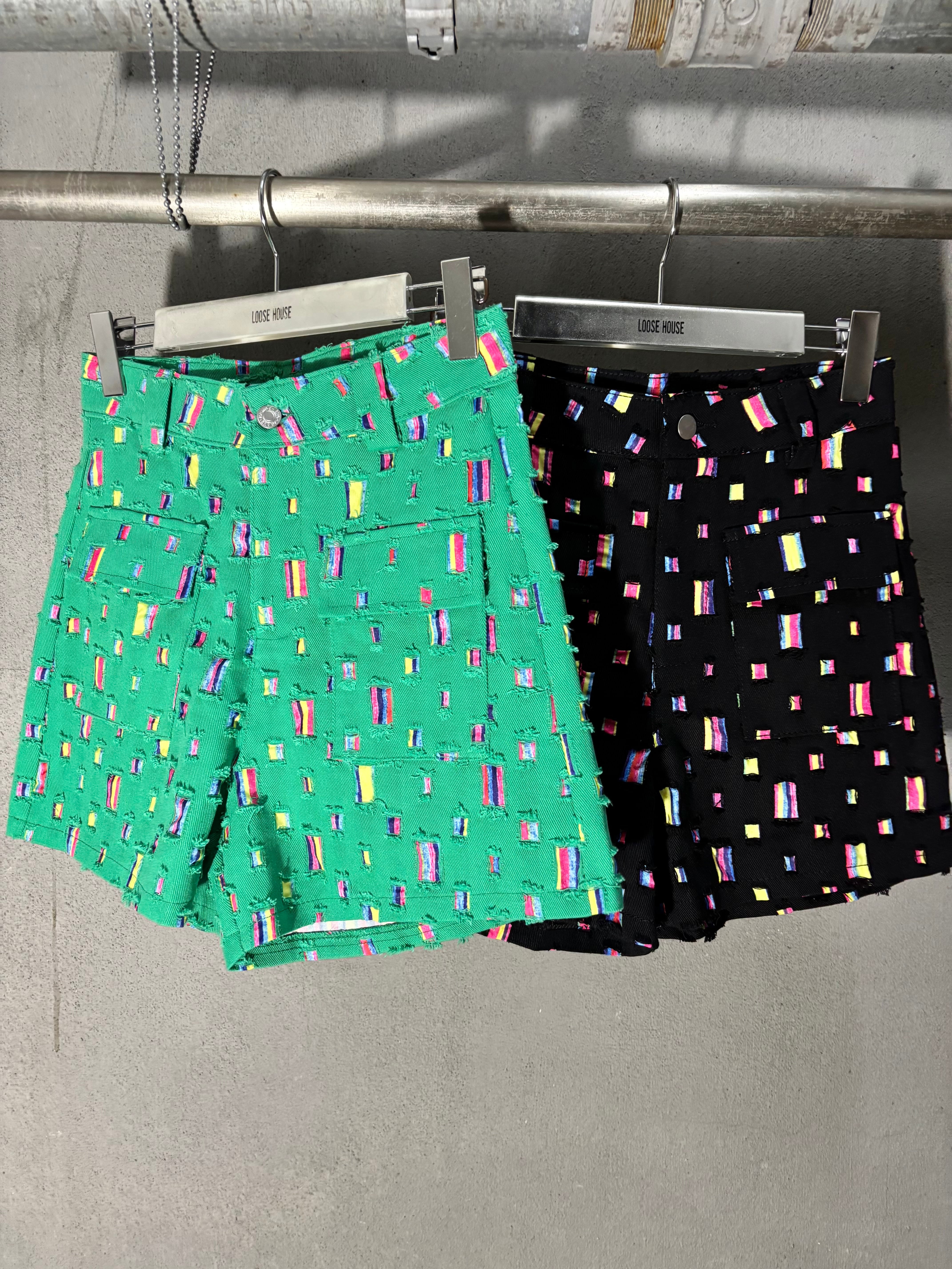 mix color square hole design short pants パンツ ショートパンツ カラフル スクエア 穴開き