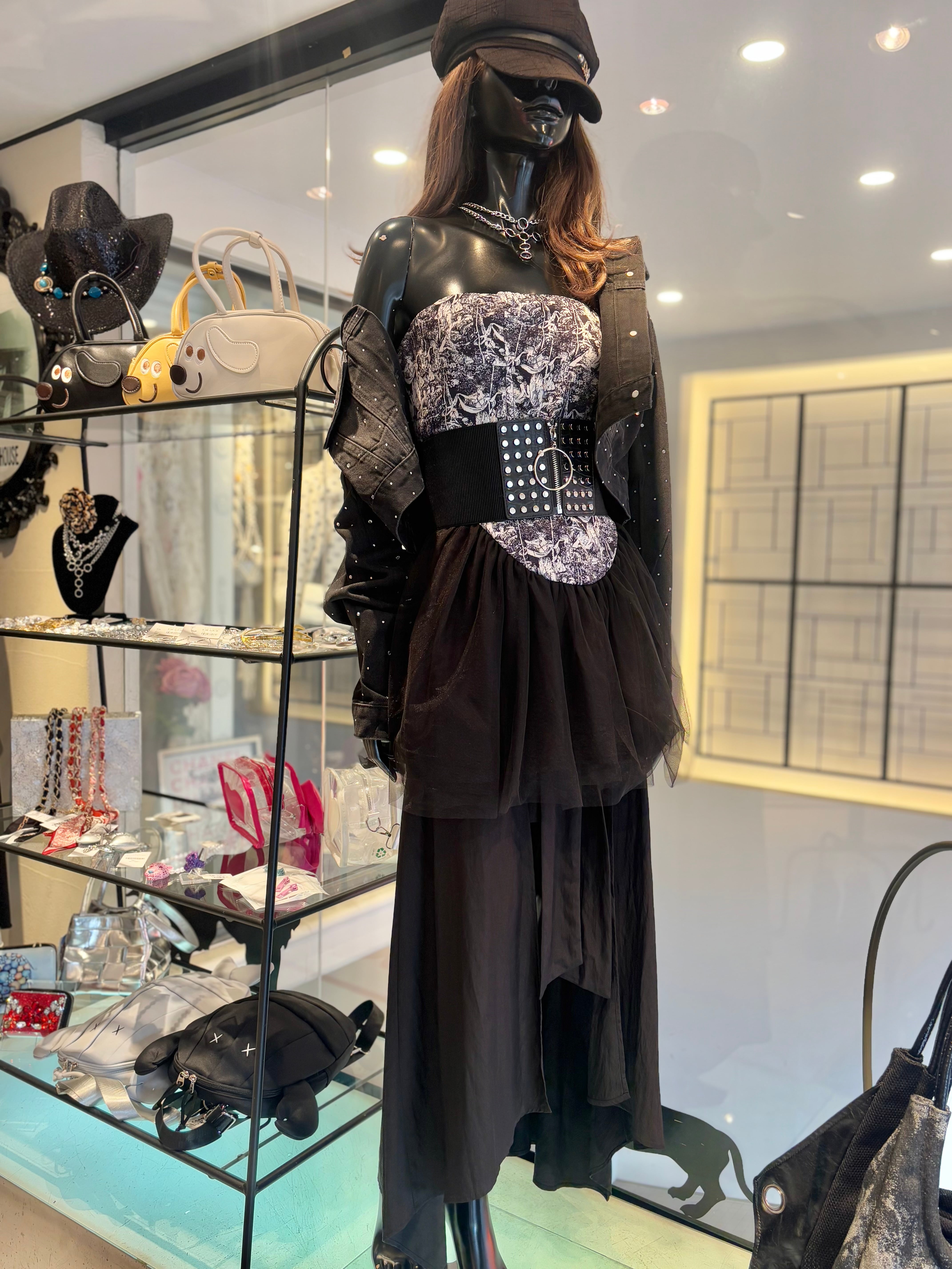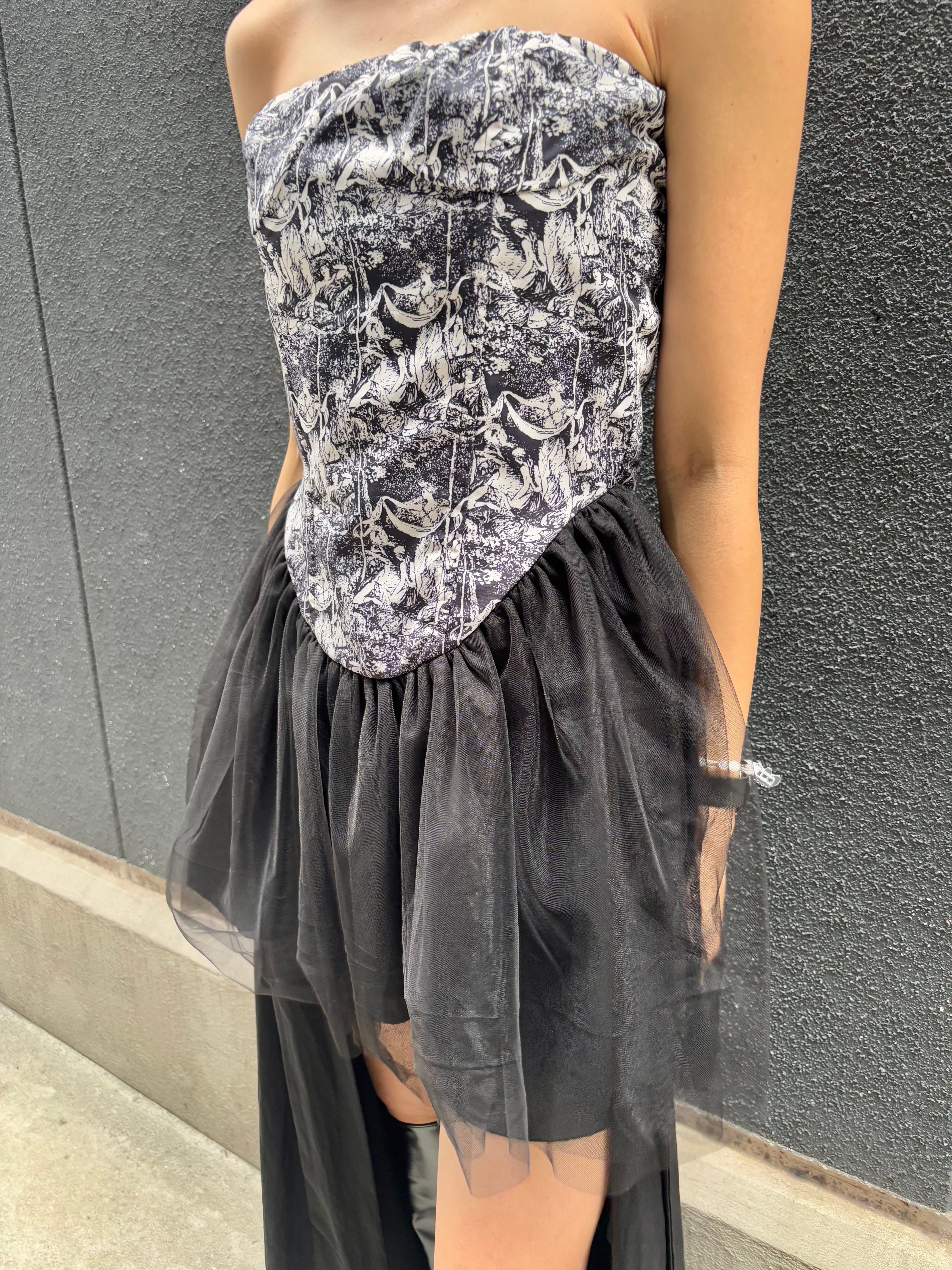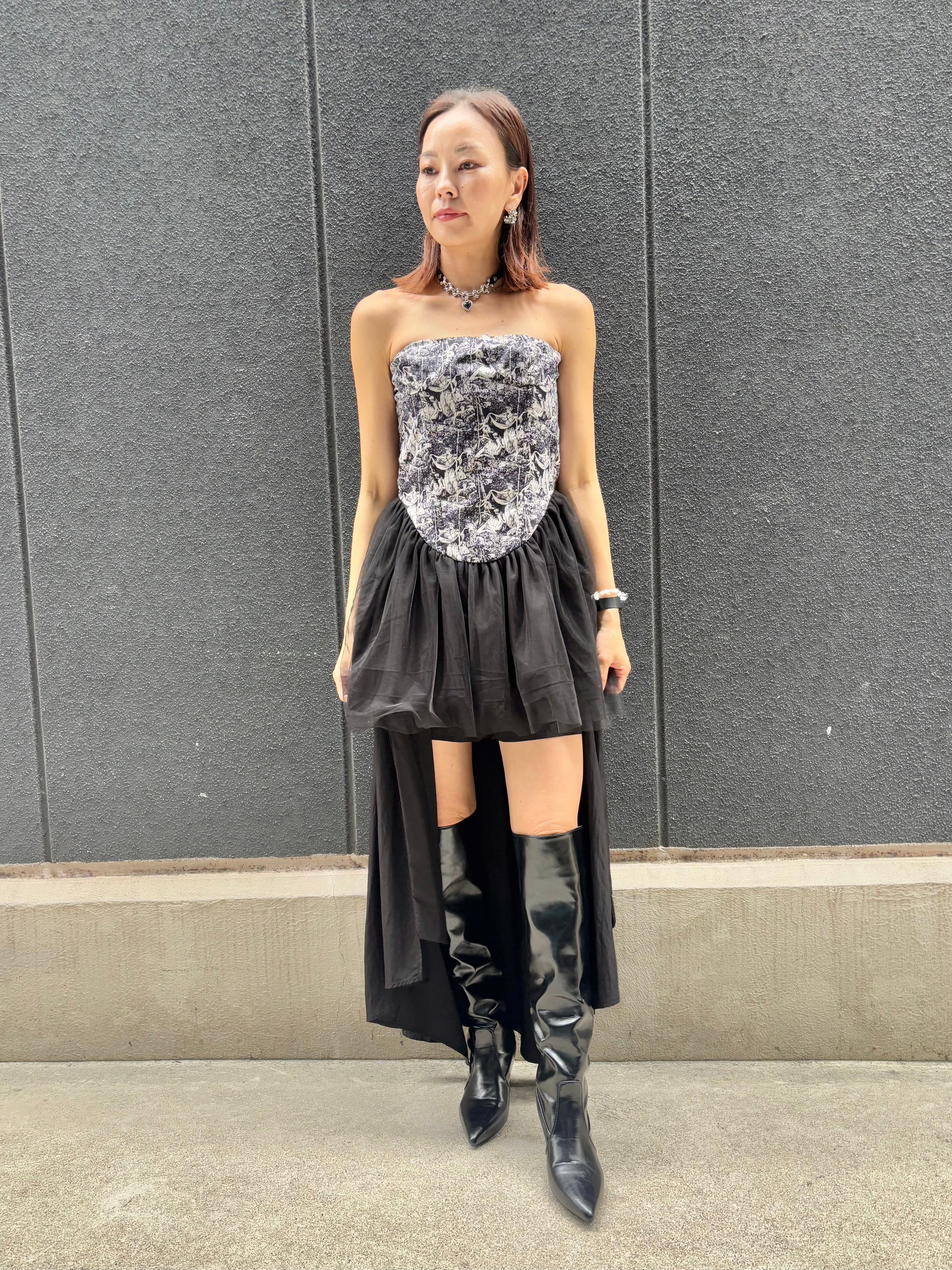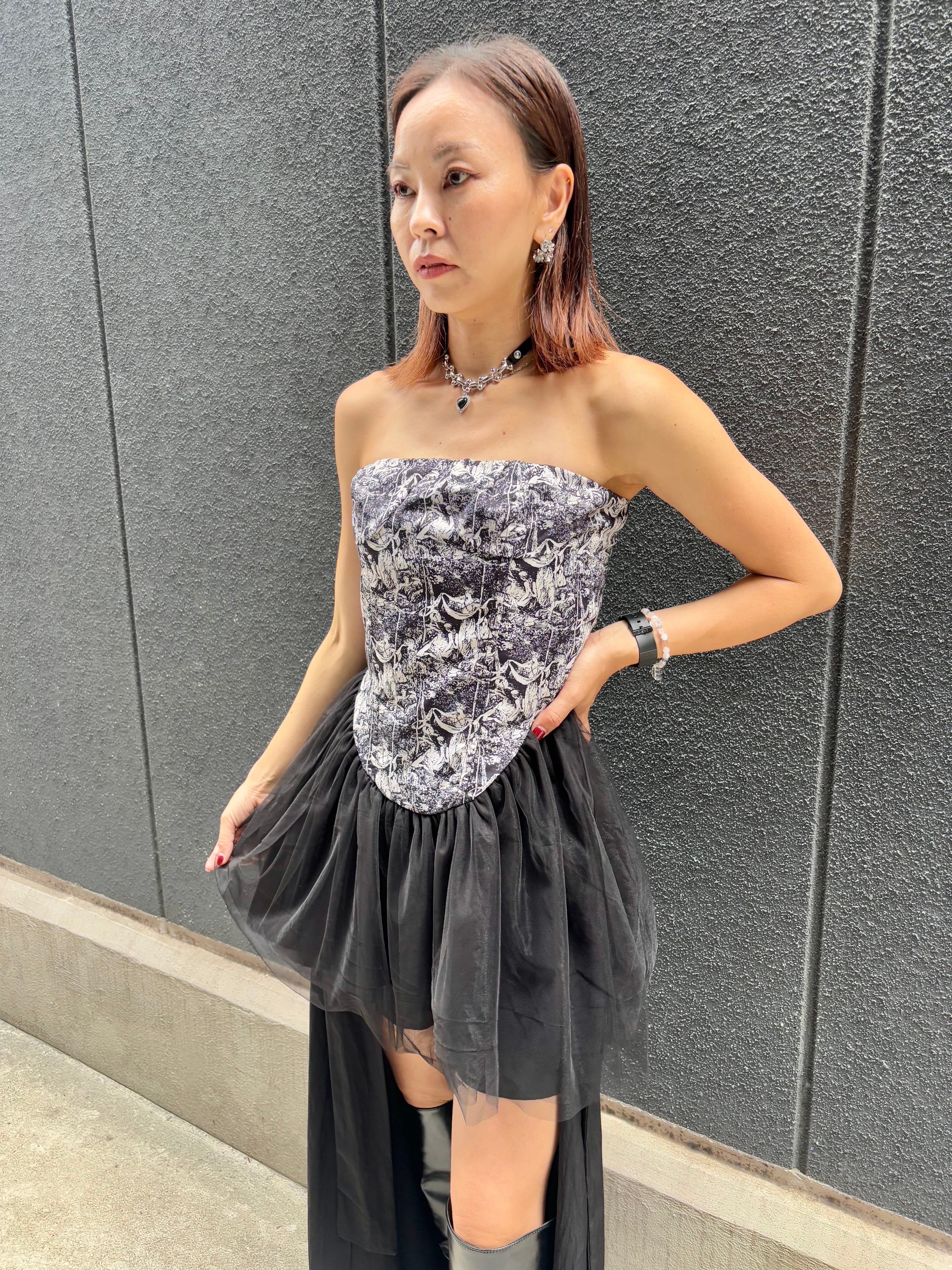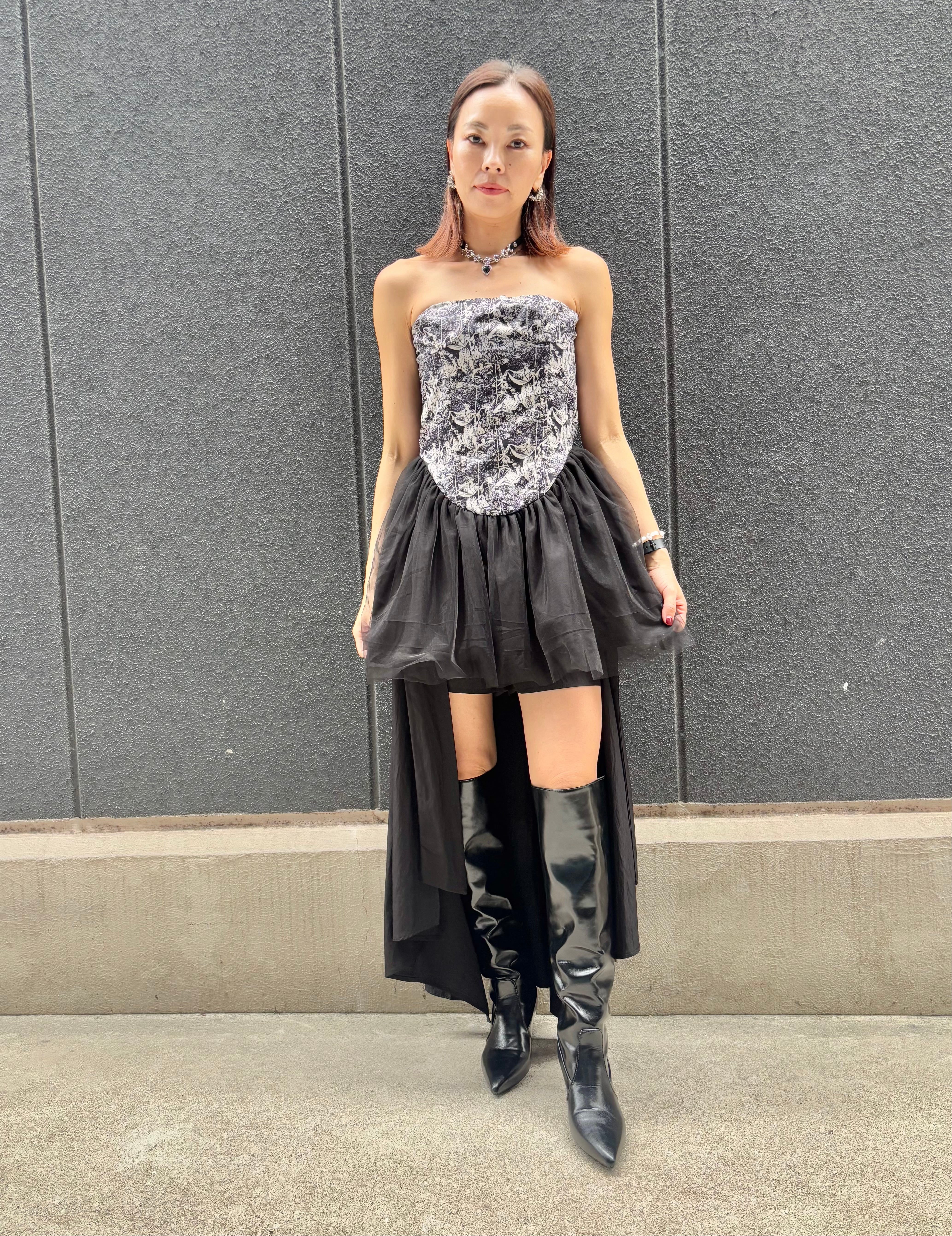 different fabrics change design bare one-piece ワンピース ミニワンピ ベアワンピ チュール 異素材切替
