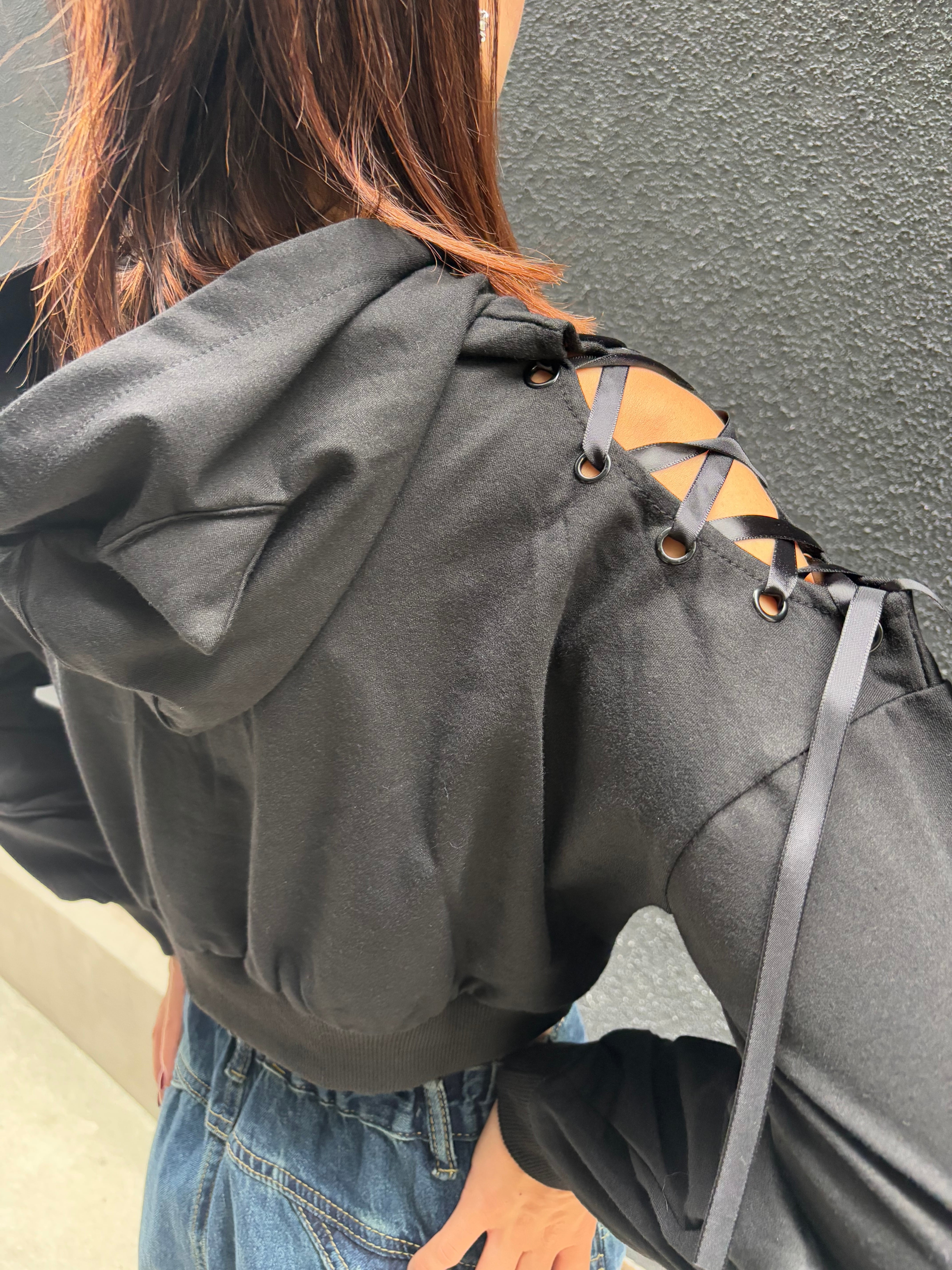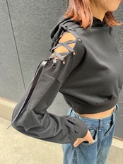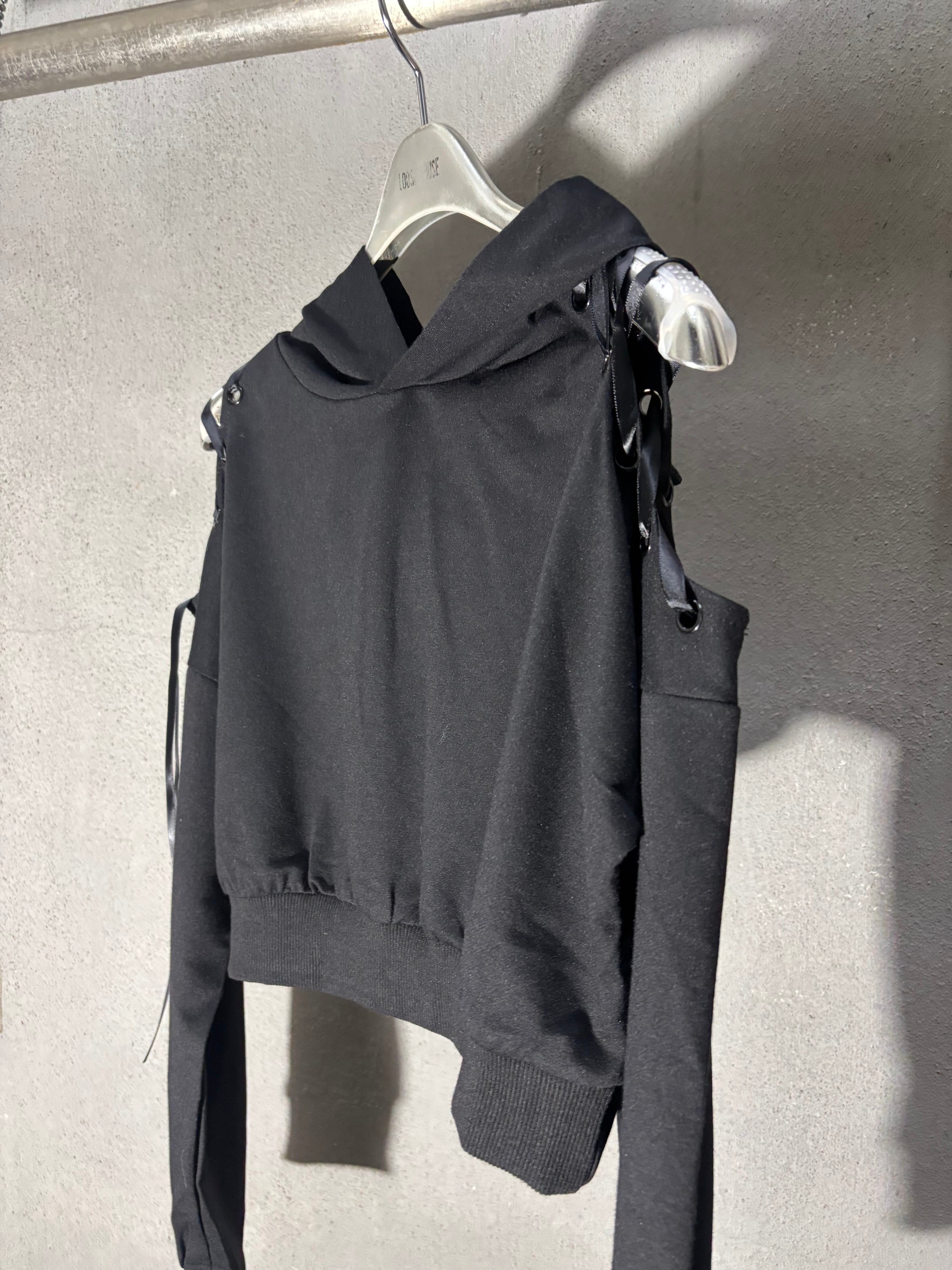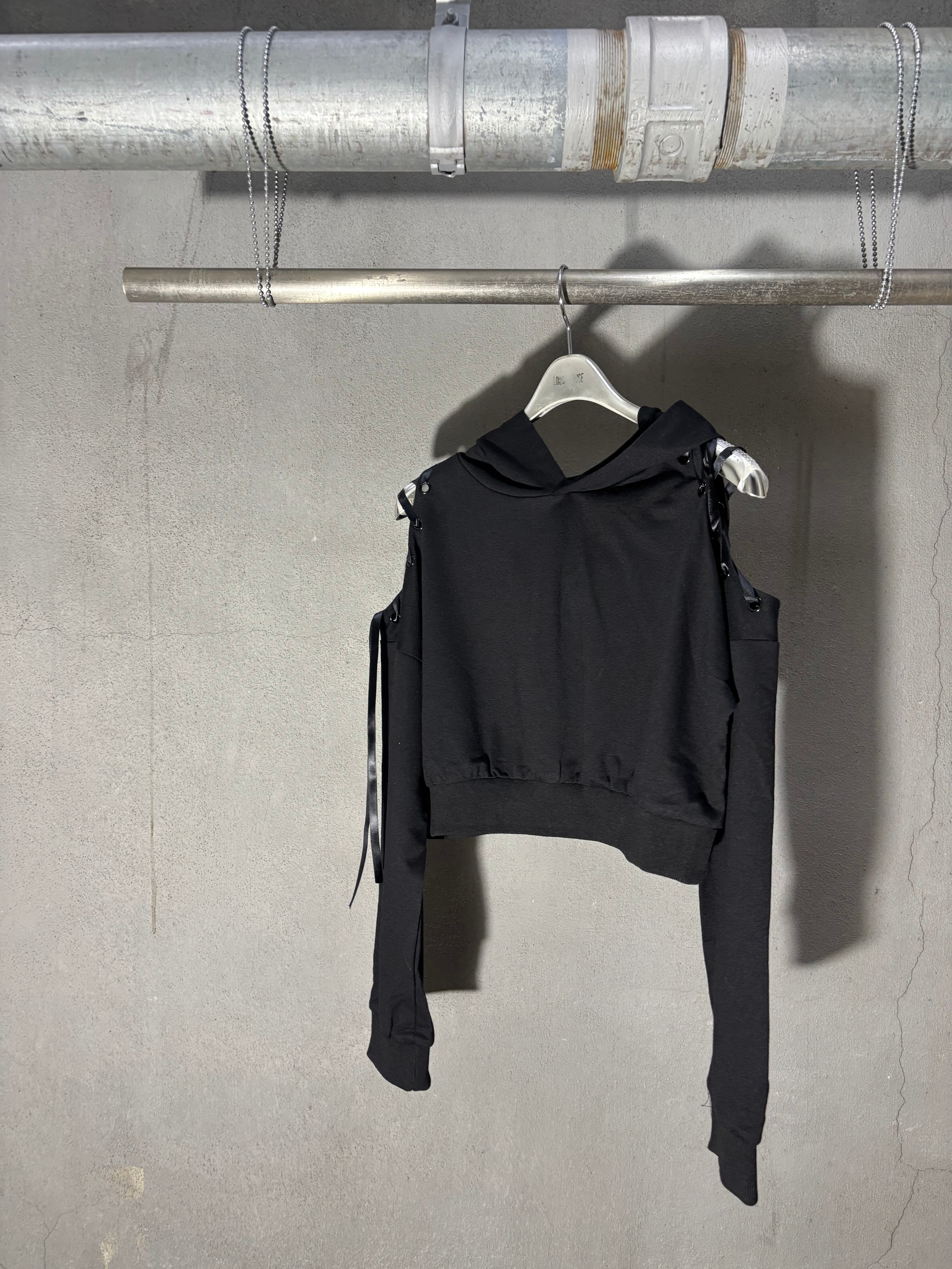 肩開きデザインにスピンドルが施されたクールなフーディー!!