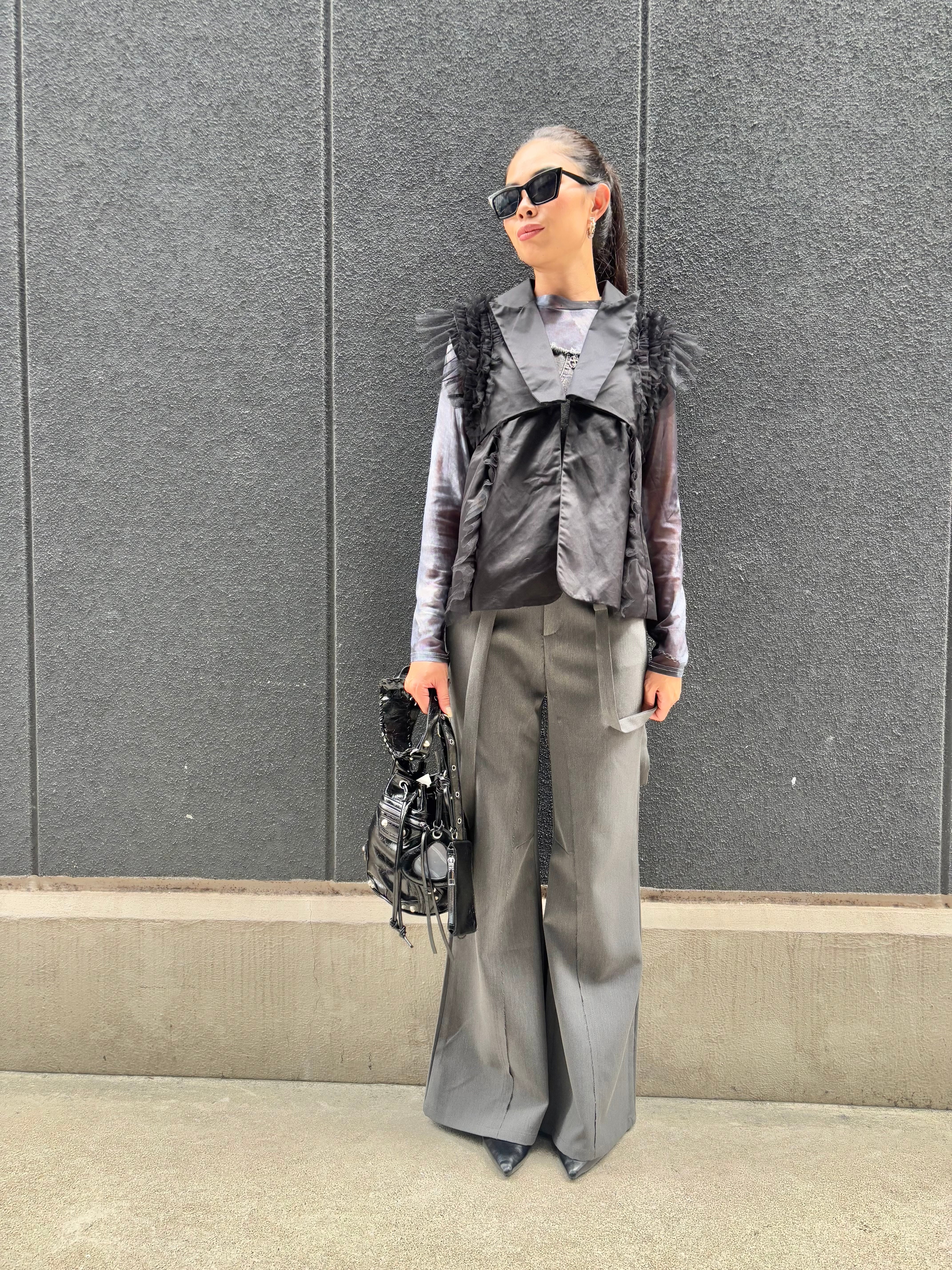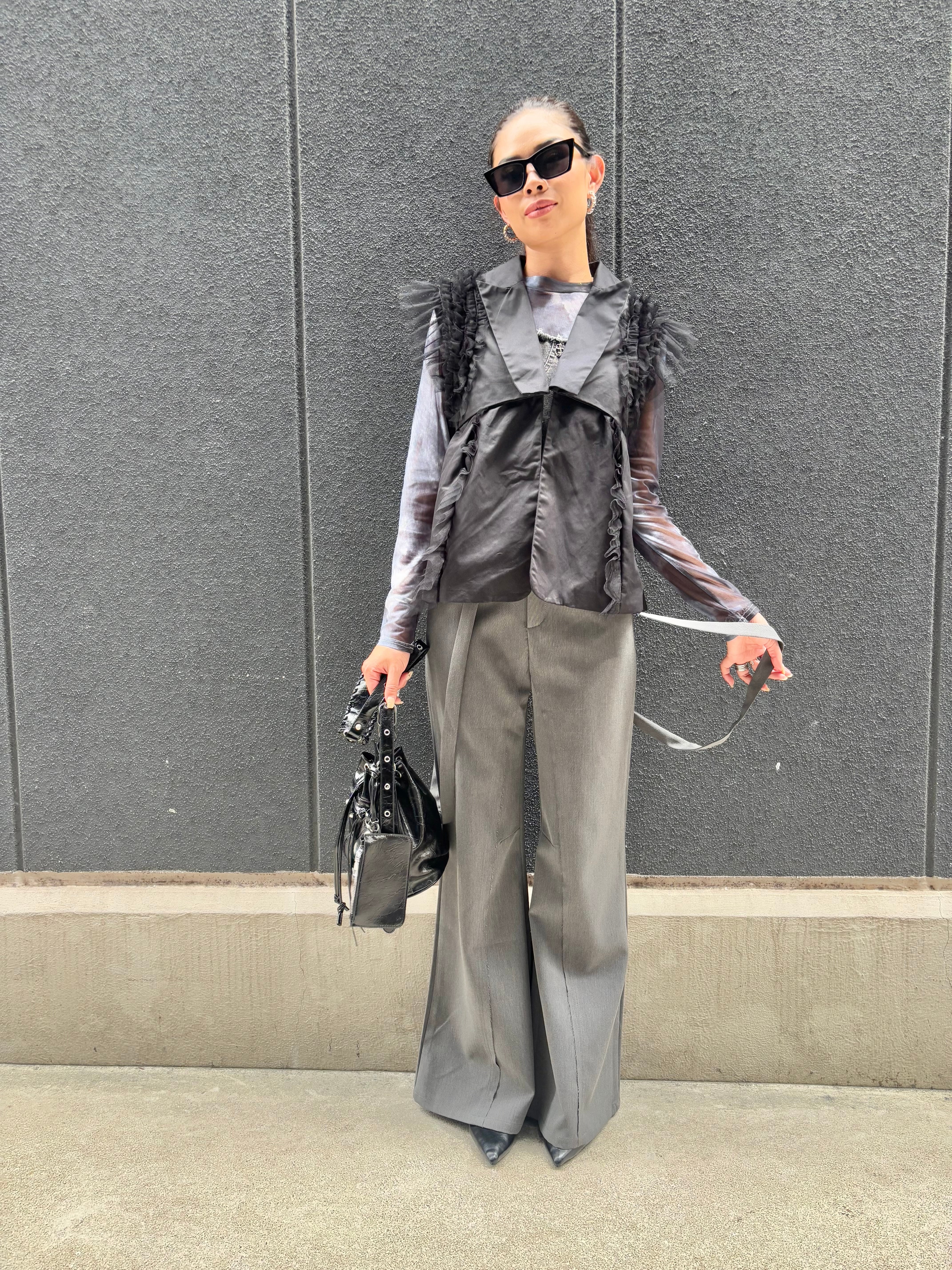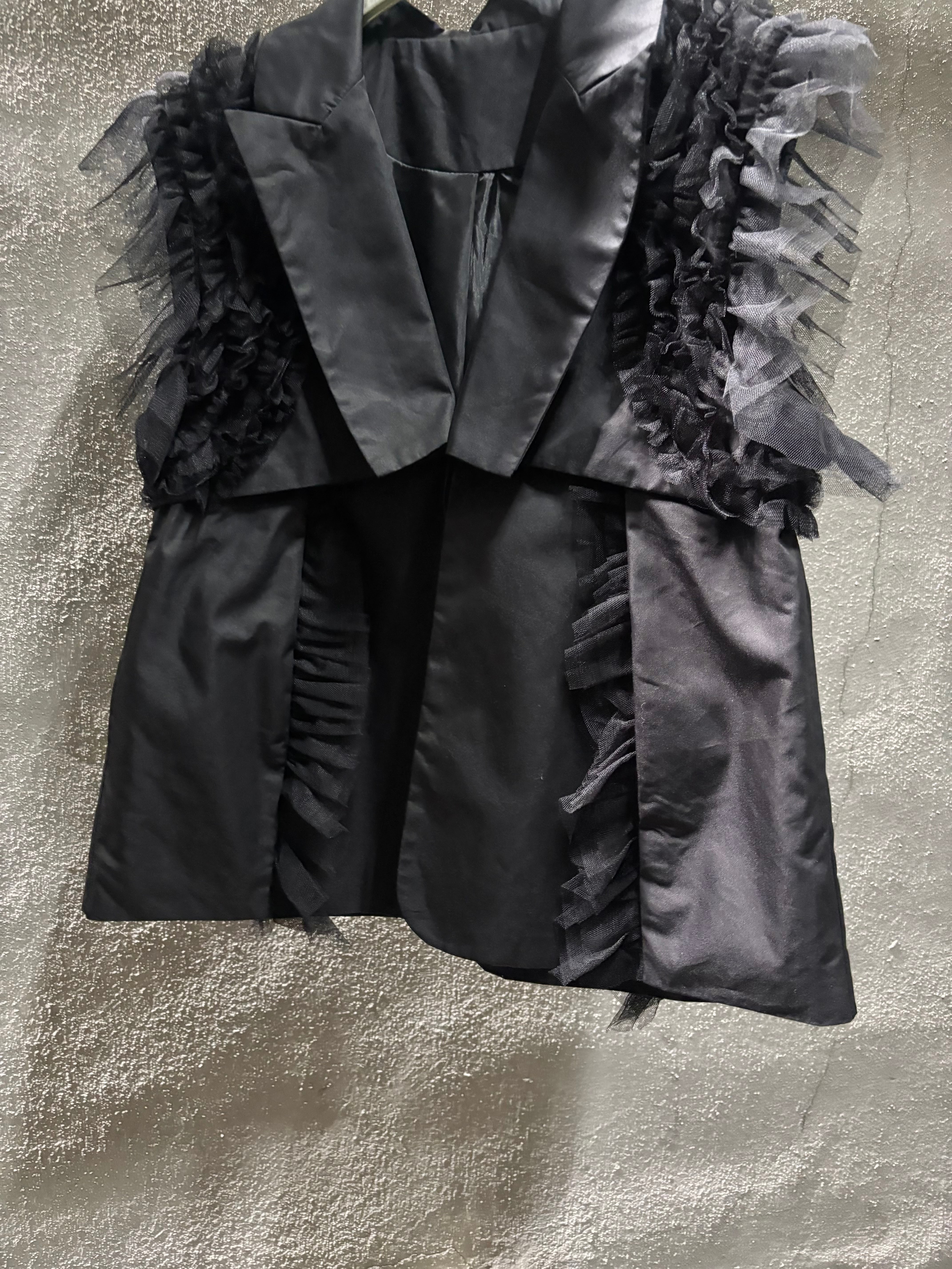 tulle frill design vest ベスト チュール フリル 襟付き ブラック 黒 重ね着