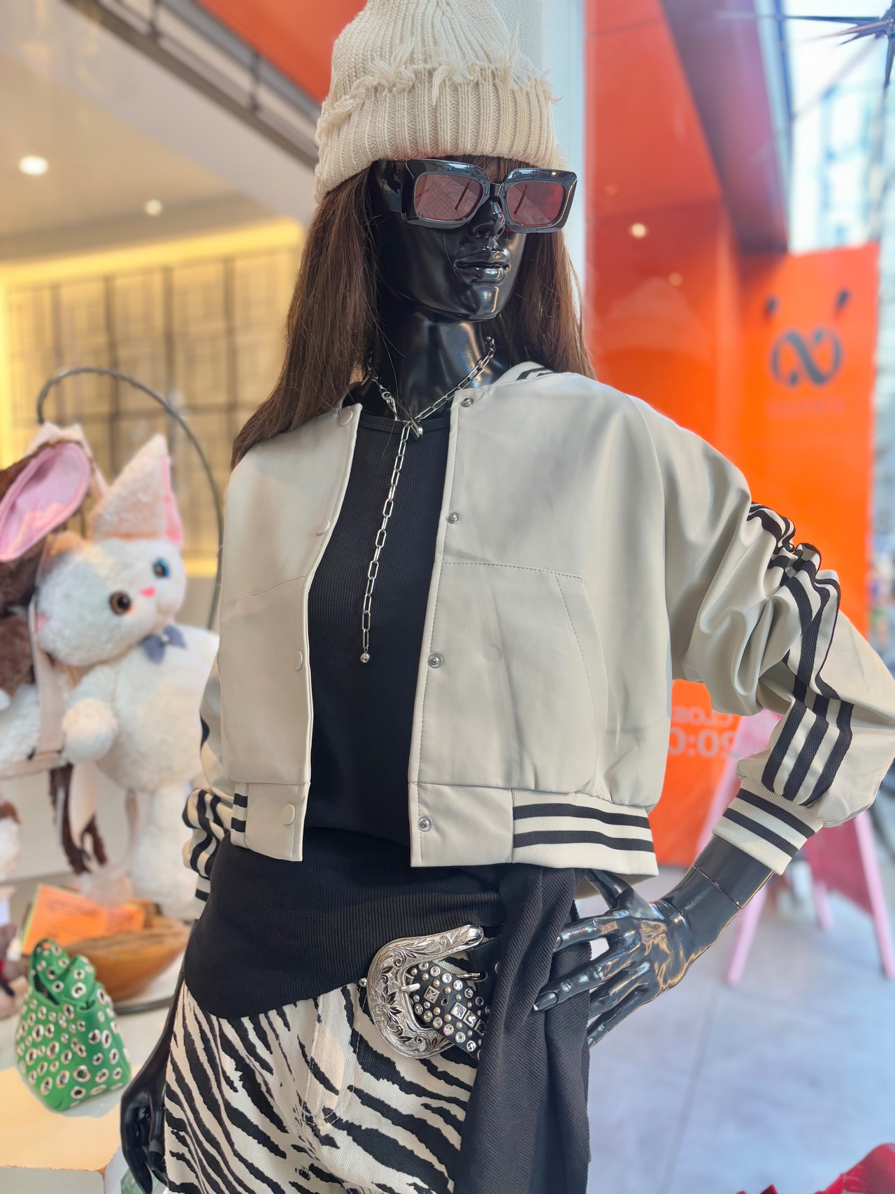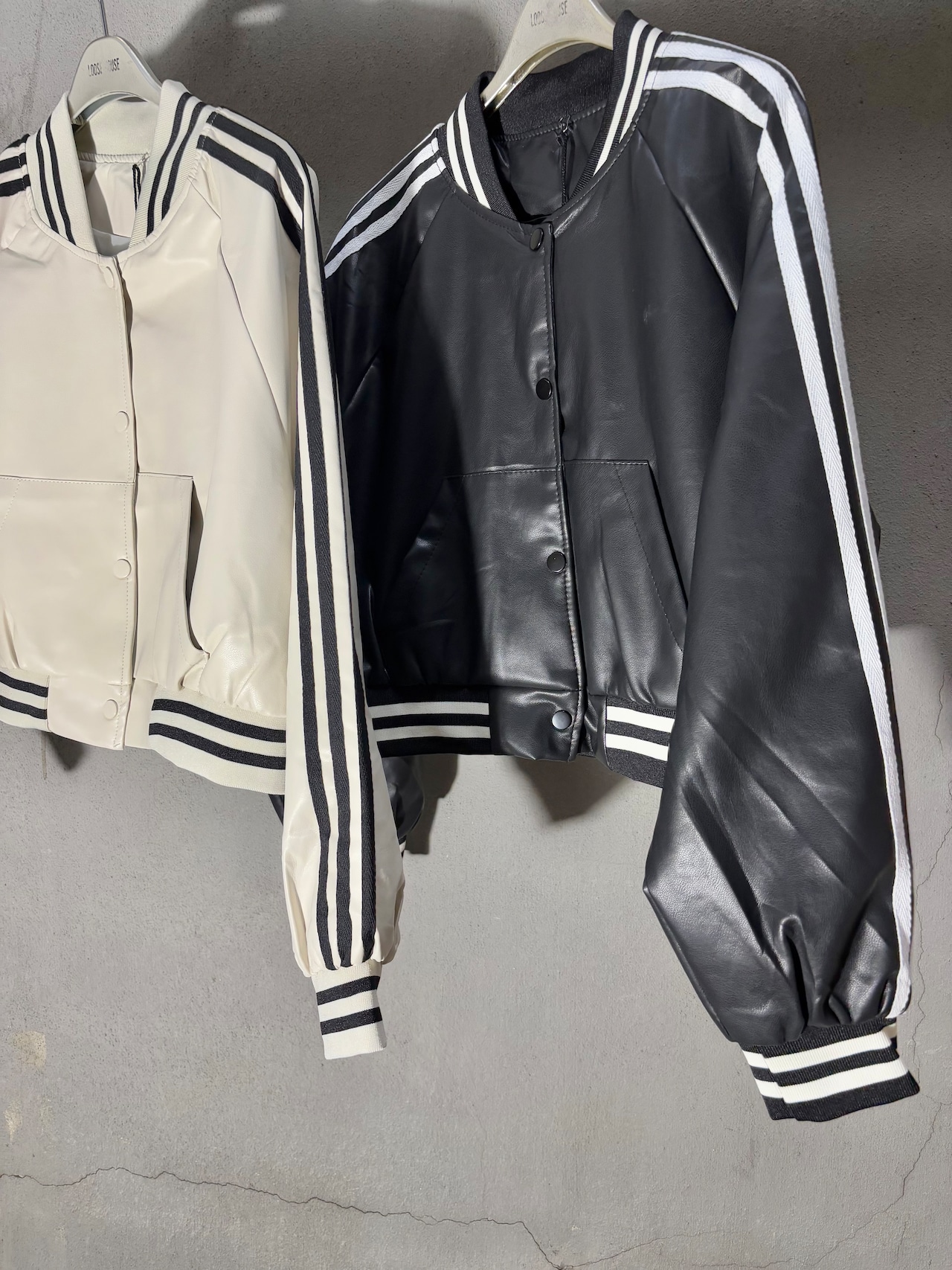 eco leather line design blouson ブルゾン ジャケット アウター 羽織り 合皮 エコレザー ライン スポーティ