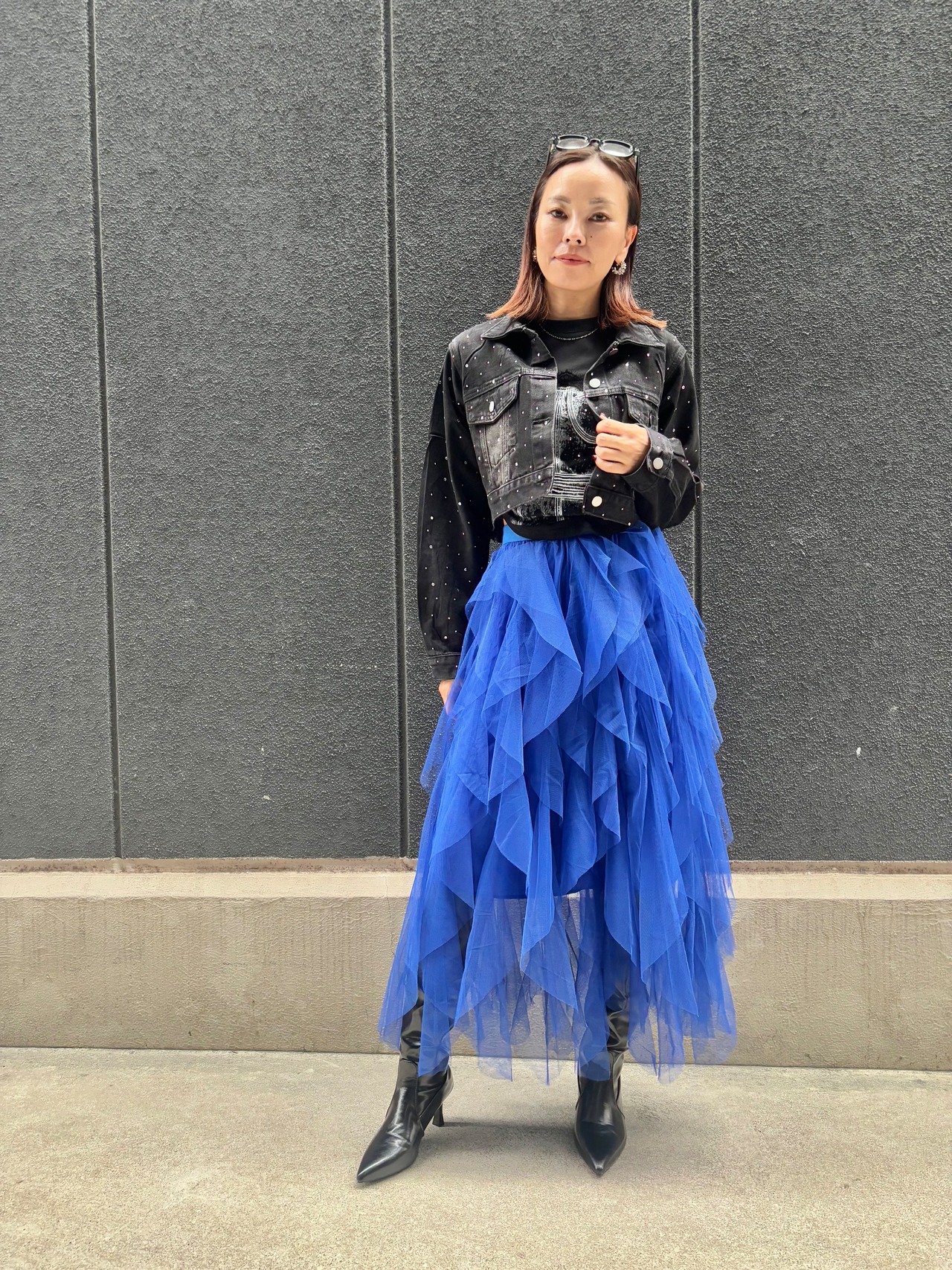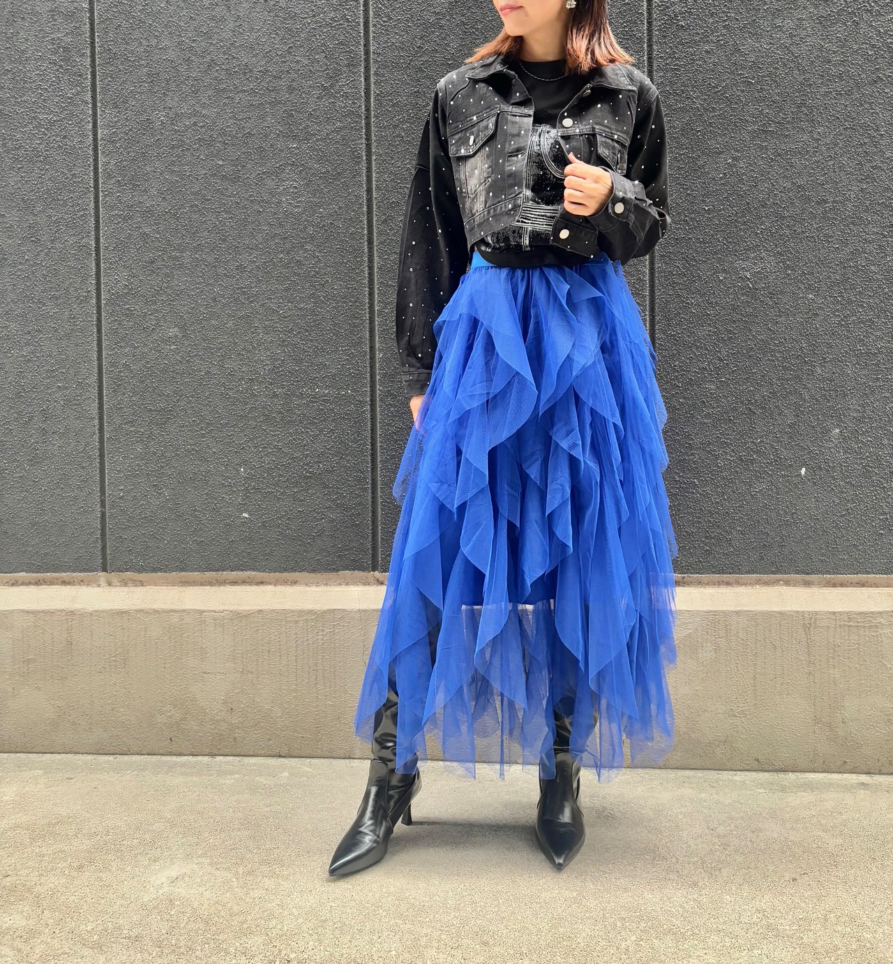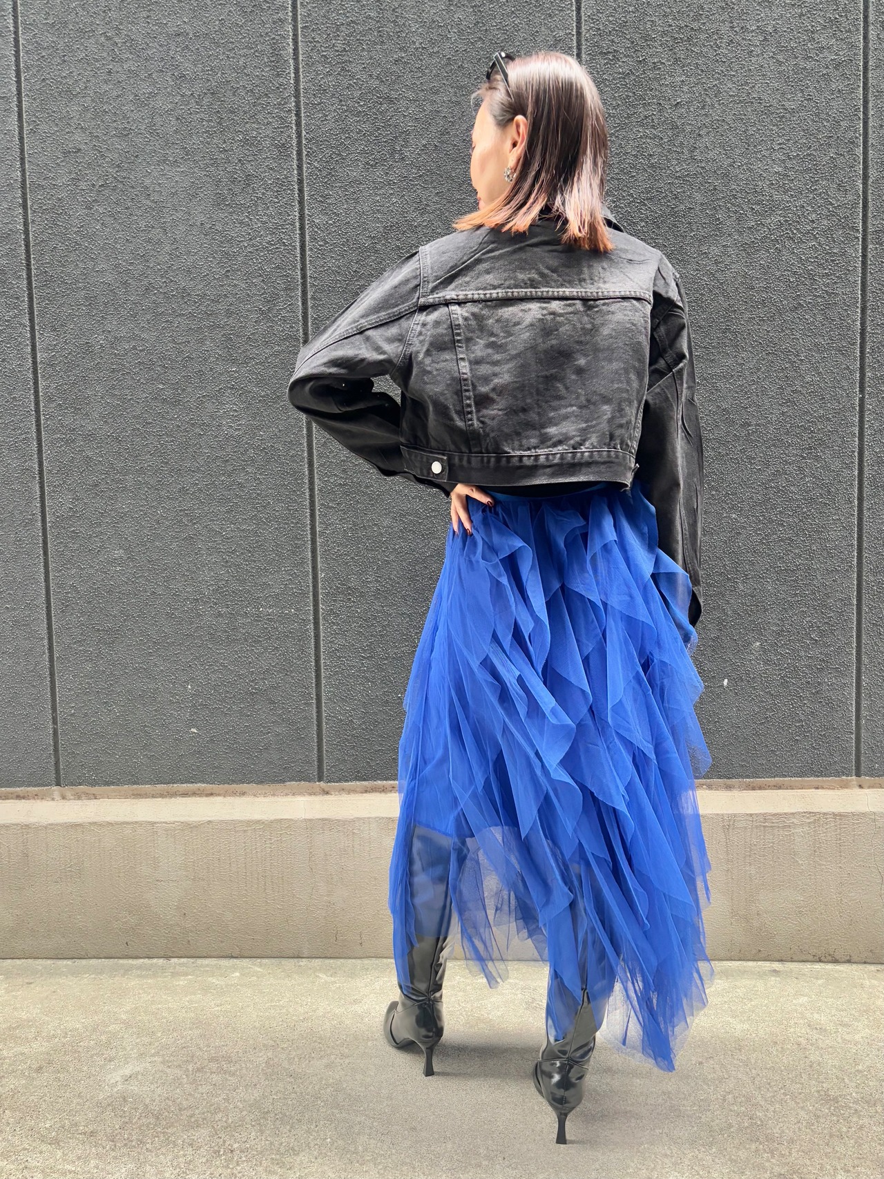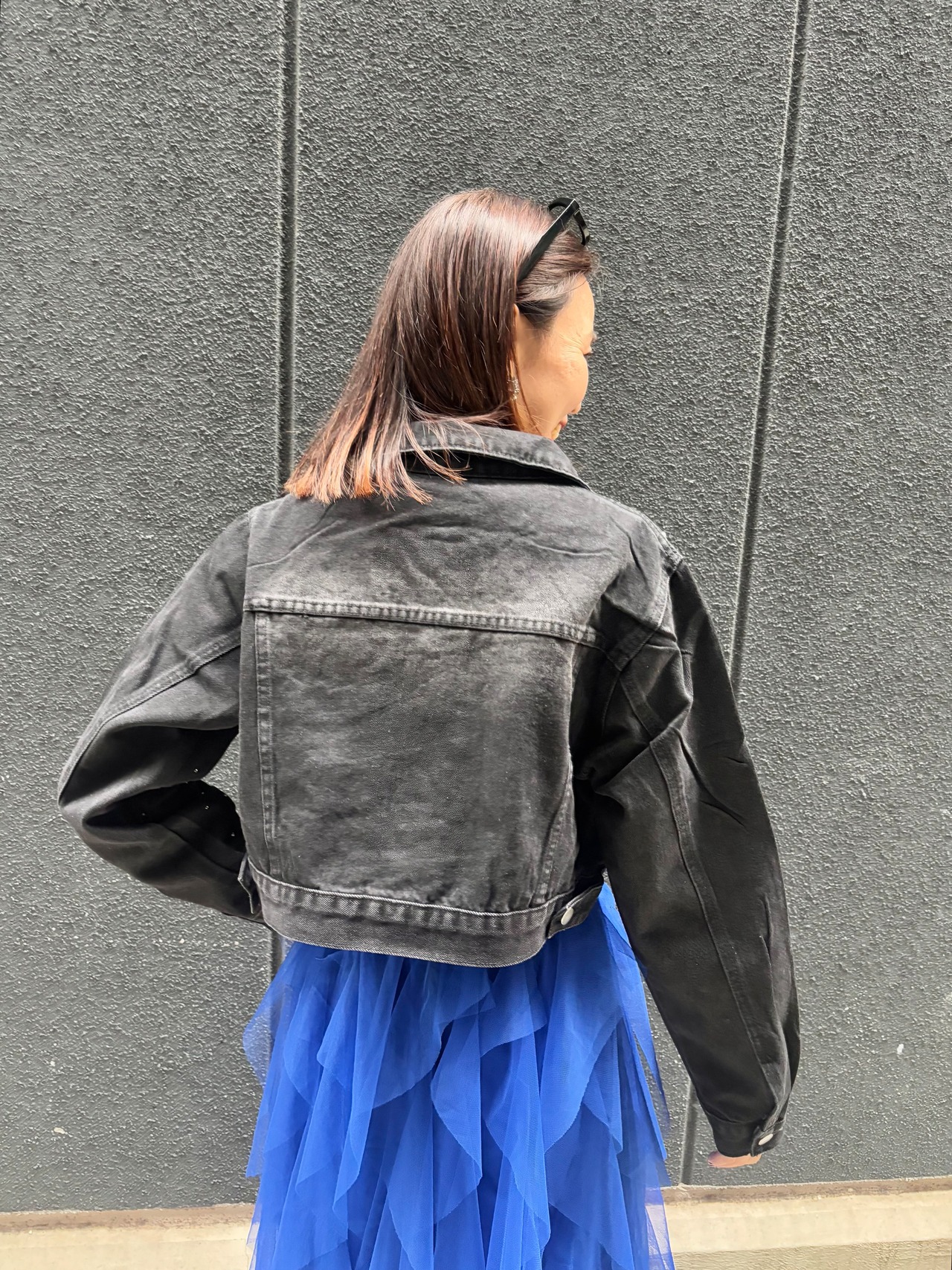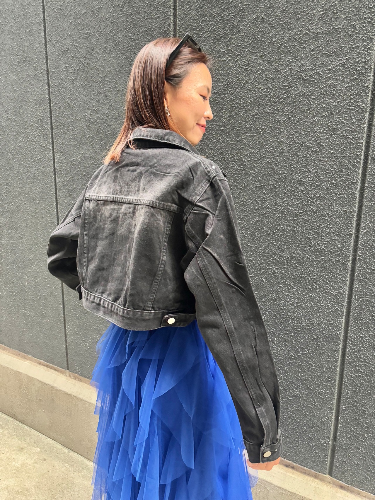 ブラックデニムの素材が、クールな印象を与え、どんなスタイルにもマッチします!